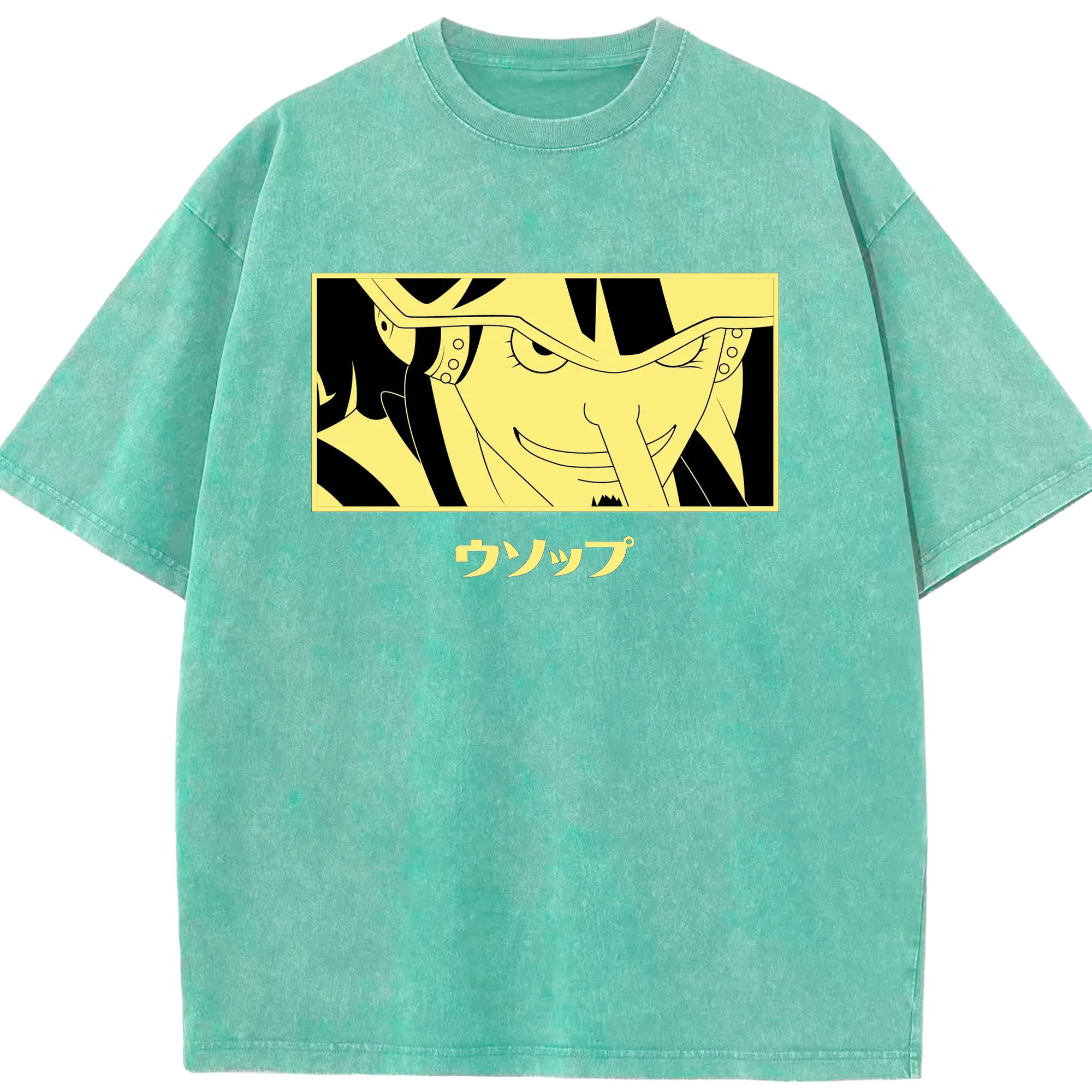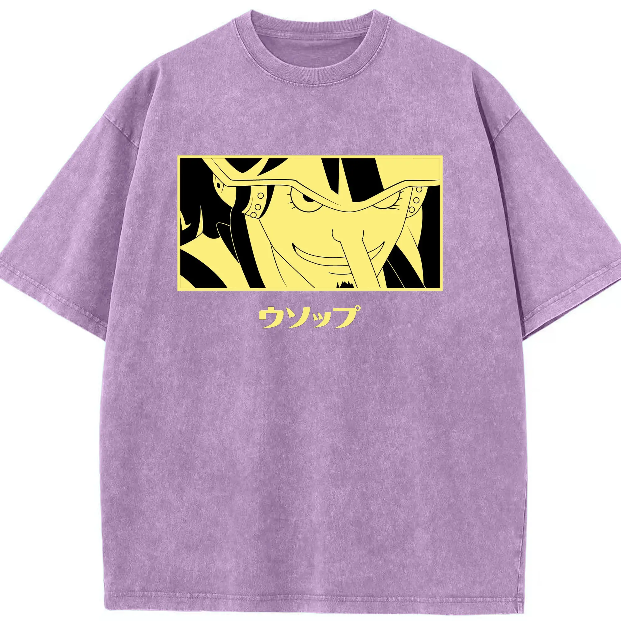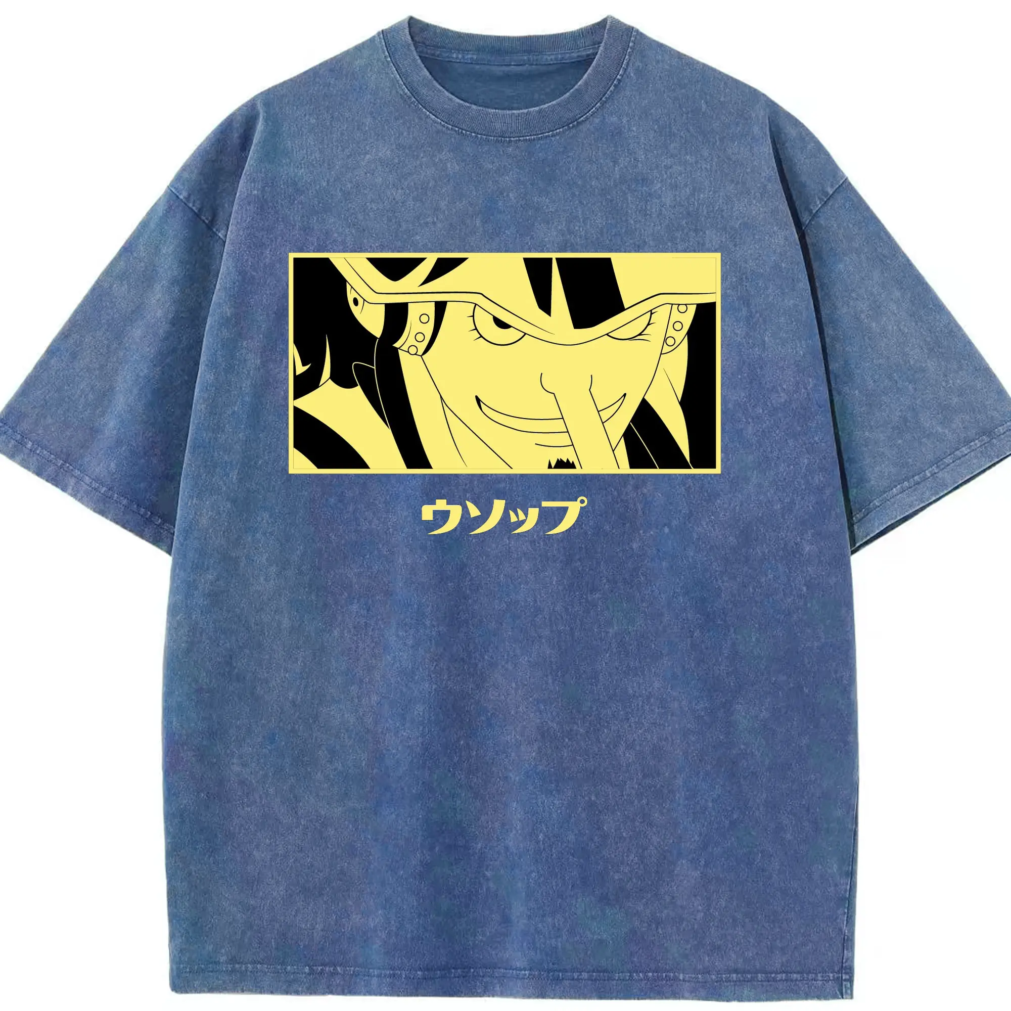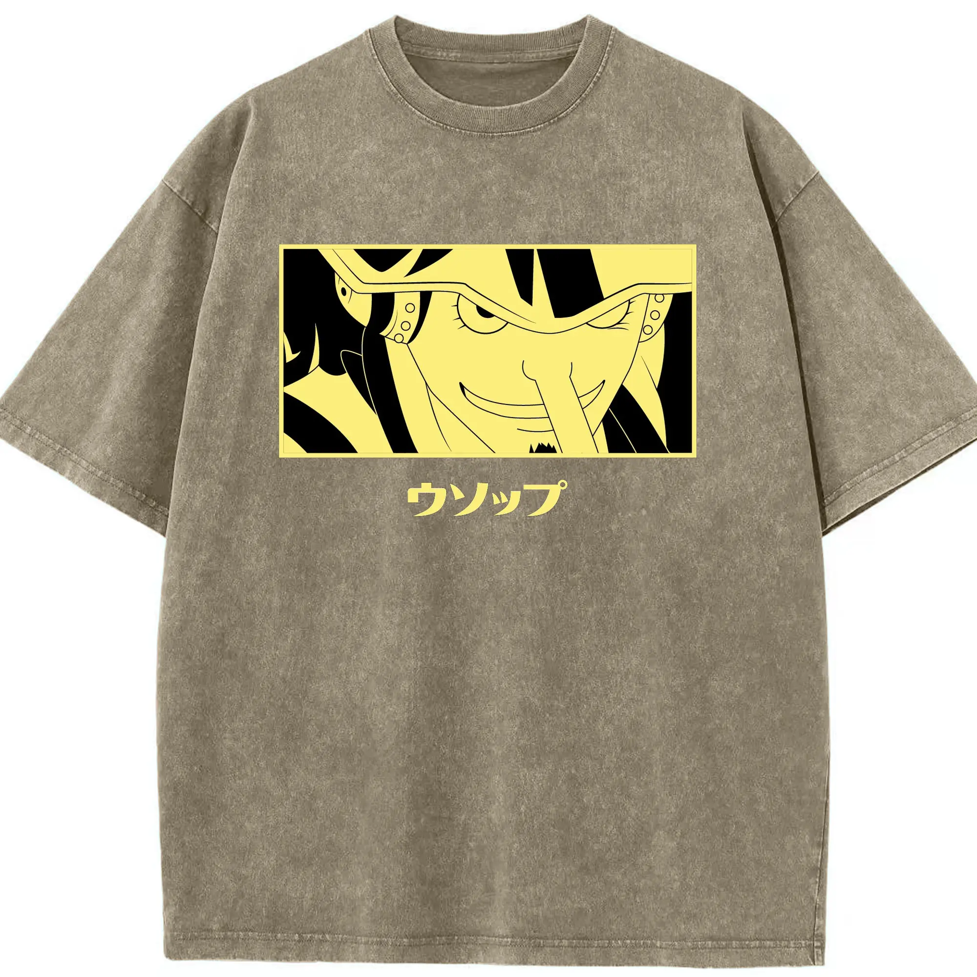 One Piece Usopp Yellow Anime DIY Shirt - Washed Vintage Look 230g Cotton Oversized T-Shirt With Front Heat Transfer Print – Soft, Lightweight, Stylish Fit – Comfortable Casual Wear For Sports & Everyday Use