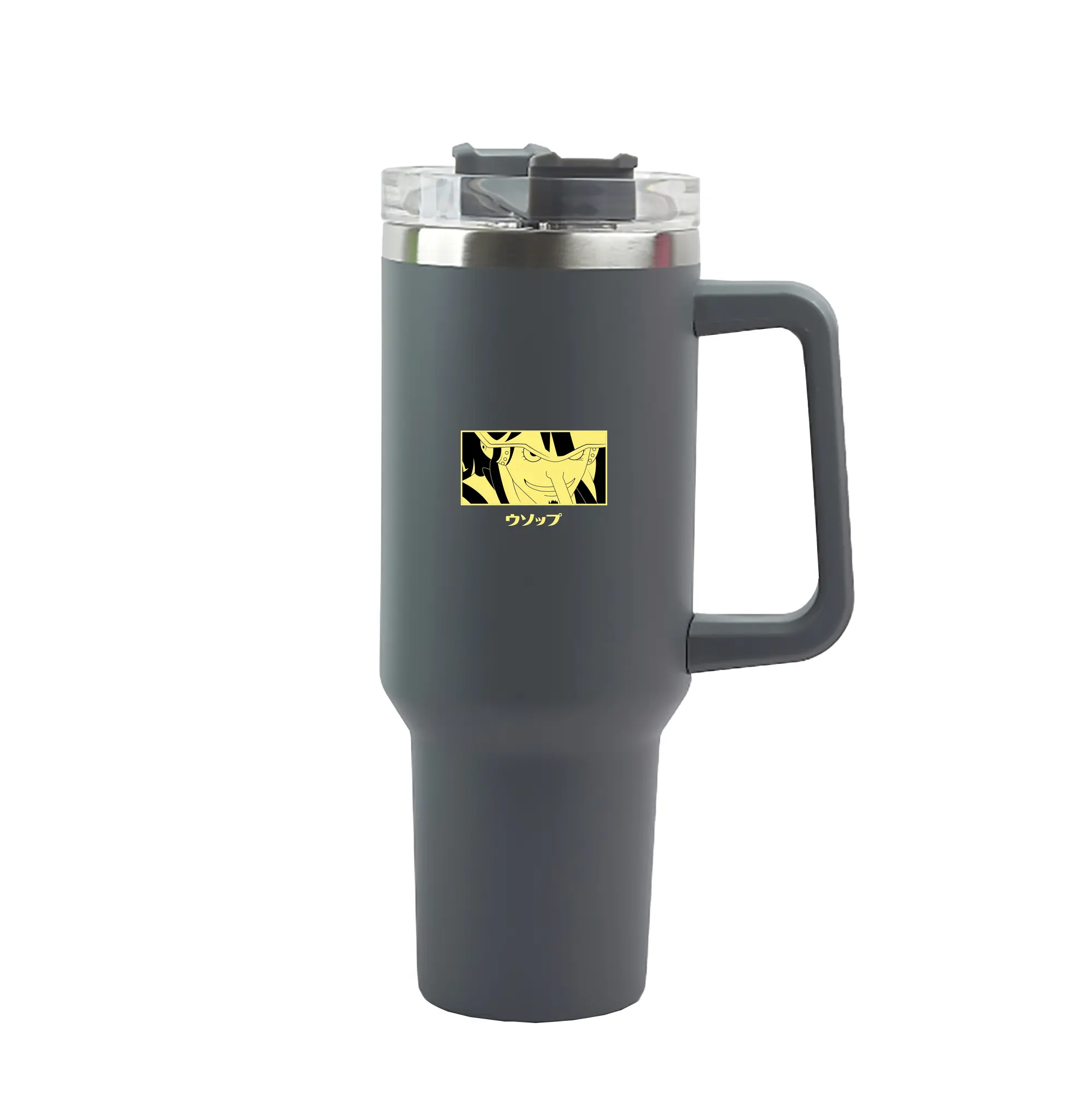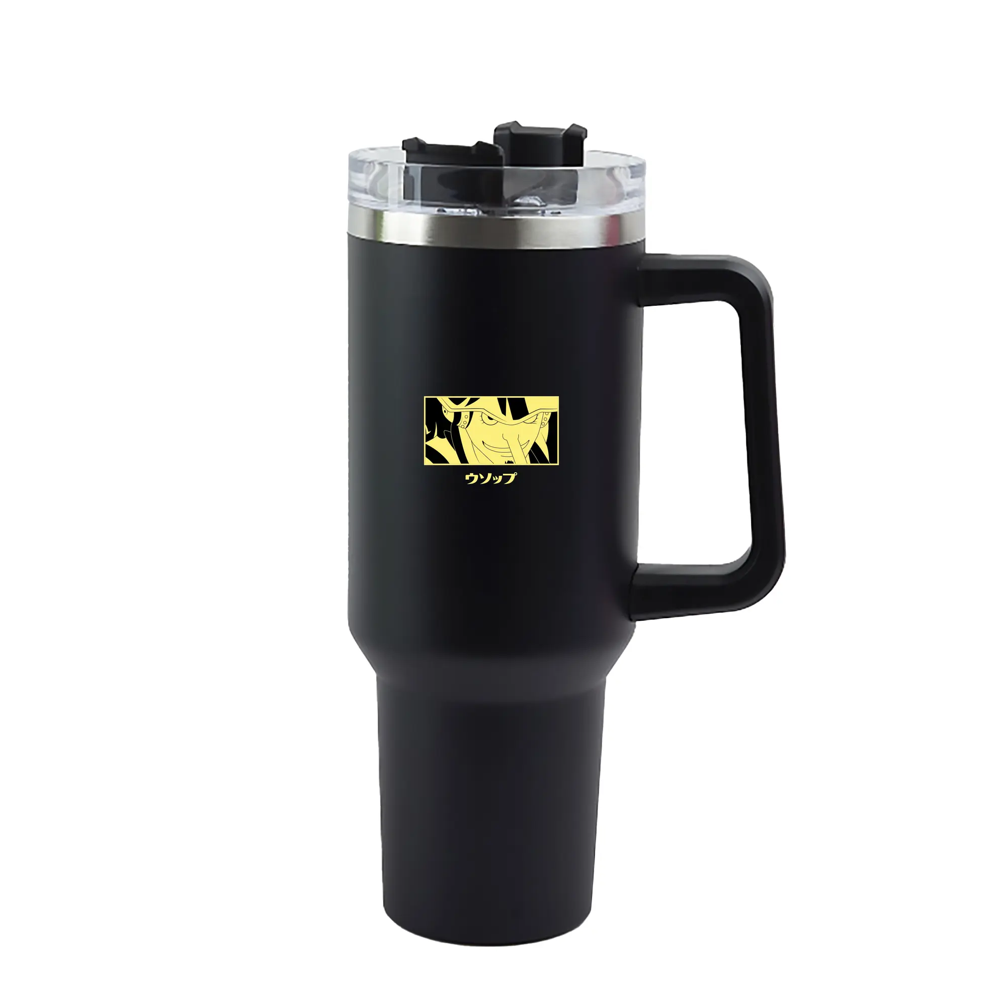 One Piece Usopp Yellow Anime DIY Shirt - 40oz Handle Car Tumbler – Durable Stainless Steel Travel Mug With UV Print – Double Wall Insulated, Fits Most Car Cup Holders