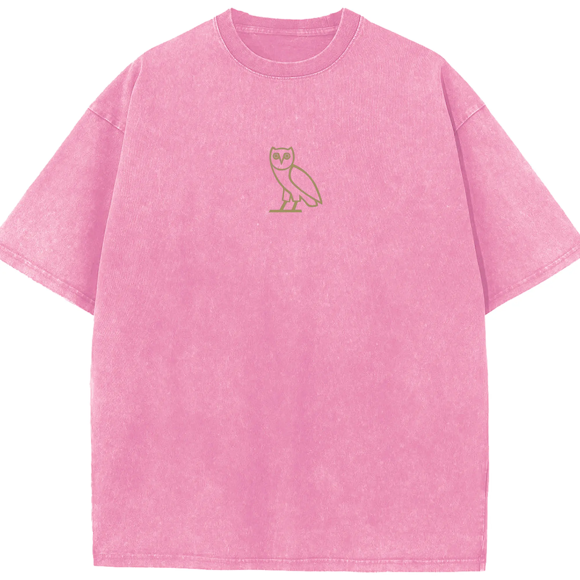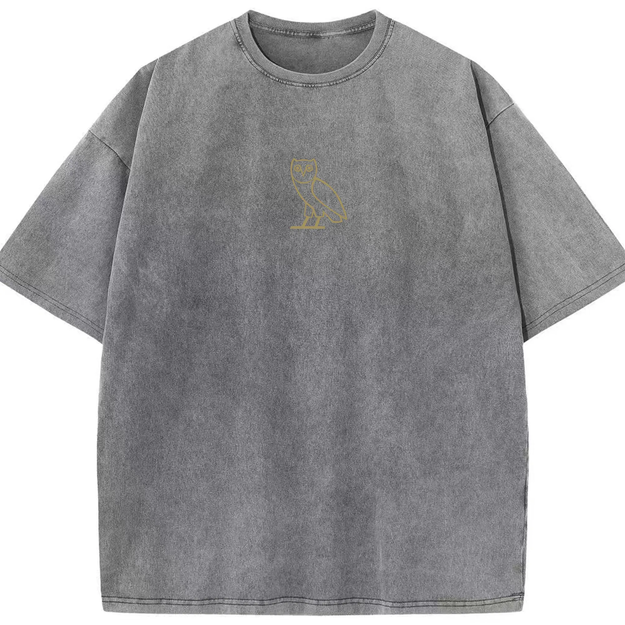 OVO Drake Golden Owl Minimalist DIY - Washed Vintage Look 230g Cotton Oversized T-Shirt With Front Heat Transfer Print – Soft, Lightweight, Stylish Fit – Comfortable Casual Wear For Sports & Everyday Use