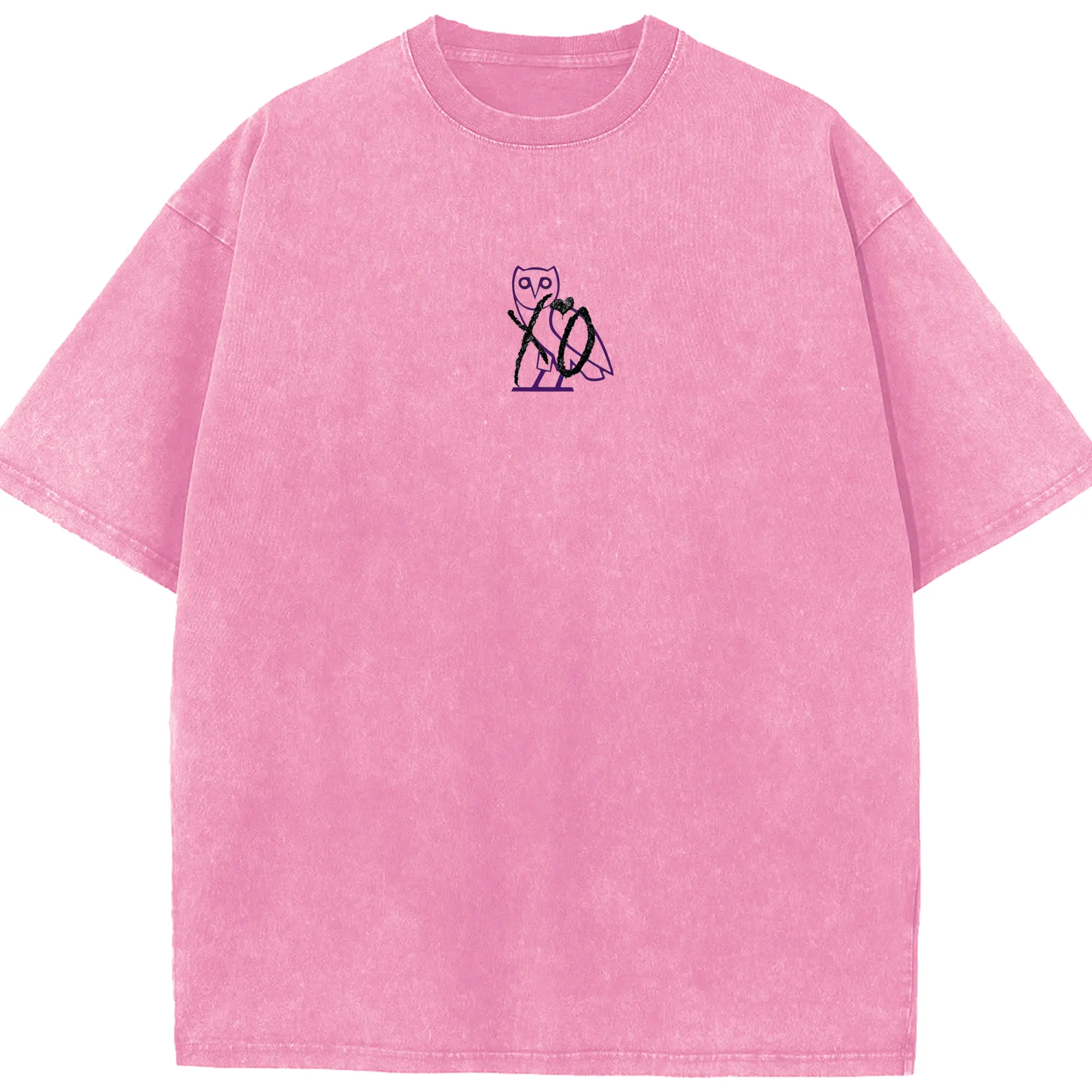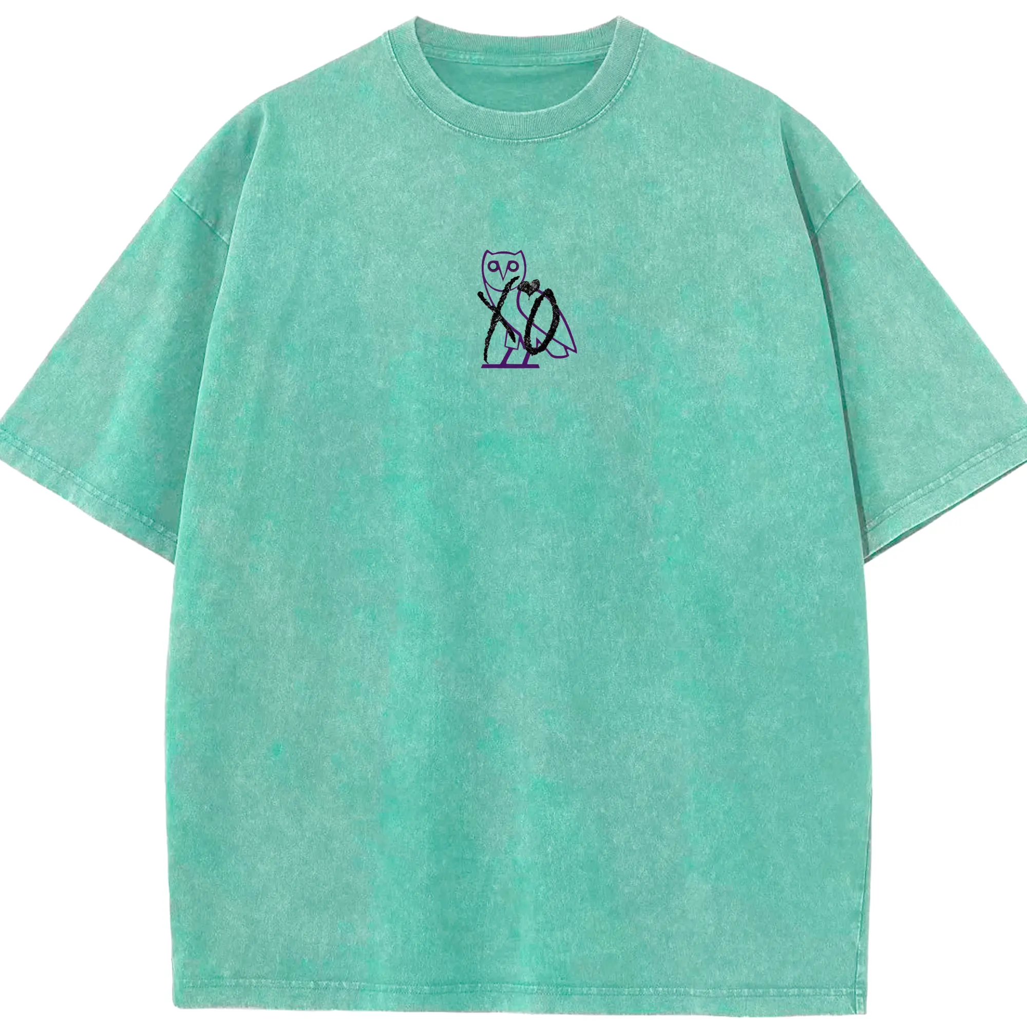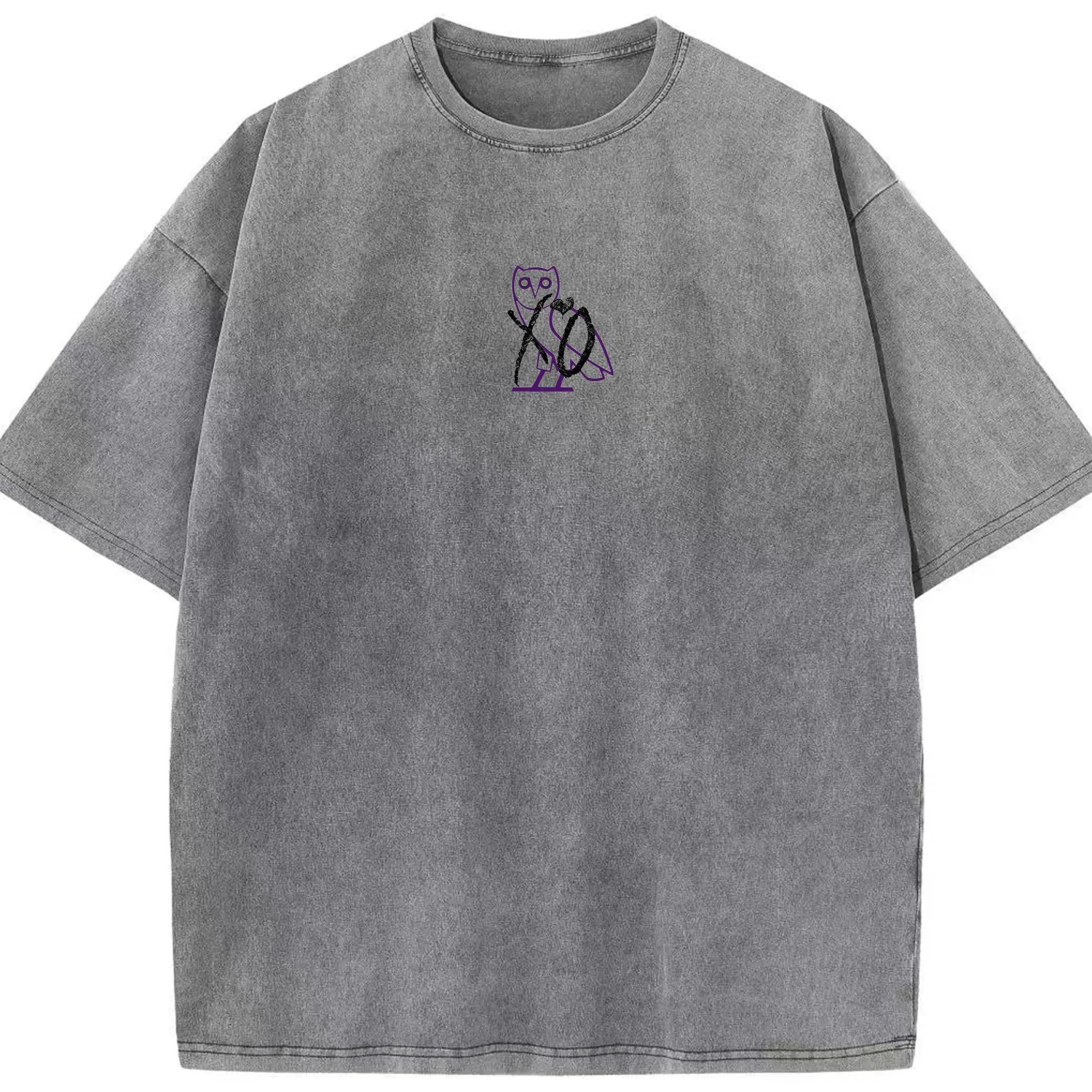 OVO XO Drake The Weeknd DIY - Washed Vintage Look 230g Cotton Oversized T-Shirt With Front Heat Transfer Print – Soft, Lightweight, Stylish Fit – Comfortable Casual Wear For Sports & Everyday Use