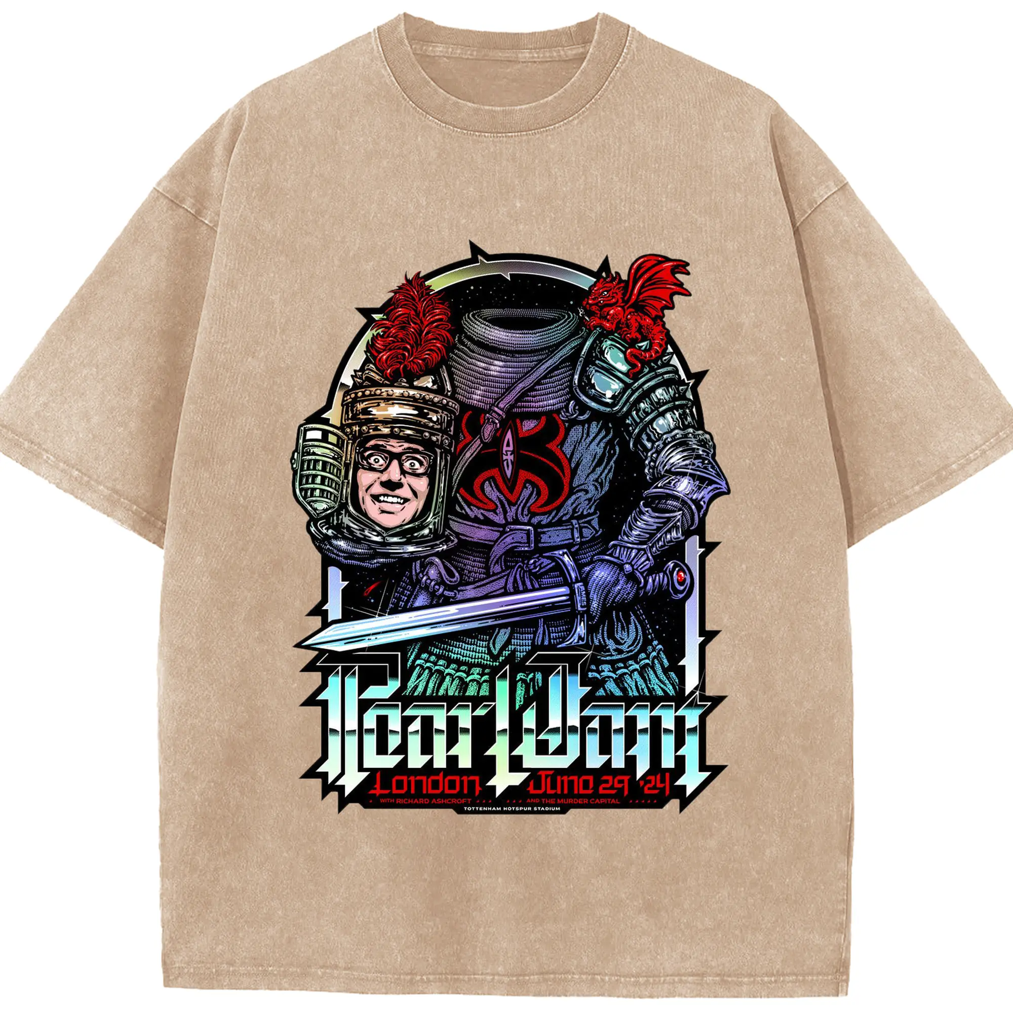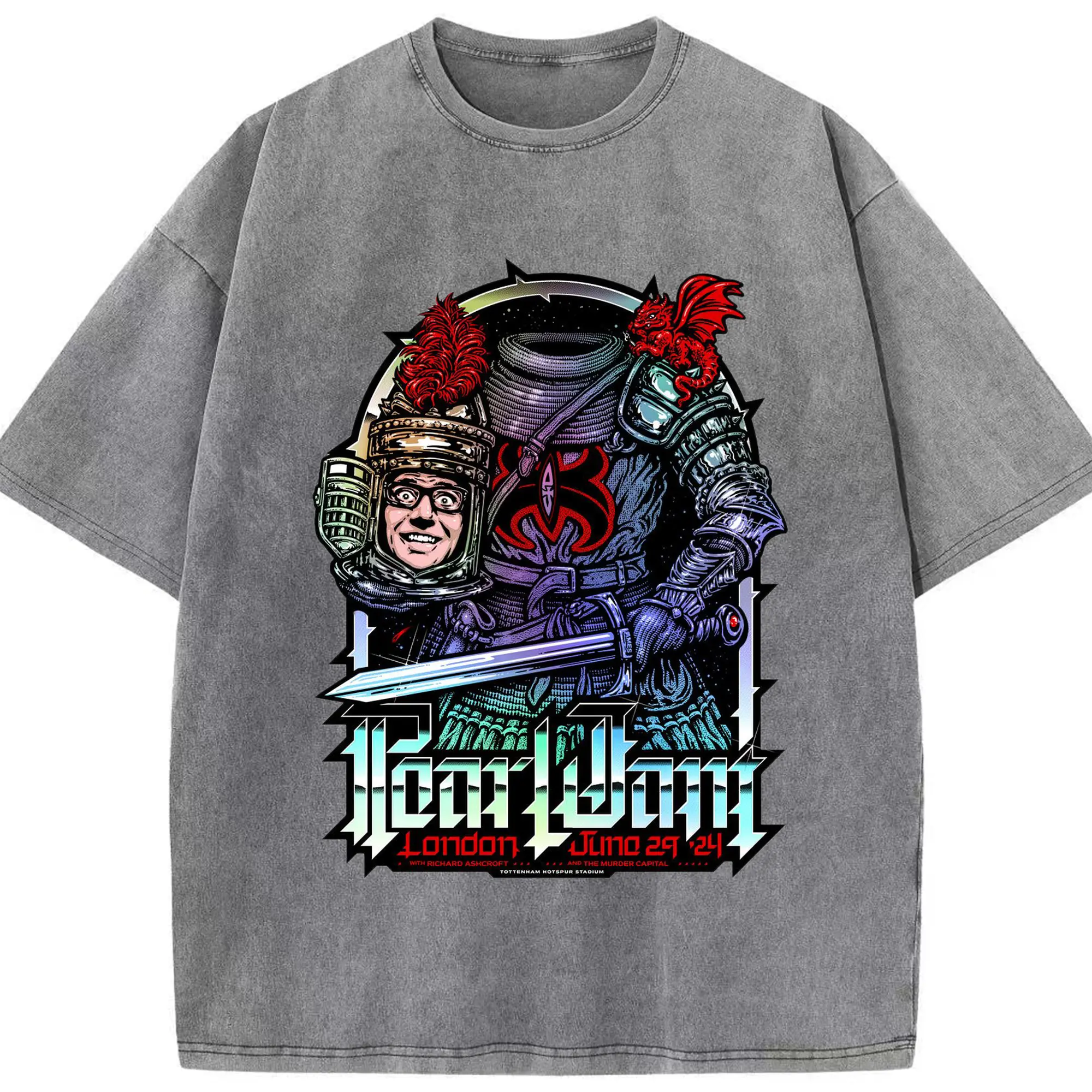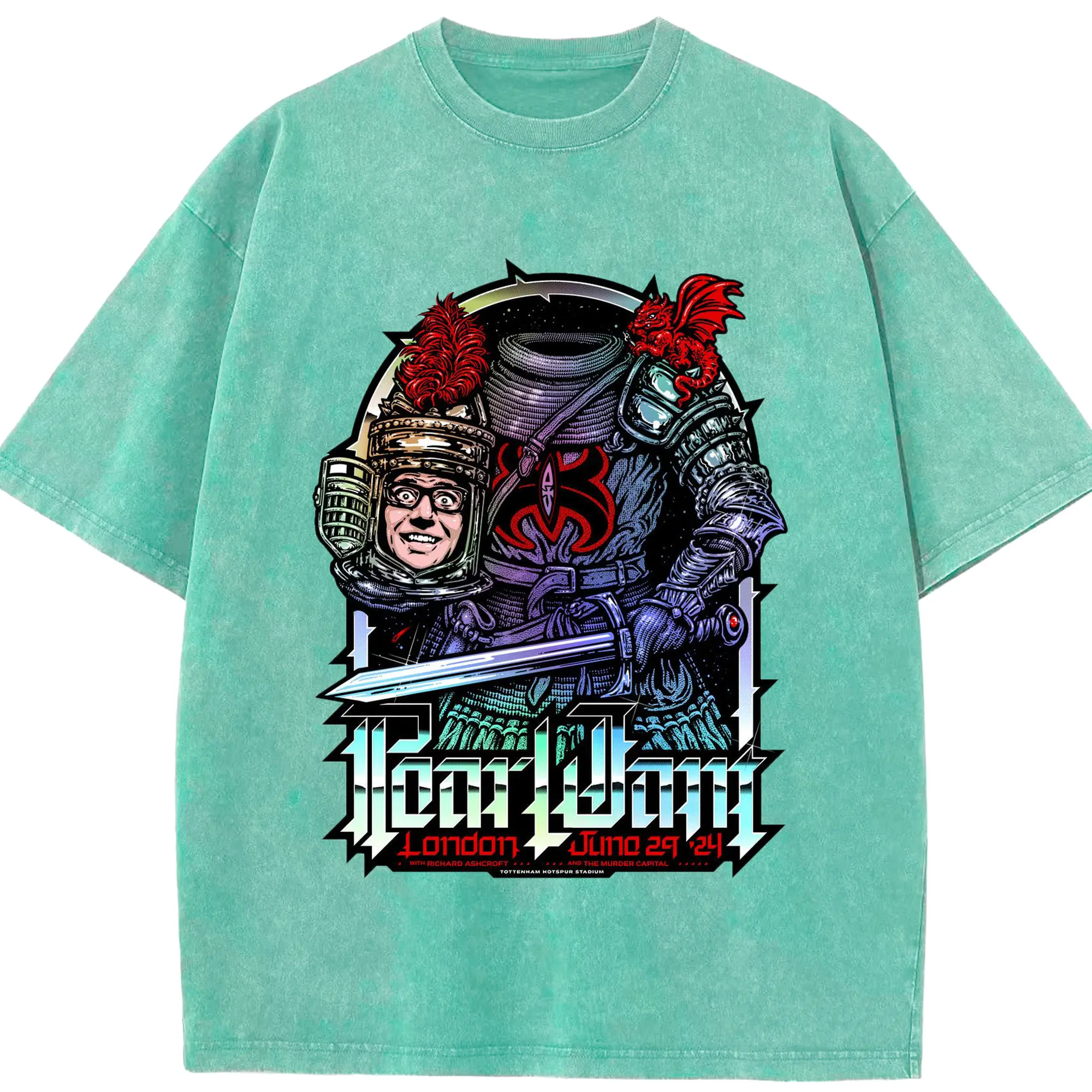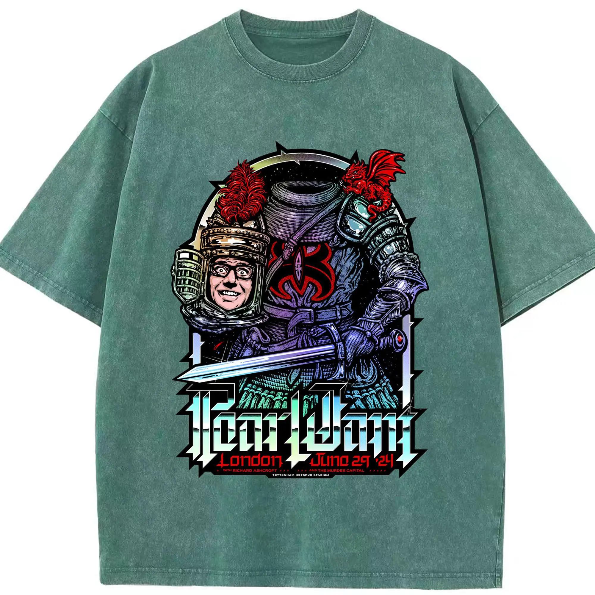 Pearl Jam London Fantasy Rock Concert DIY - Washed Vintage Look 230g Cotton Oversized T-Shirt With Front Heat Transfer Print – Soft, Lightweight, Stylish Fit – Comfortable Casual Wear For Sports & Everyday Use