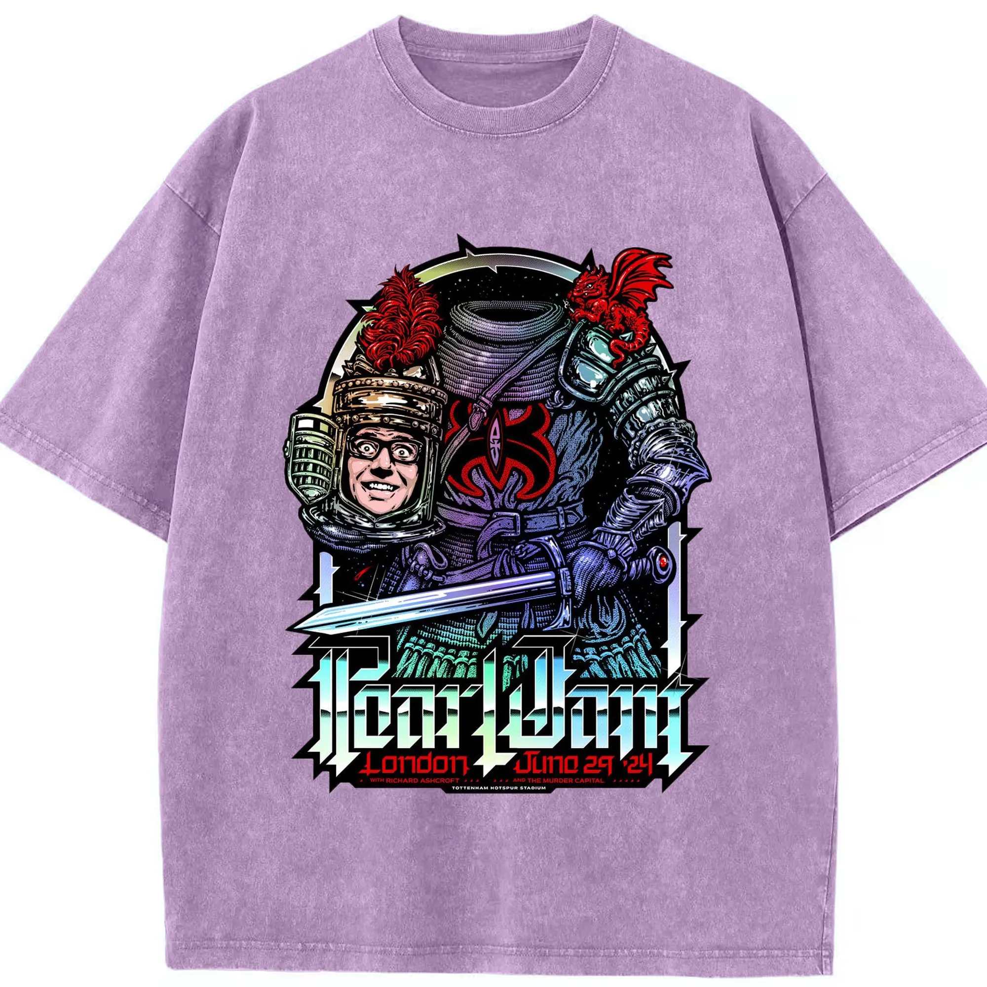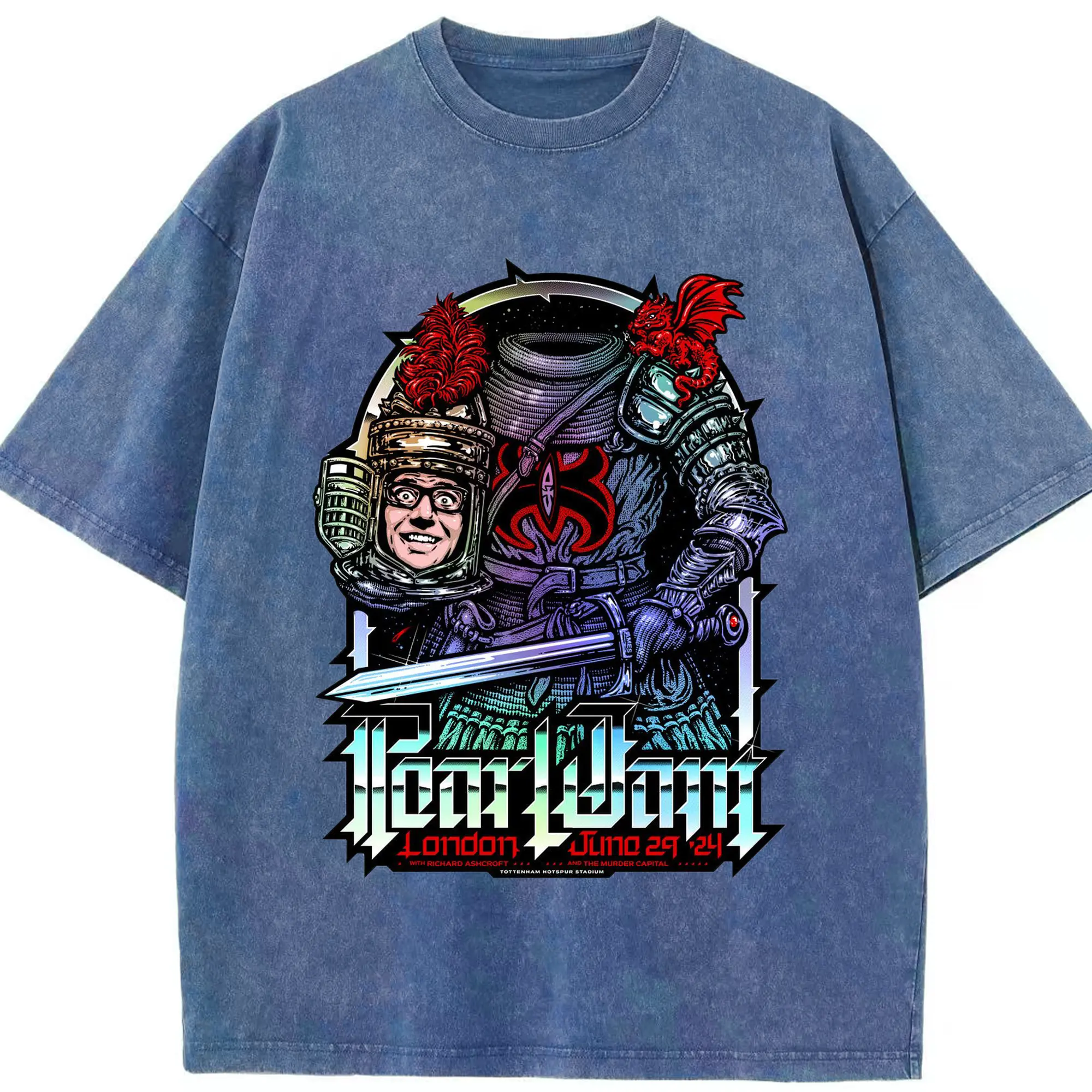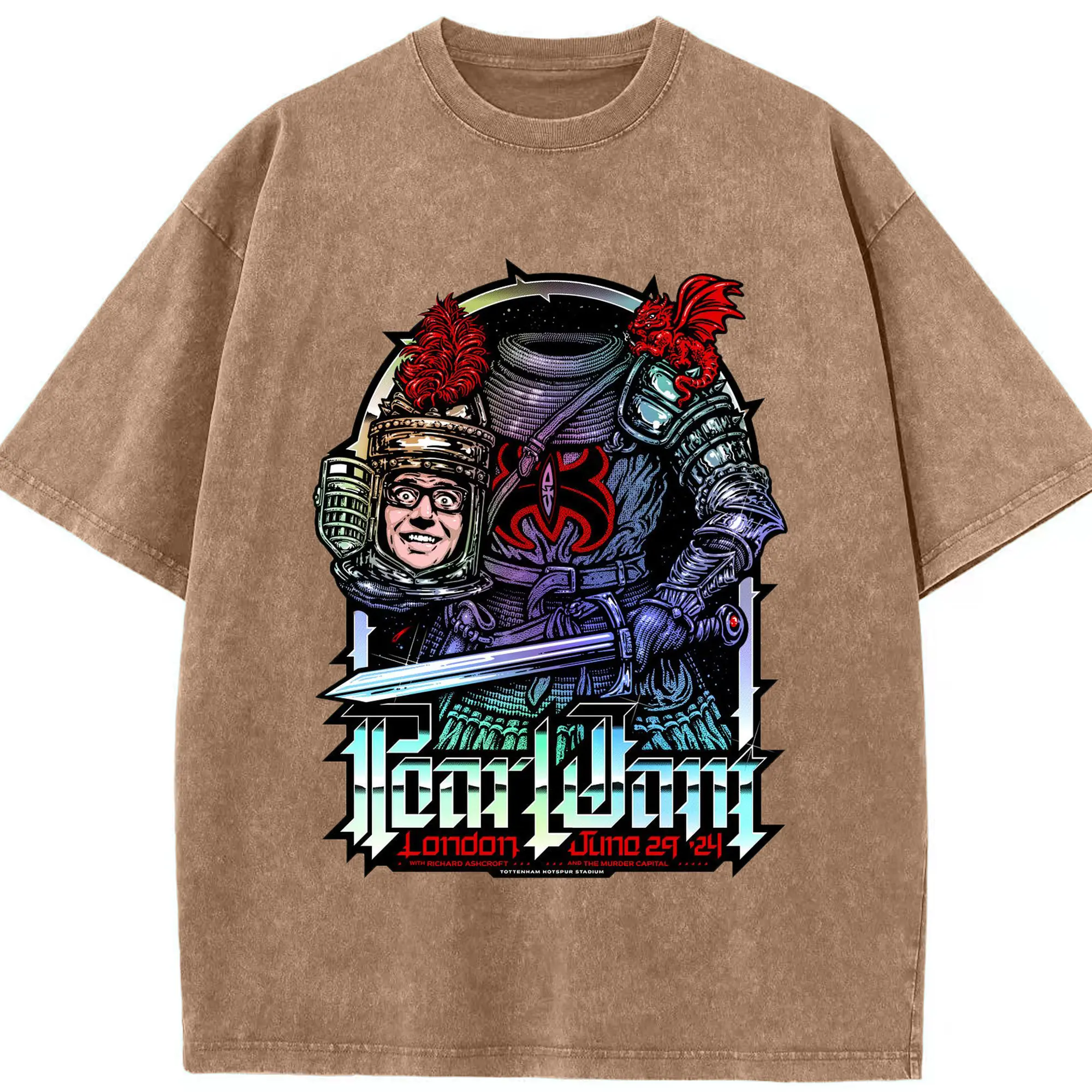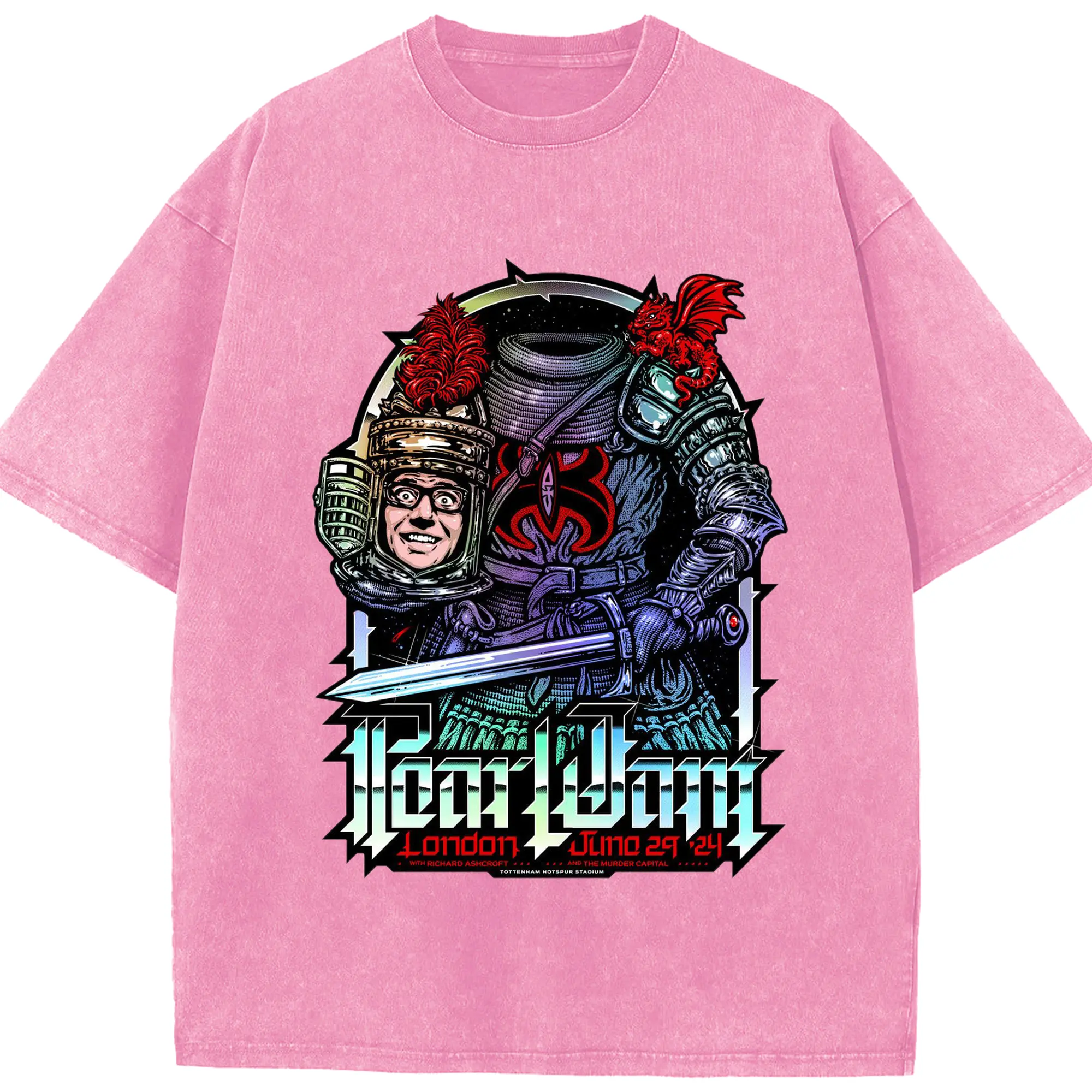 Pearl Jam London Fantasy Rock Concert DIY - Washed Vintage Look 230g Cotton Oversized T-Shirt With Front Heat Transfer Print – Soft, Lightweight, Stylish Fit – Comfortable Casual Wear For Sports & Everyday Use