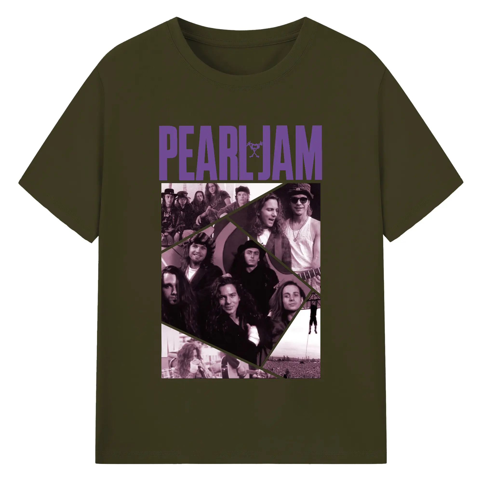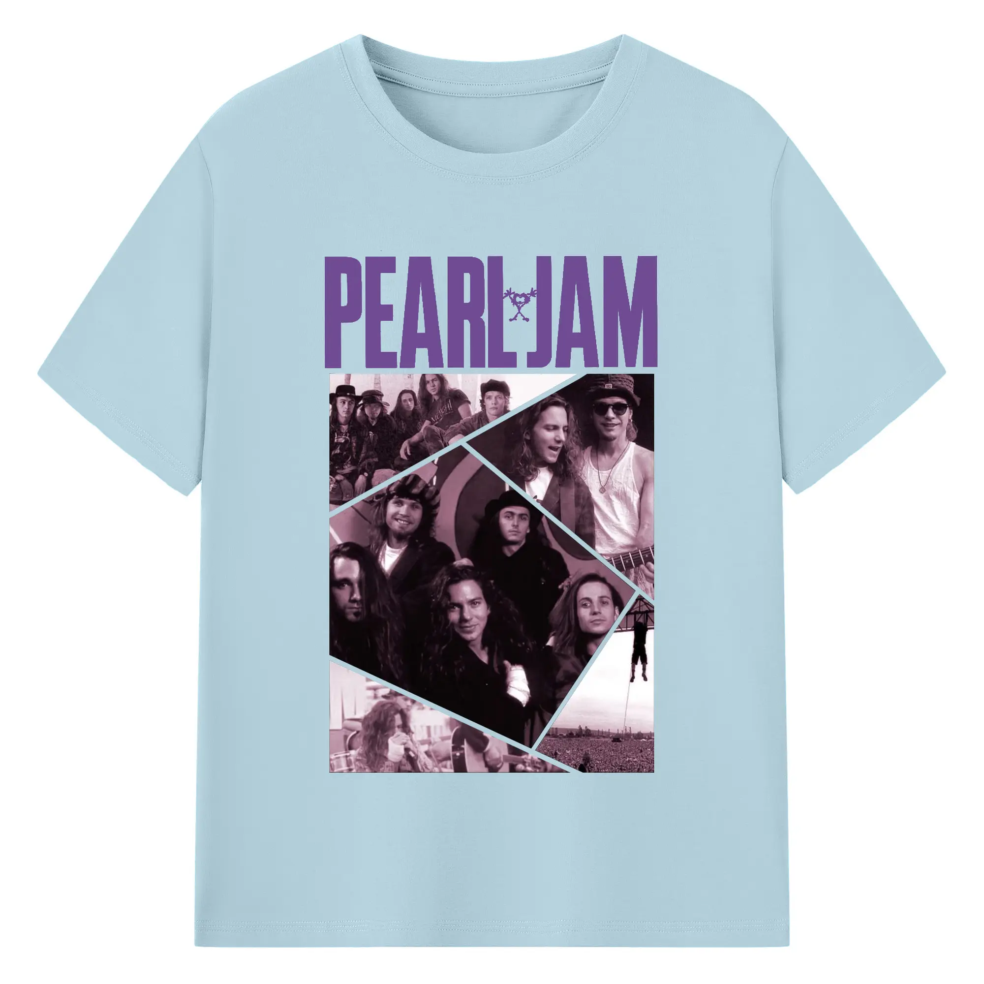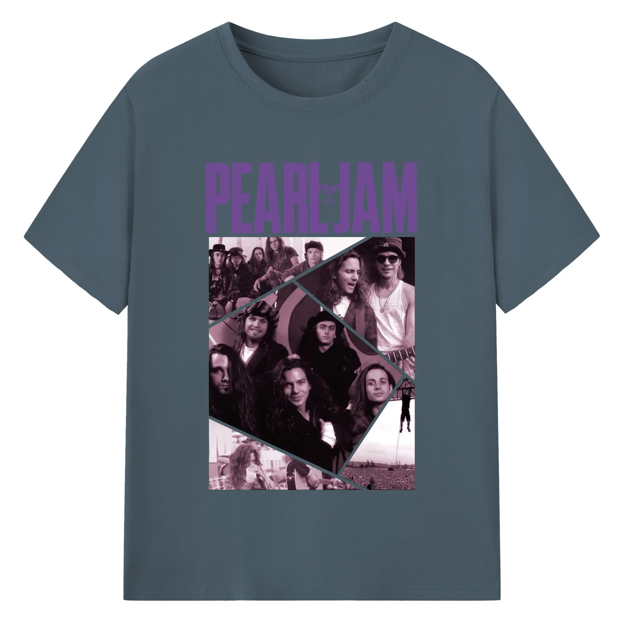 Pearl Jam Vintage Grunge Rock Collage DIY - 180g Cotton T-Shirt With Front Heat Transfer Print – Soft, Lightweight, Fitted Design – Comfortable Casual Wear For Sports & Everyday Use