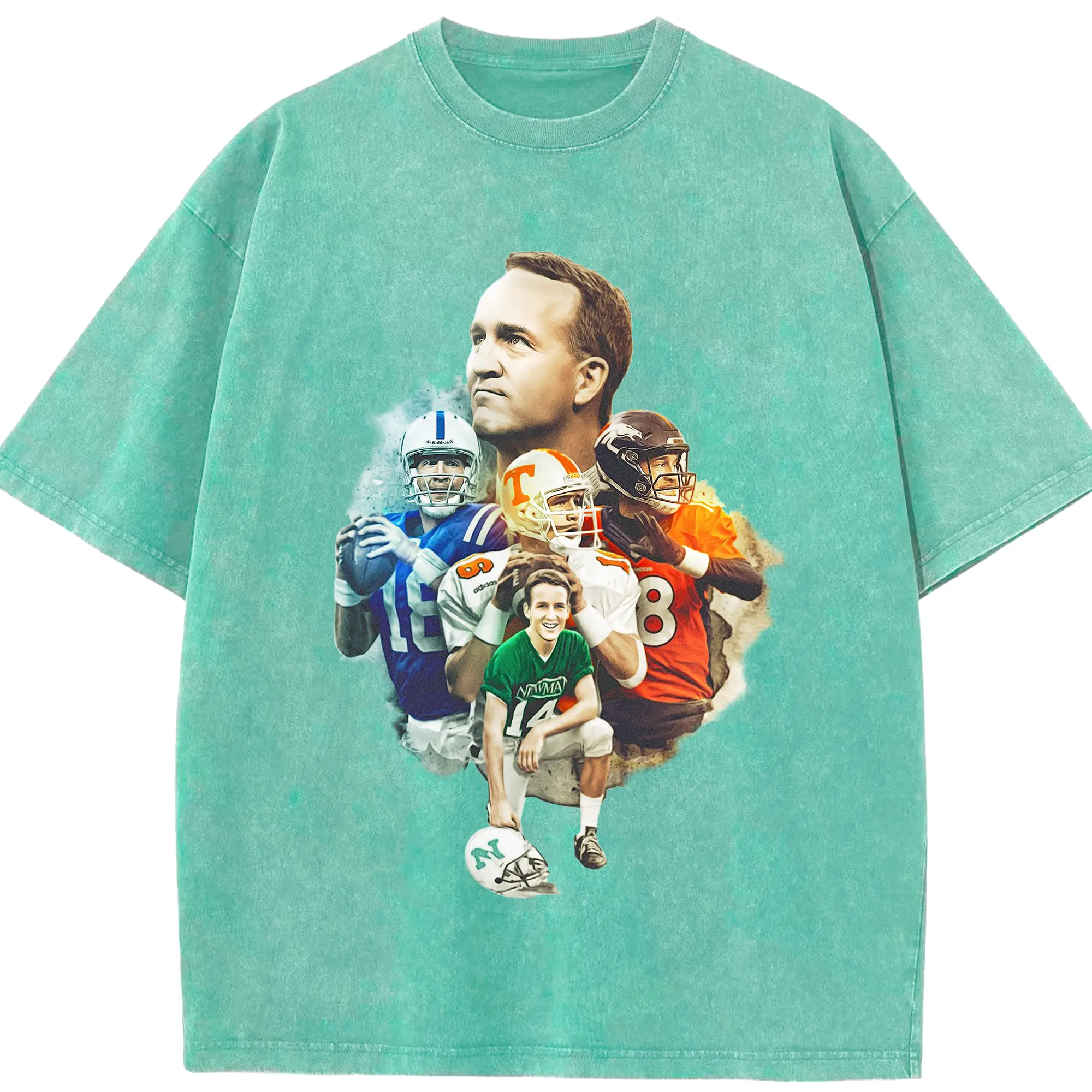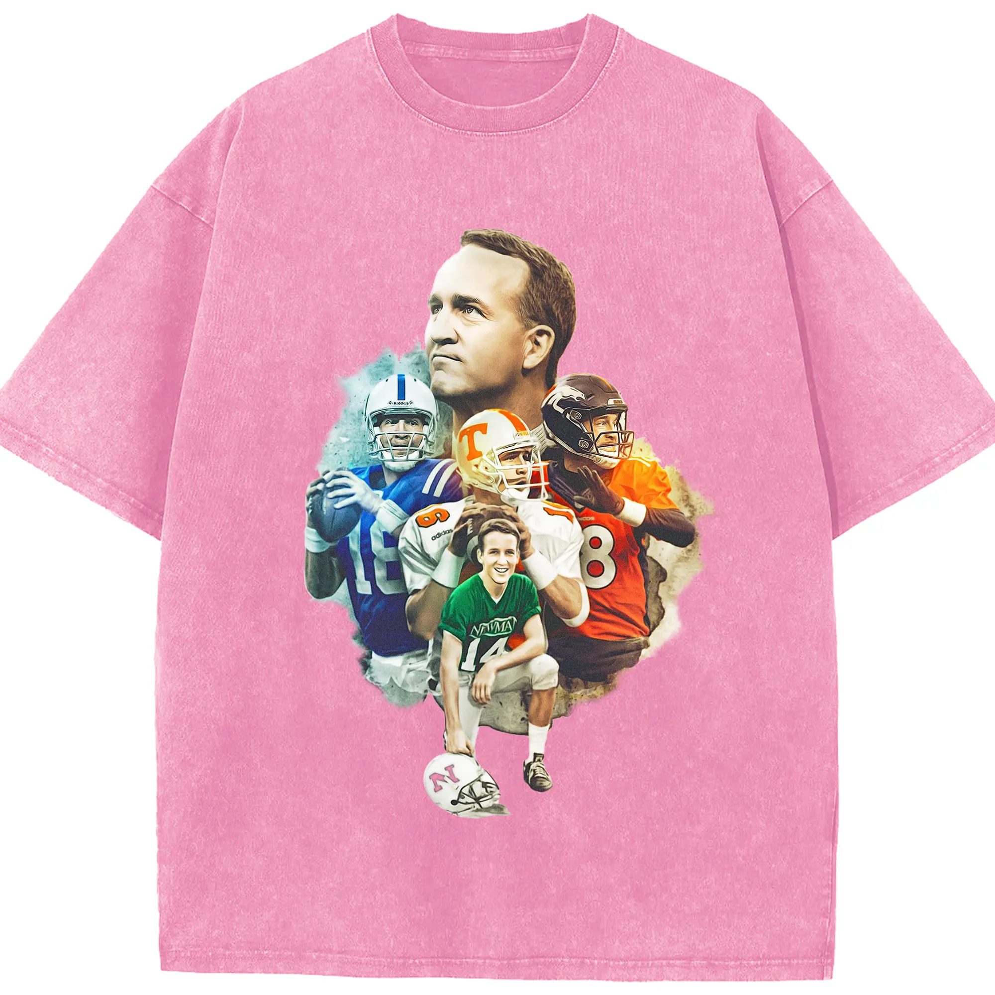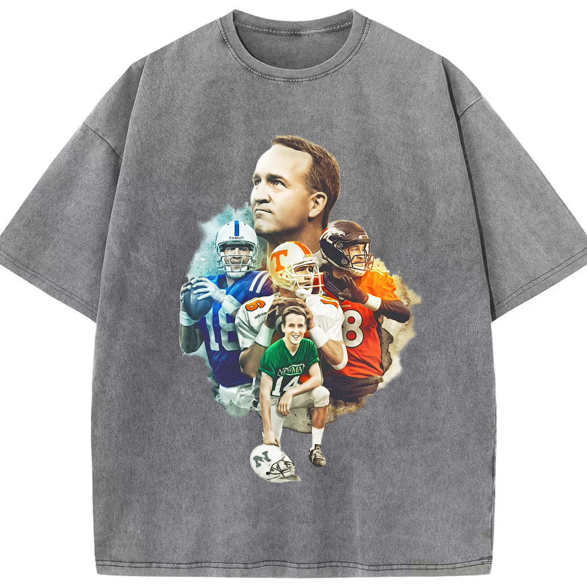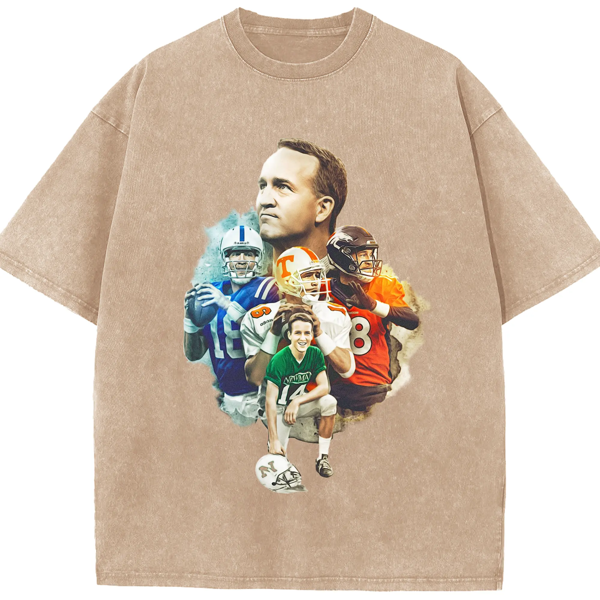 “Peyton Manning Colts & Broncos NFL Great” DIY Shirt - Washed Vintage Look 230g Cotton Oversized T-Shirt With Front Heat Transfer Print – Soft, Lightweight, Stylish Fit – Comfortable Casual Wear For Sports & Everyday Use