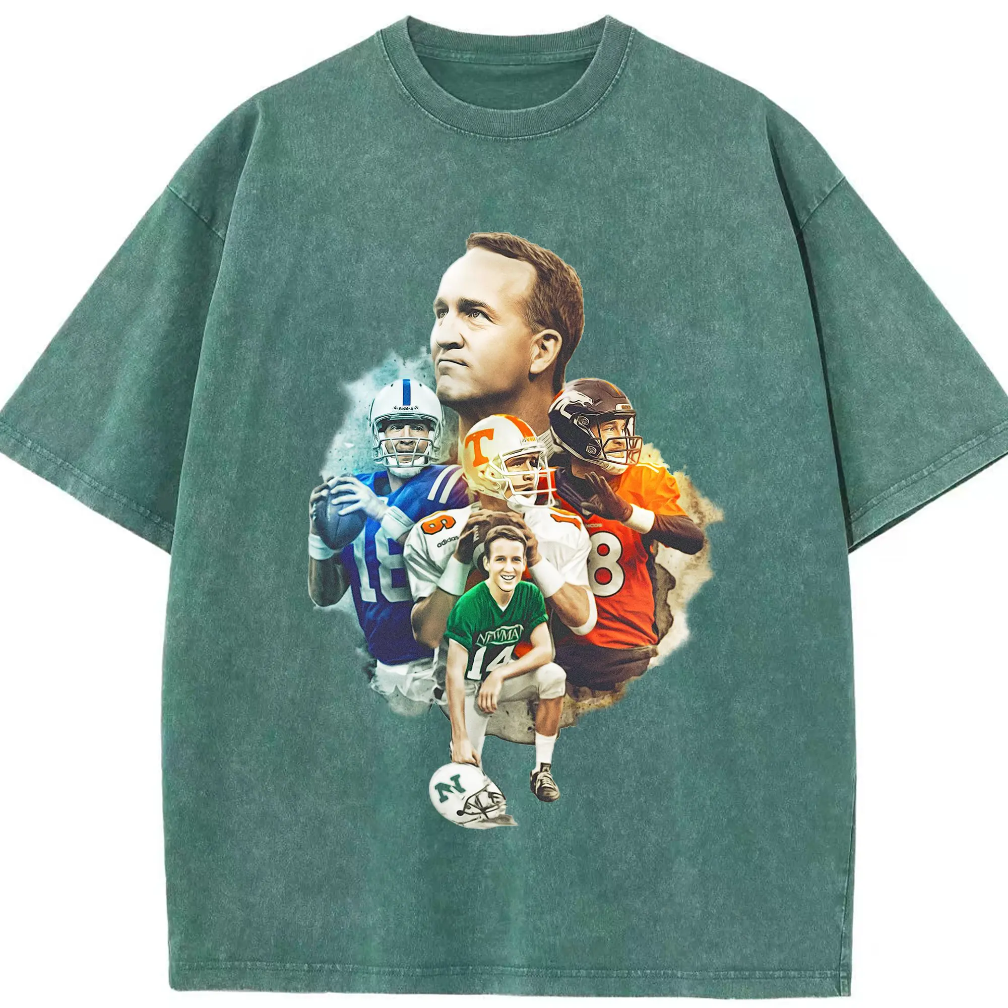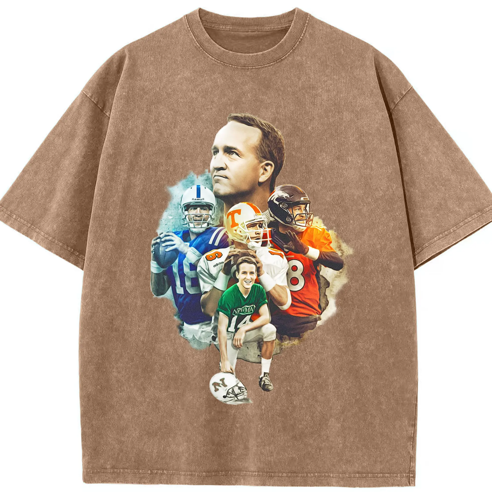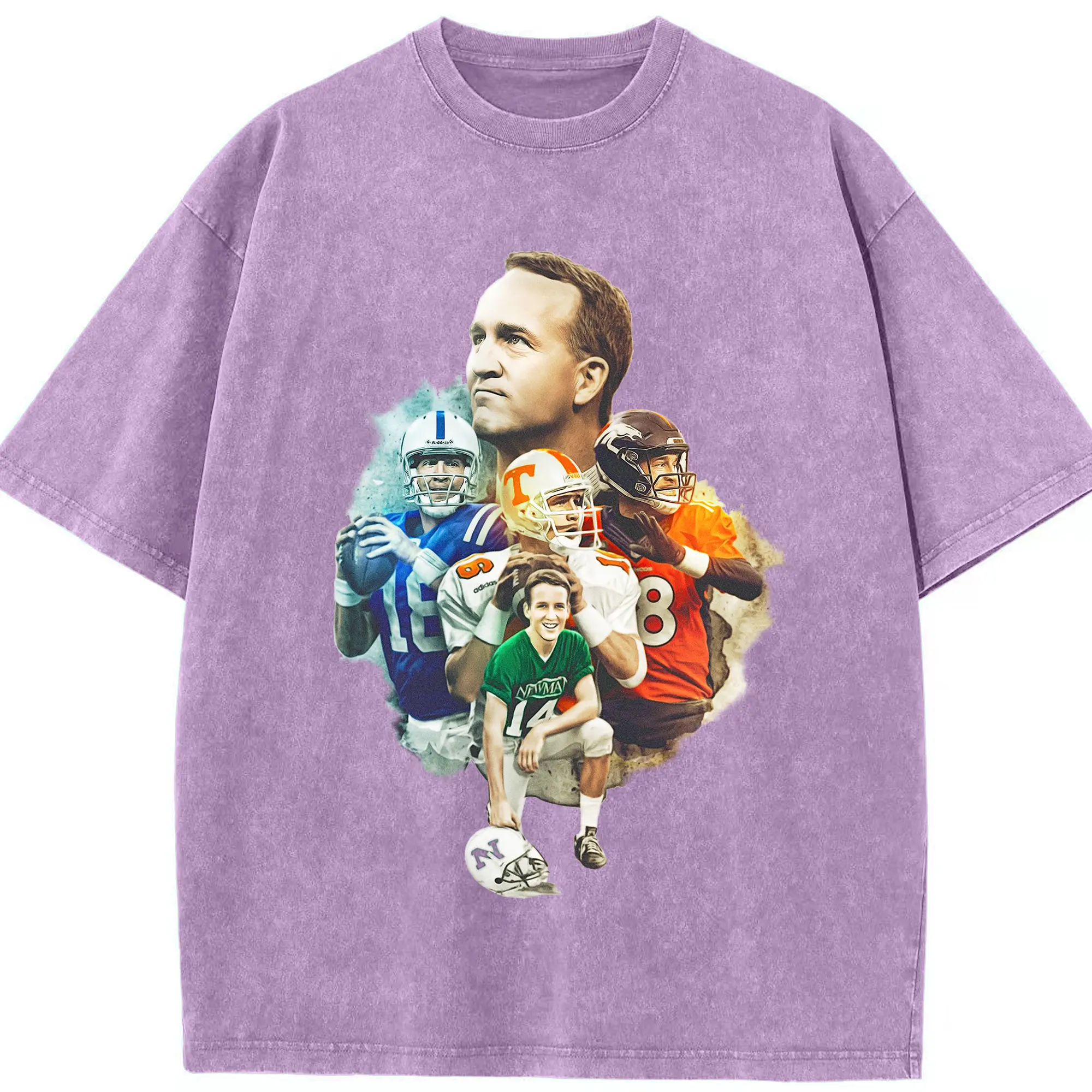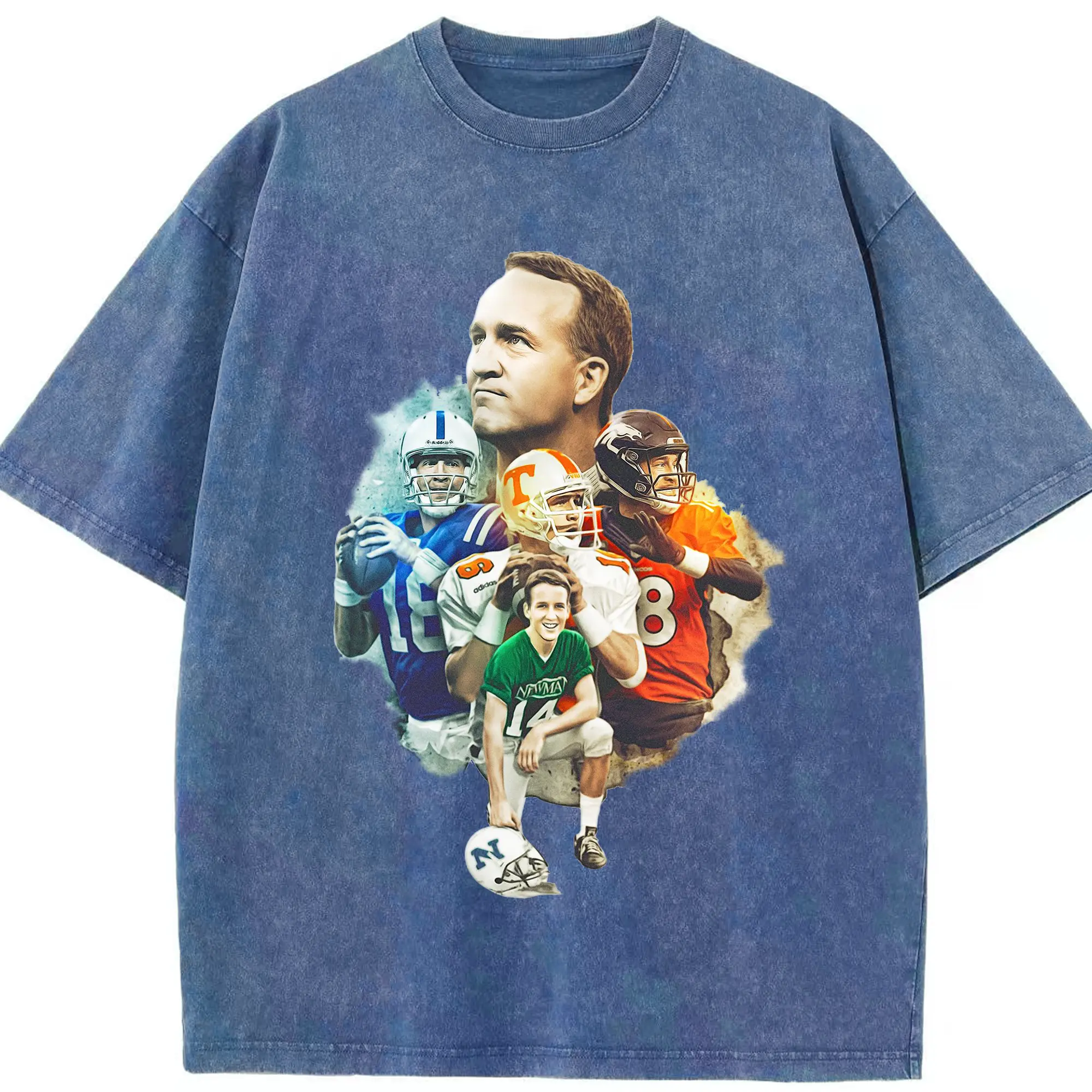 “Peyton Manning Colts & Broncos NFL Great” DIY Shirt - Washed Vintage Look 230g Cotton Oversized T-Shirt With Front Heat Transfer Print – Soft, Lightweight, Stylish Fit – Comfortable Casual Wear For Sports & Everyday Use