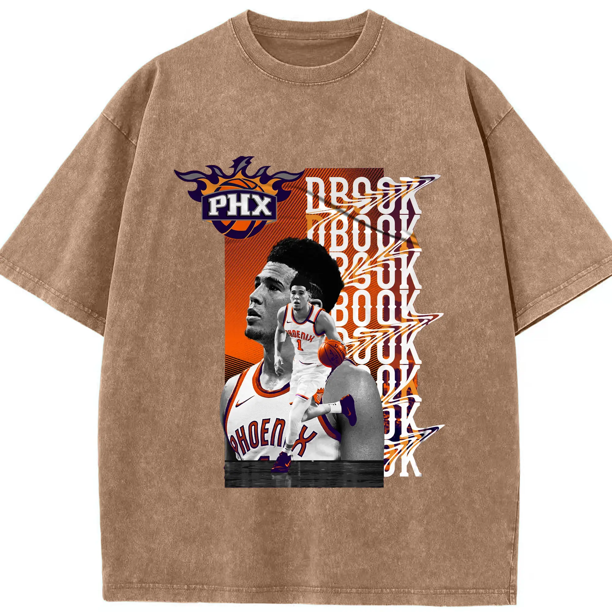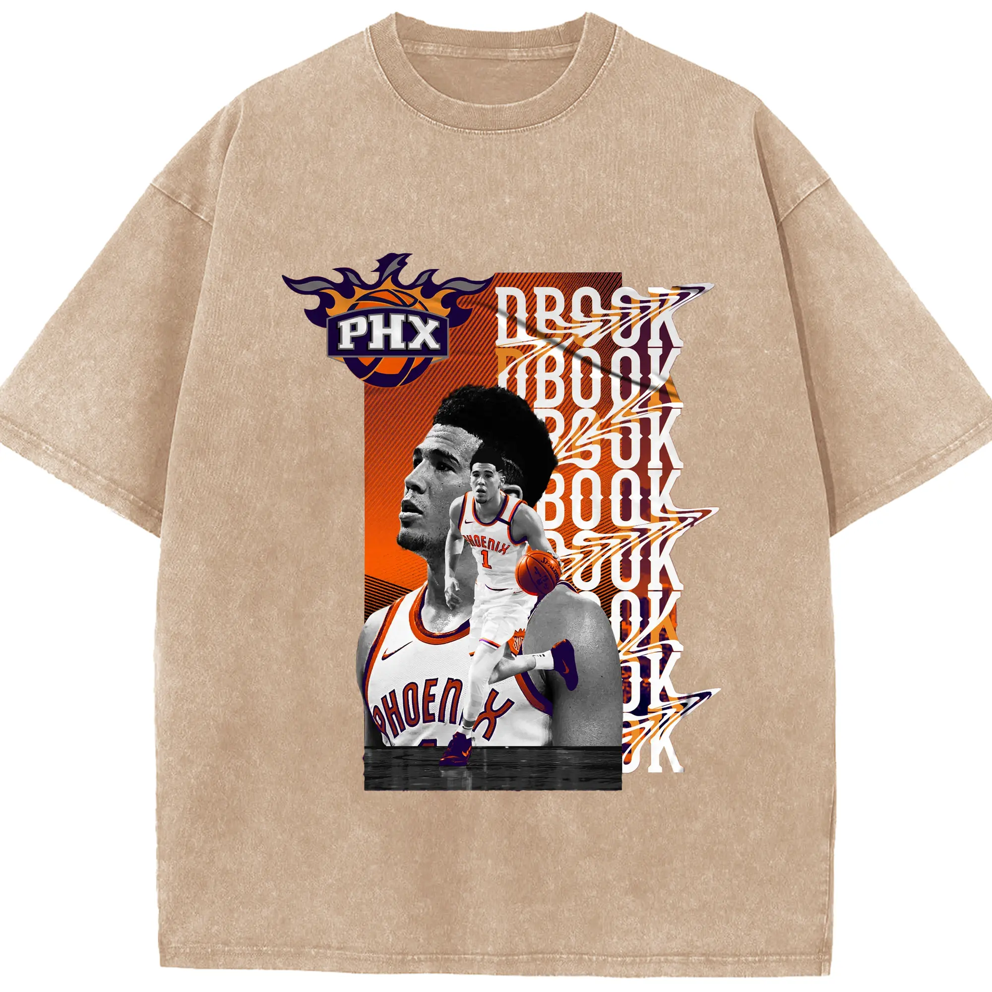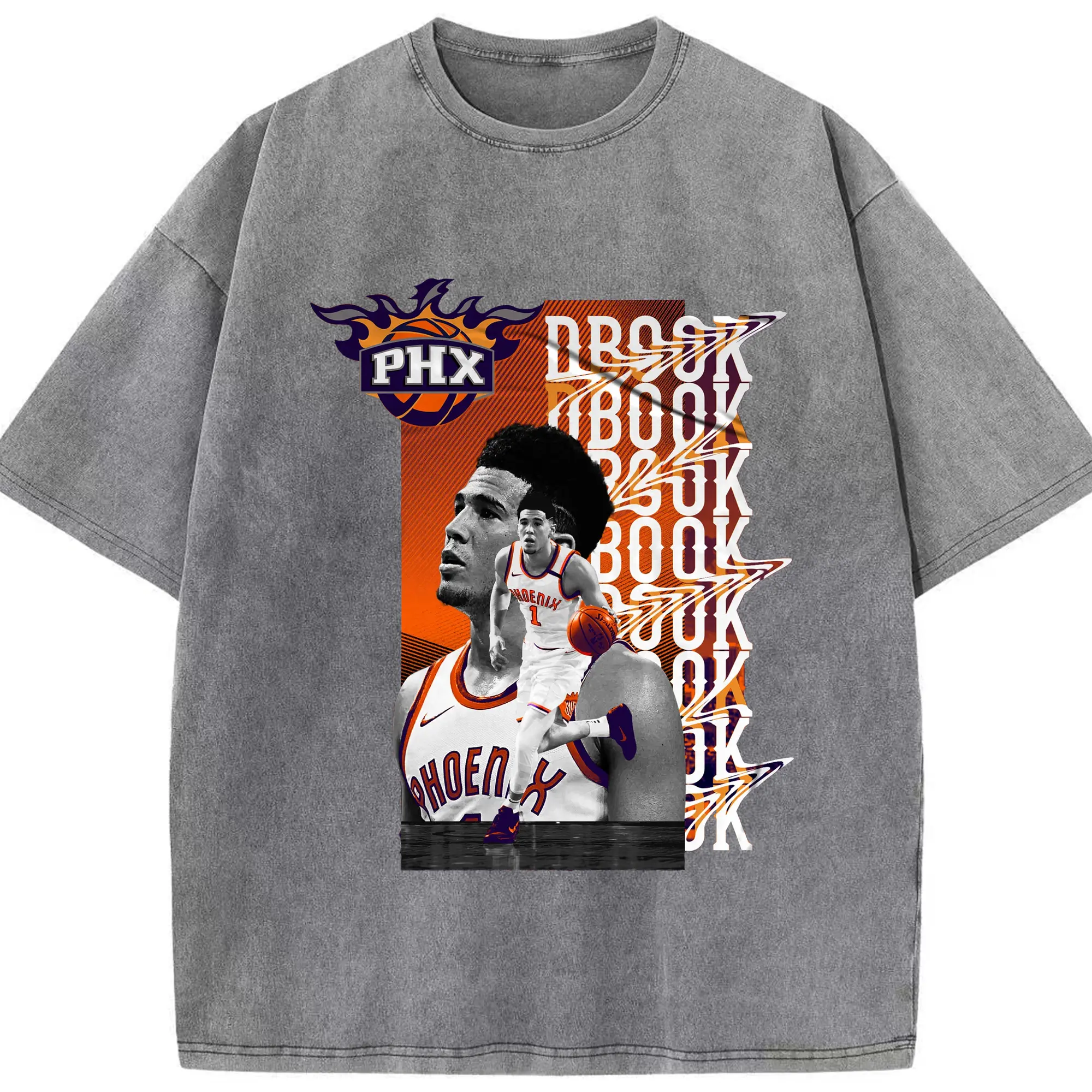 Phoenix Suns Devin Booker Retro Collage Basketball Shirt - Washed Vintage Look 230g Cotton Oversized T-Shirt With Front Heat Transfer Print – Soft, Lightweight, Stylish Fit – Comfortable Casual Wear For Sports & Everyday Use
