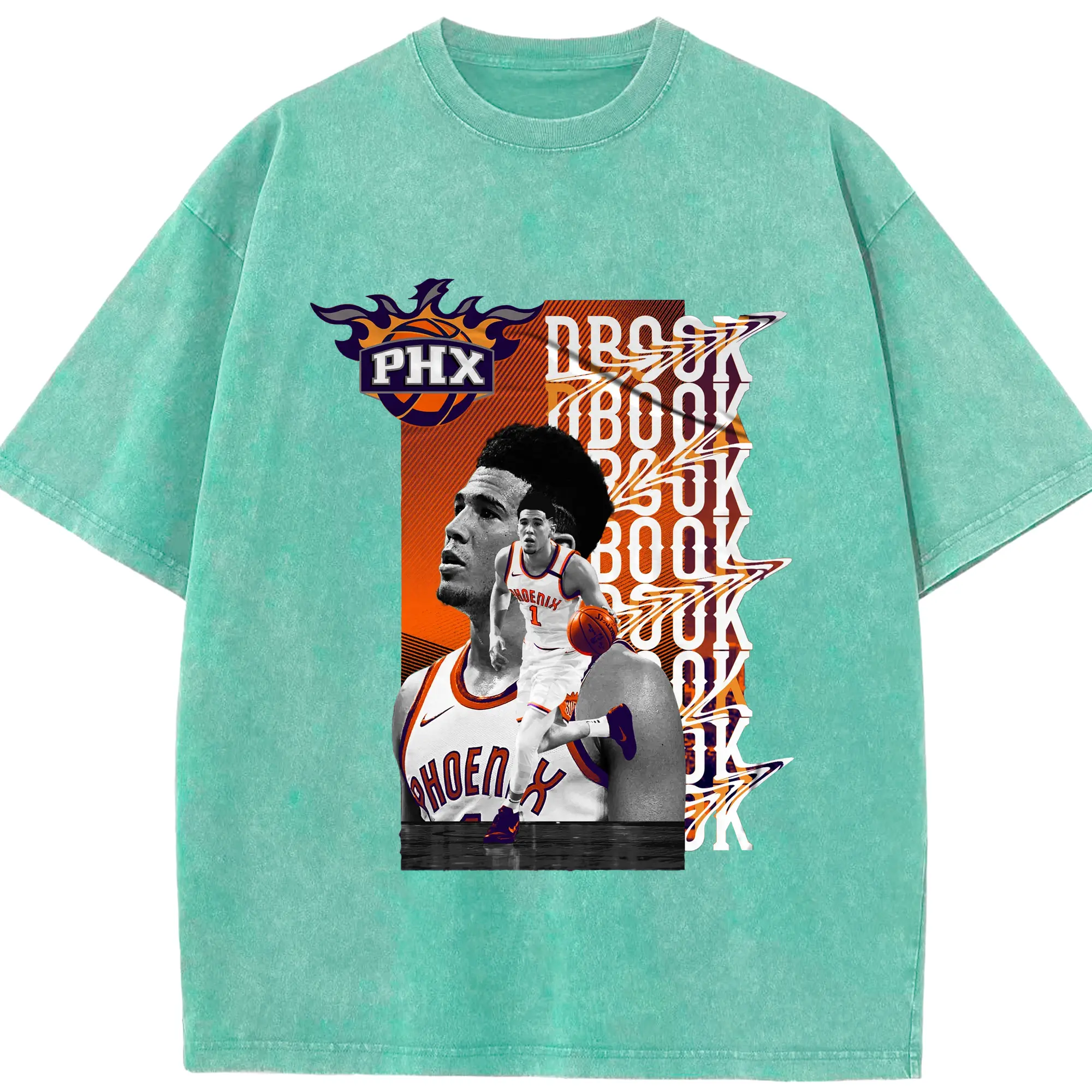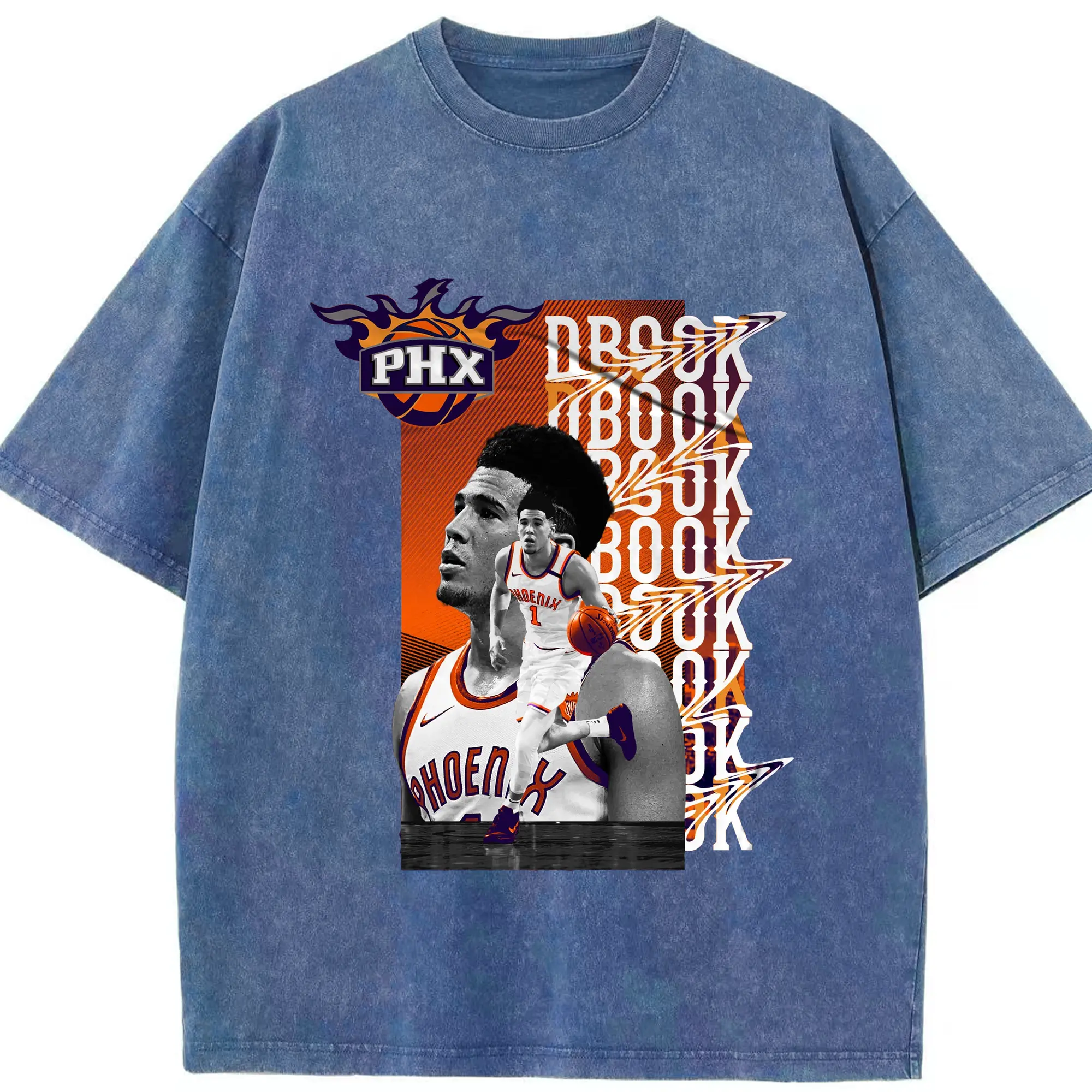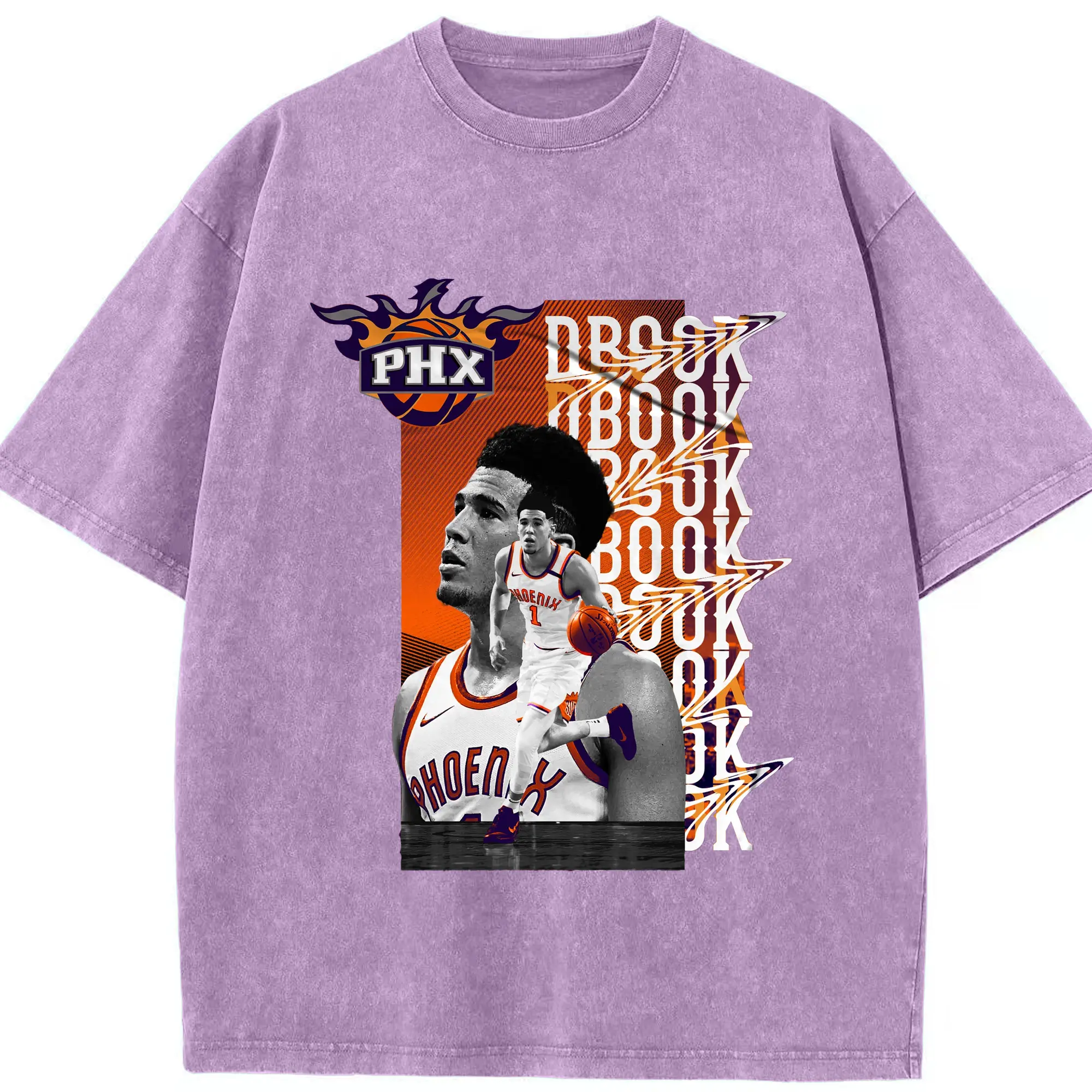 Phoenix Suns Devin Booker Retro Collage Basketball Shirt - Washed Vintage Look 230g Cotton Oversized T-Shirt With Front Heat Transfer Print – Soft, Lightweight, Stylish Fit – Comfortable Casual Wear For Sports & Everyday Use