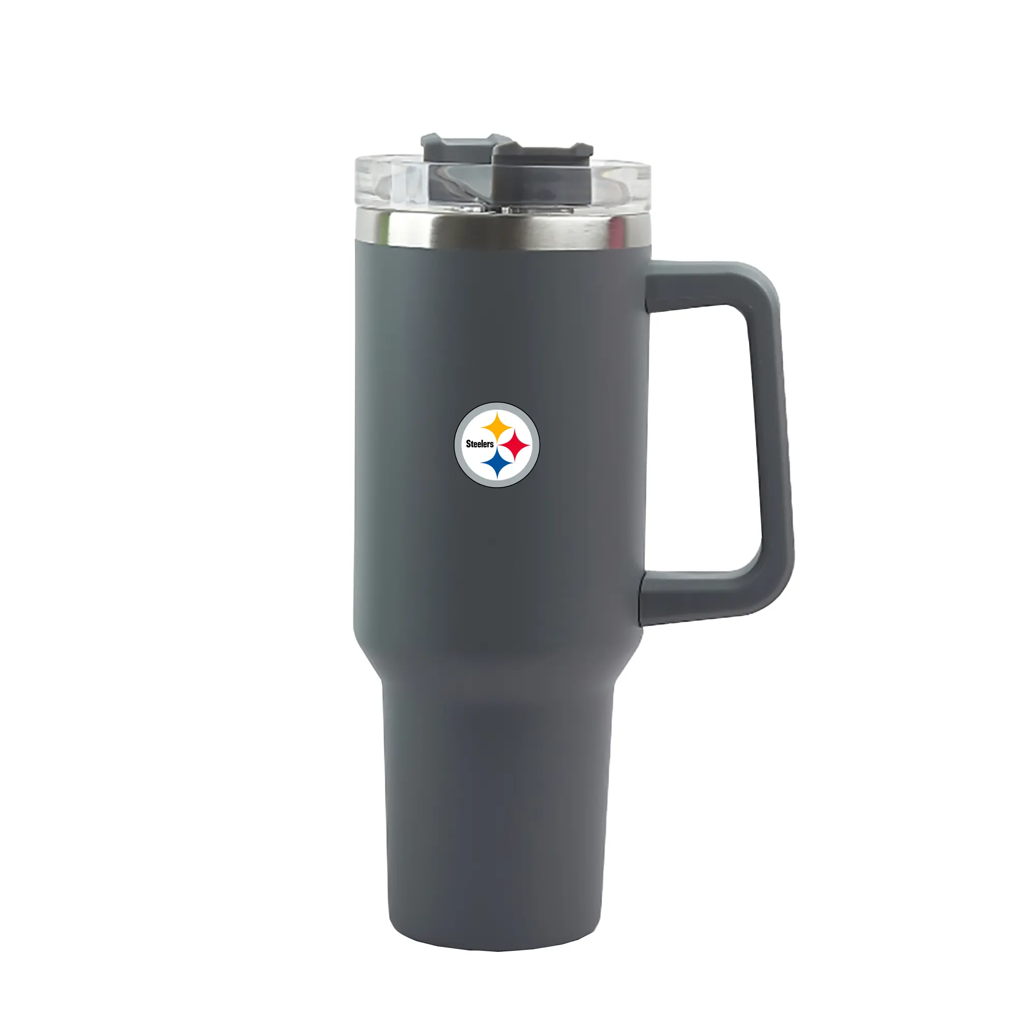 Pittsburgh Steelers Team Logo - 40oz Handle Car Tumbler – Durable Stainless Steel Travel Mug With UV Print – Double Wall Insulated, Fits Most Car Cup Holders