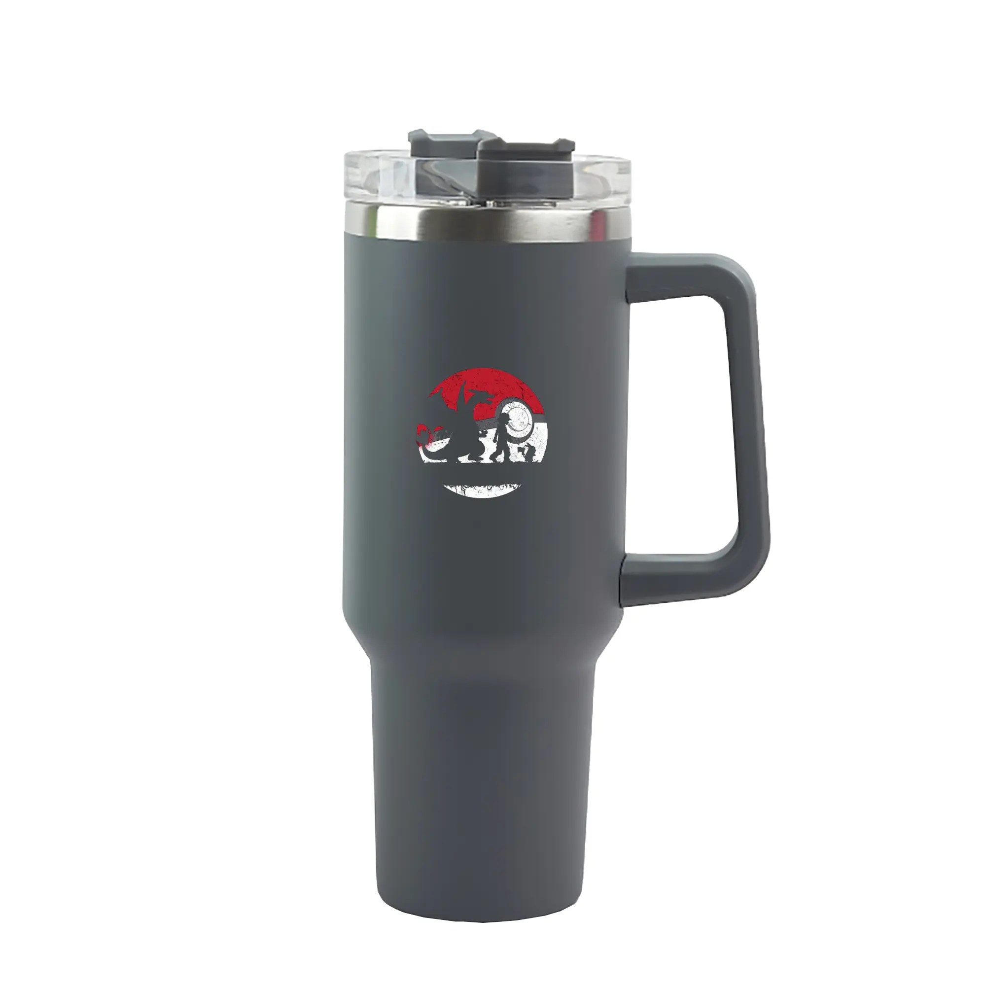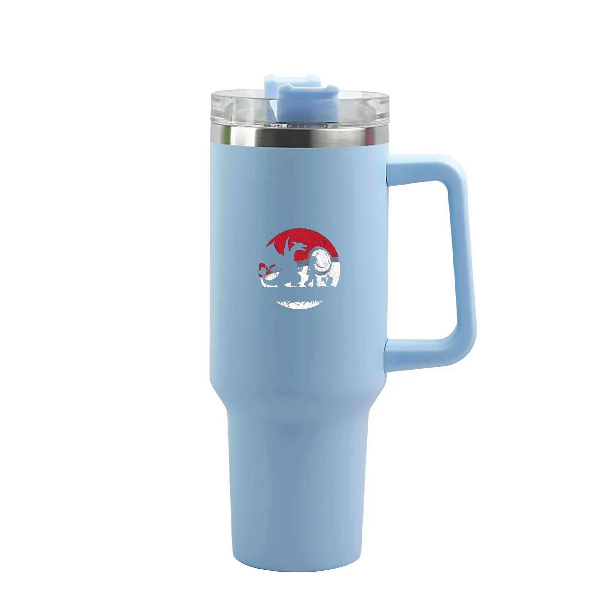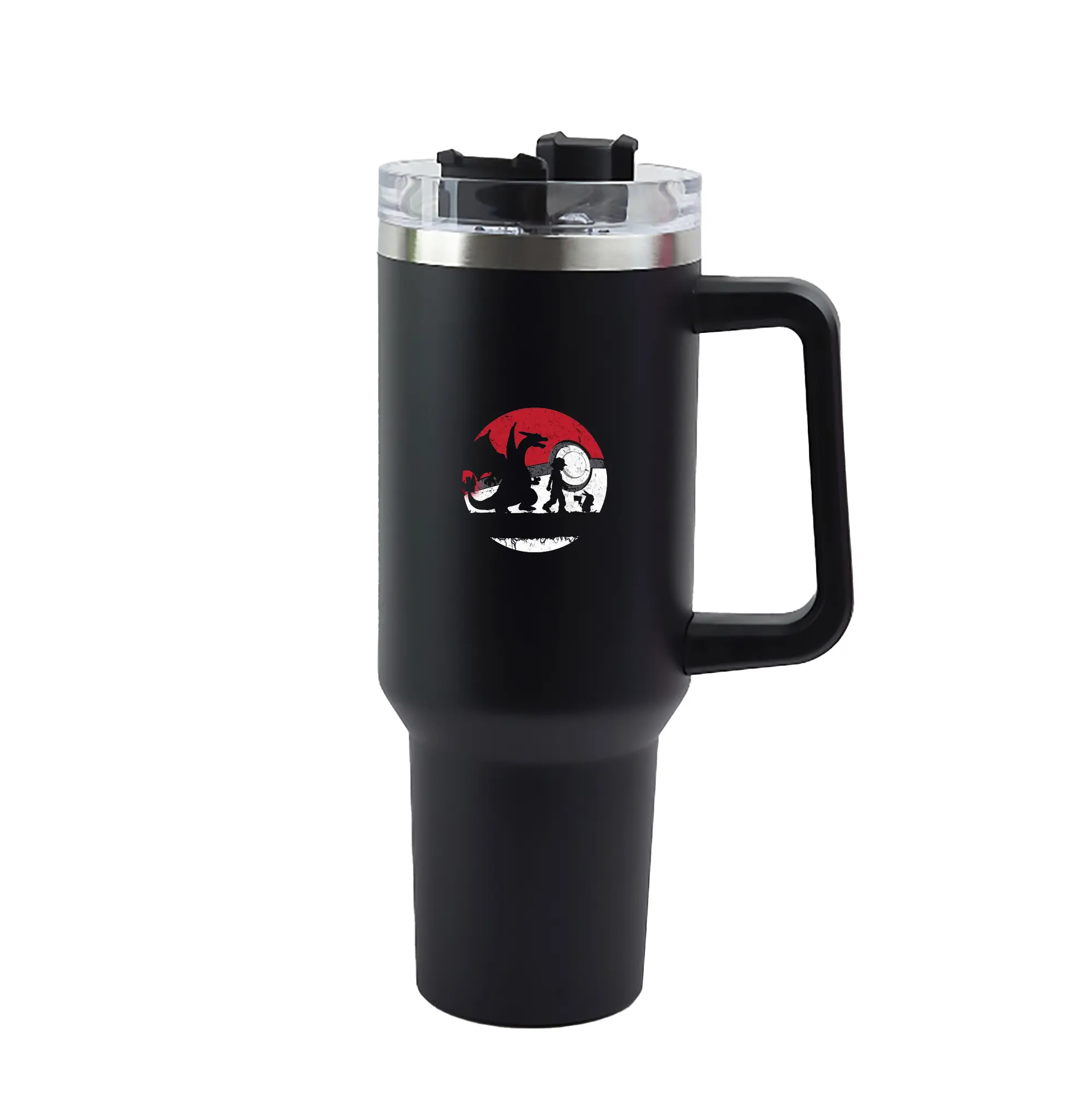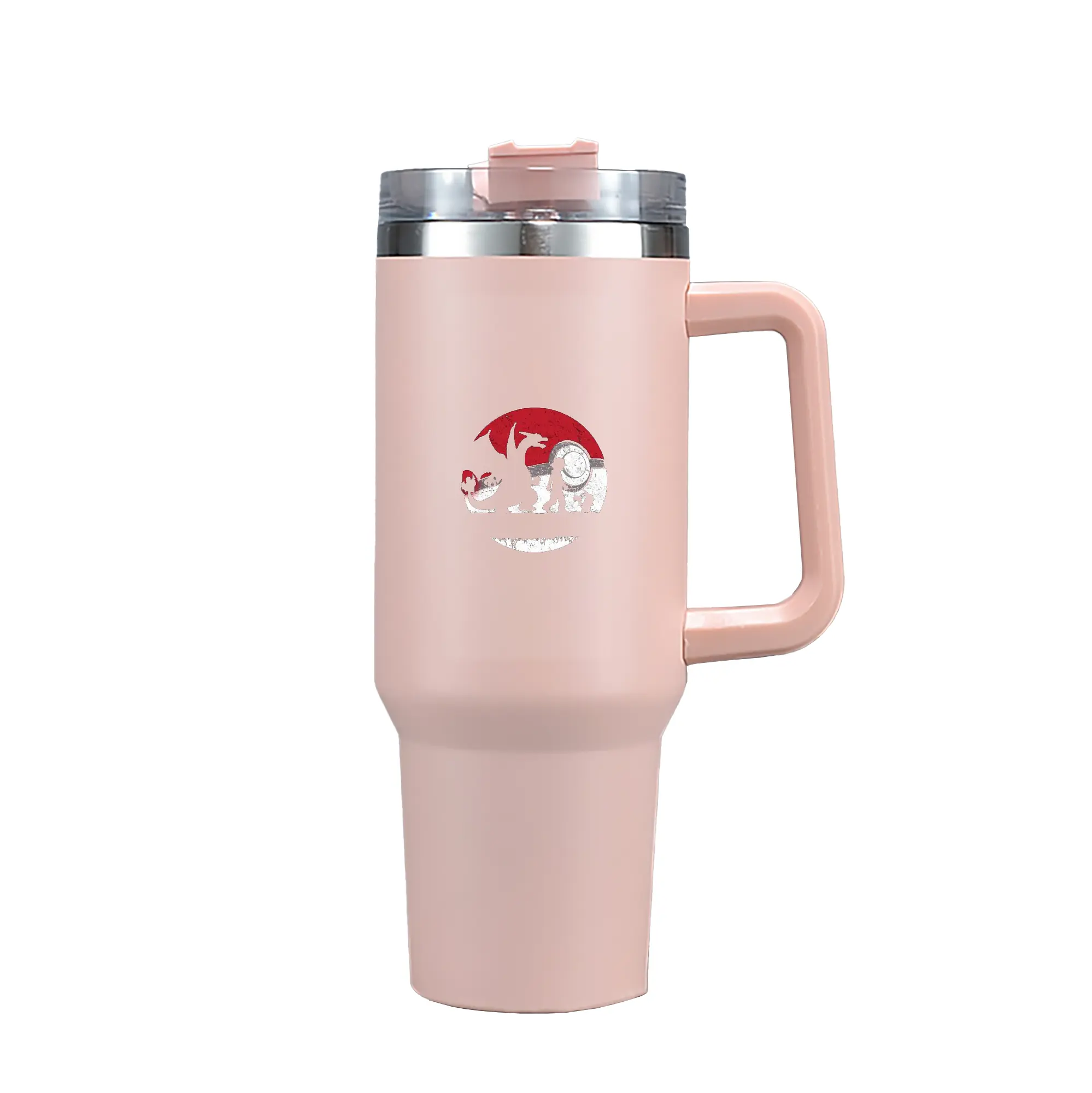 Pokémon Charizard & Trainer Retro DIY - 40oz Handle Car Tumbler – Durable Stainless Steel Travel Mug With UV Print – Double Wall Insulated, Fits Most Car Cup Holders