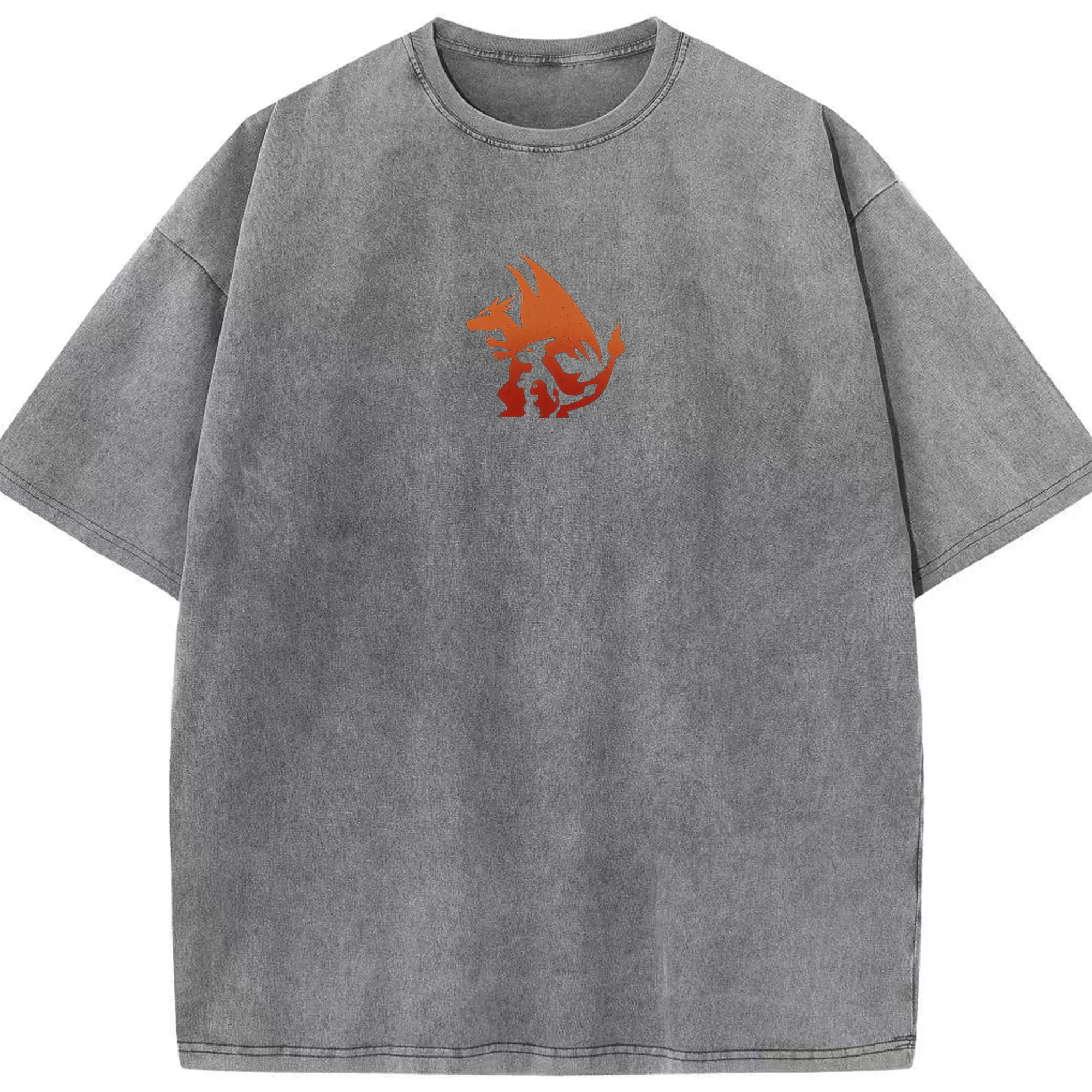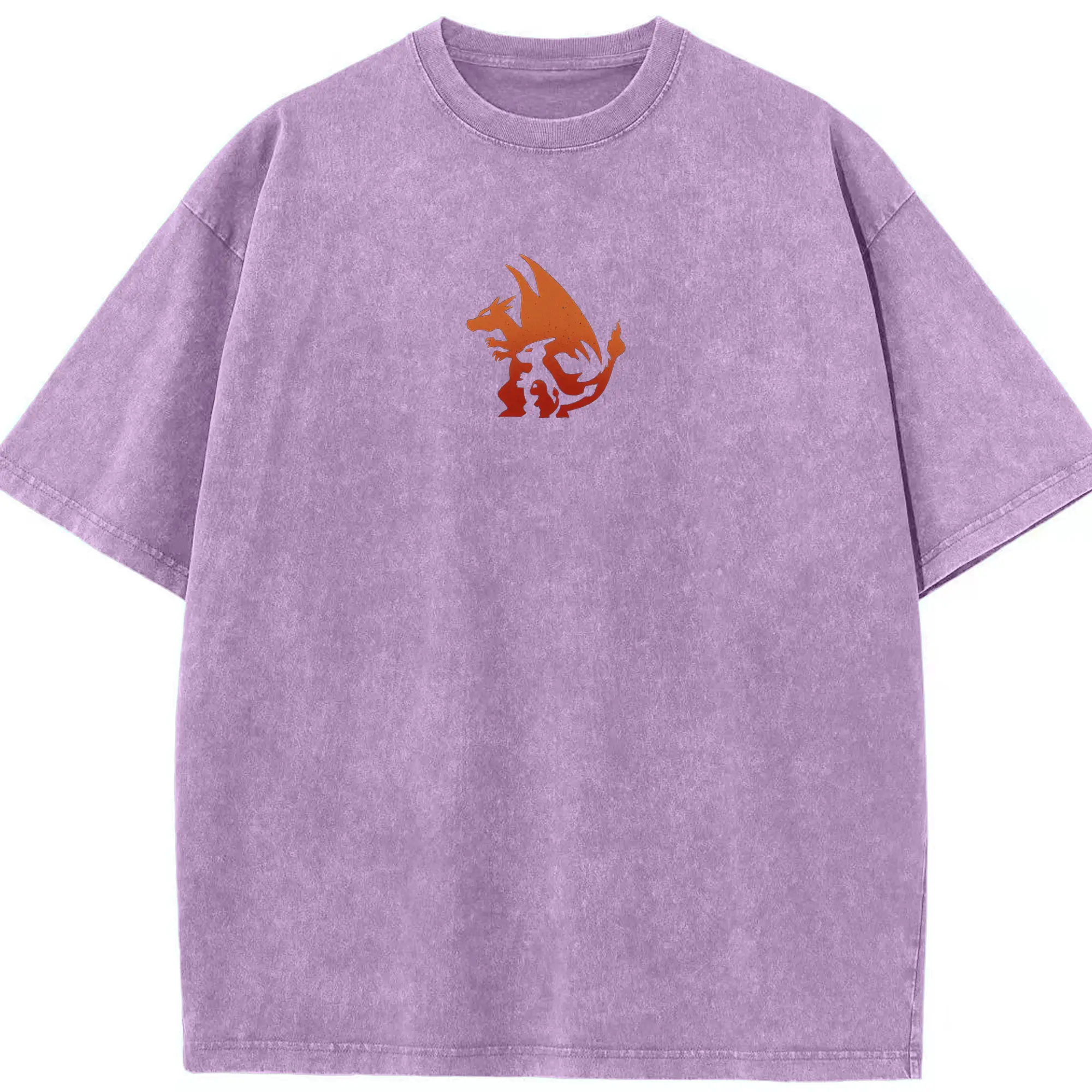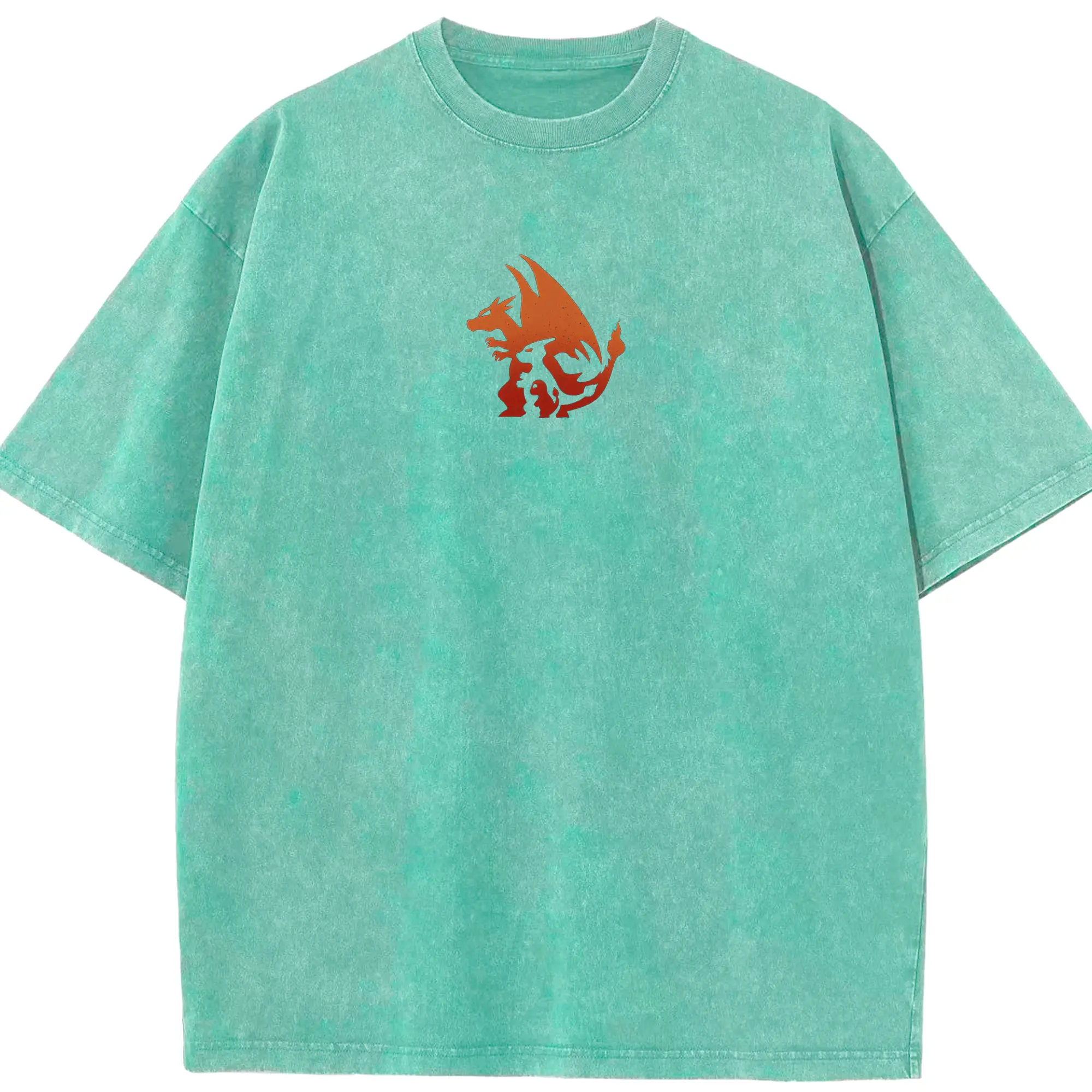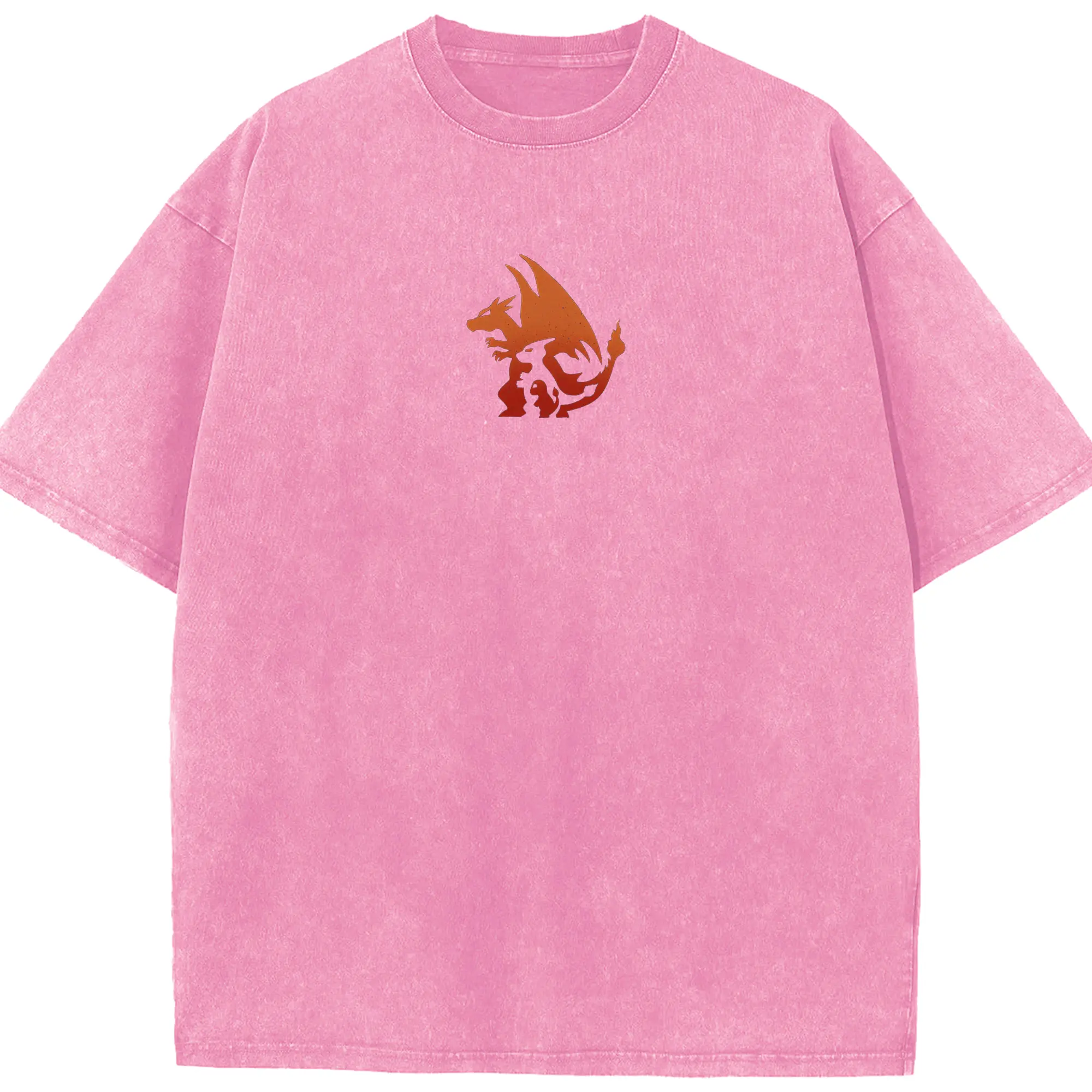 Pokémon Charmander Evolution Chain DIY - Washed Vintage Look 230g Cotton Oversized T-Shirt With Front Heat Transfer Print – Soft, Lightweight, Stylish Fit – Comfortable Casual Wear For Sports & Everyday Use