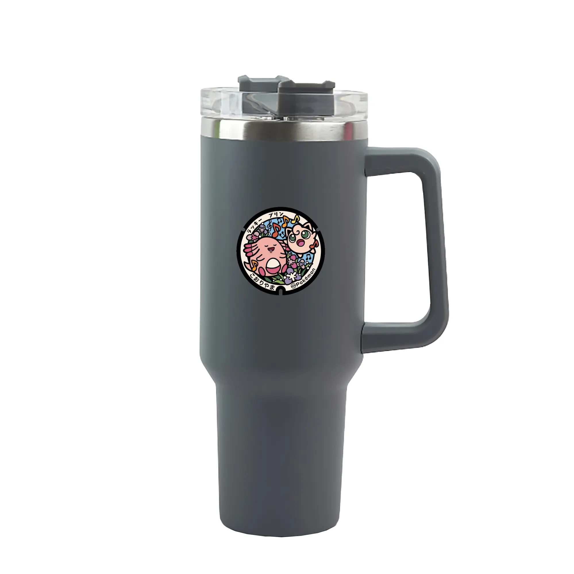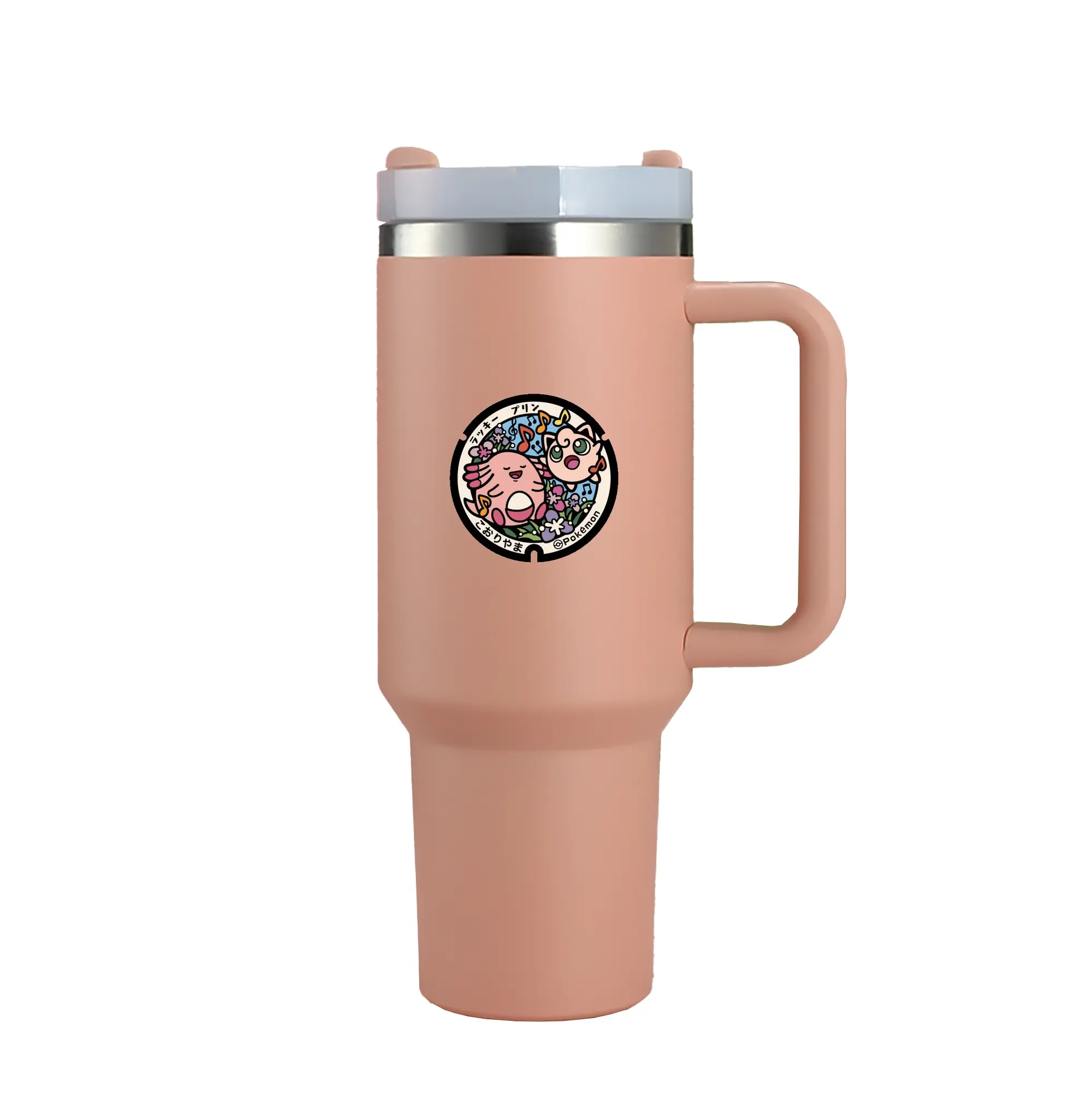 Pokémon Jigglypuff & Clefairy Cute DIY - 40oz Handle Car Tumbler – Durable Stainless Steel Travel Mug With UV Print – Double Wall Insulated, Fits Most Car Cup Holders
