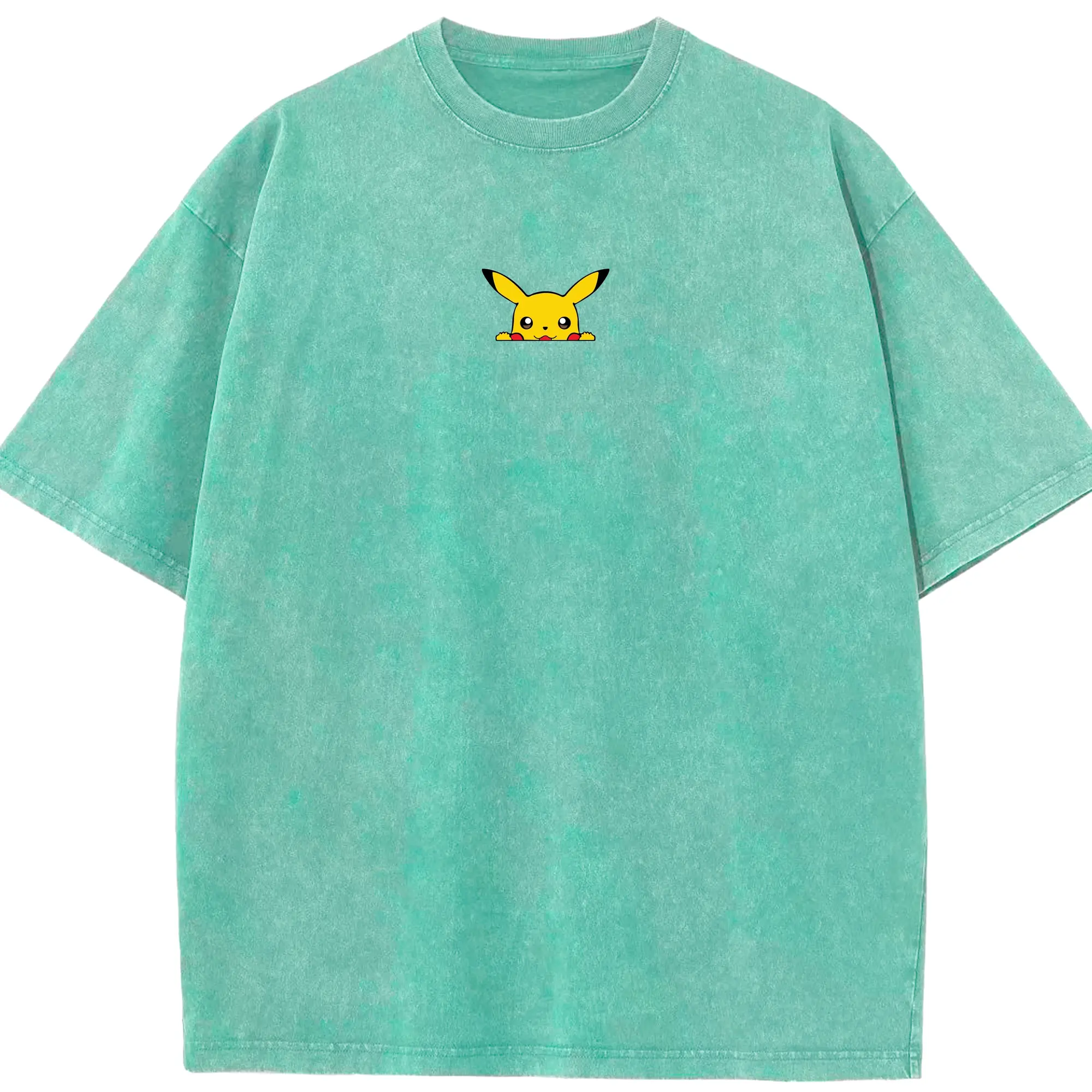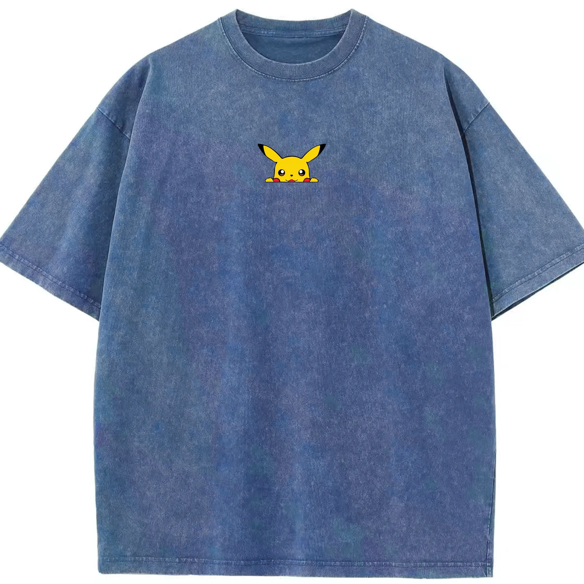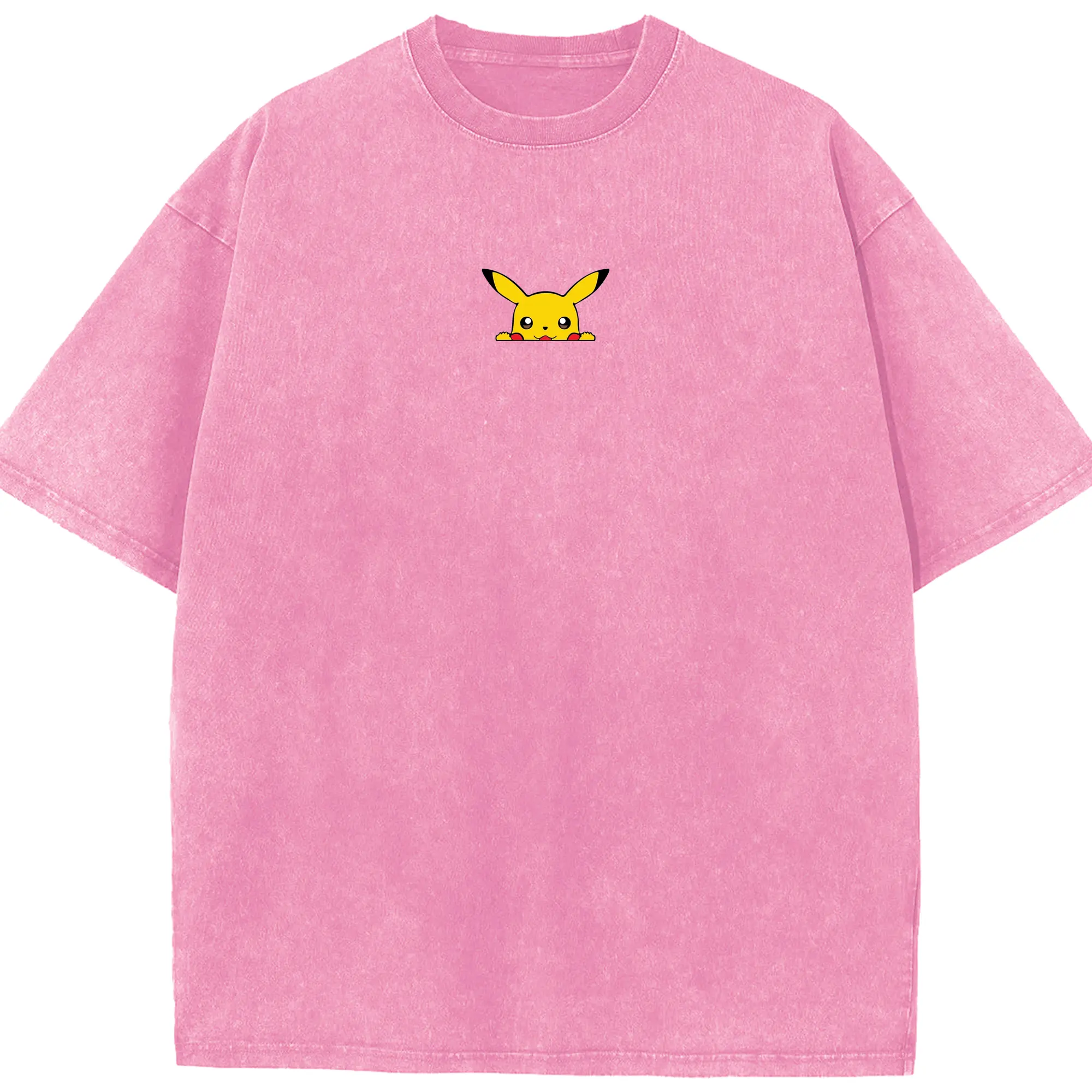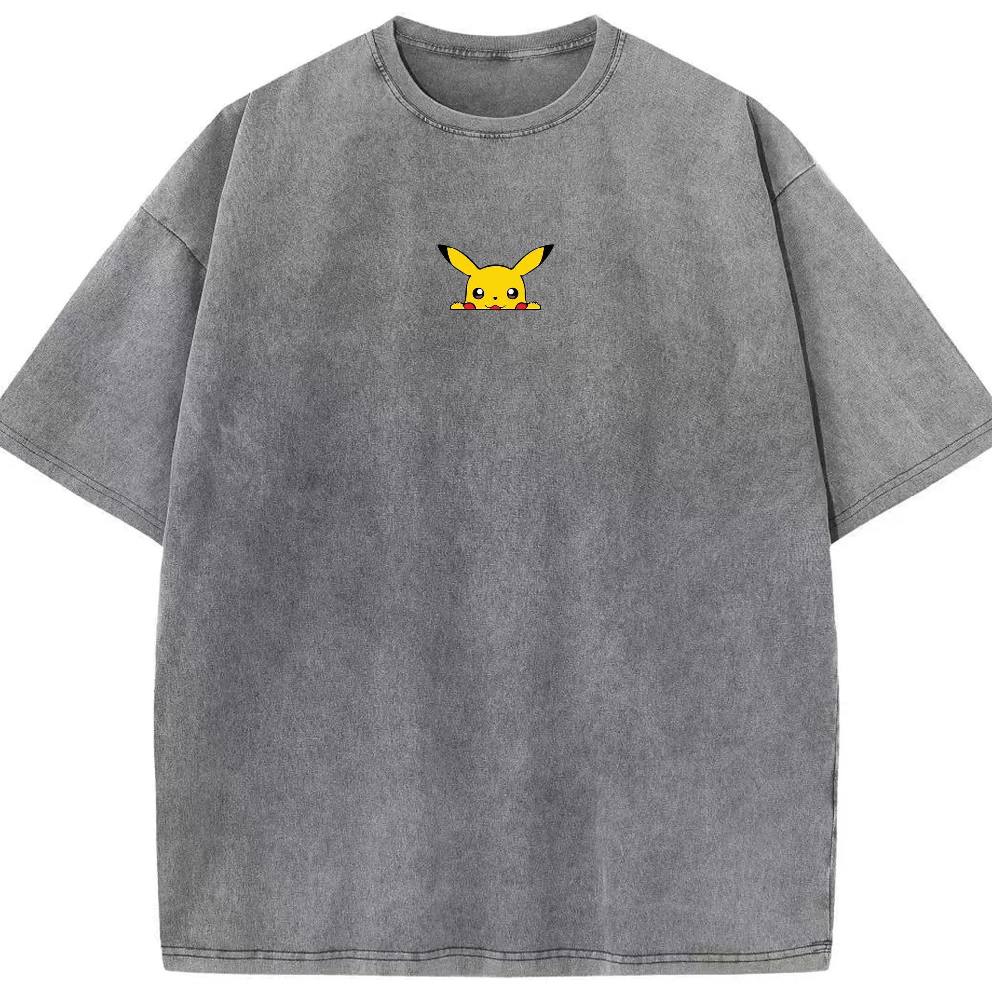 Pokémon Pikachu Peeking Cute DIY - Washed Vintage Look 230g Cotton Oversized T-Shirt With Front Heat Transfer Print – Soft, Lightweight, Stylish Fit – Comfortable Casual Wear For Sports & Everyday Use