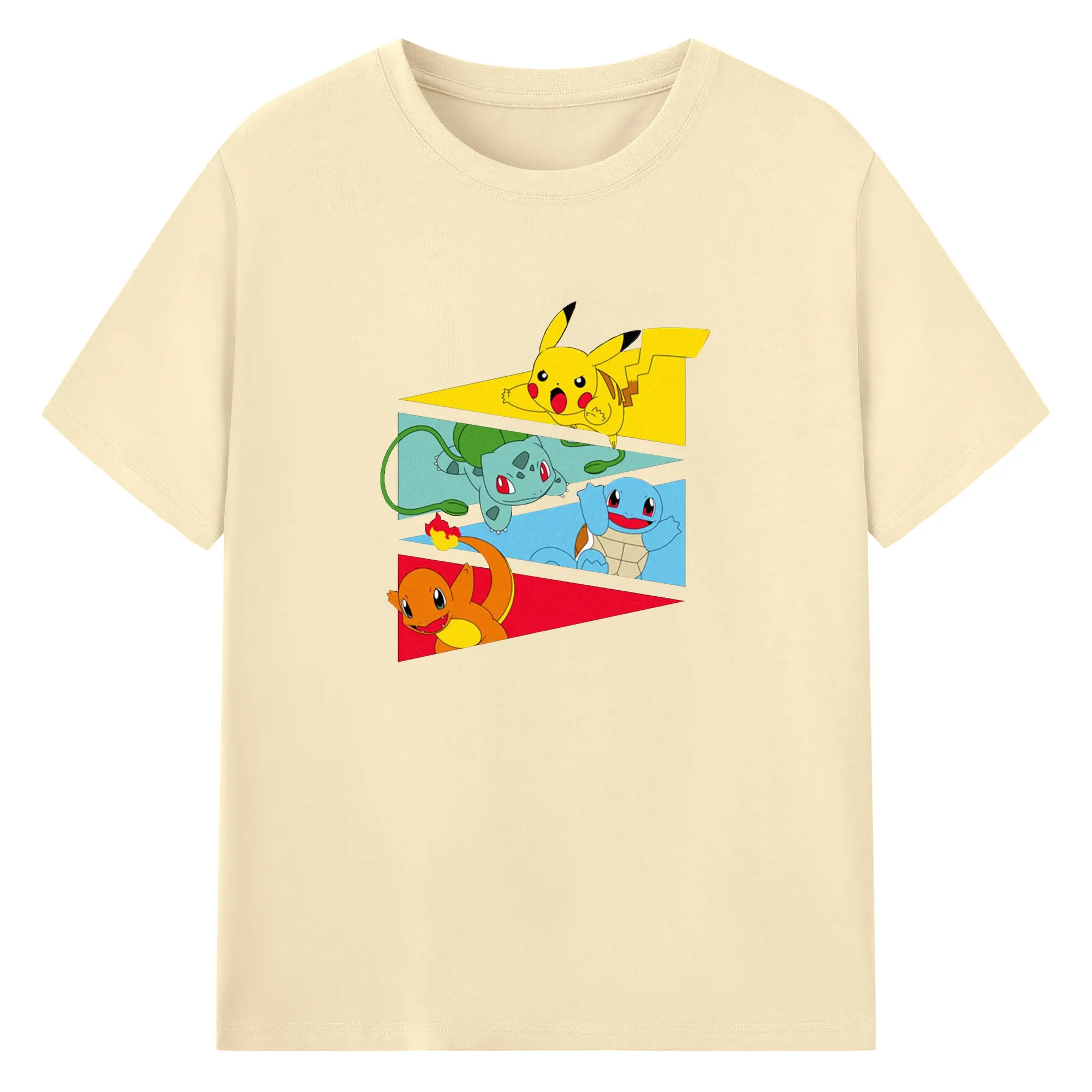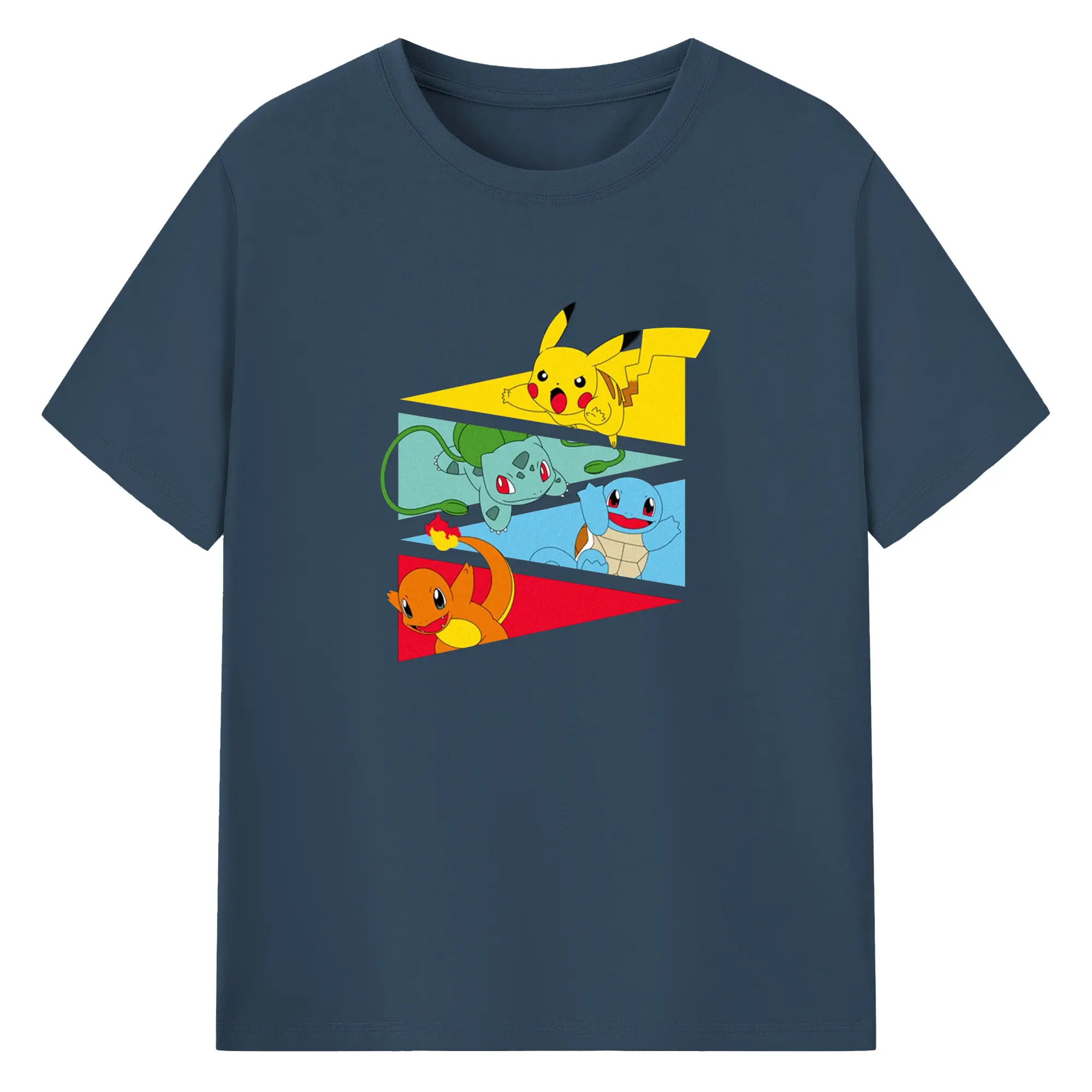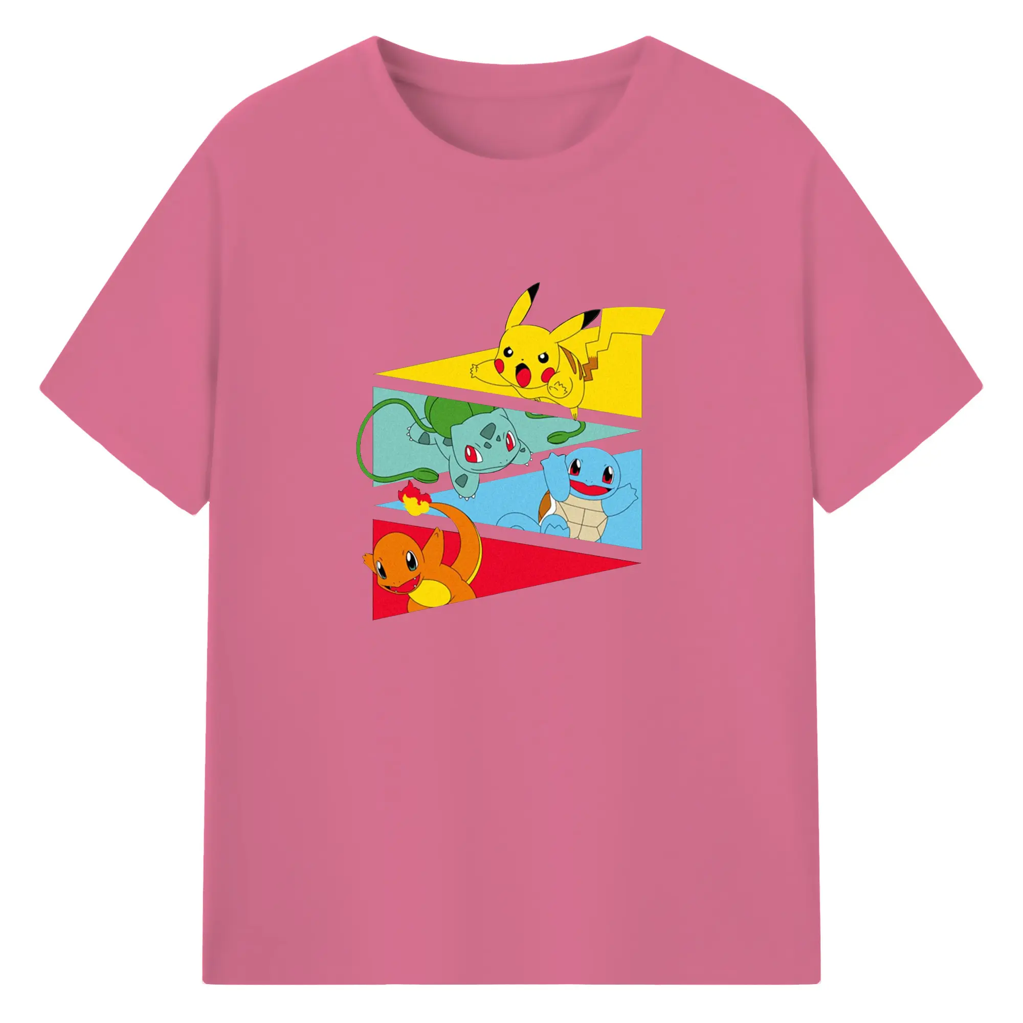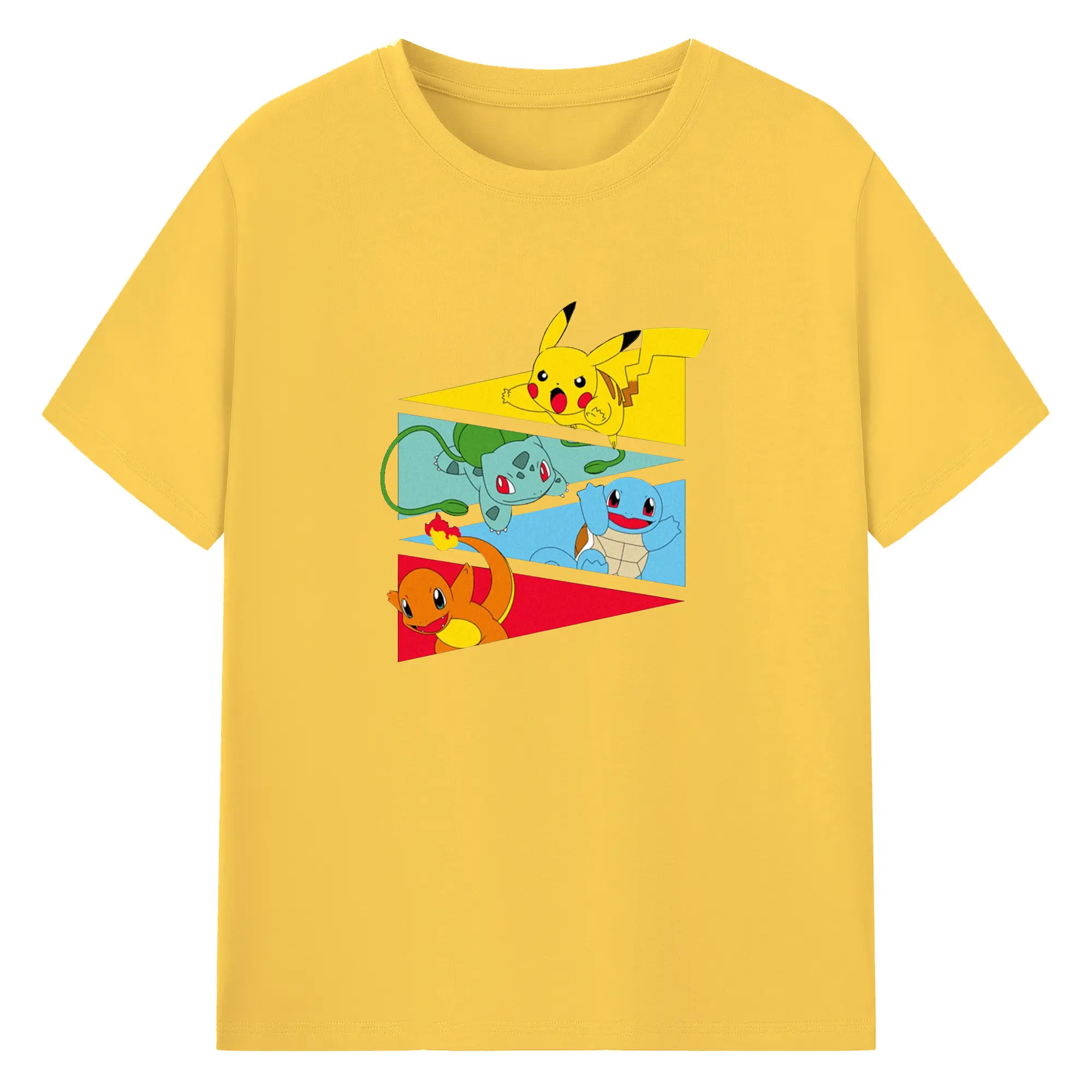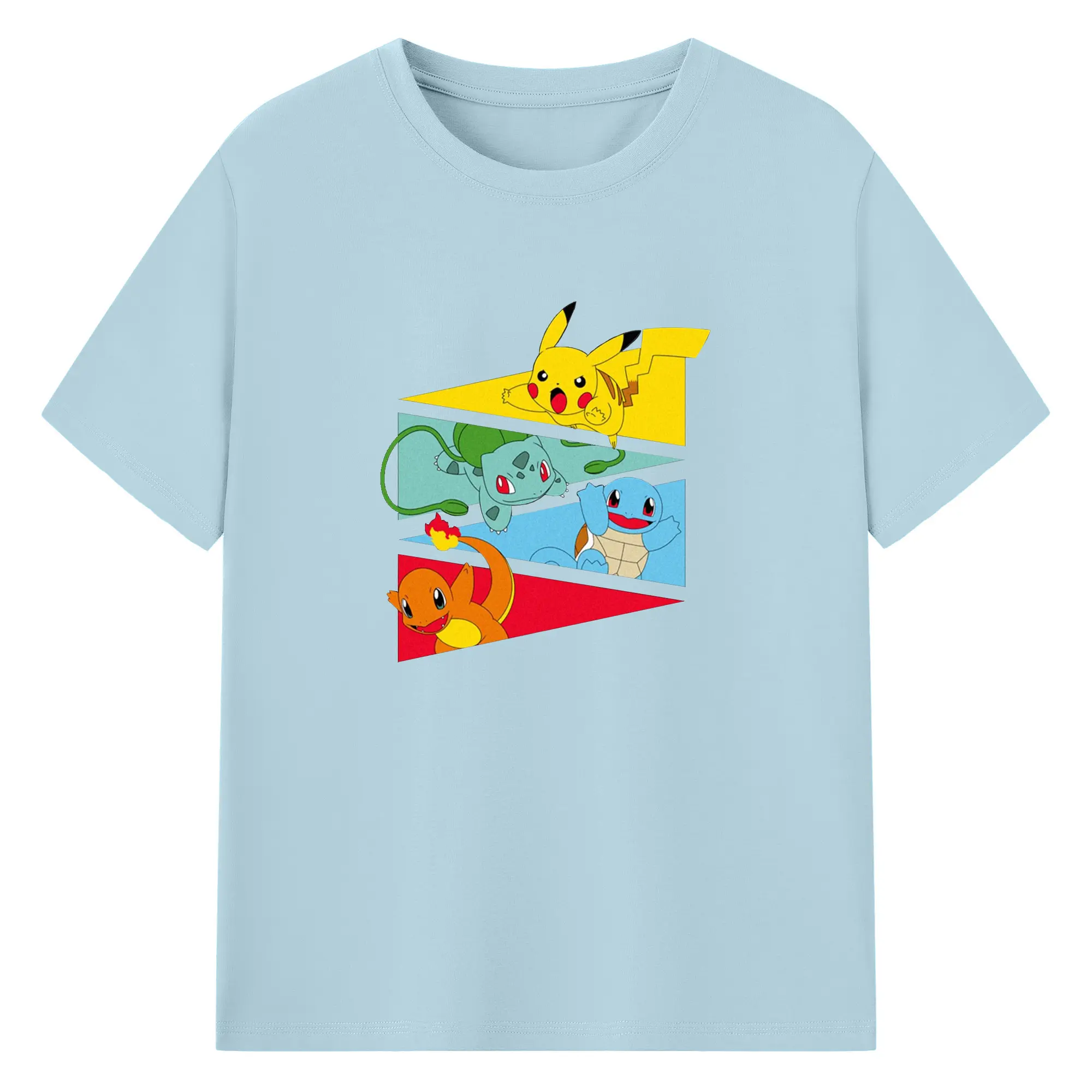 Pokémon Pikachu & Starters Color Block DIY - 180g Cotton T-Shirt With Front Heat Transfer Print – Soft, Lightweight, Fitted Design – Comfortable Casual Wear For Sports & Everyday Use