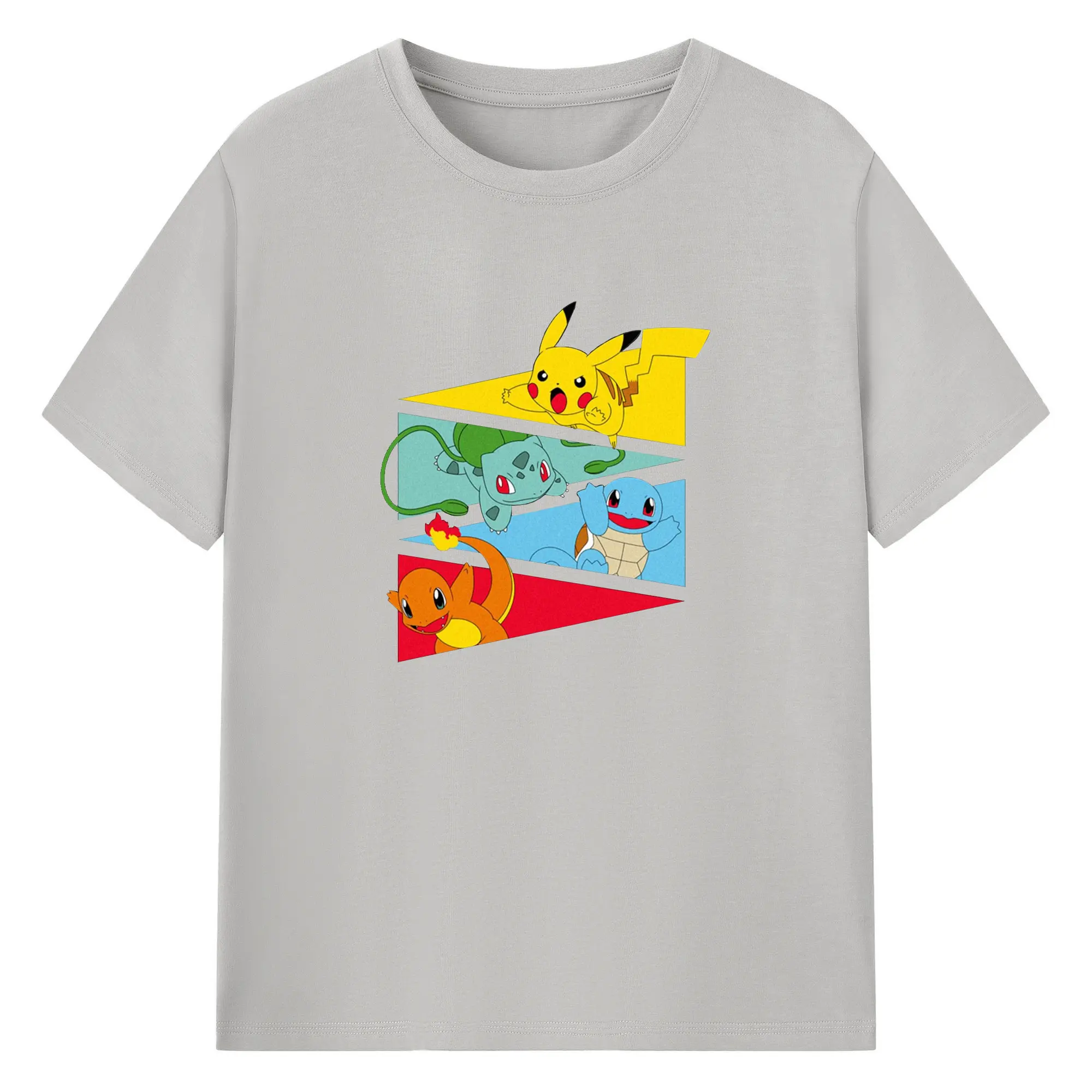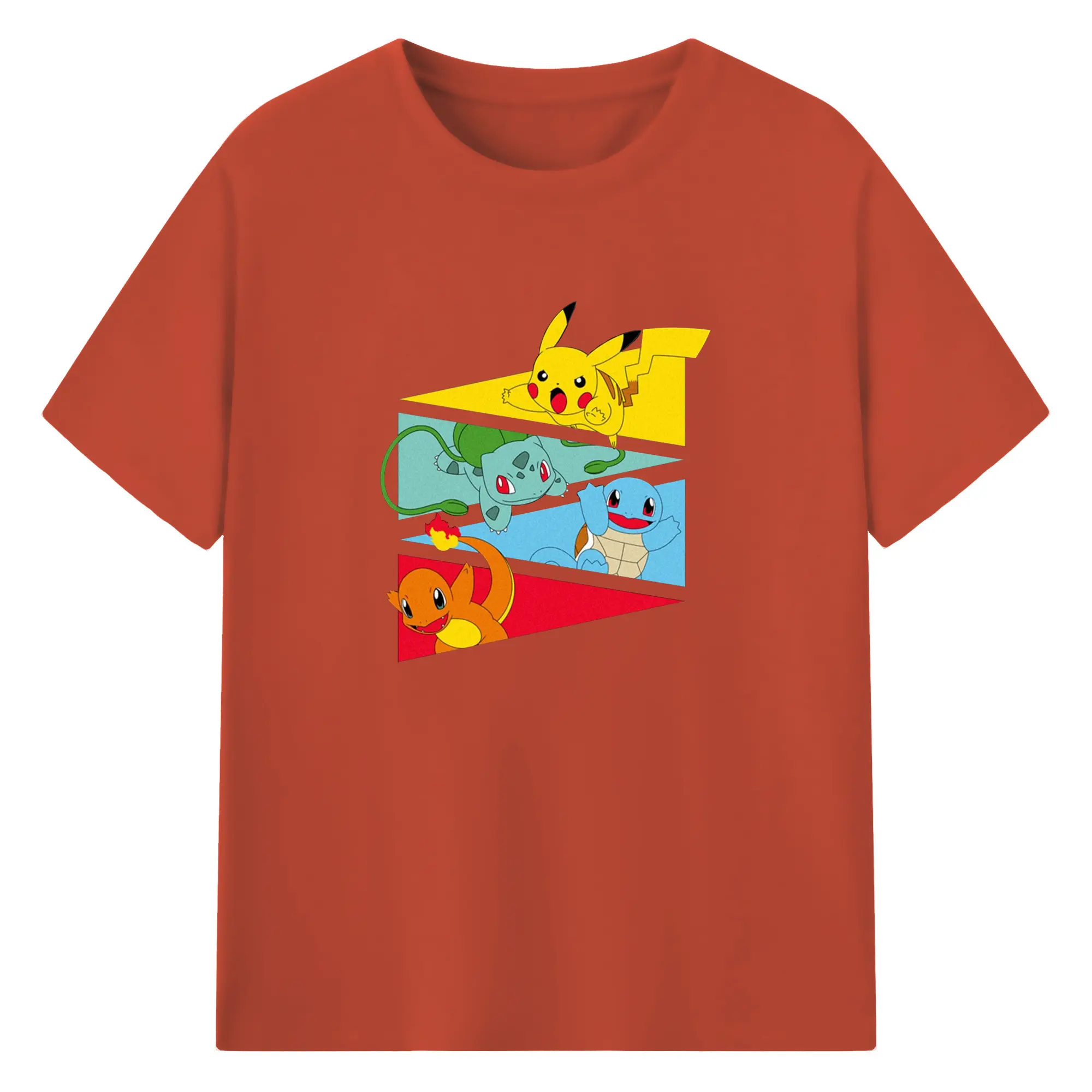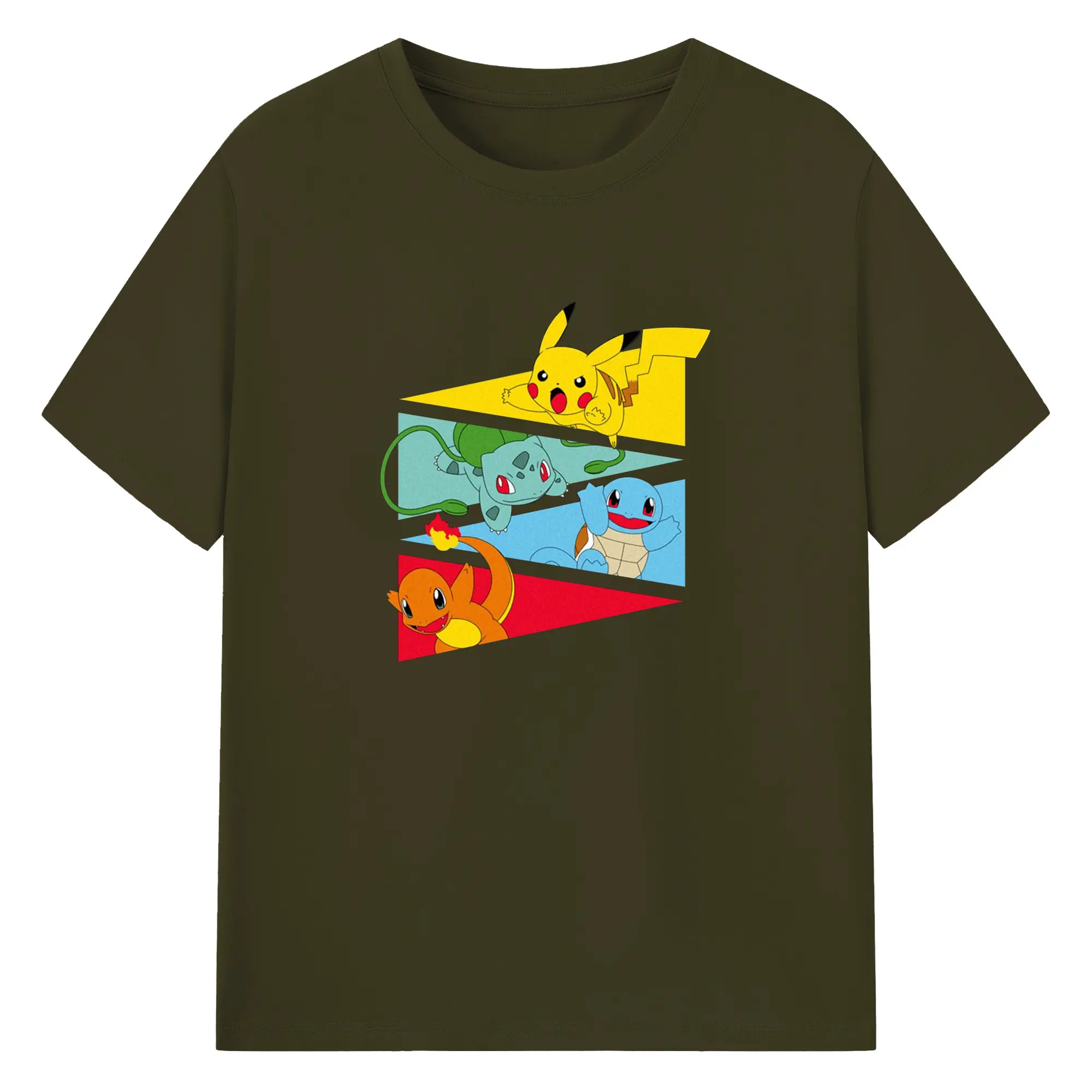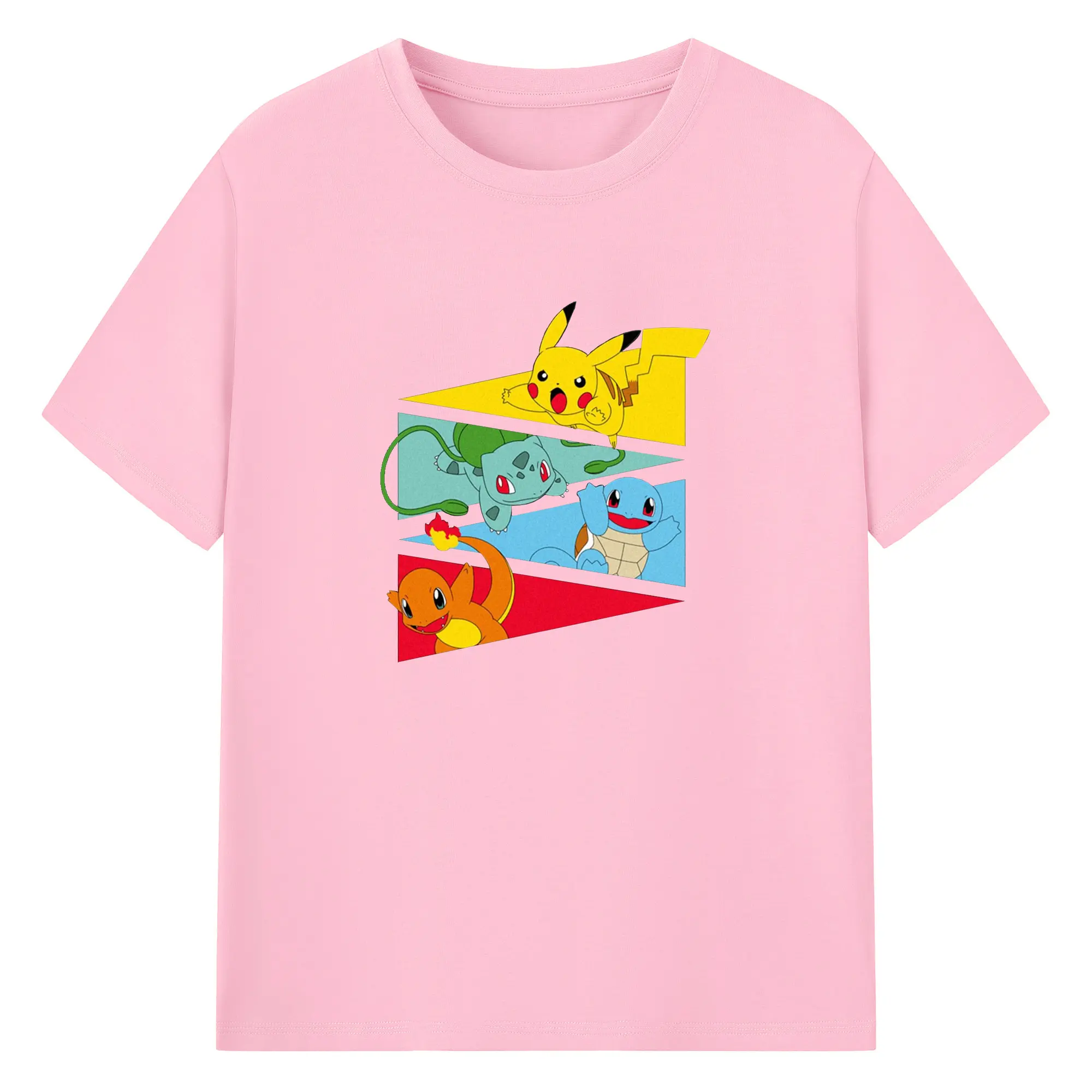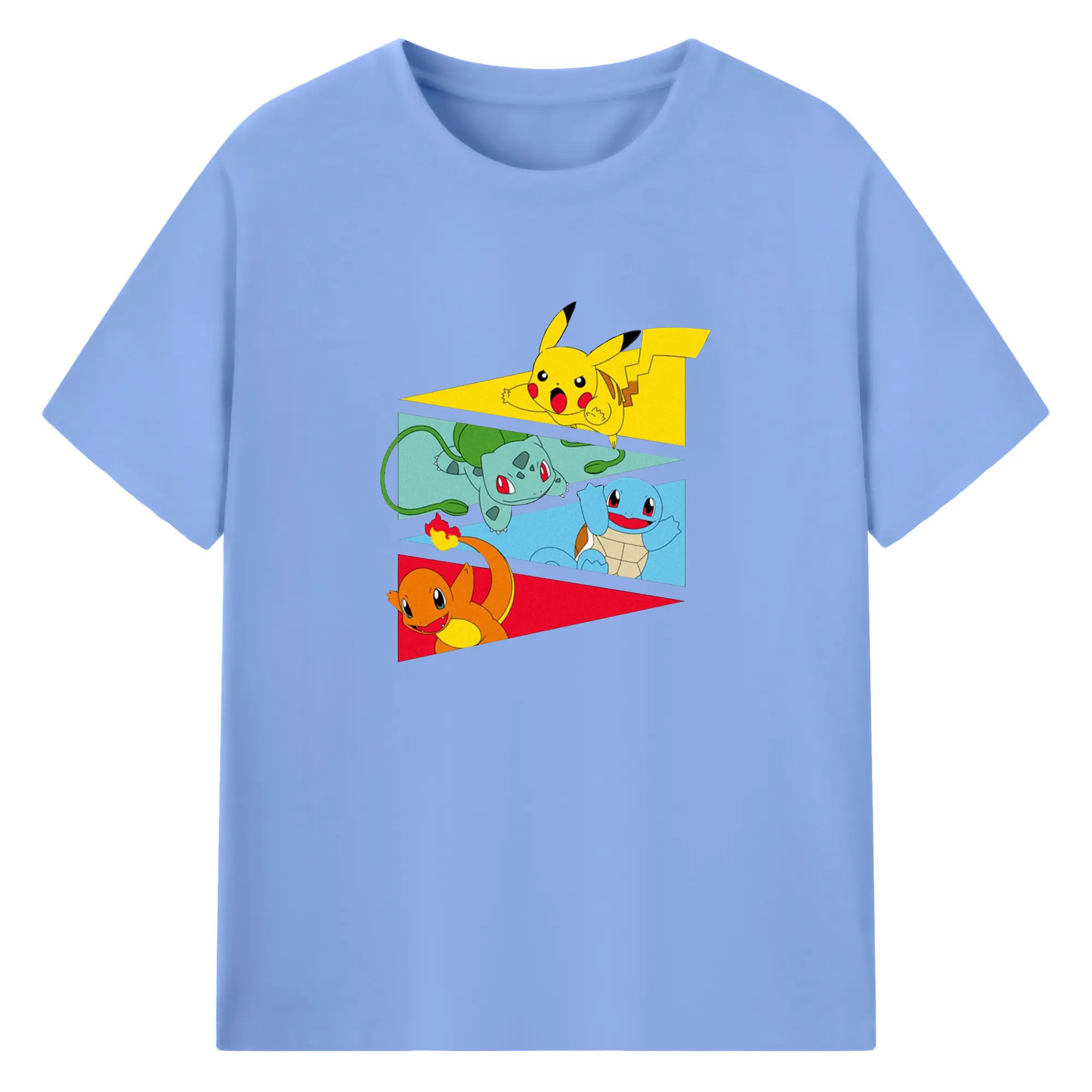 Pokémon Pikachu & Starters Color Block DIY - 180g Cotton T-Shirt With Front Heat Transfer Print – Soft, Lightweight, Fitted Design – Comfortable Casual Wear For Sports & Everyday Use