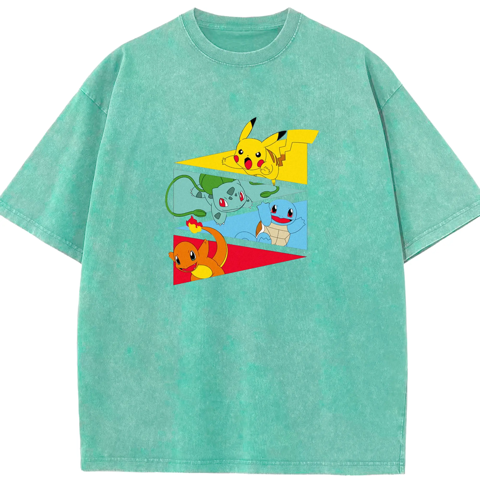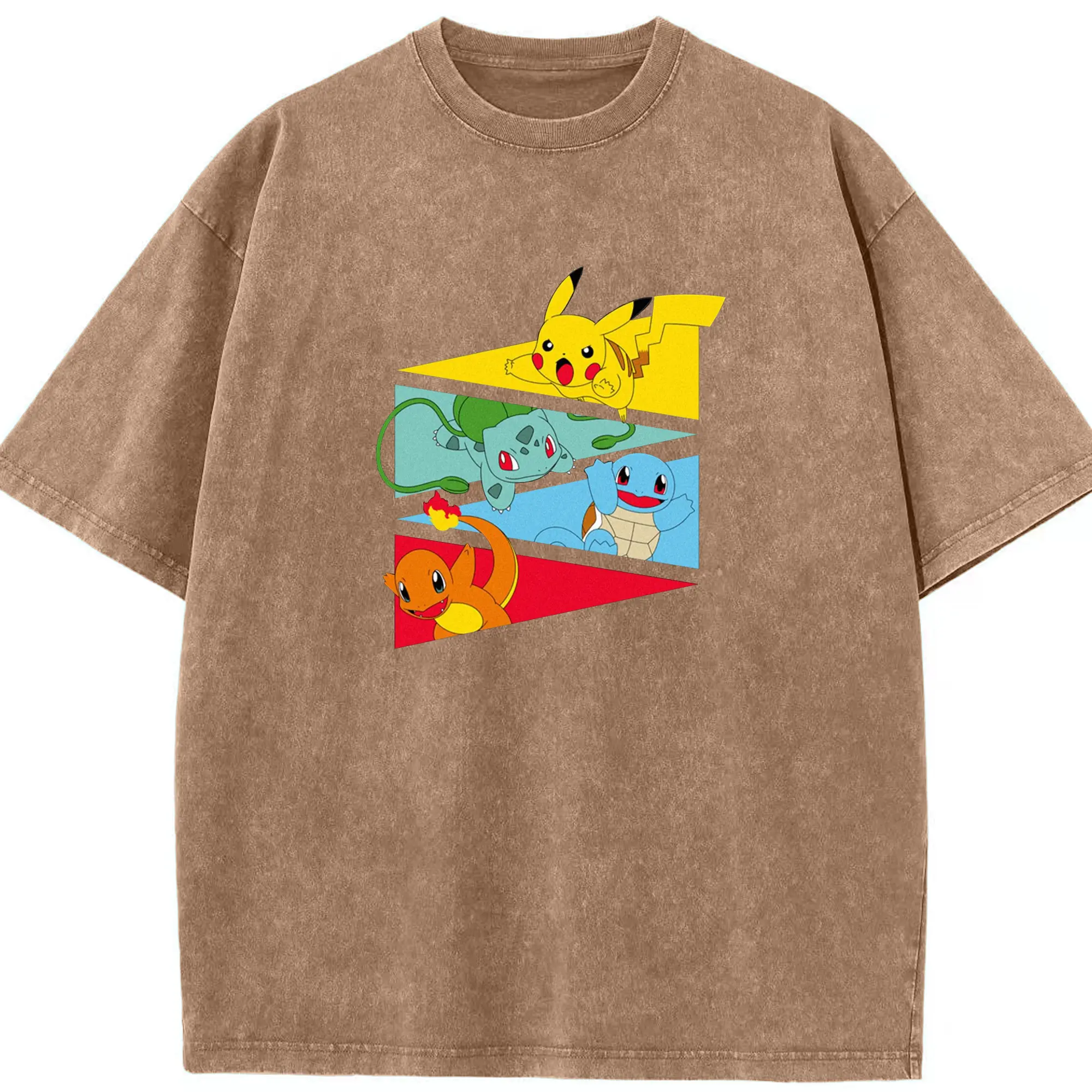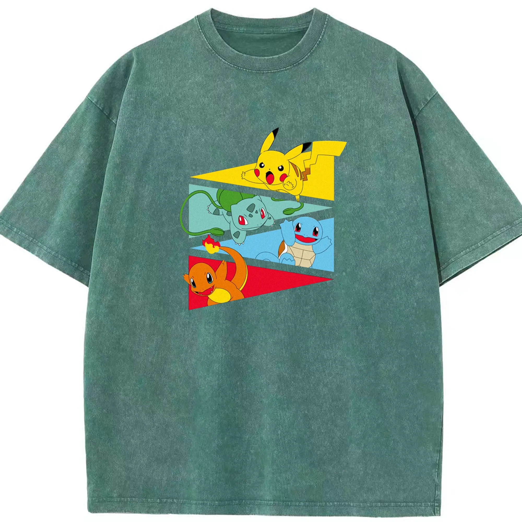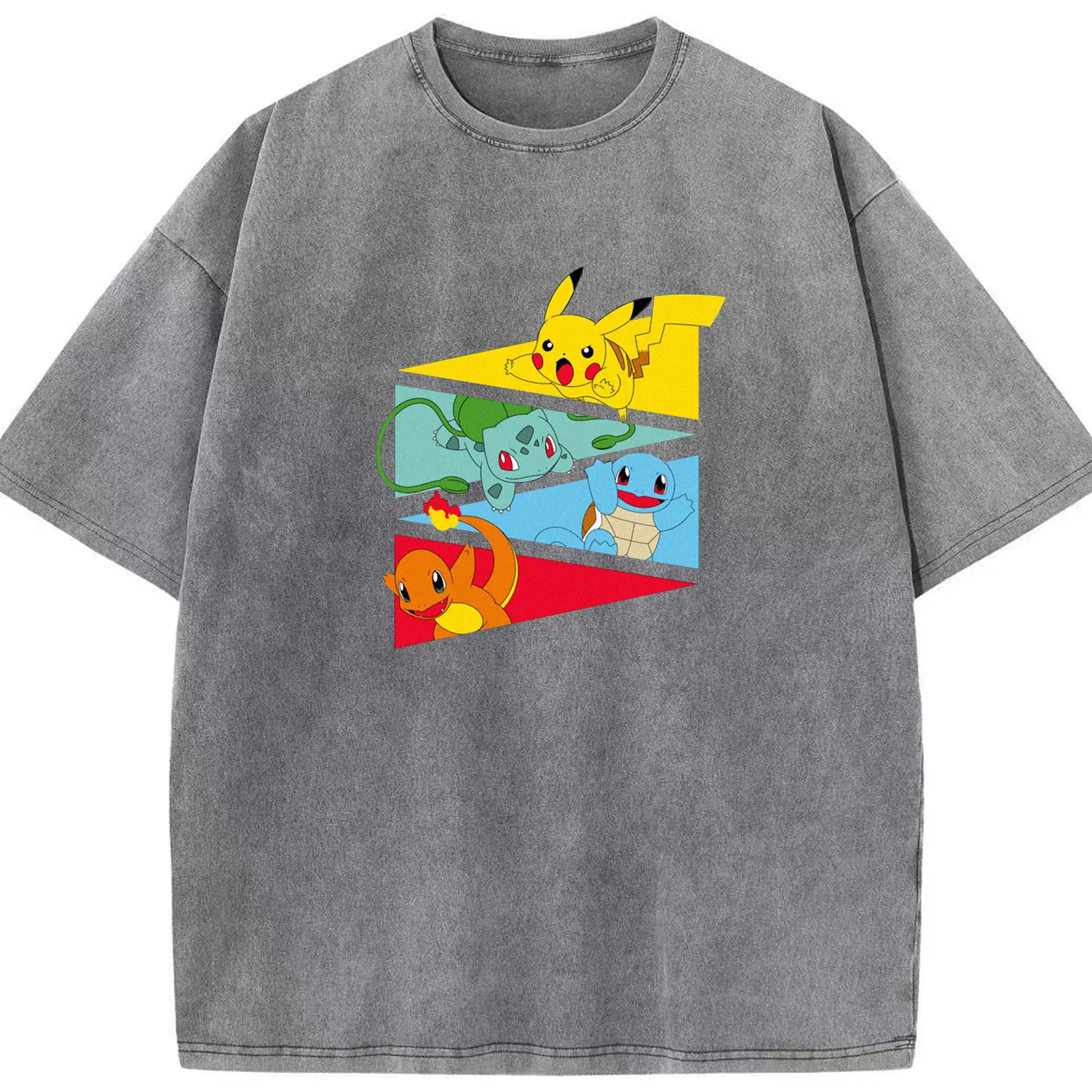 Pokémon Pikachu & Starters Color Block DIY - Washed Vintage Look 230g Cotton Oversized T-Shirt With Front Heat Transfer Print – Soft, Lightweight, Stylish Fit – Comfortable Casual Wear For Sports & Everyday Use