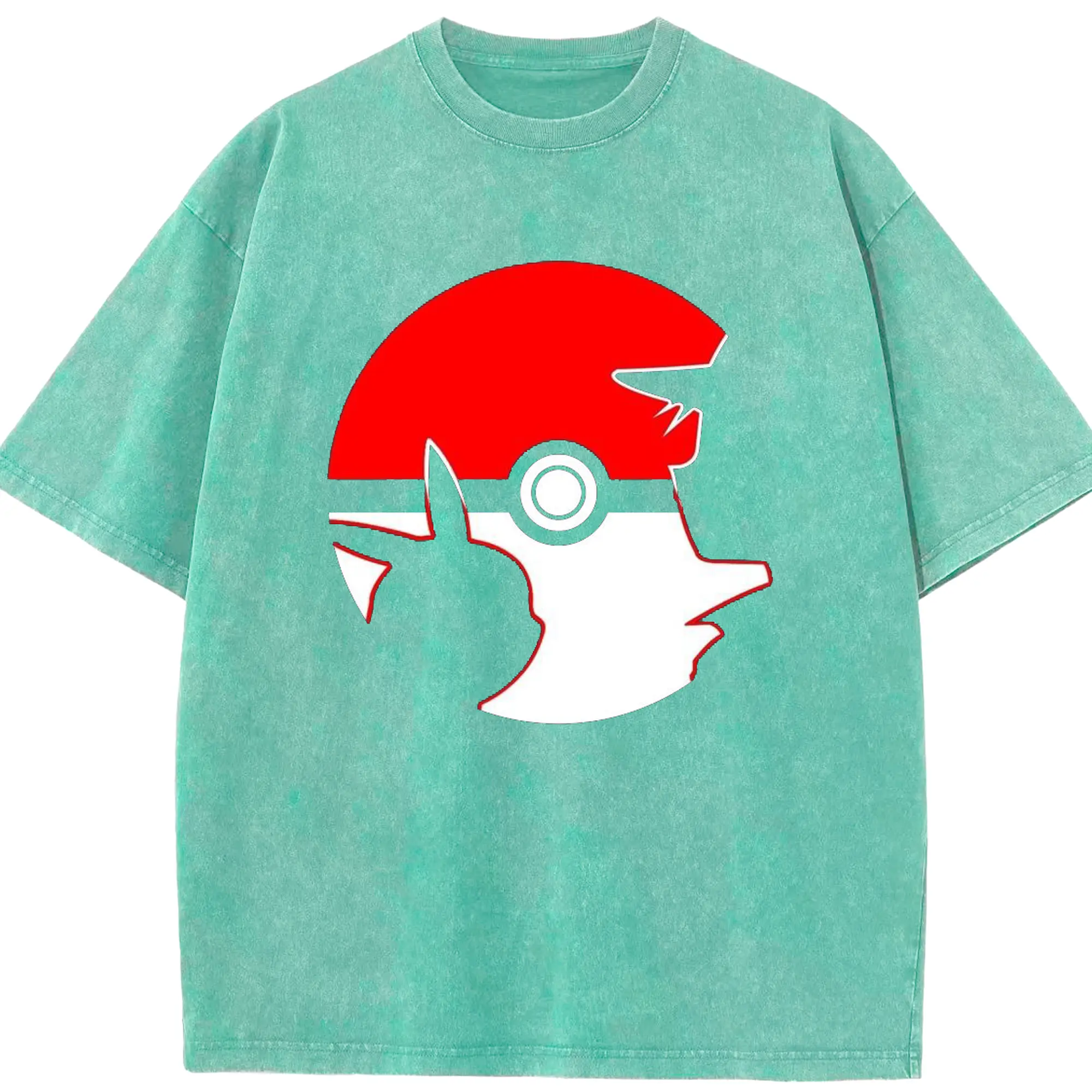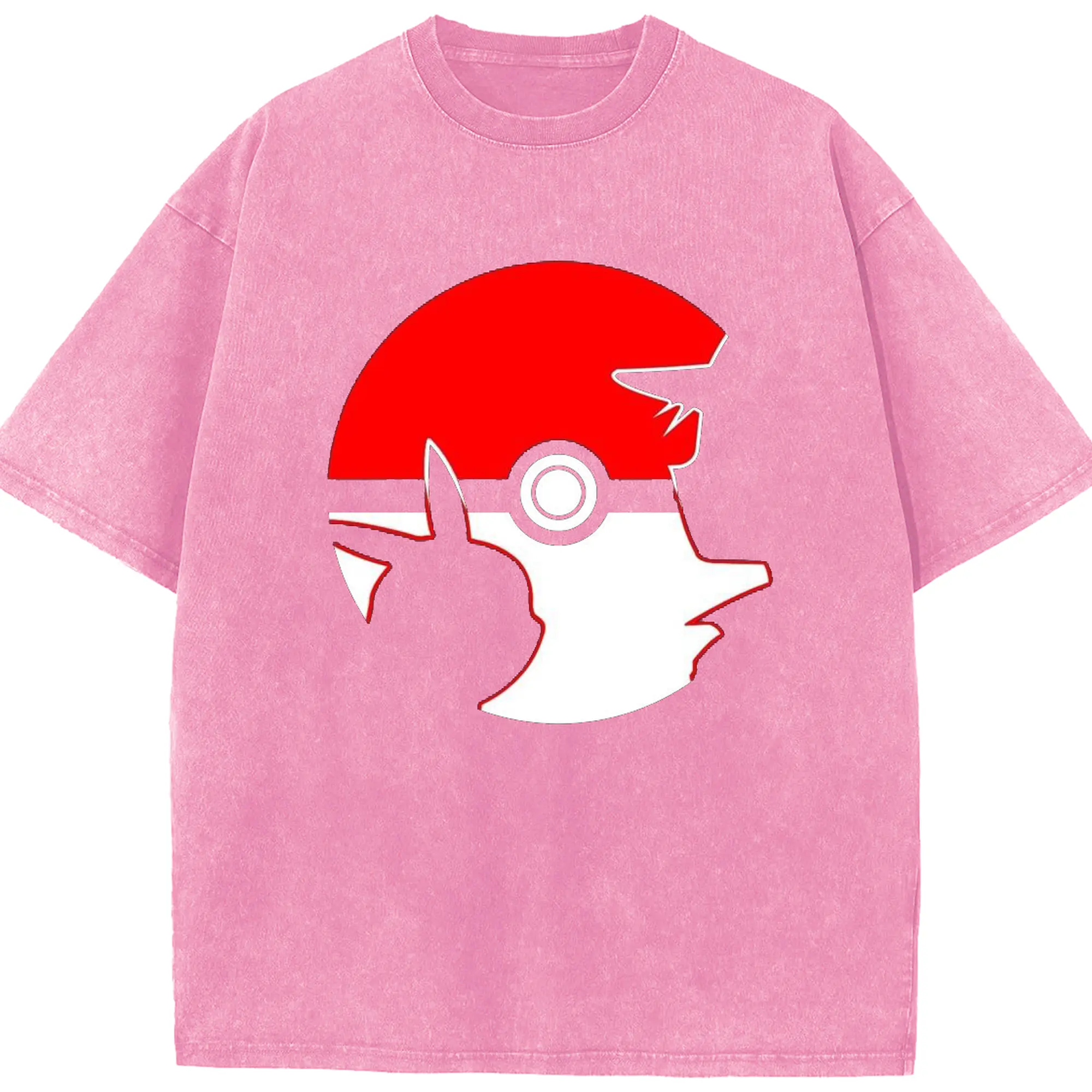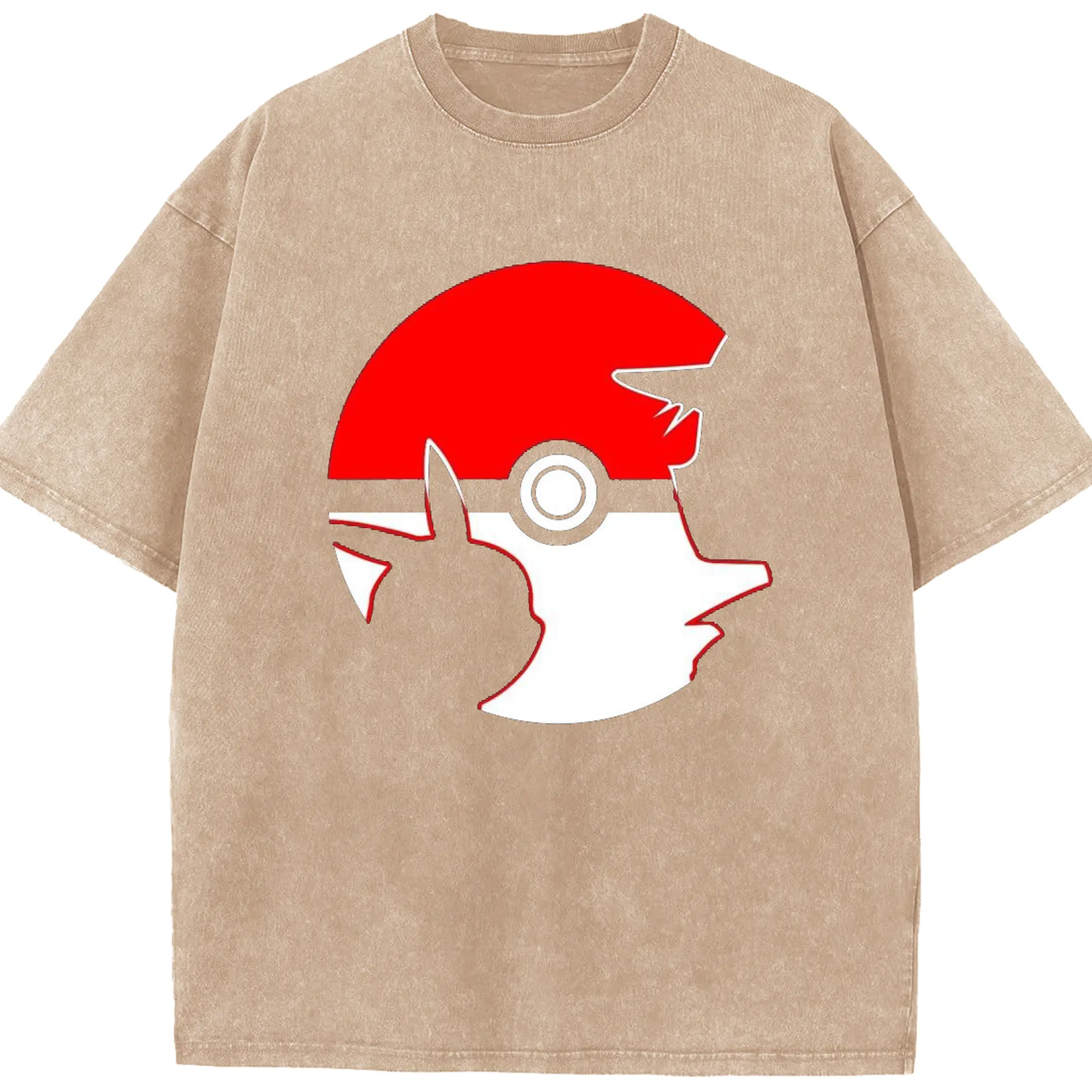 Pokémon Pikachu & Trainer Poké Ball DIY - Washed Vintage Look 230g Cotton Oversized T-Shirt With Front Heat Transfer Print – Soft, Lightweight, Stylish Fit – Comfortable Casual Wear For Sports & Everyday Use