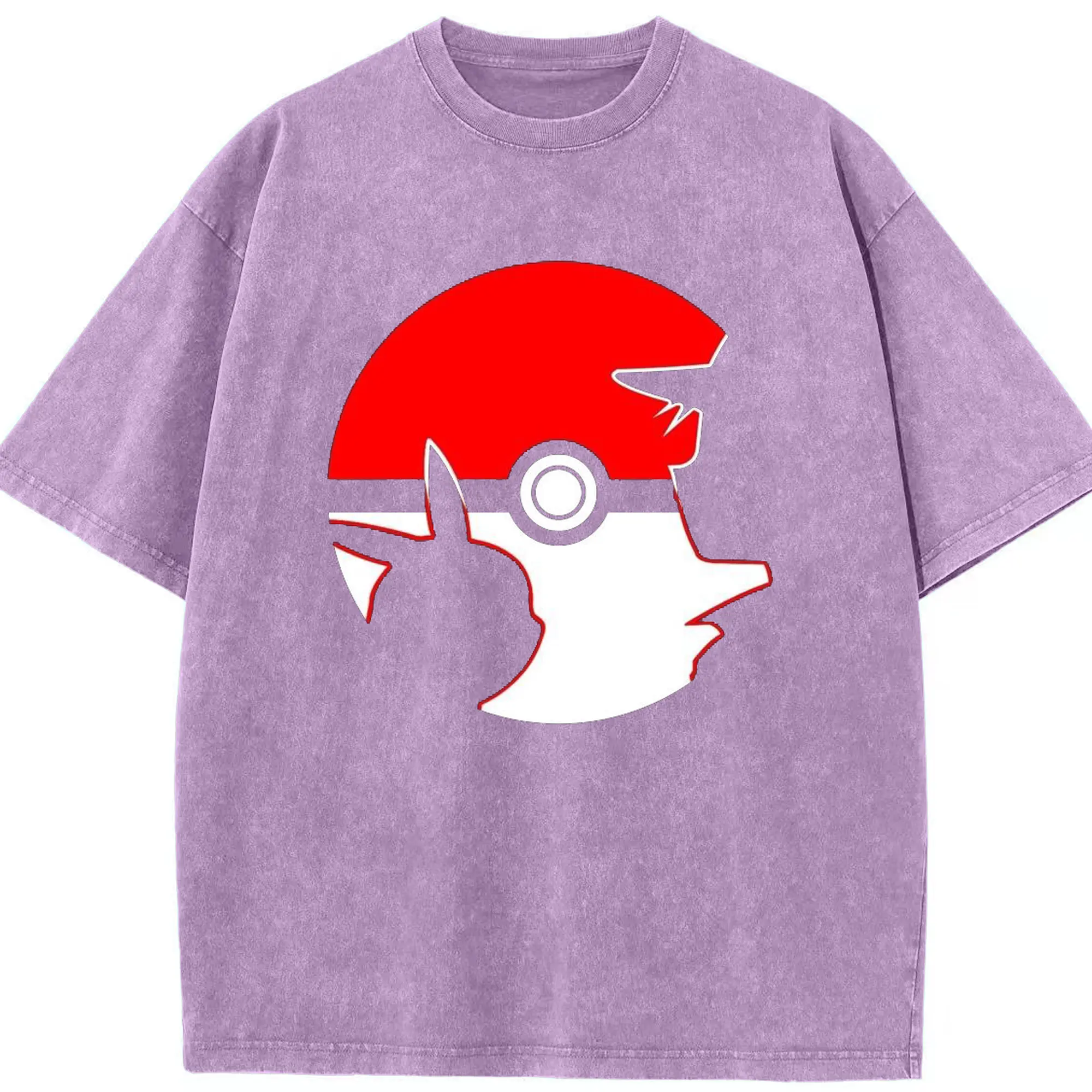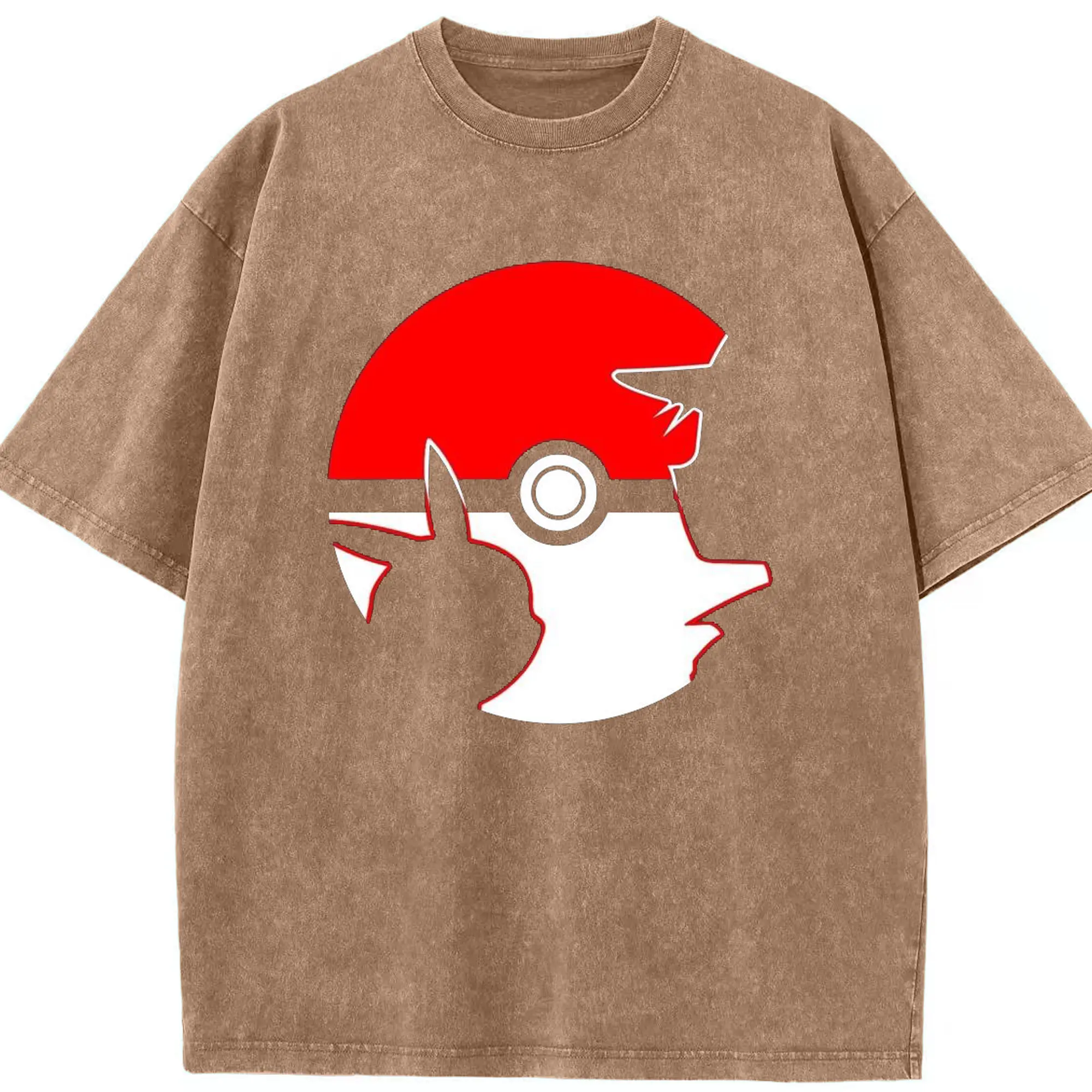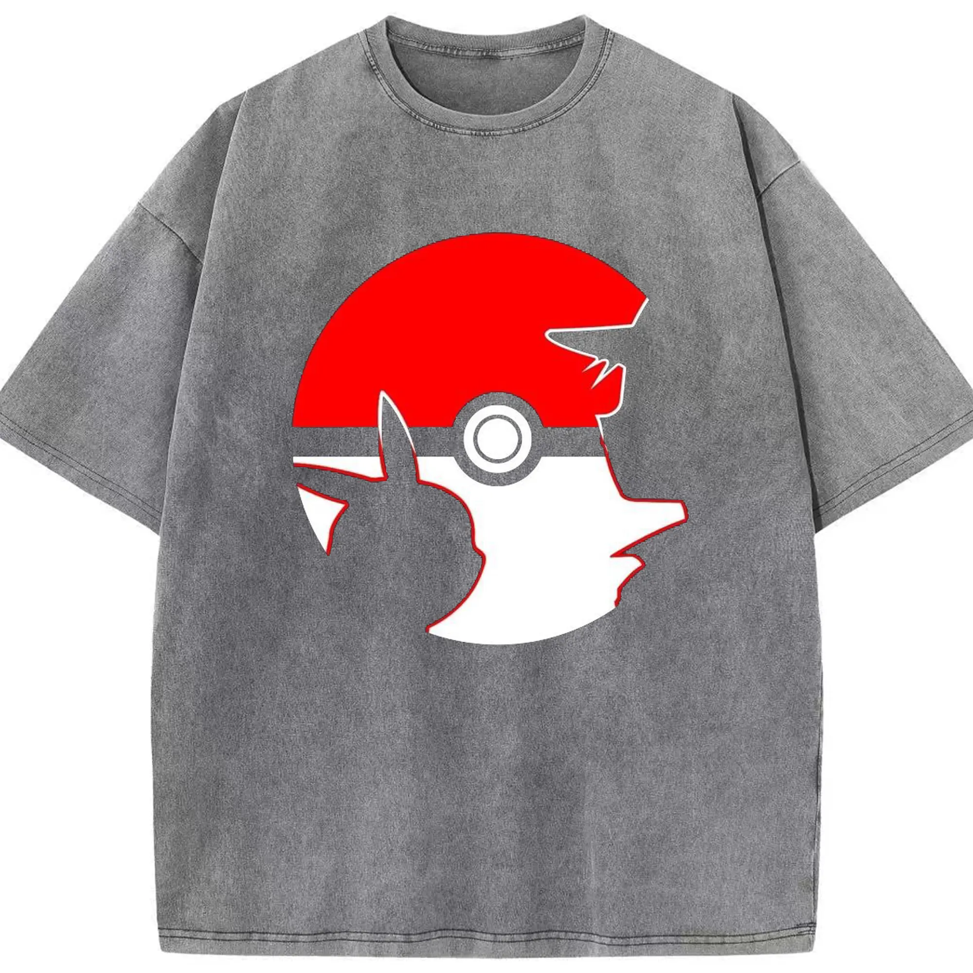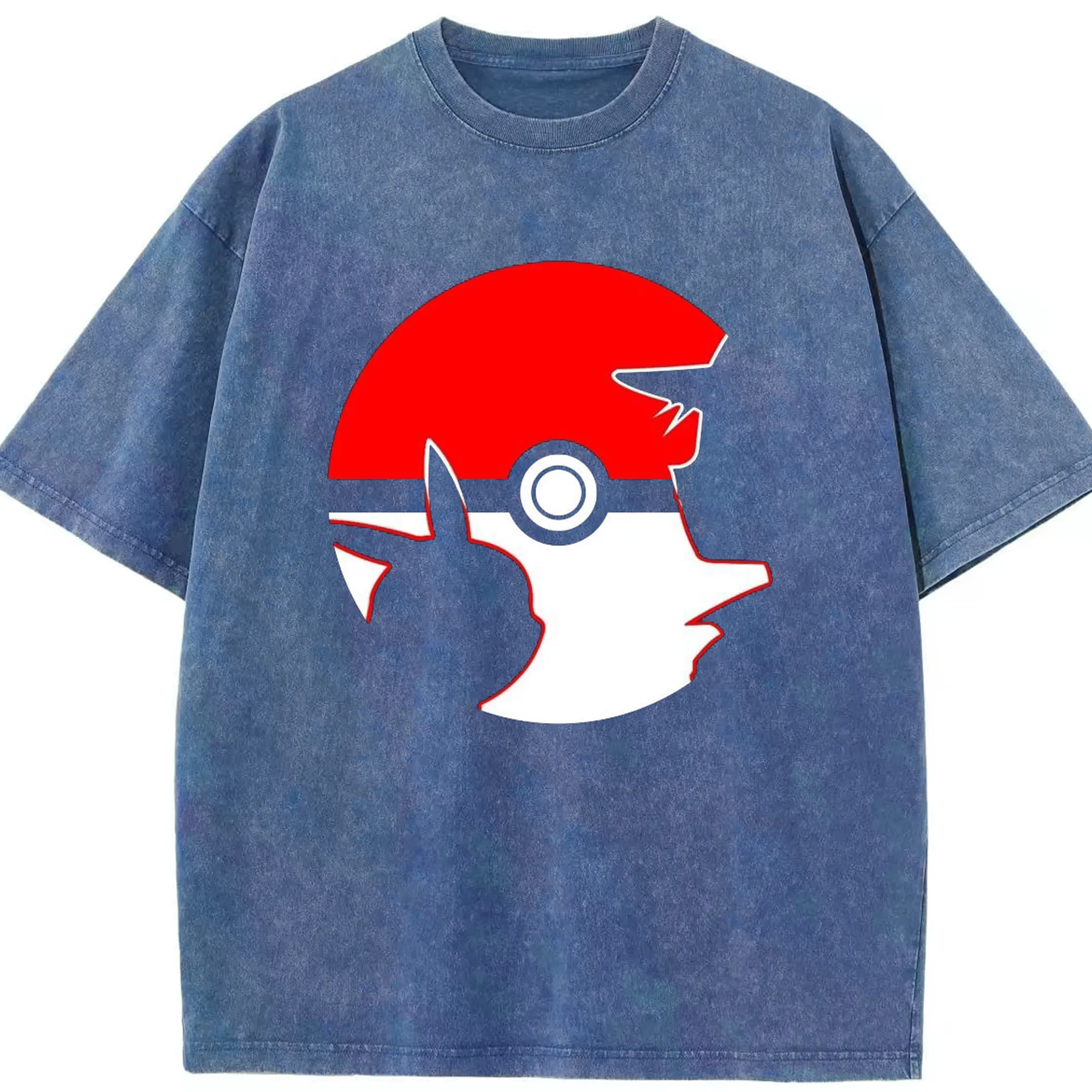 Pokémon Pikachu & Trainer Poké Ball DIY - Washed Vintage Look 230g Cotton Oversized T-Shirt With Front Heat Transfer Print – Soft, Lightweight, Stylish Fit – Comfortable Casual Wear For Sports & Everyday Use