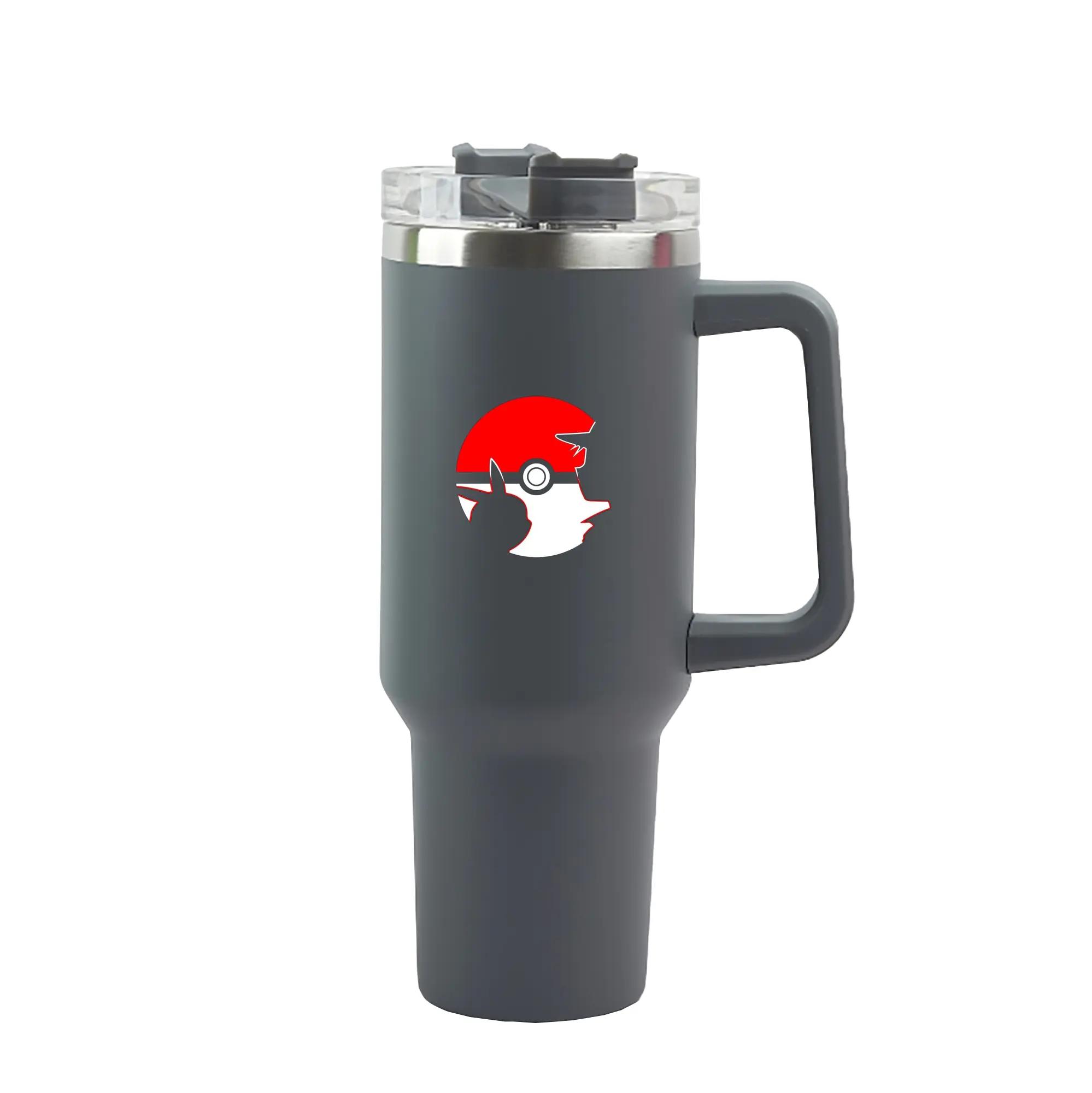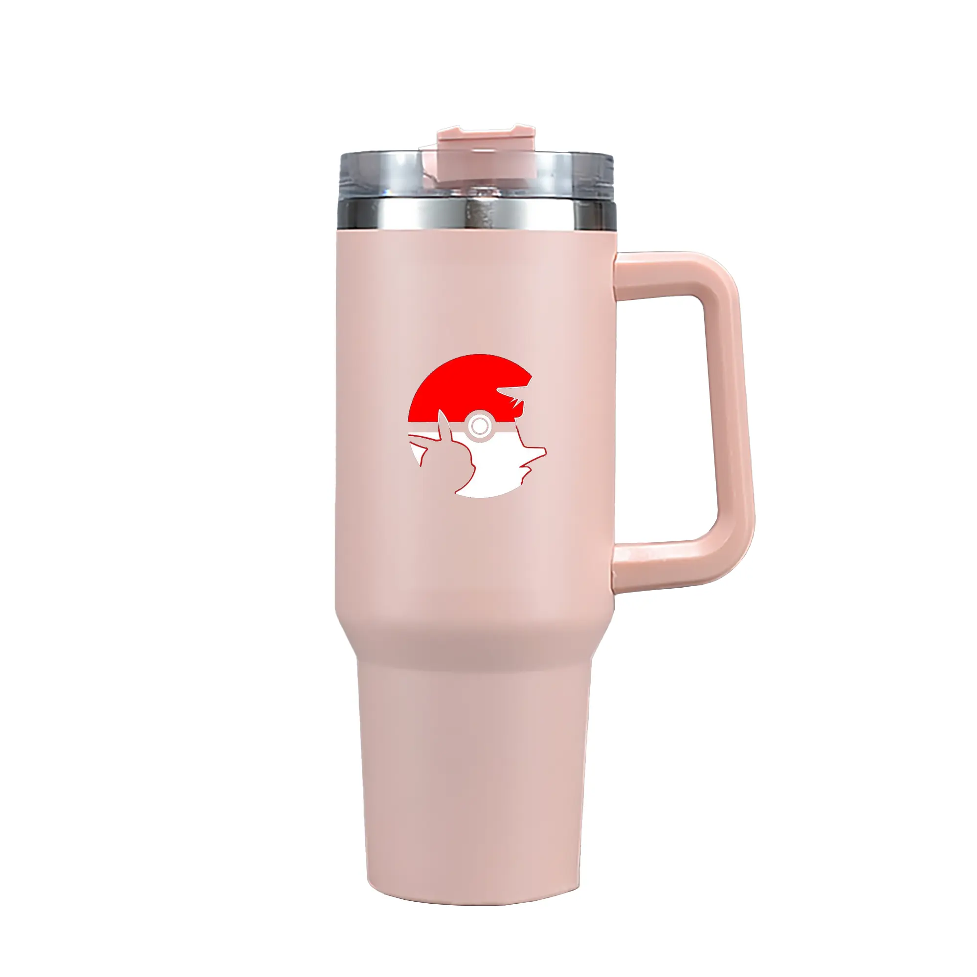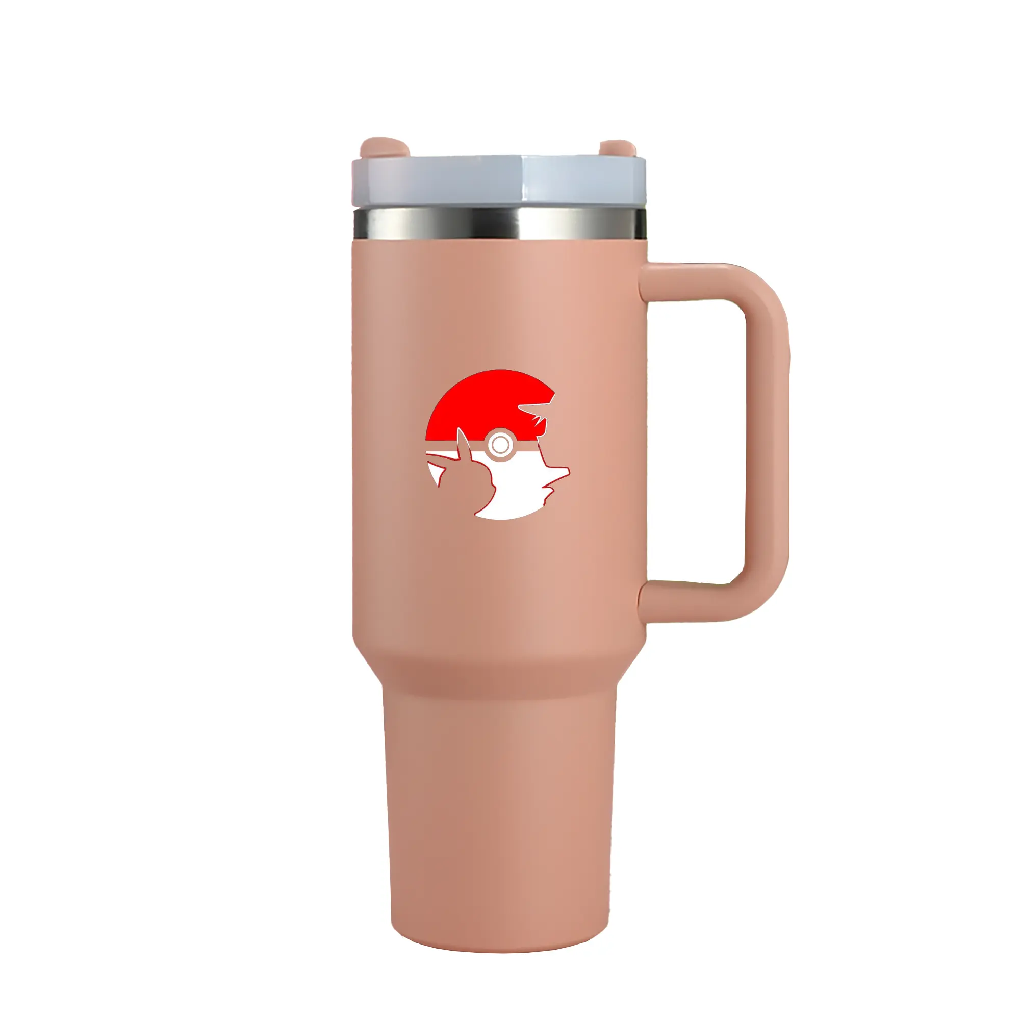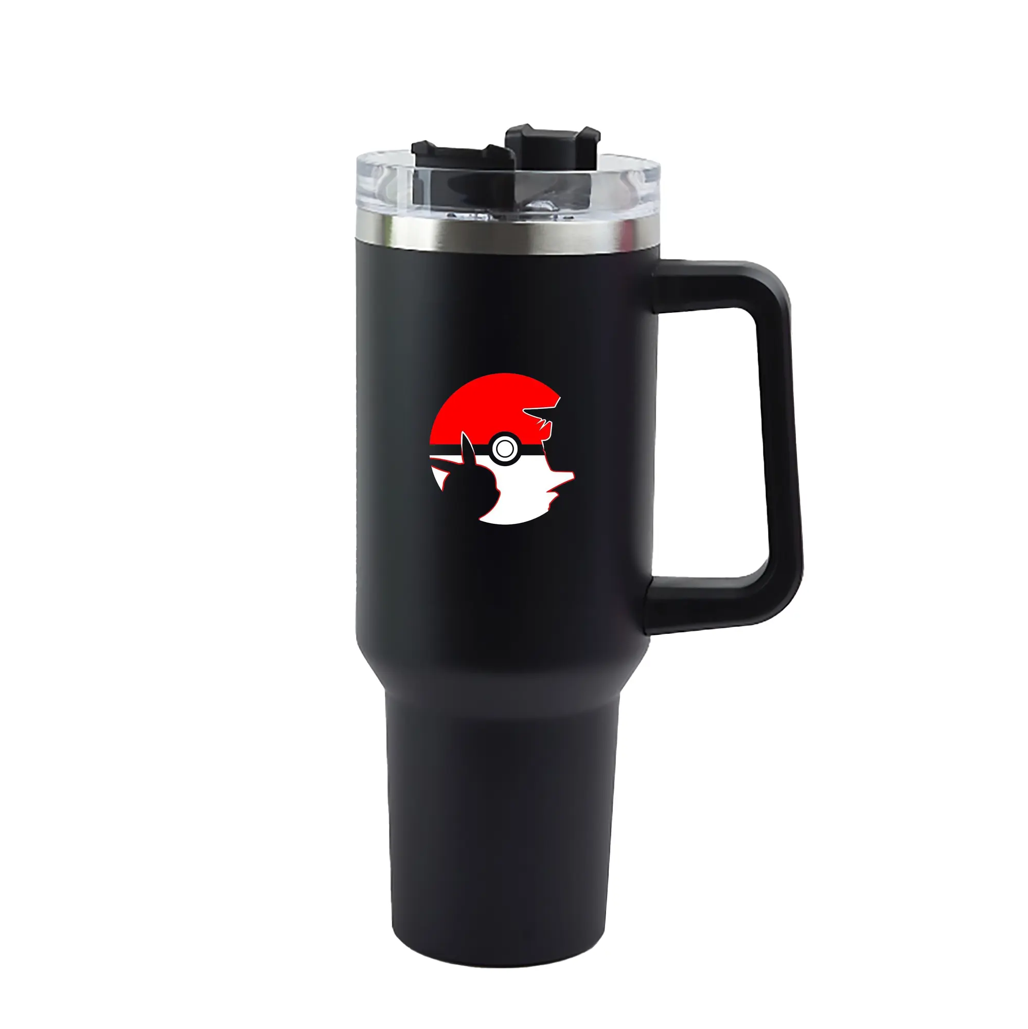 Pokémon Pikachu & Trainer Poké Ball DIY - 40oz Handle Car Tumbler – Durable Stainless Steel Travel Mug With UV Print – Double Wall Insulated, Fits Most Car Cup Holders