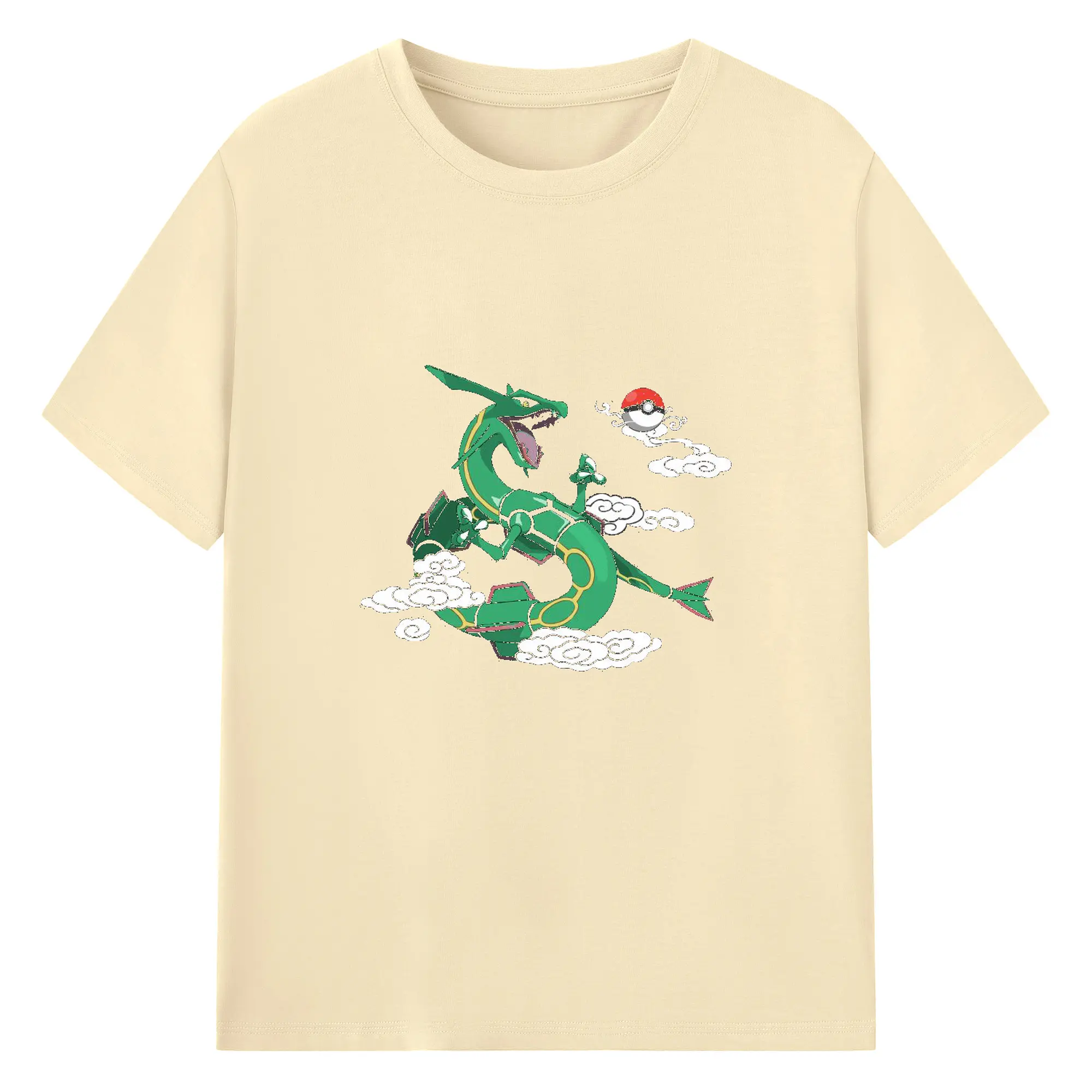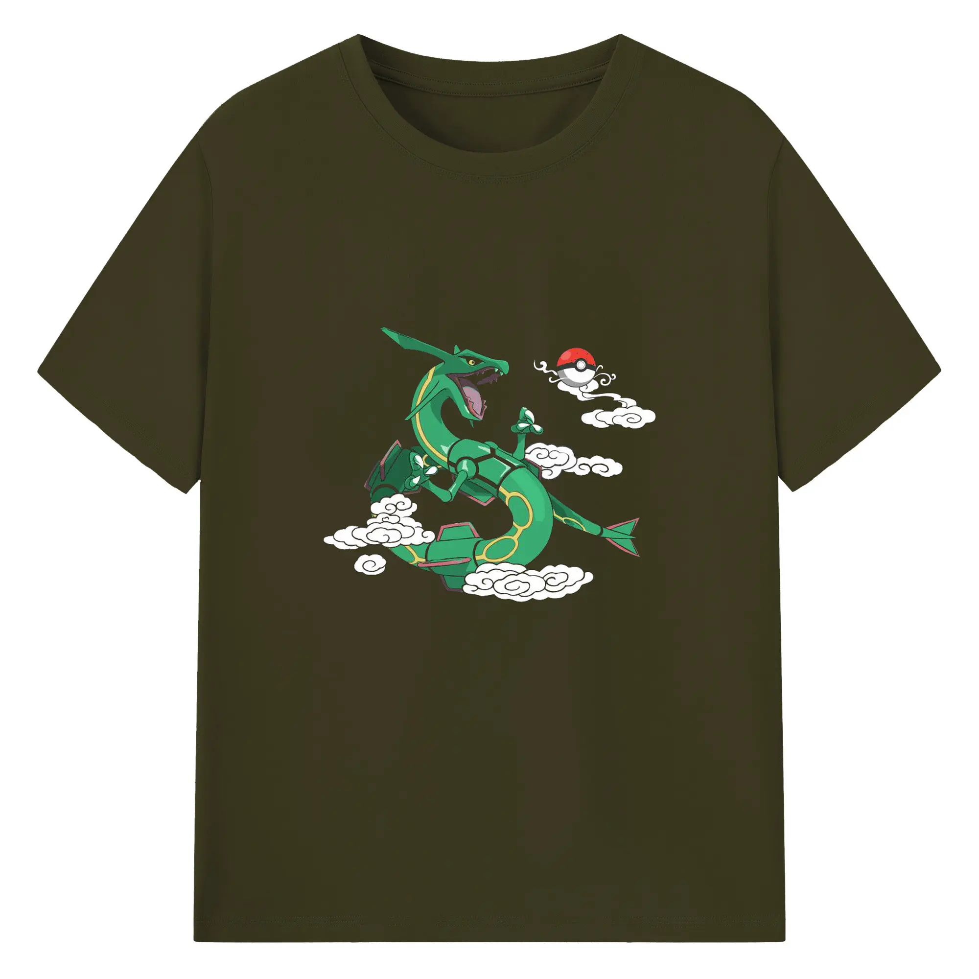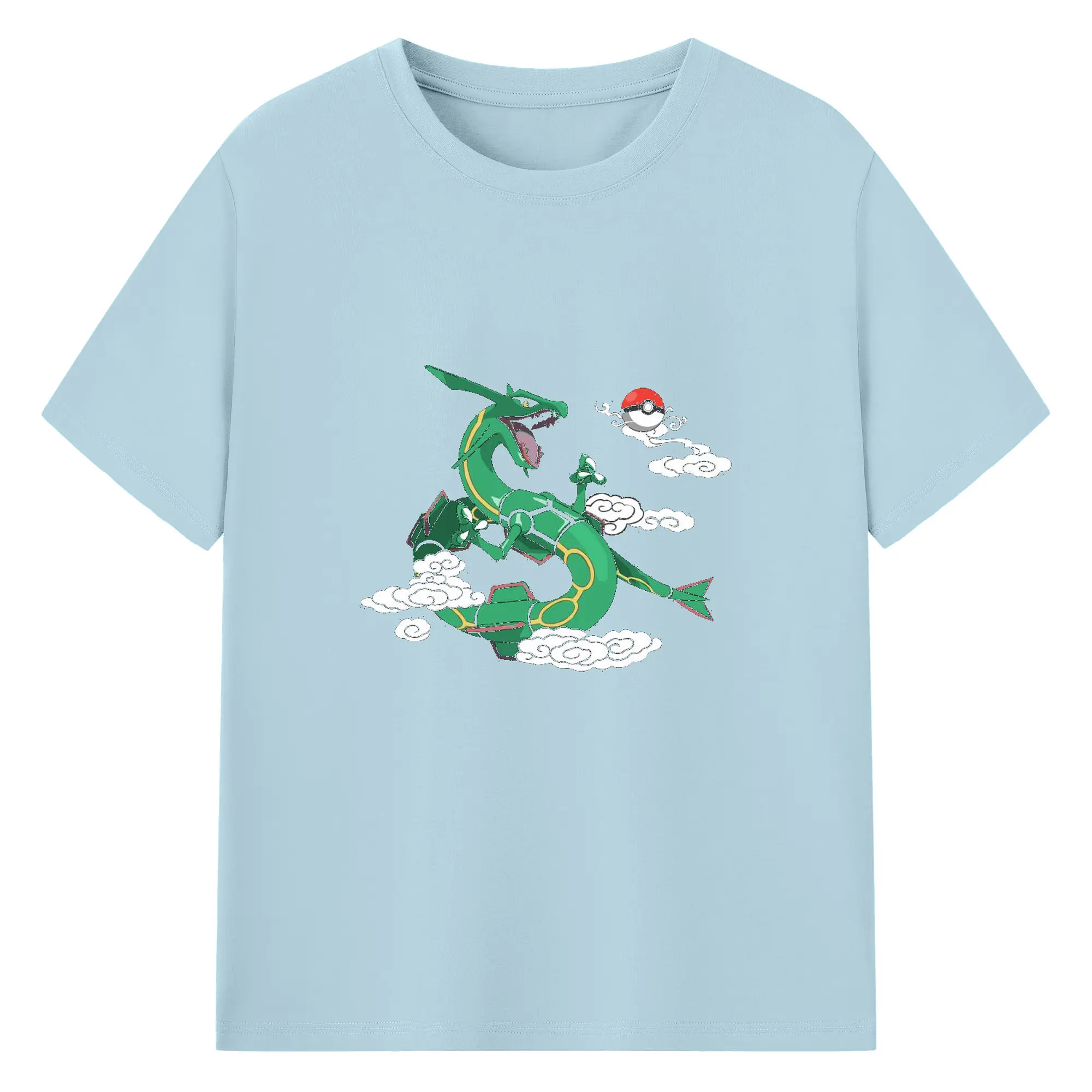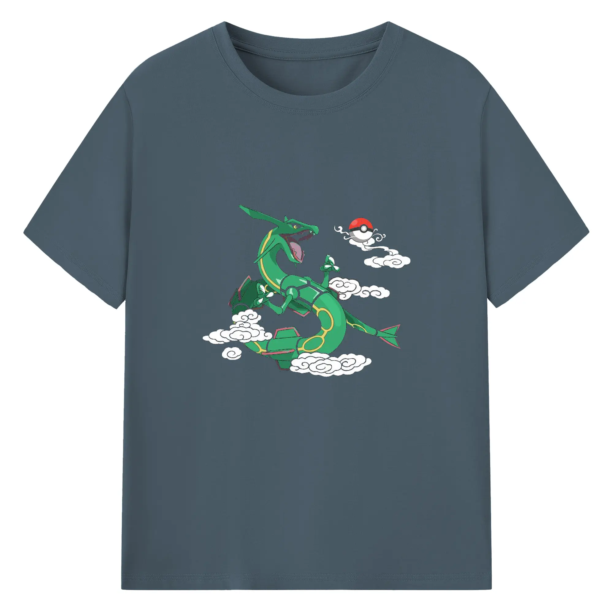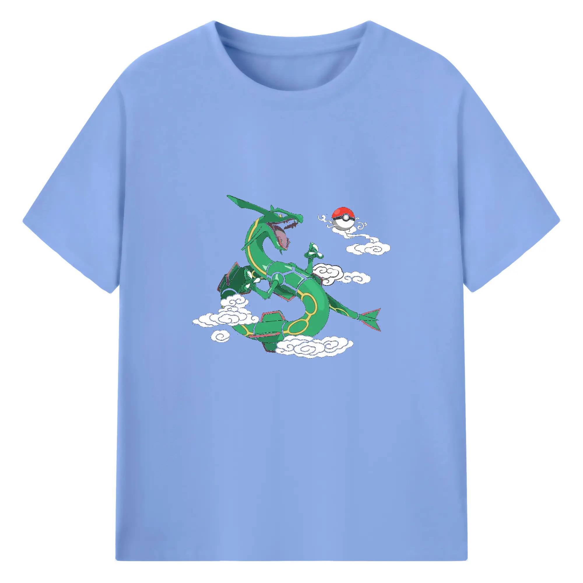 Pokémon Rayquaza Legendary DIY - 180g Cotton T-Shirt With Front Heat Transfer Print – Soft, Lightweight, Fitted Design – Comfortable Casual Wear For Sports & Everyday Use