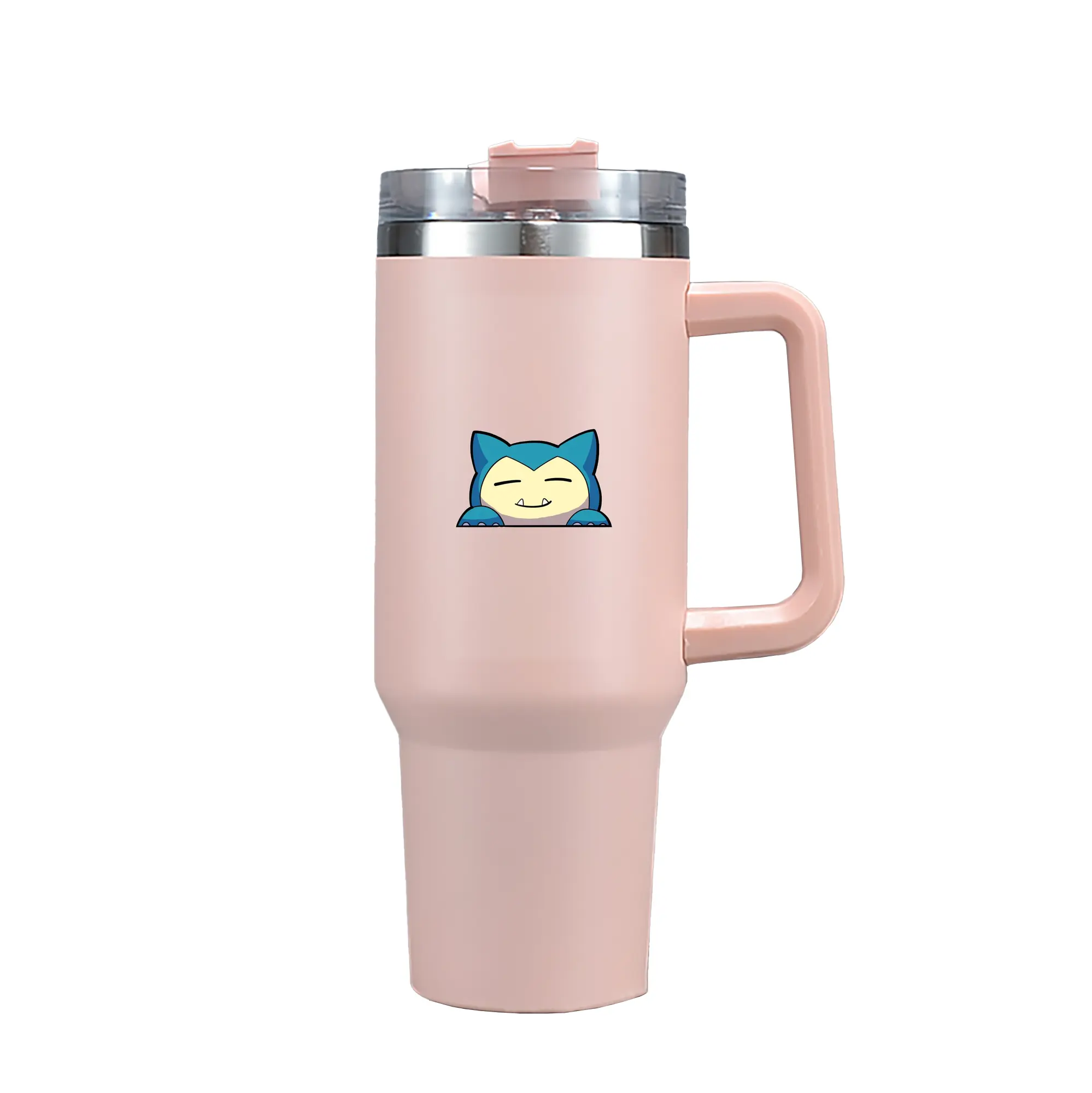Pokémon Snorlax Cute DIY - 40oz Handle Car Tumbler – Durable Stainless Steel Travel Mug With UV Print – Double Wall Insulated, Fits Most Car Cup Holders