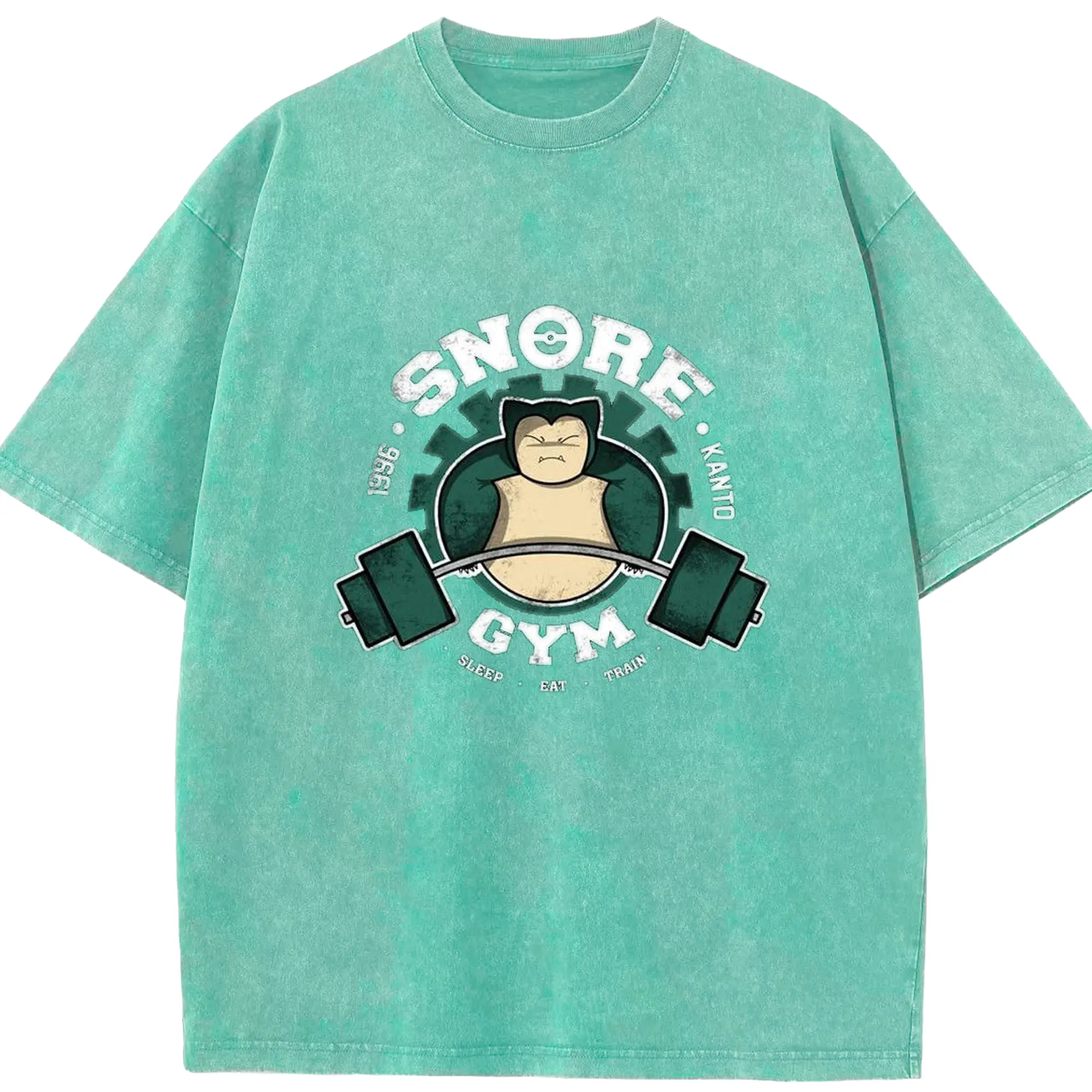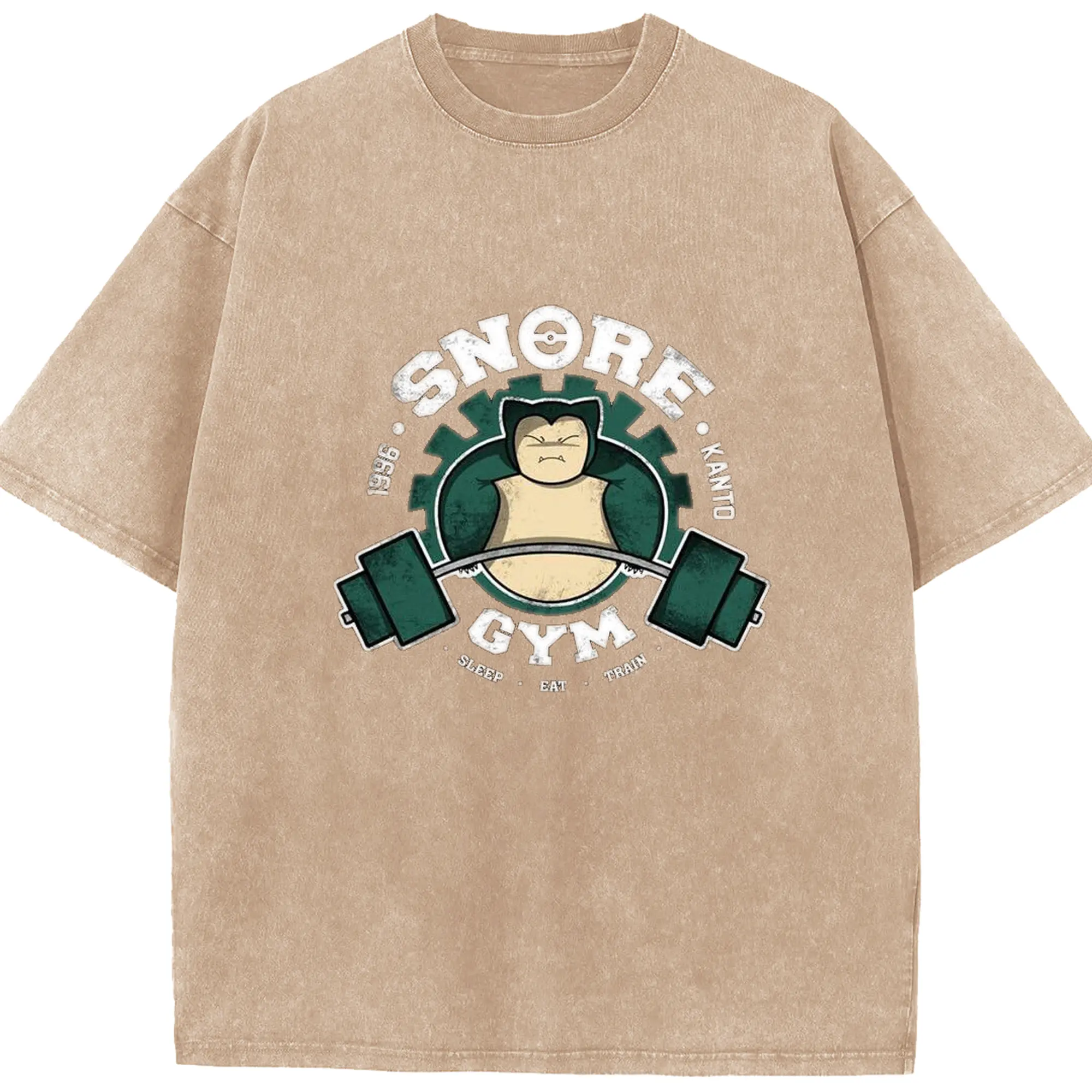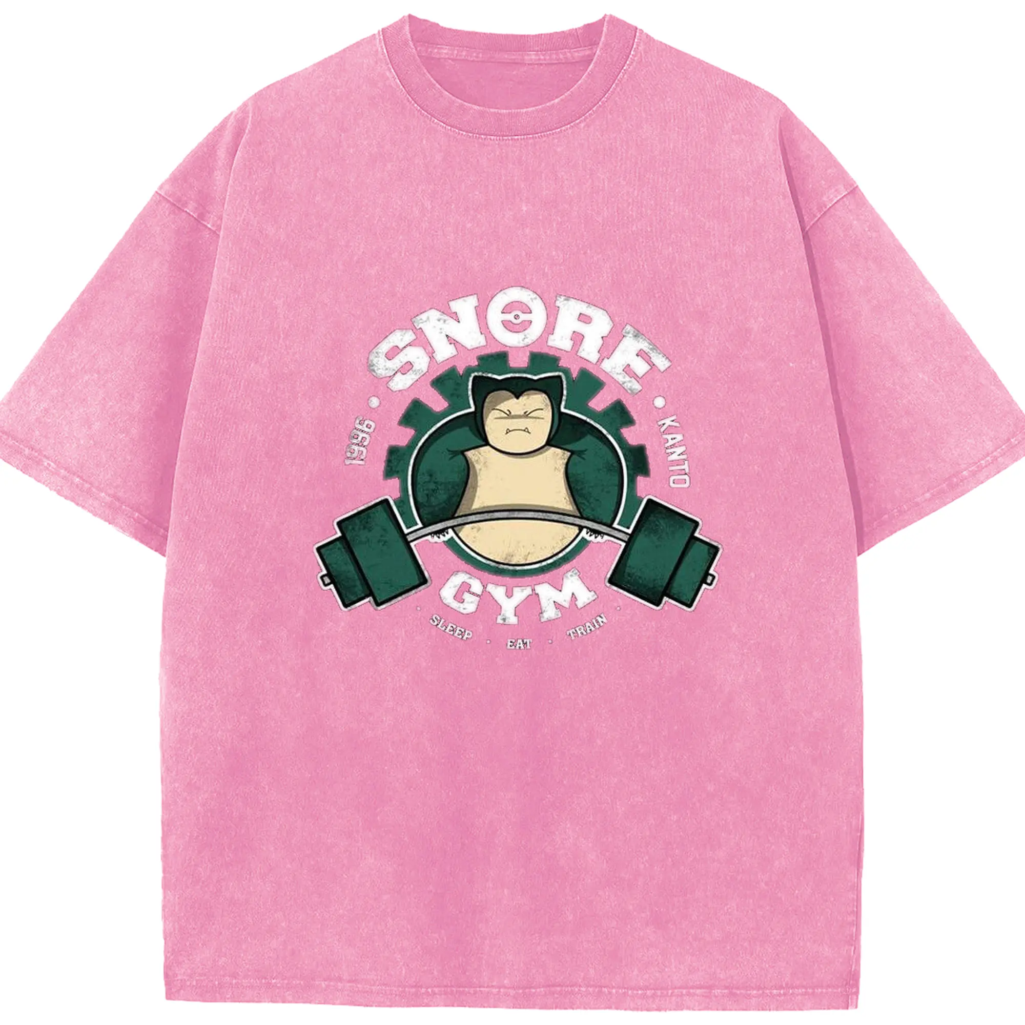 Pokémon Snorlax Gym Retro DIY - Washed Vintage Look 230g Cotton Oversized T-Shirt With Front Heat Transfer Print – Soft, Lightweight, Stylish Fit – Comfortable Casual Wear For Sports & Everyday Use