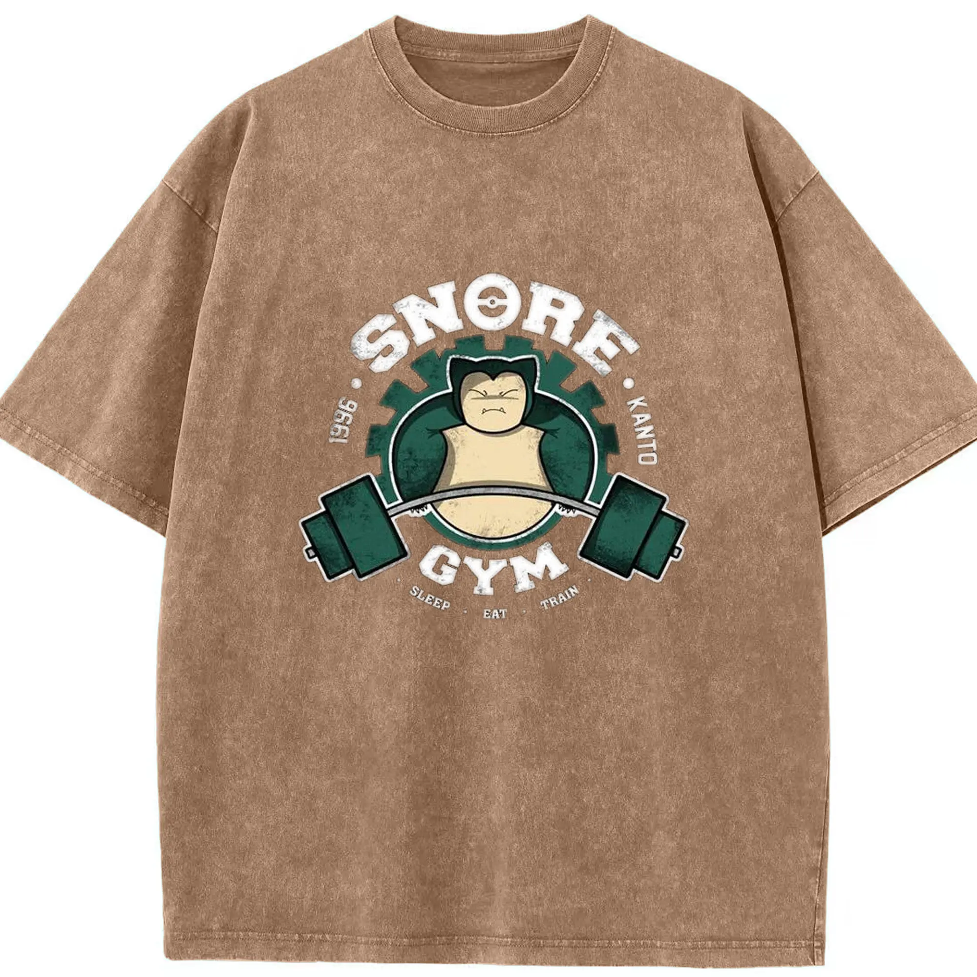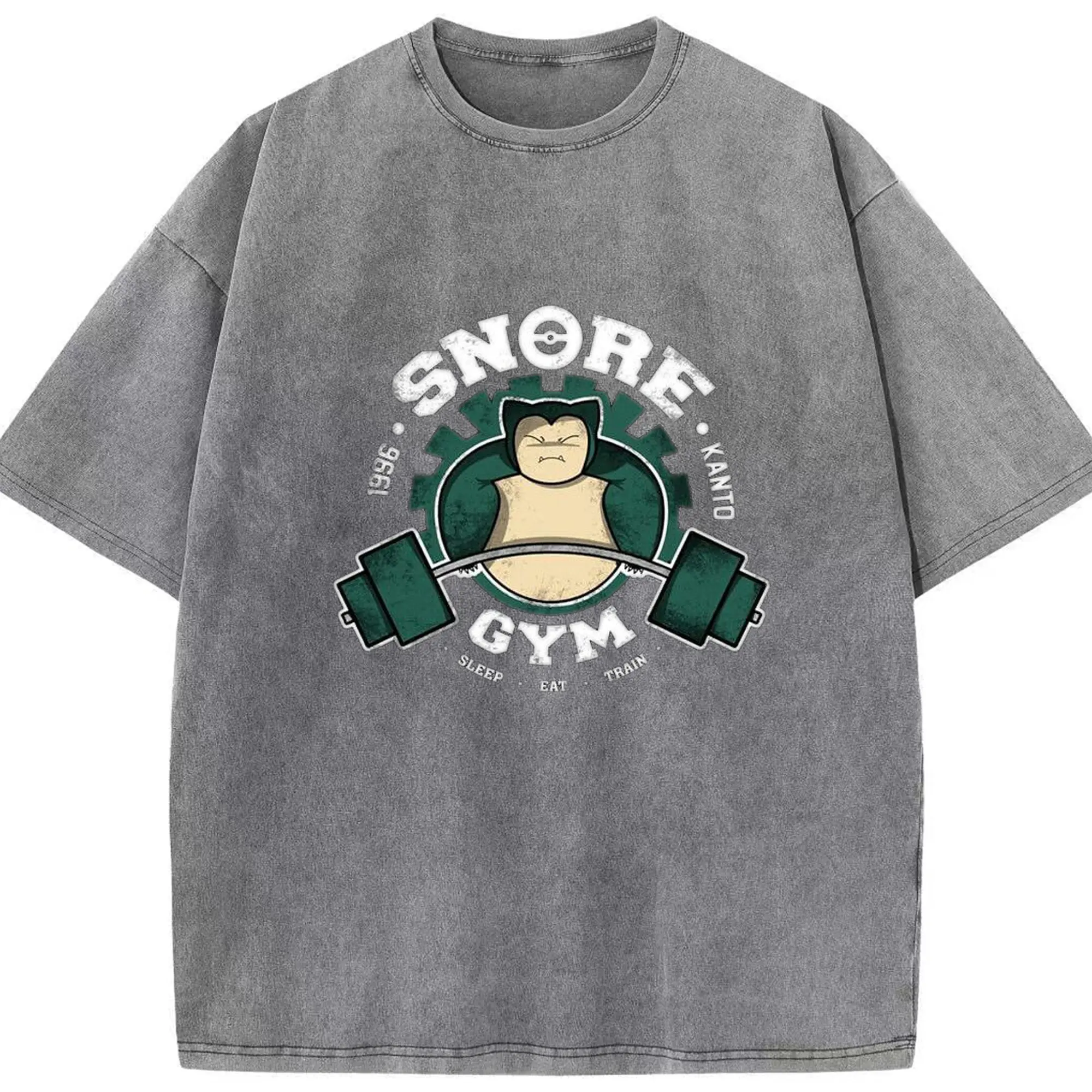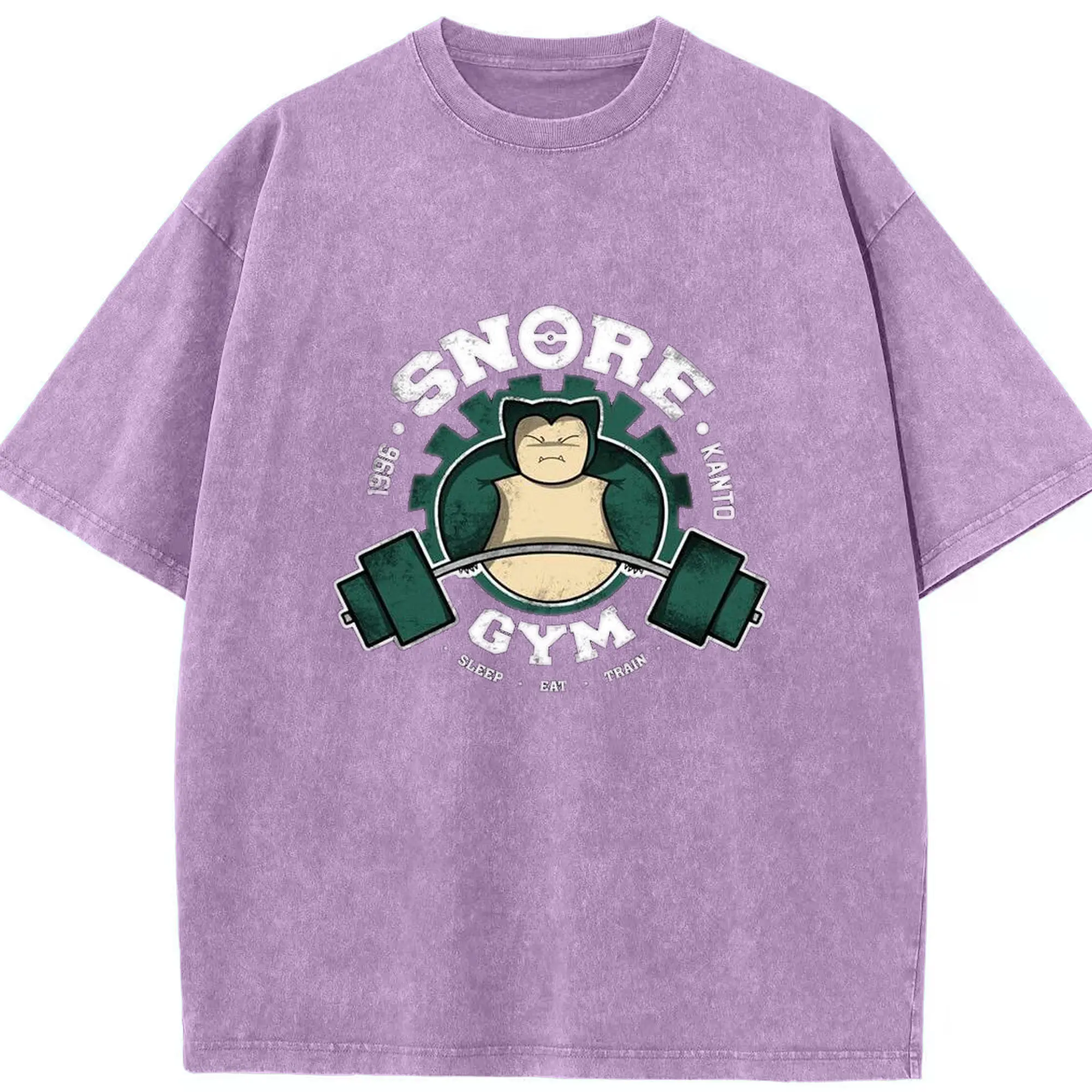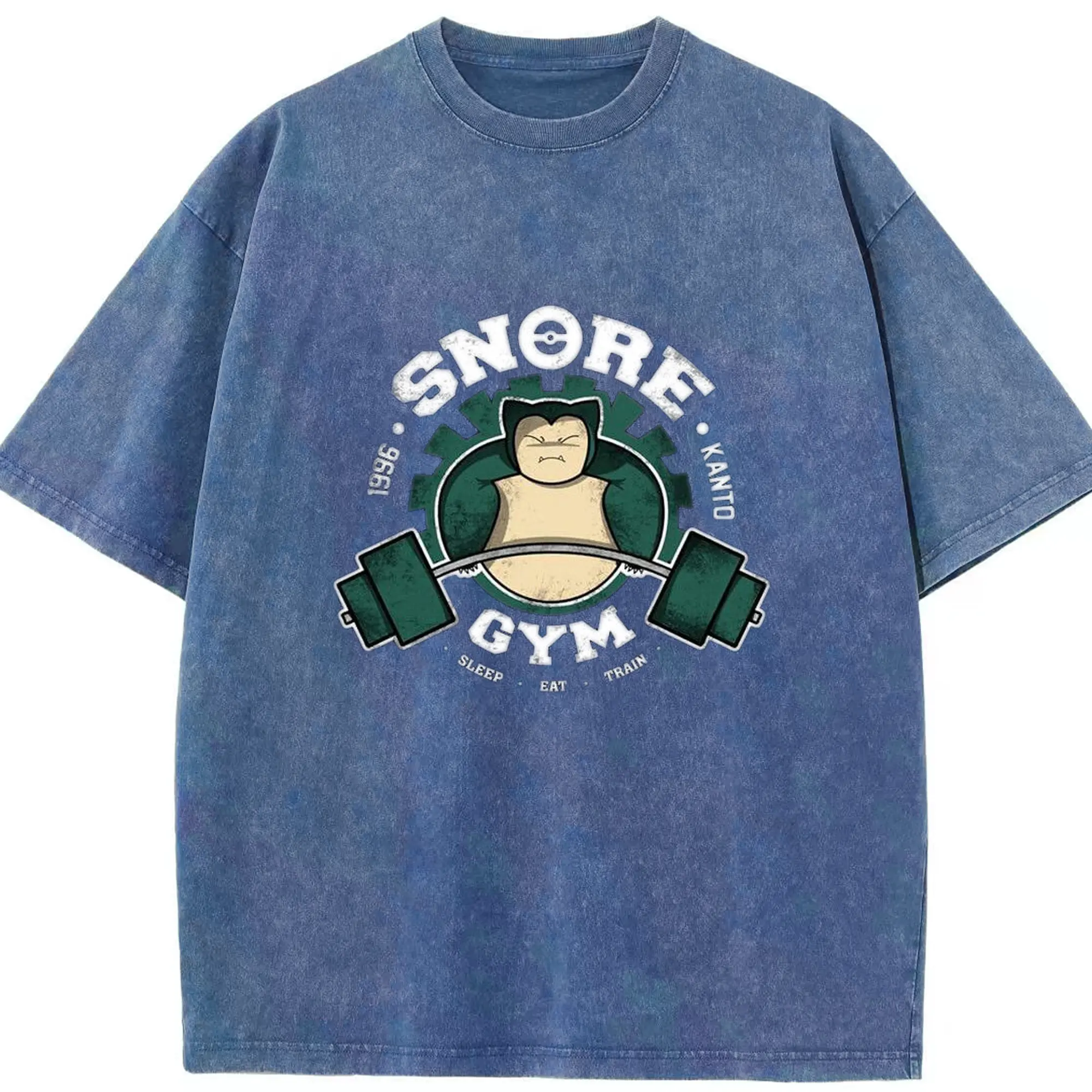 Pokémon Snorlax Gym Retro DIY - Washed Vintage Look 230g Cotton Oversized T-Shirt With Front Heat Transfer Print – Soft, Lightweight, Stylish Fit – Comfortable Casual Wear For Sports & Everyday Use