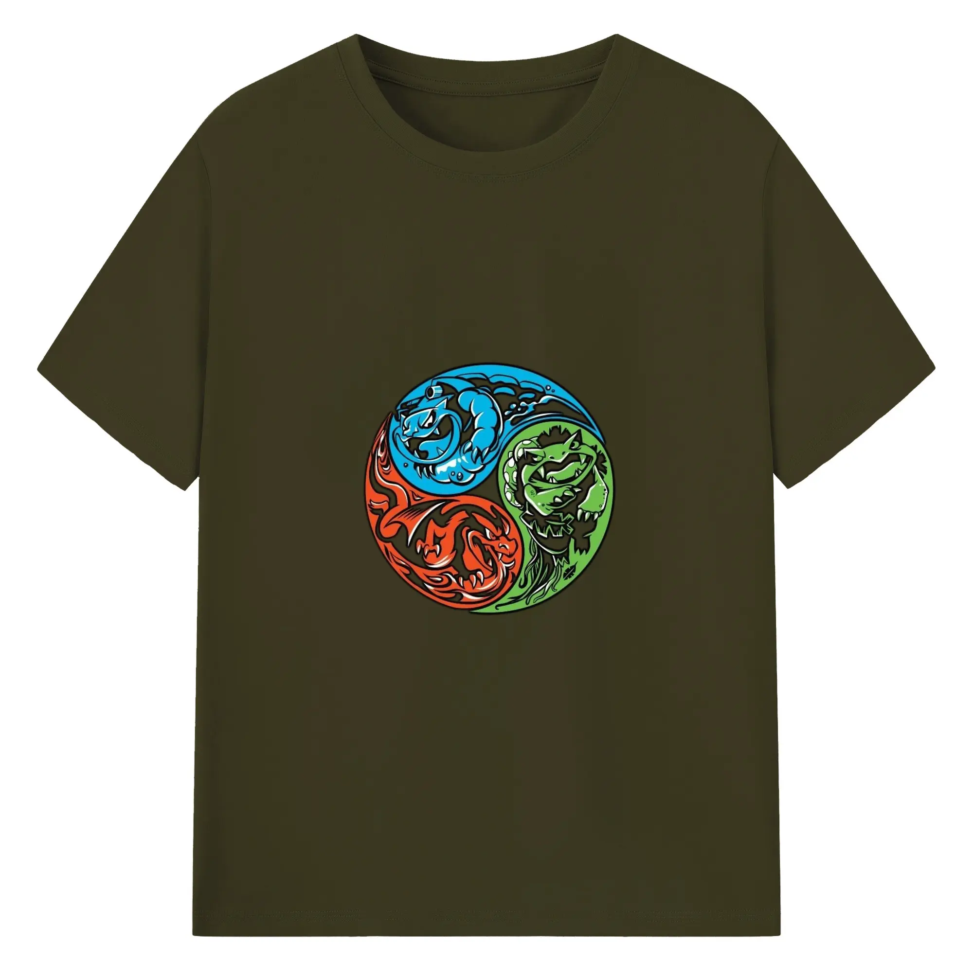 Pokémon Starter Final Evolutions Yin Yang DIY - 180g Cotton T-Shirt With Front Heat Transfer Print – Soft, Lightweight, Fitted Design – Comfortable Casual Wear For Sports & Everyday Use