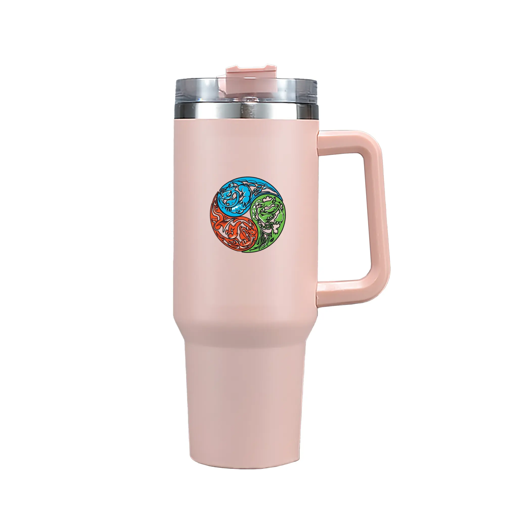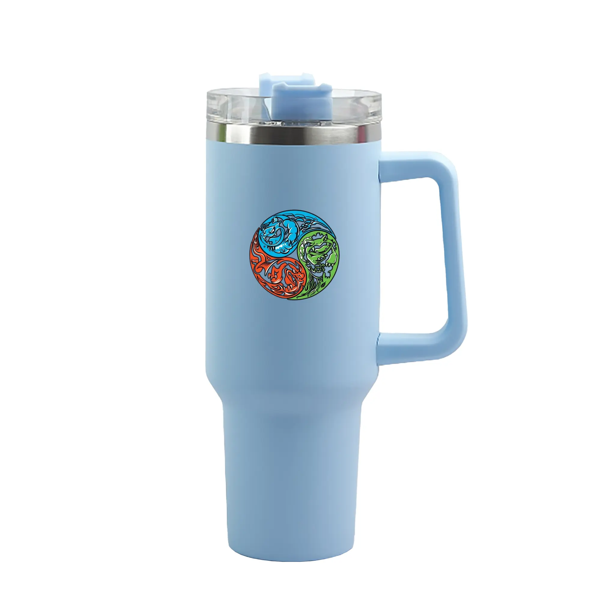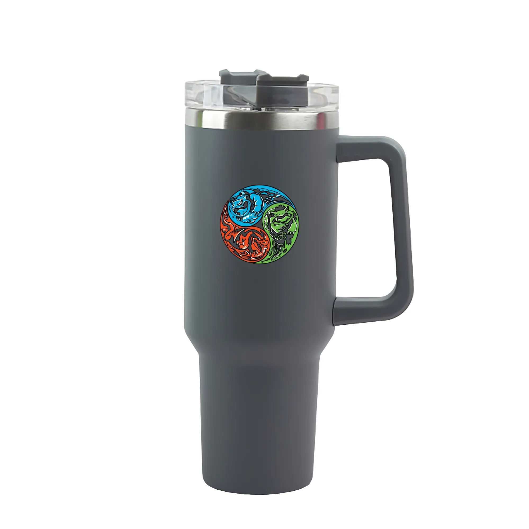 Pokémon Starter Final Evolutions Yin Yang DIY - 40oz Handle Car Tumbler – Durable Stainless Steel Travel Mug With UV Print – Double Wall Insulated, Fits Most Car Cup Holders