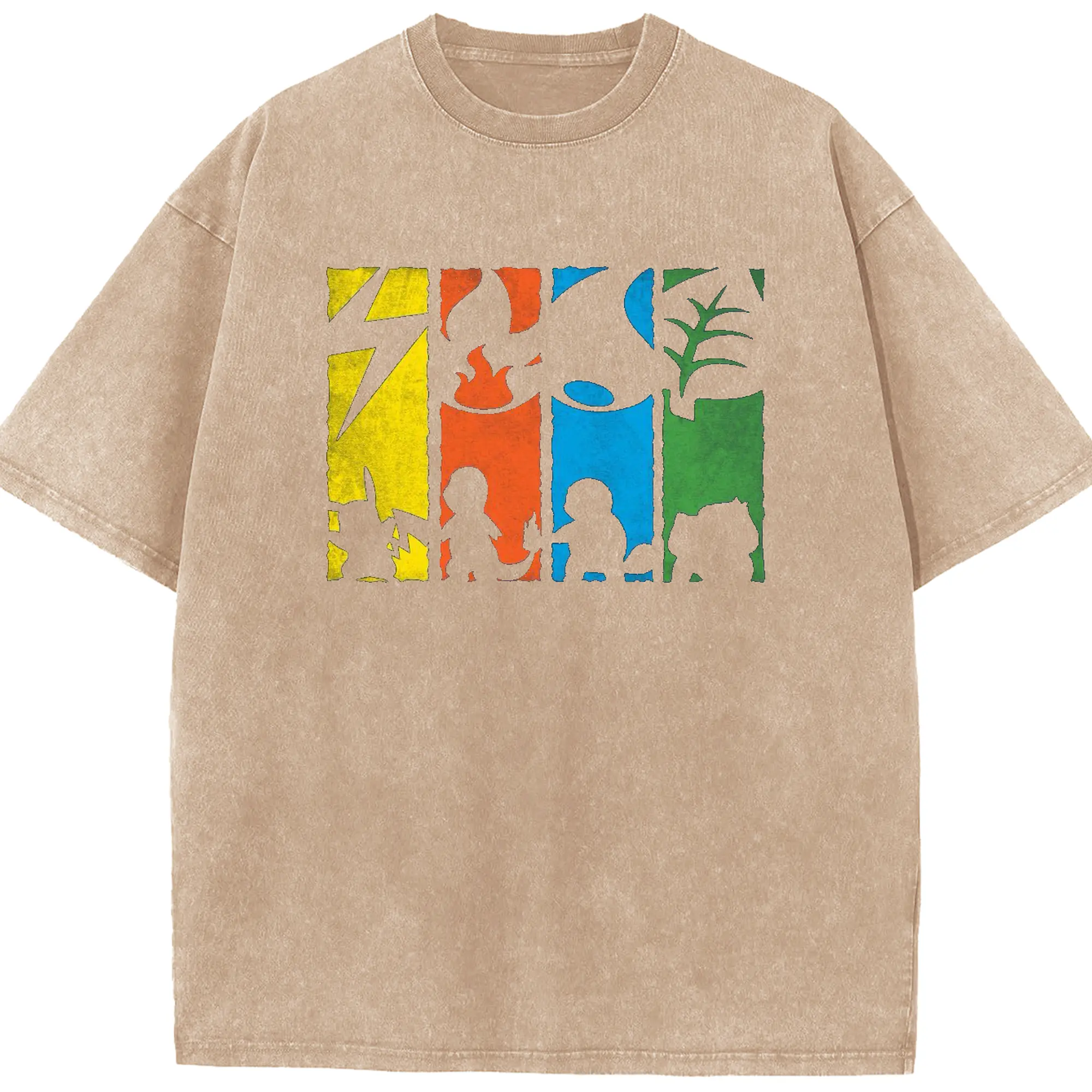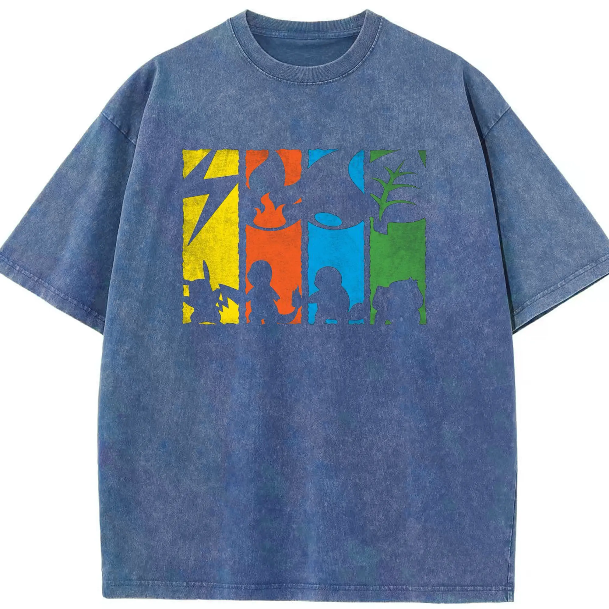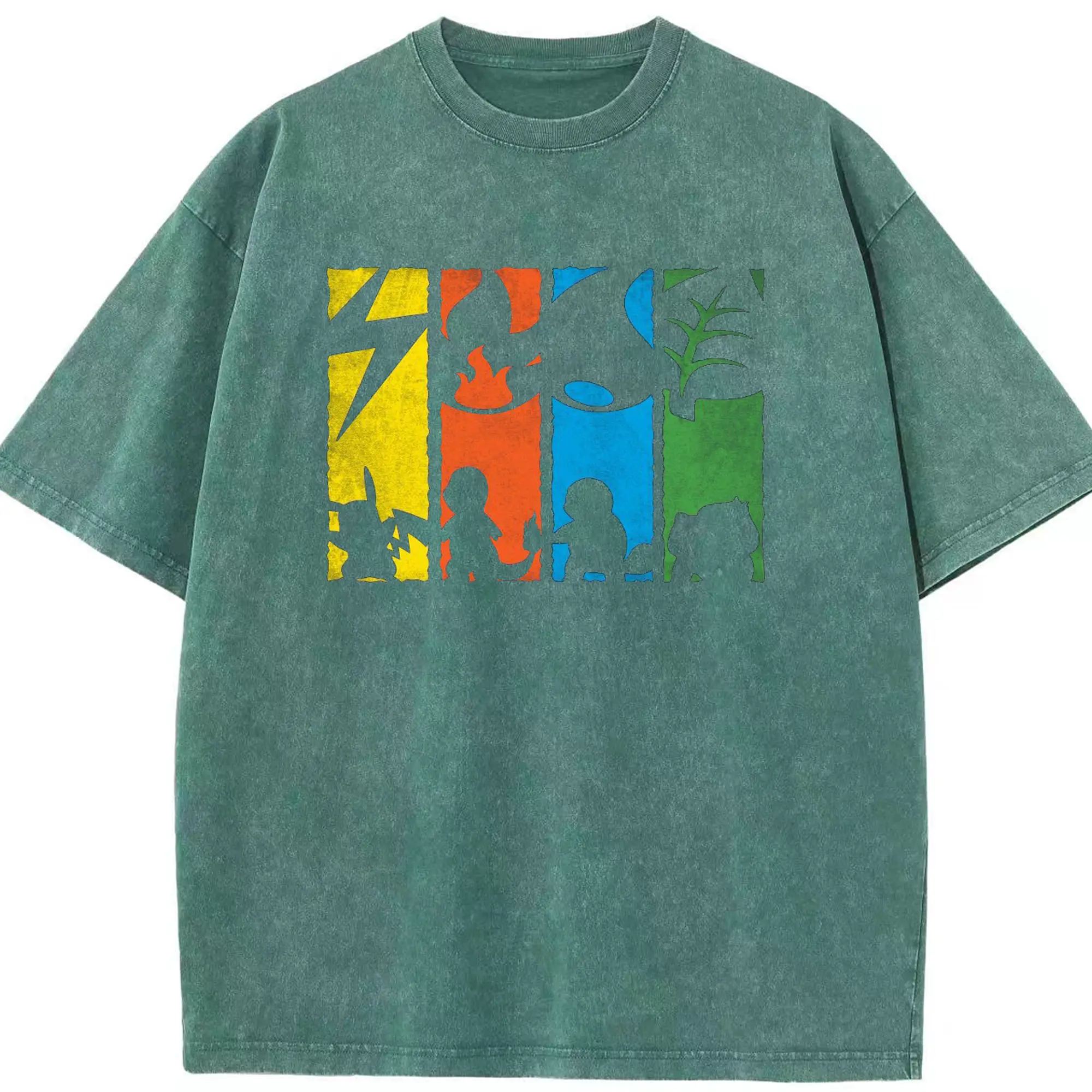 Pokémon Starter Pokémon Retro DIY - Washed Vintage Look 230g Cotton Oversized T-Shirt With Front Heat Transfer Print – Soft, Lightweight, Stylish Fit – Comfortable Casual Wear For Sports & Everyday Use