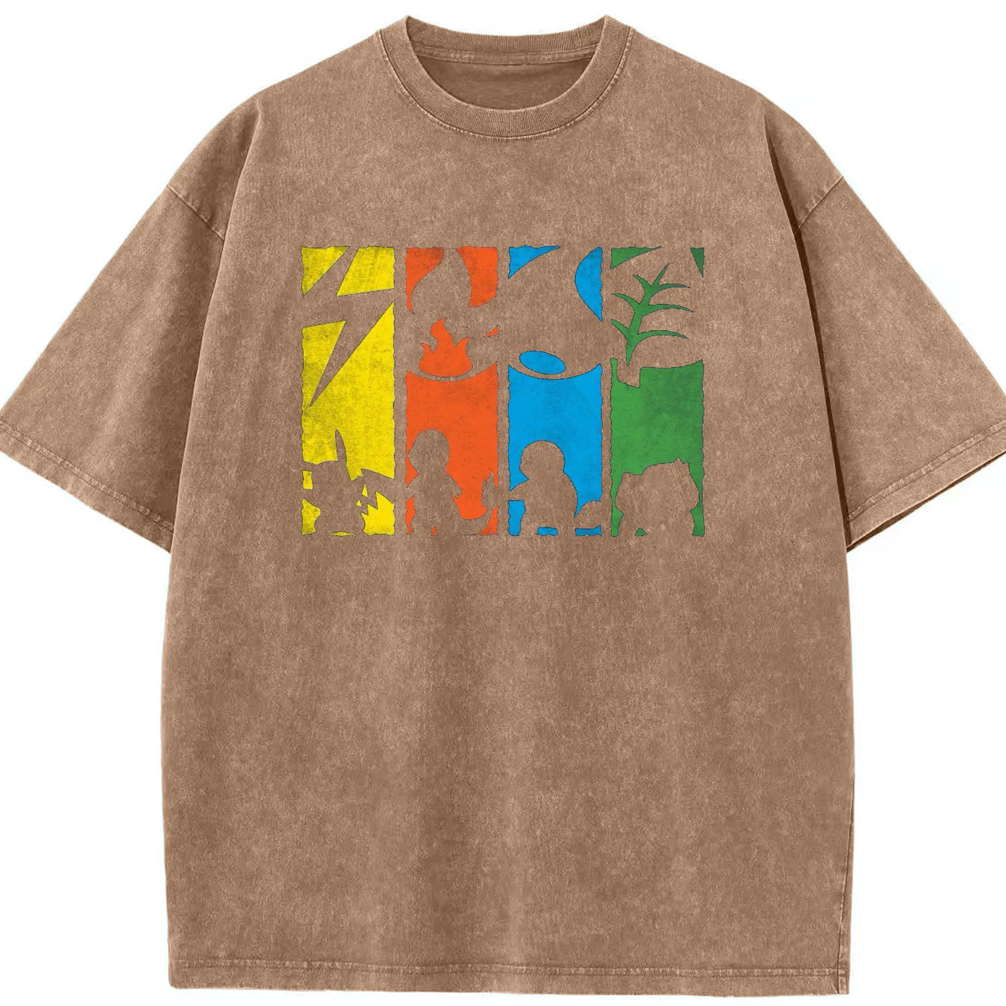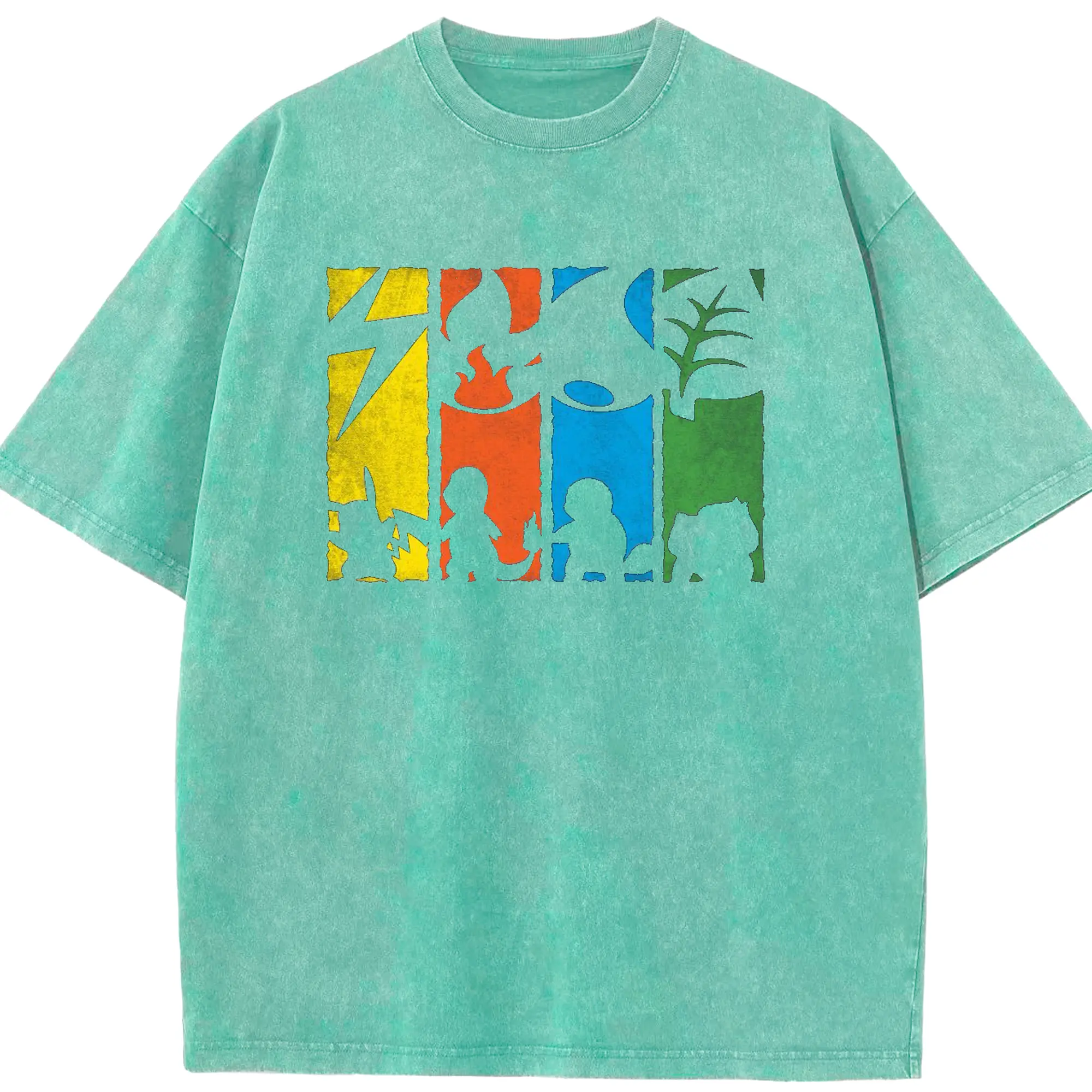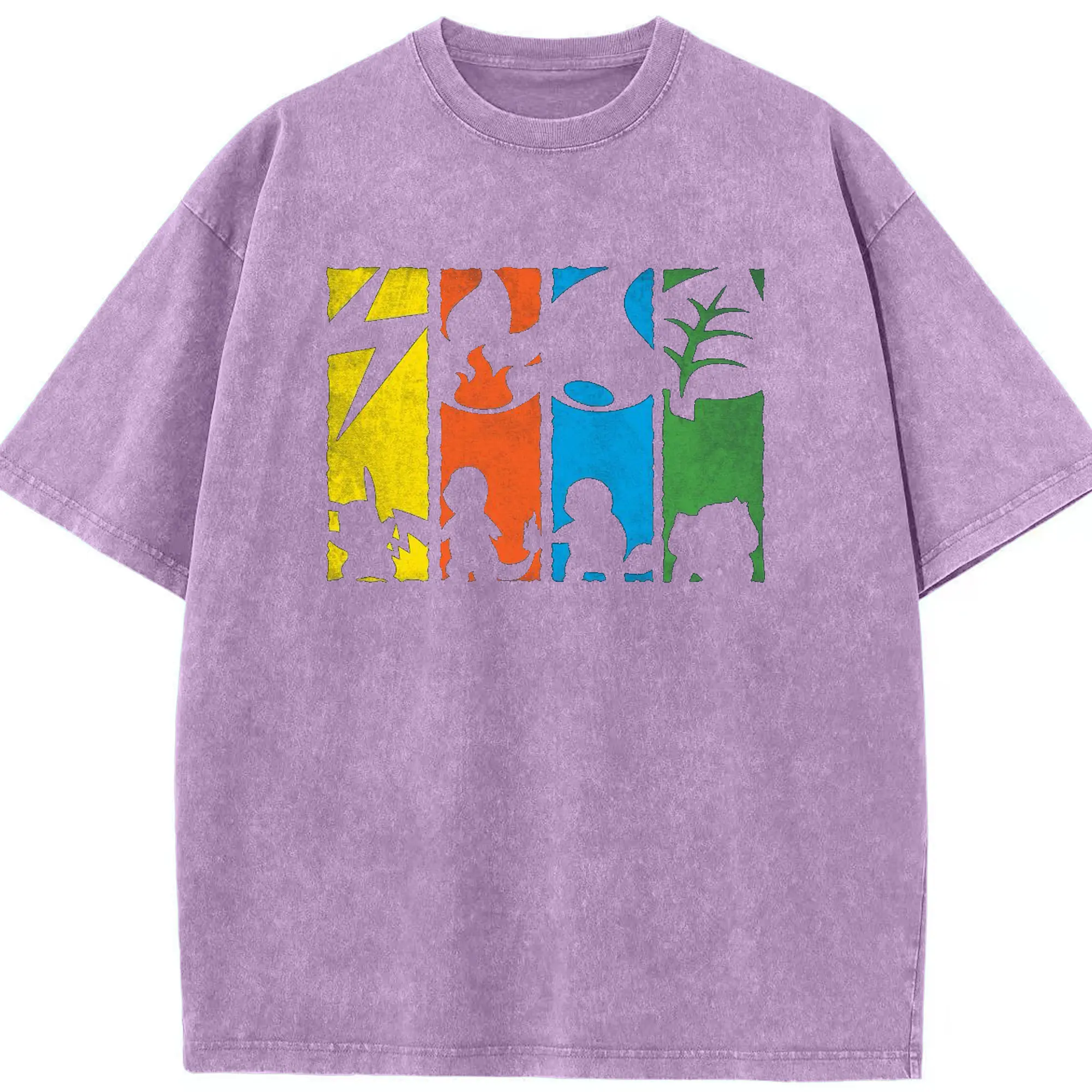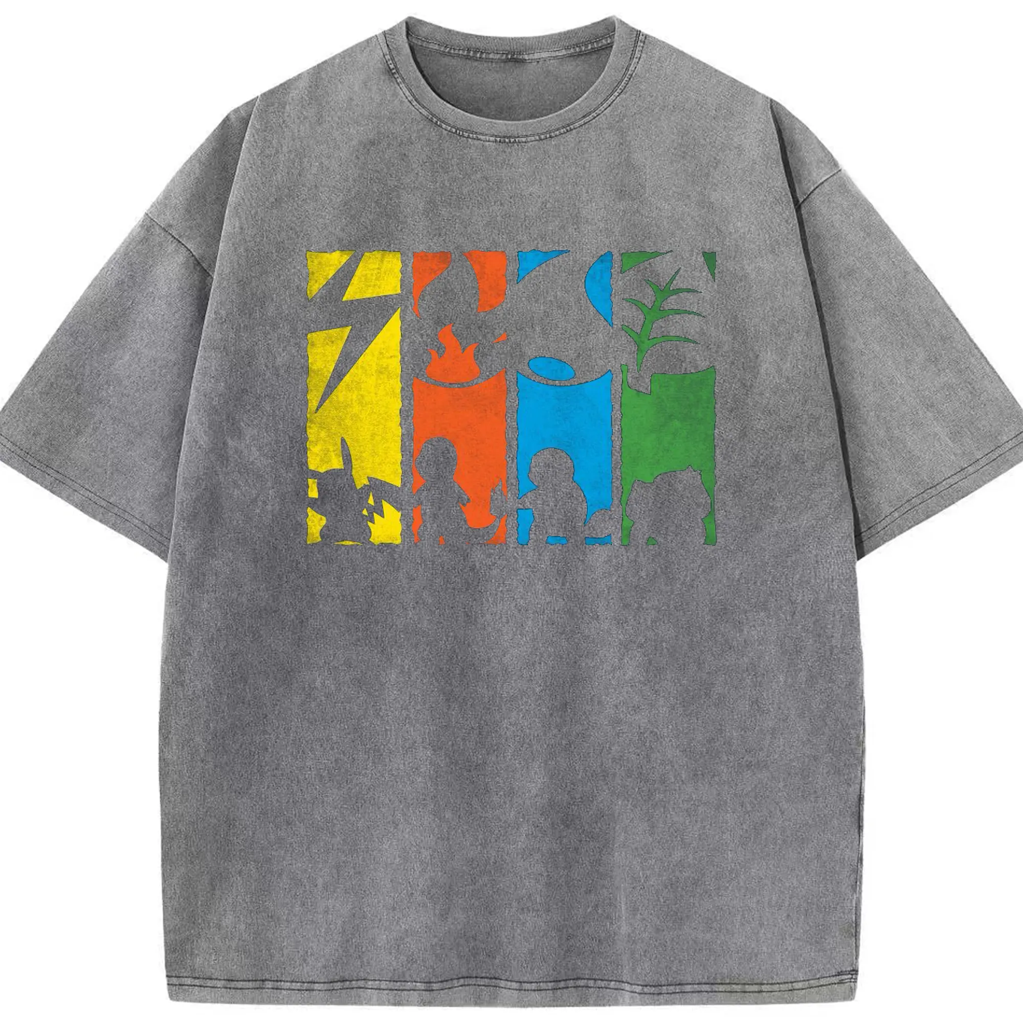 Pokémon Starter Pokémon Retro DIY - Washed Vintage Look 230g Cotton Oversized T-Shirt With Front Heat Transfer Print – Soft, Lightweight, Stylish Fit – Comfortable Casual Wear For Sports & Everyday Use