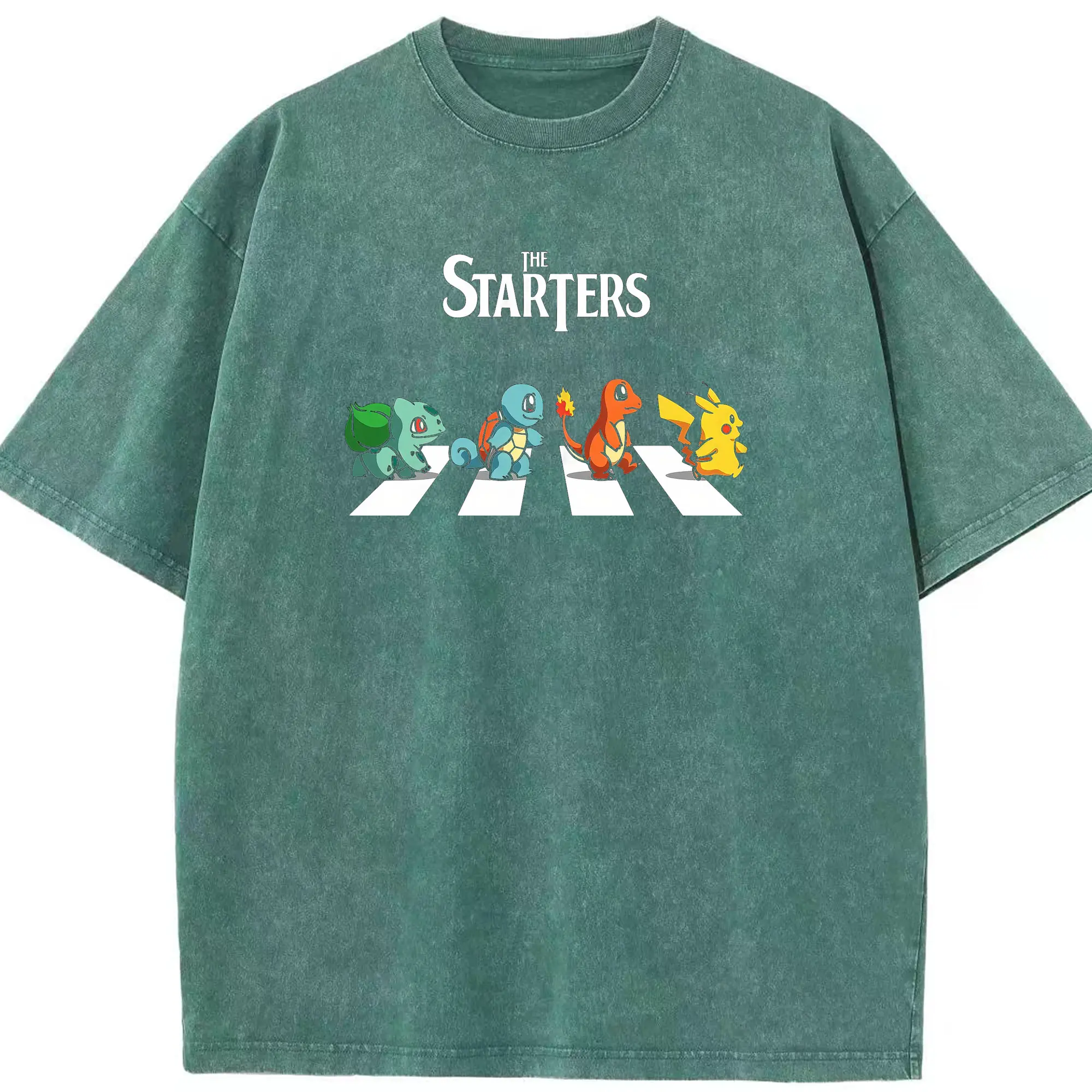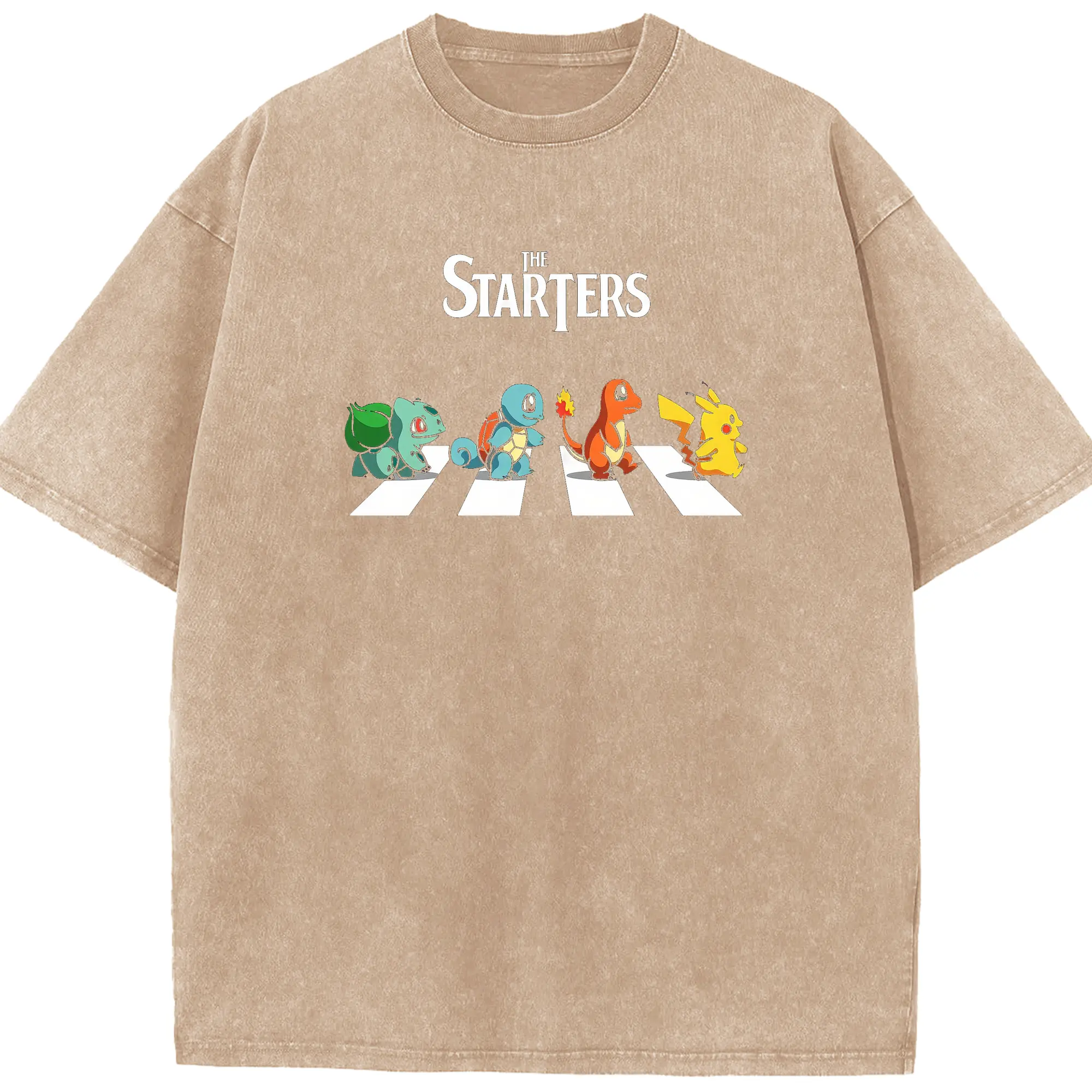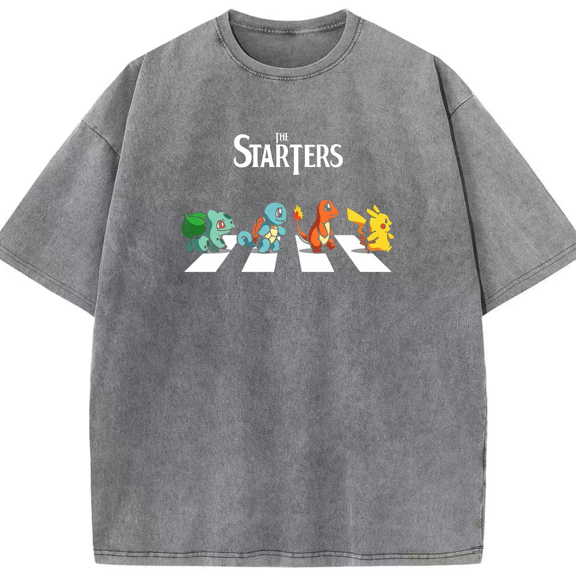 Pokémon Starters Abbey Road DIY - Washed Vintage Look 230g Cotton Oversized T-Shirt With Front Heat Transfer Print – Soft, Lightweight, Stylish Fit – Comfortable Casual Wear For Sports & Everyday Use