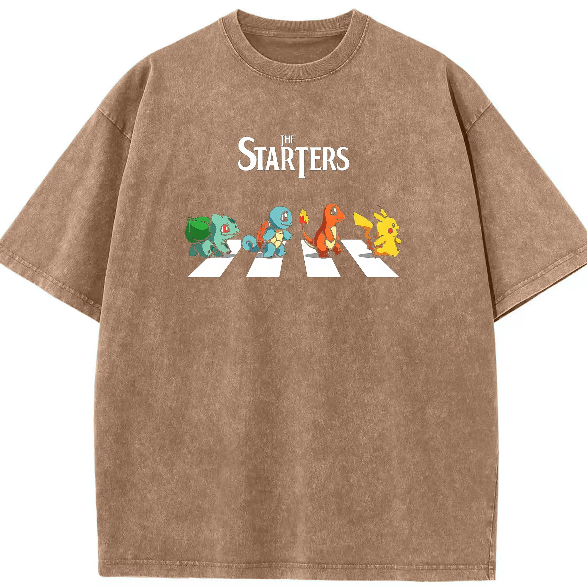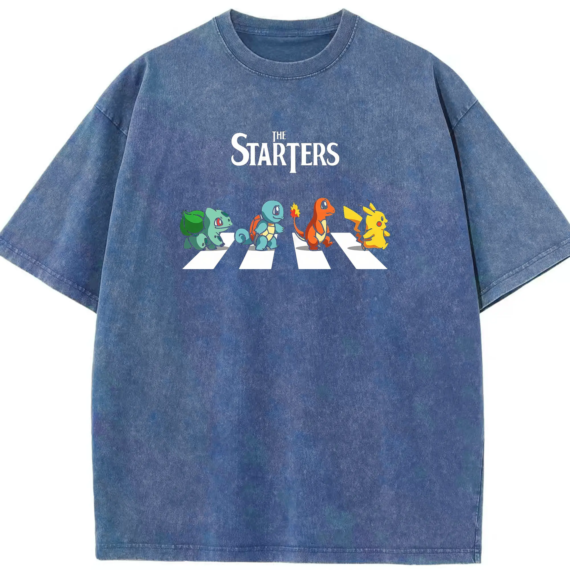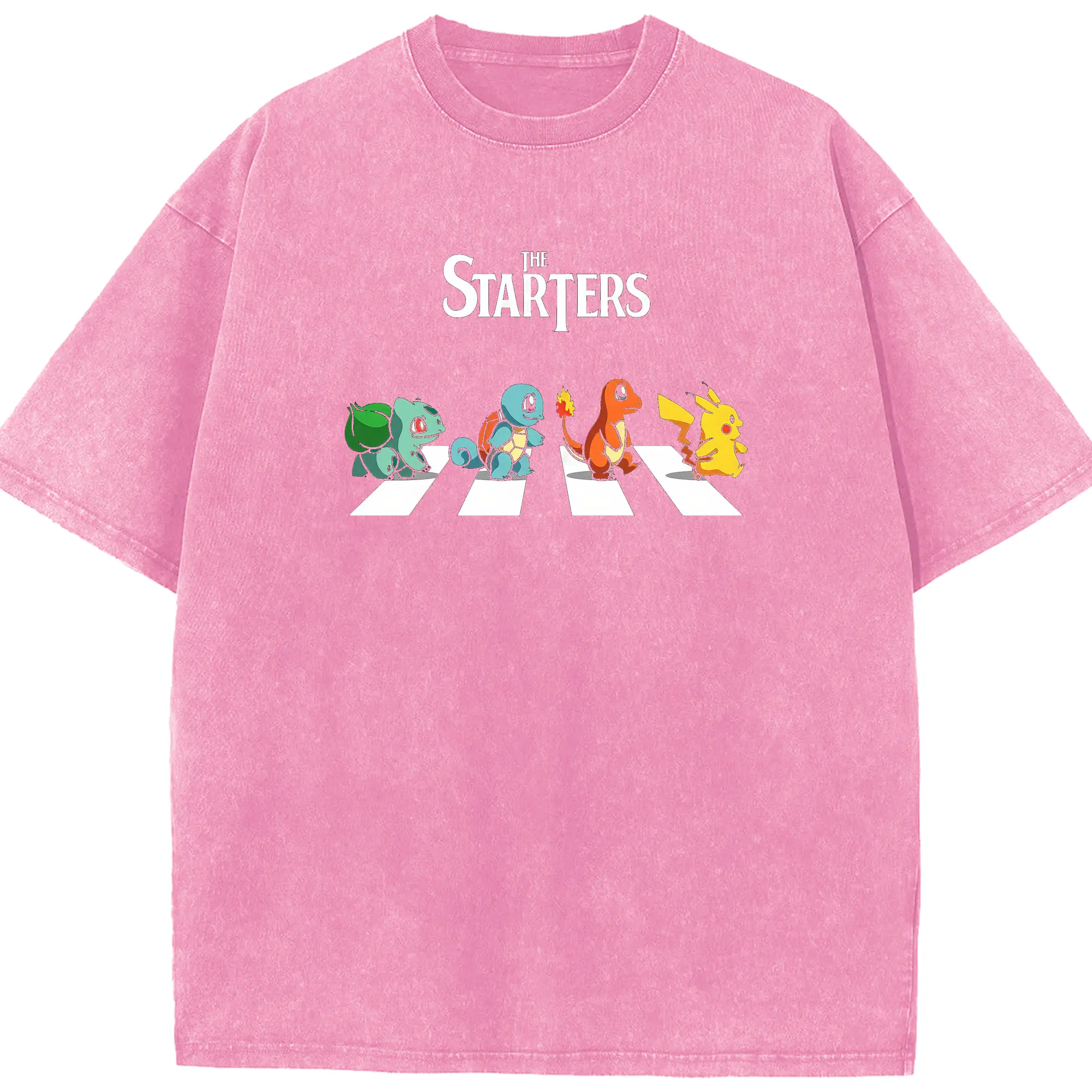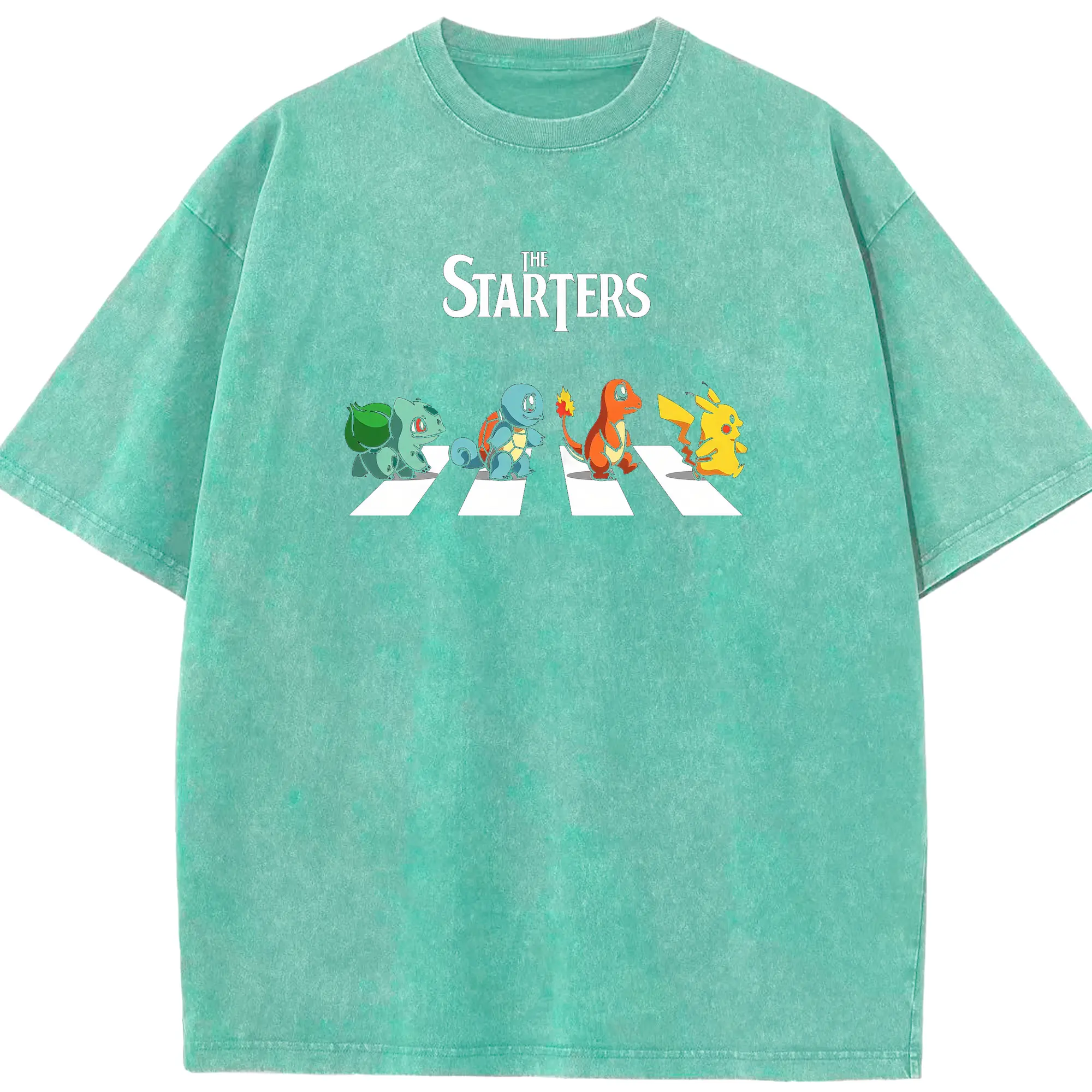 Pokémon Starters Abbey Road DIY - Washed Vintage Look 230g Cotton Oversized T-Shirt With Front Heat Transfer Print – Soft, Lightweight, Stylish Fit – Comfortable Casual Wear For Sports & Everyday Use