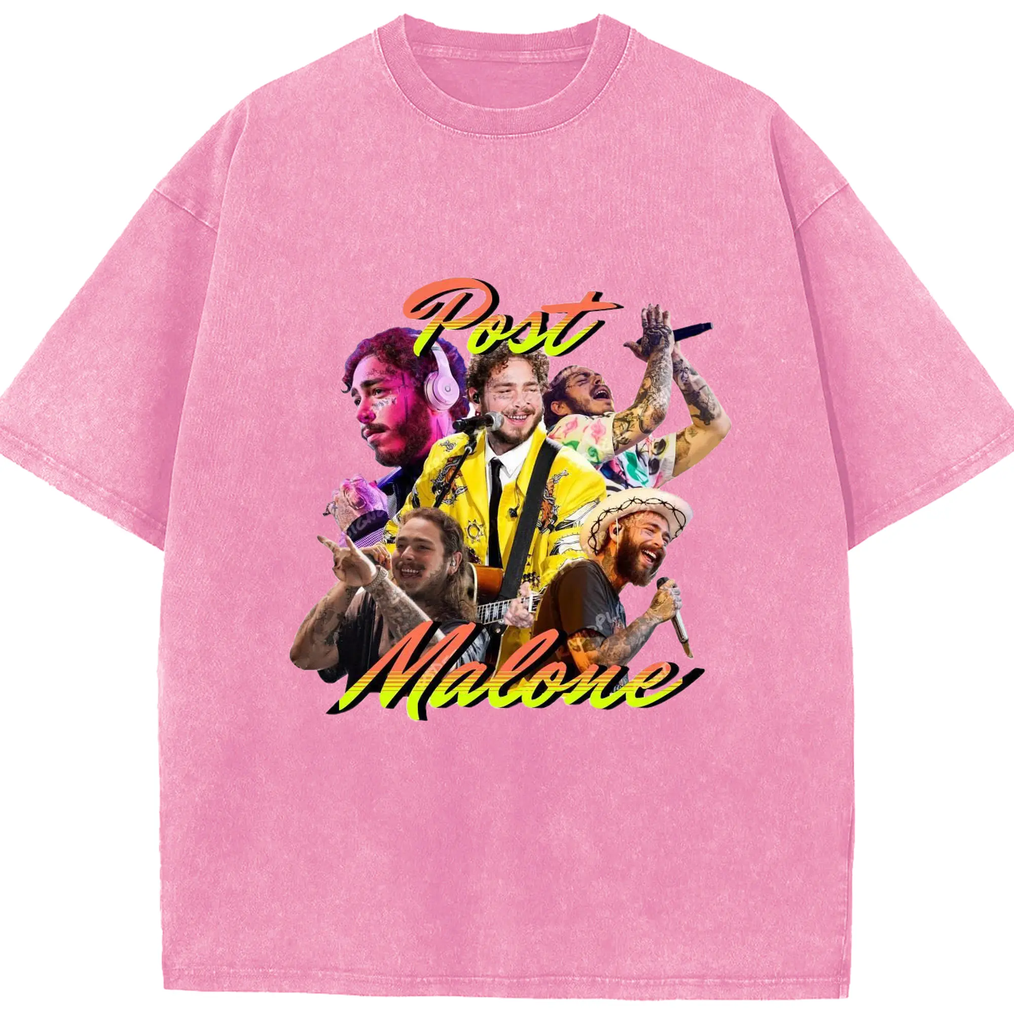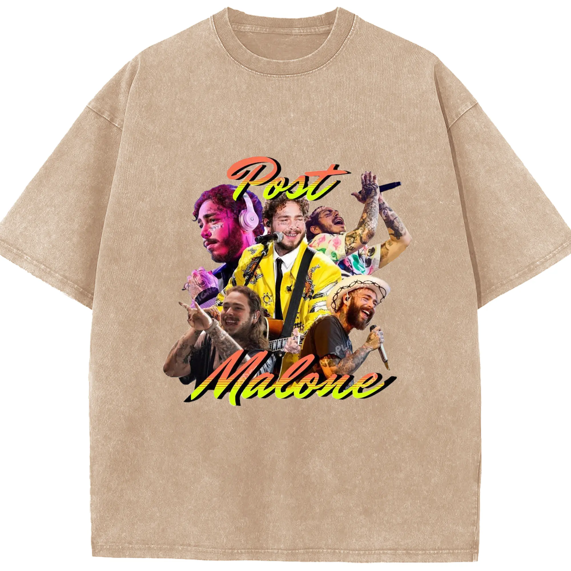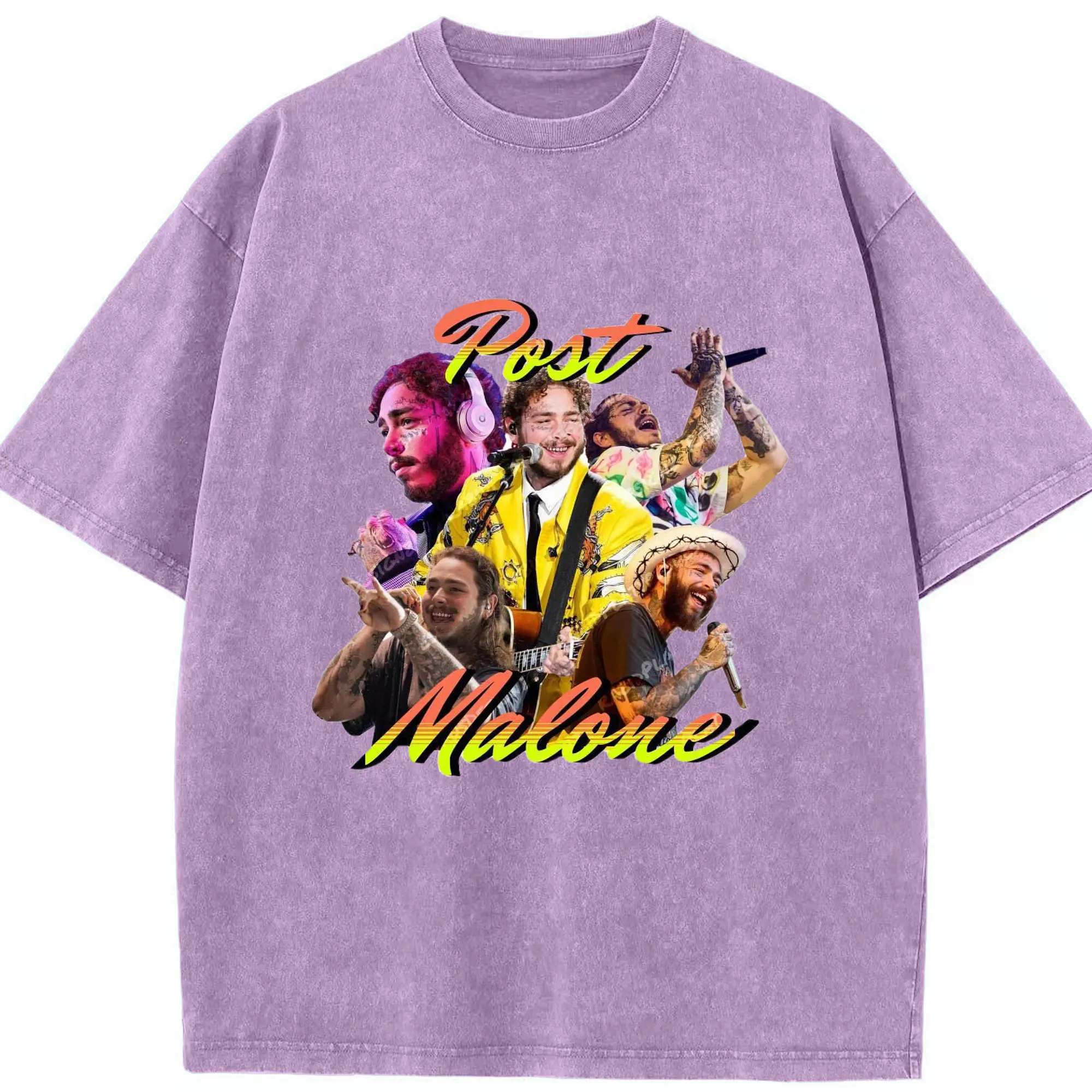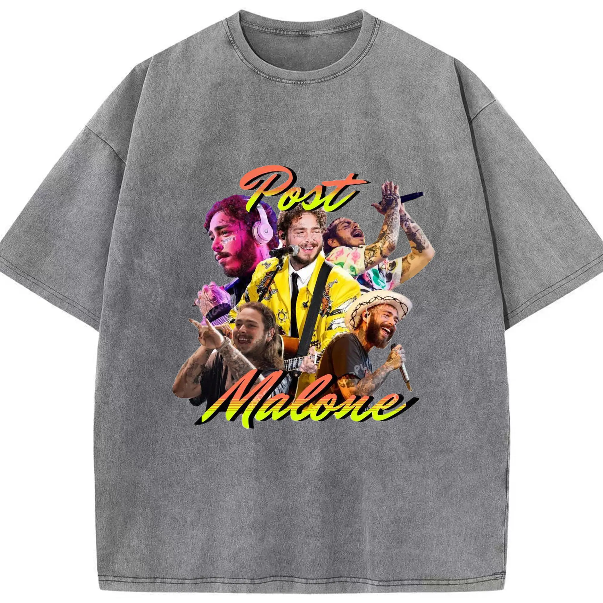 Post Malone Colorful Collage DIY - Washed Vintage Look 230g Cotton Oversized T-Shirt With Front Heat Transfer Print – Soft, Lightweight, Stylish Fit – Comfortable Casual Wear For Sports & Everyday Use