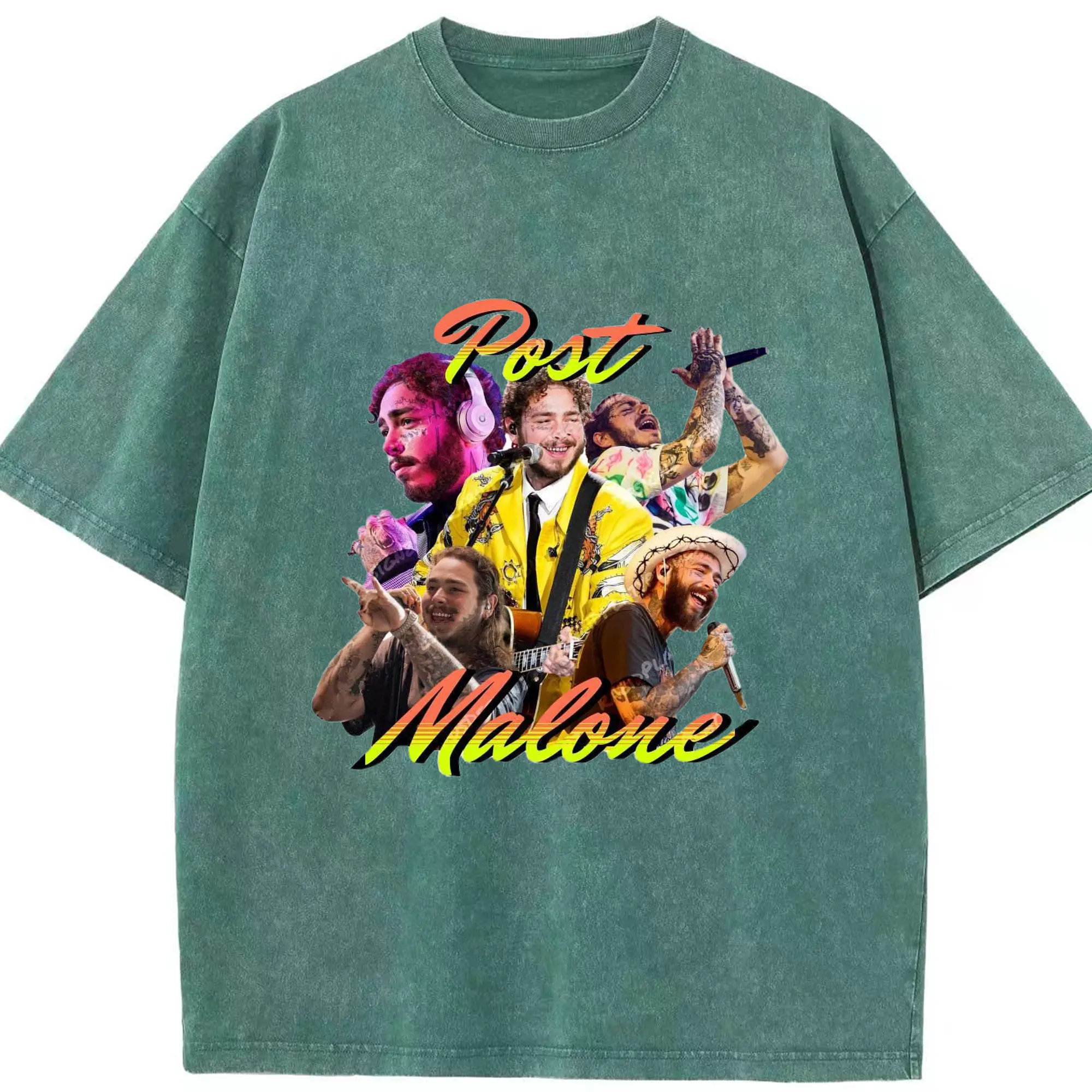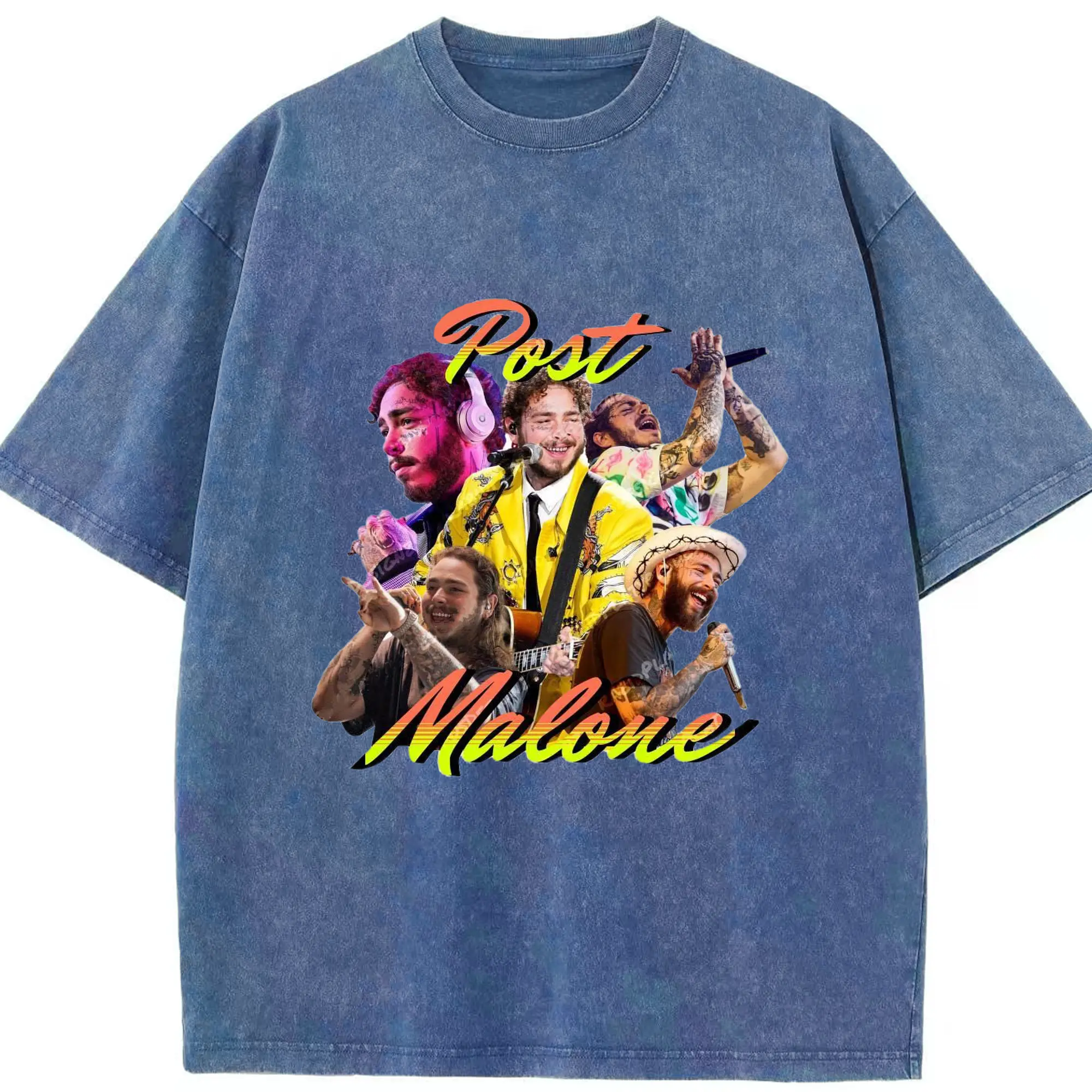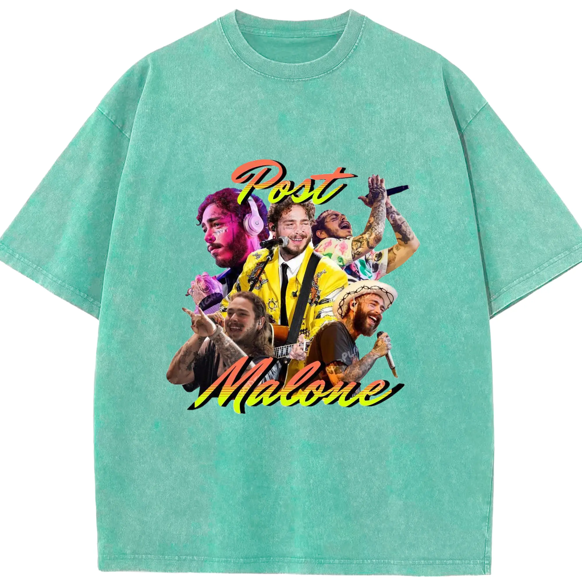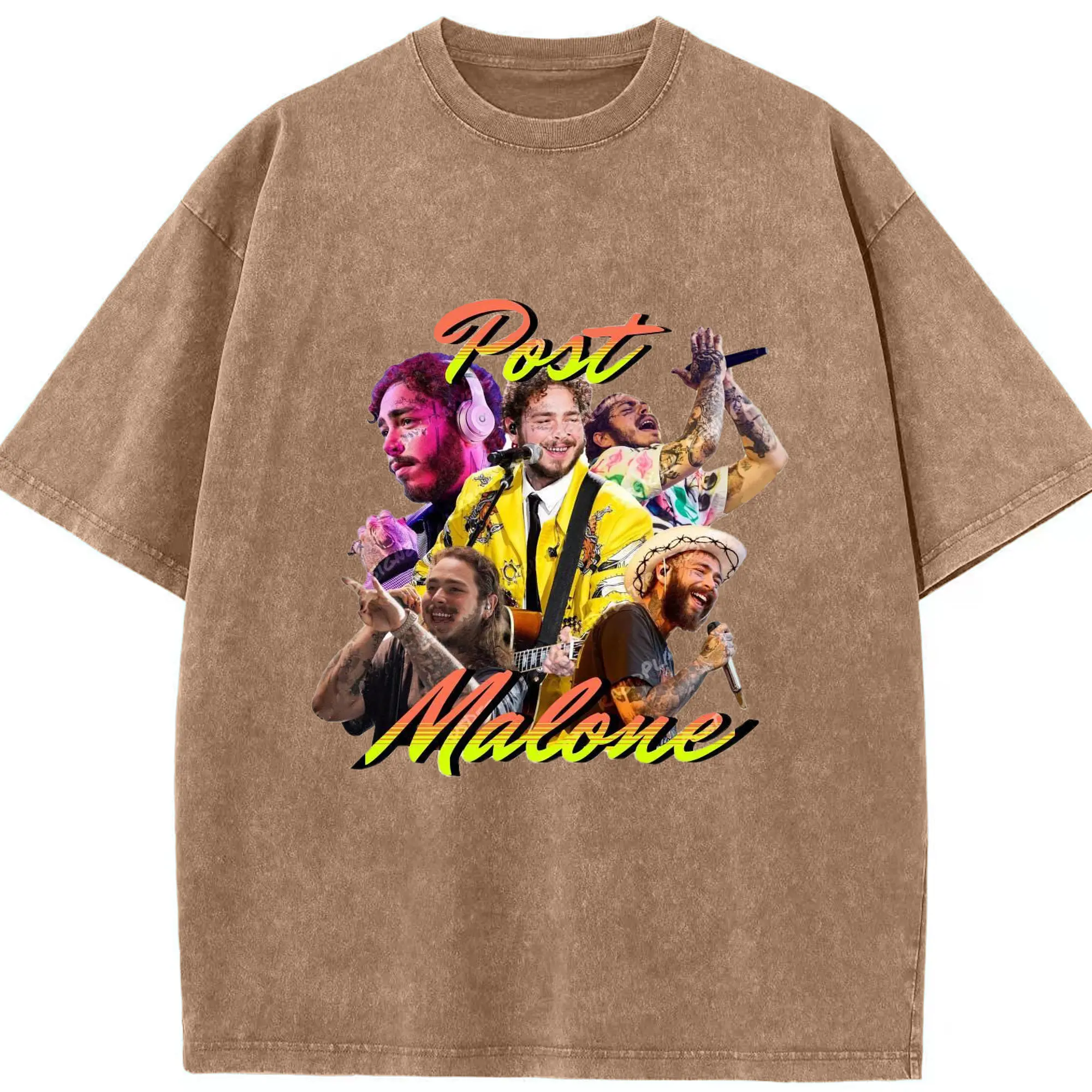 Post Malone Colorful Collage DIY - Washed Vintage Look 230g Cotton Oversized T-Shirt With Front Heat Transfer Print – Soft, Lightweight, Stylish Fit – Comfortable Casual Wear For Sports & Everyday Use
