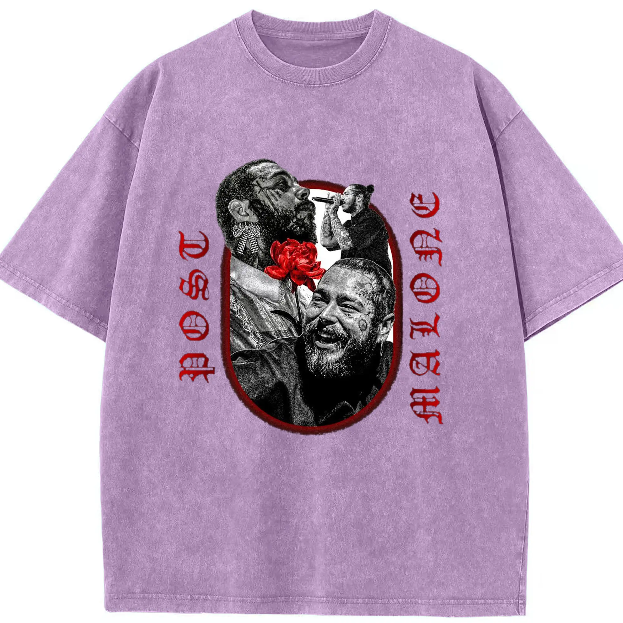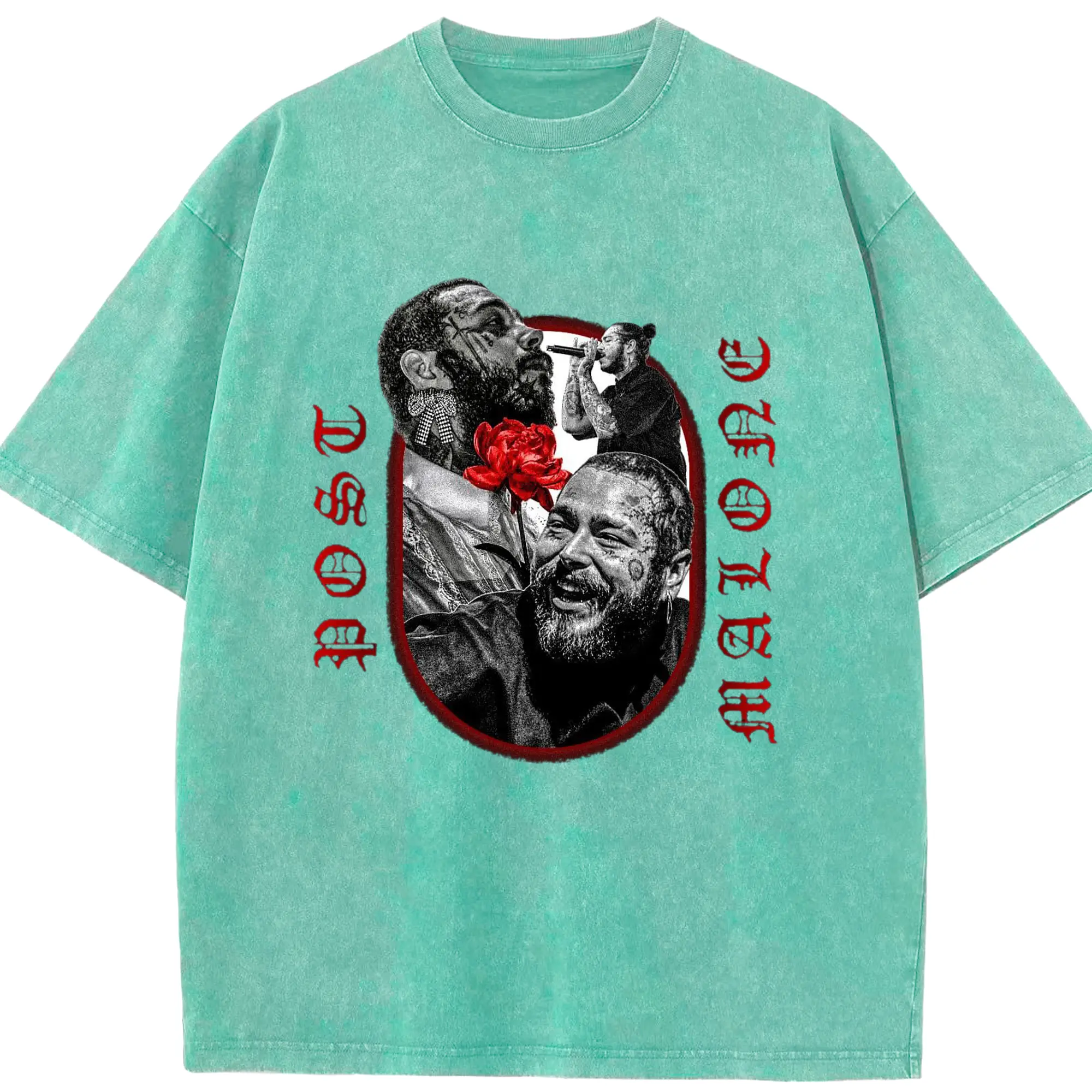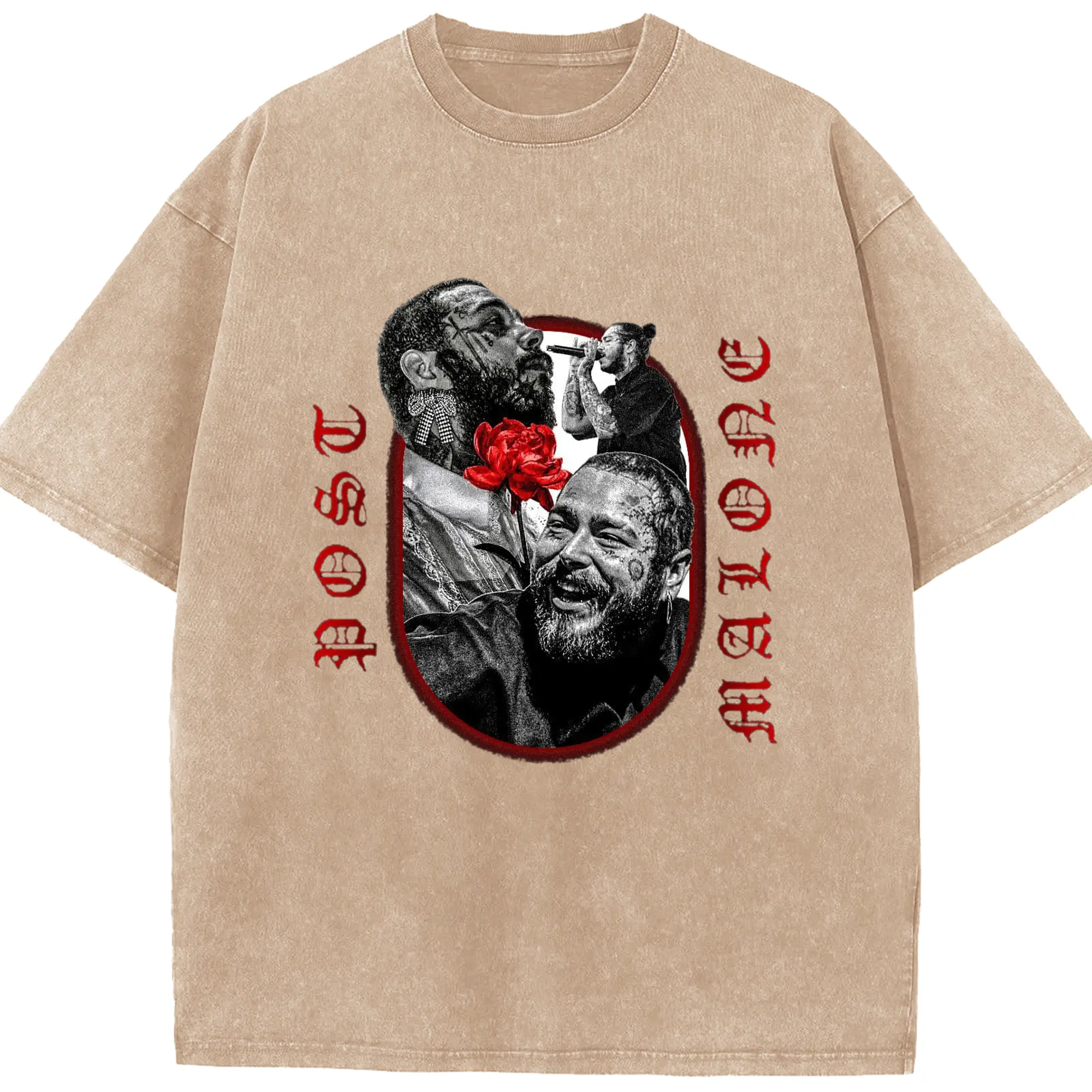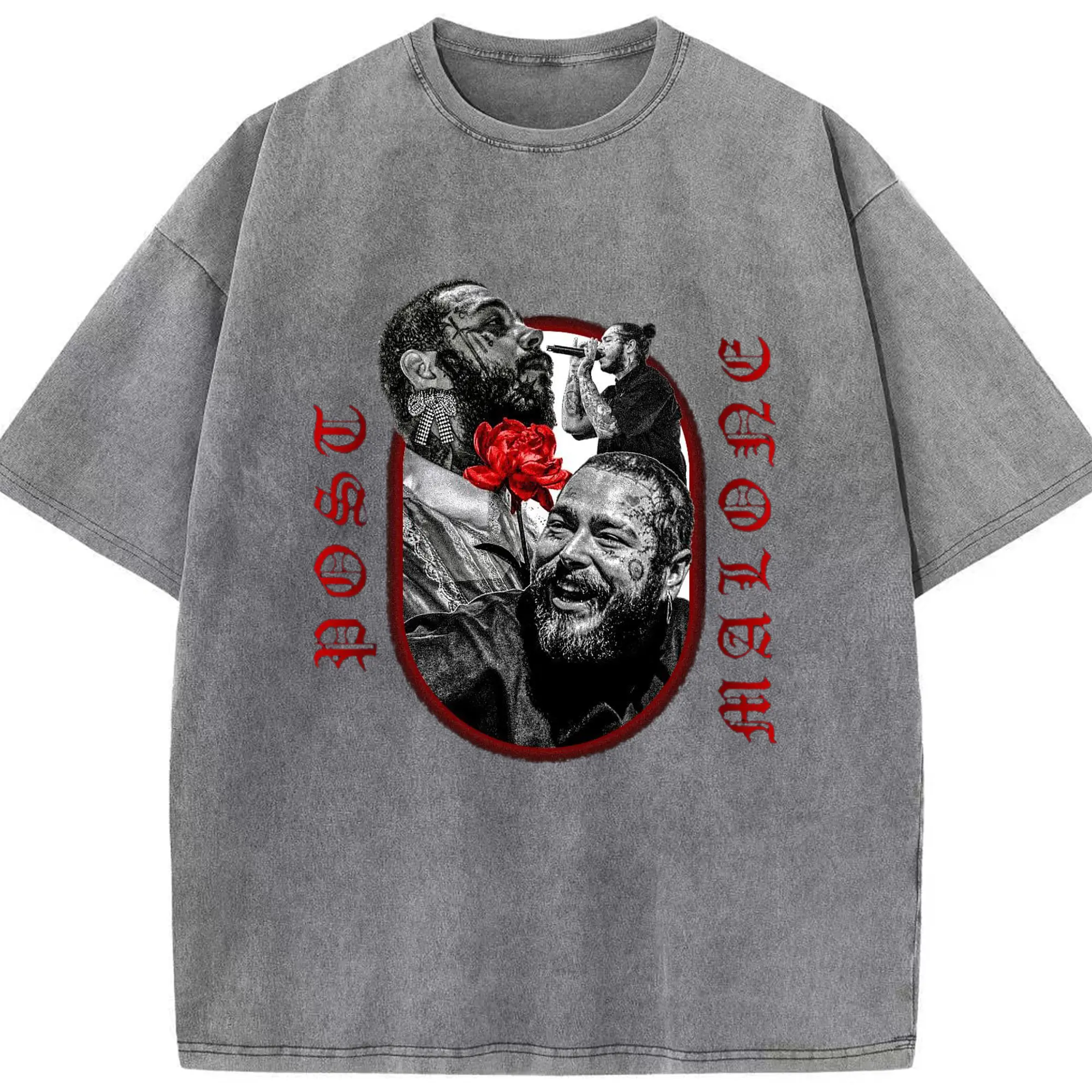 Post Malone Dark Art DIY - Washed Vintage Look 230g Cotton Oversized T-Shirt With Front Heat Transfer Print – Soft, Lightweight, Stylish Fit – Comfortable Casual Wear For Sports & Everyday Use