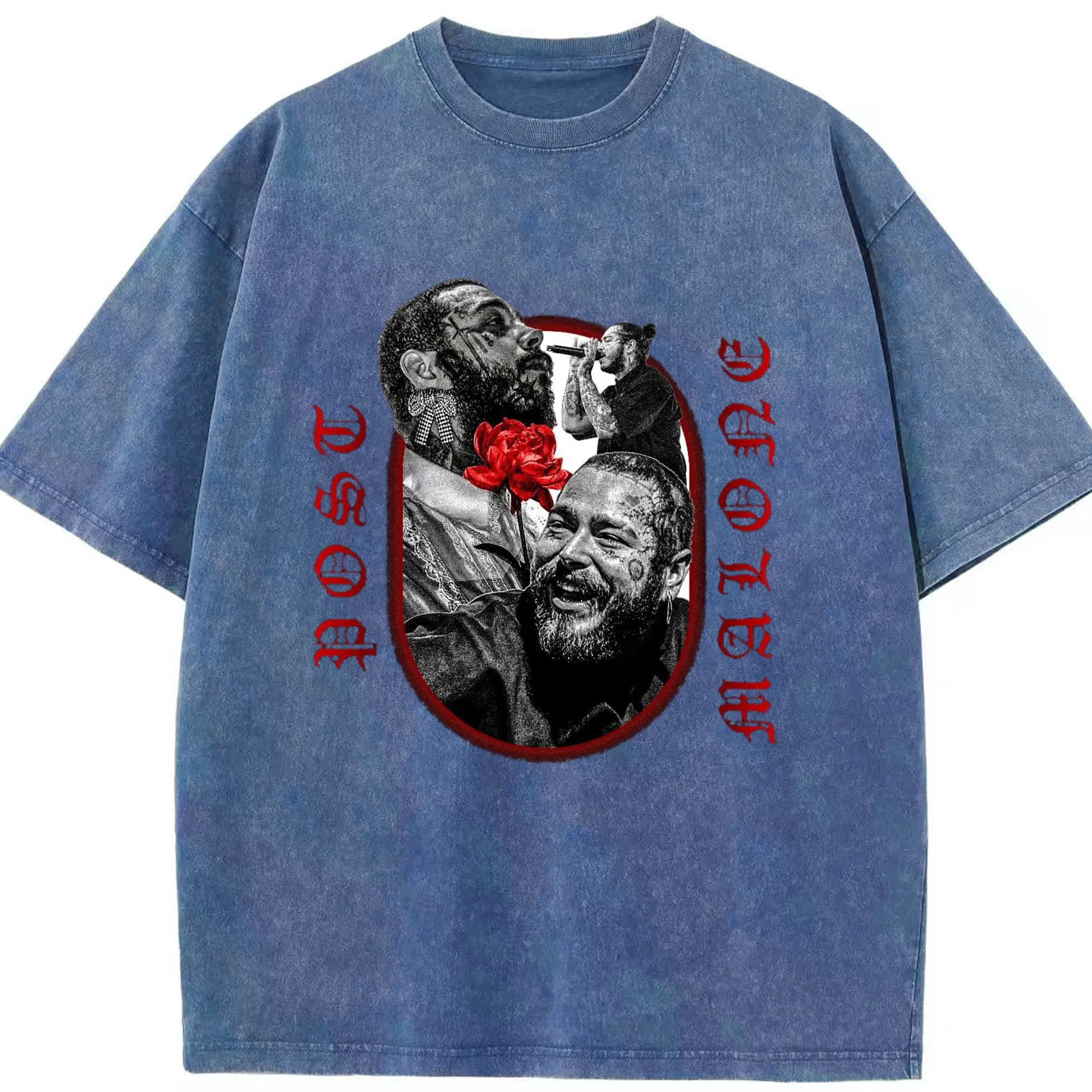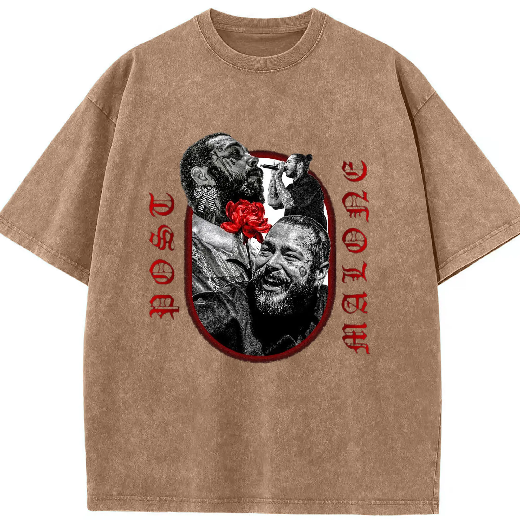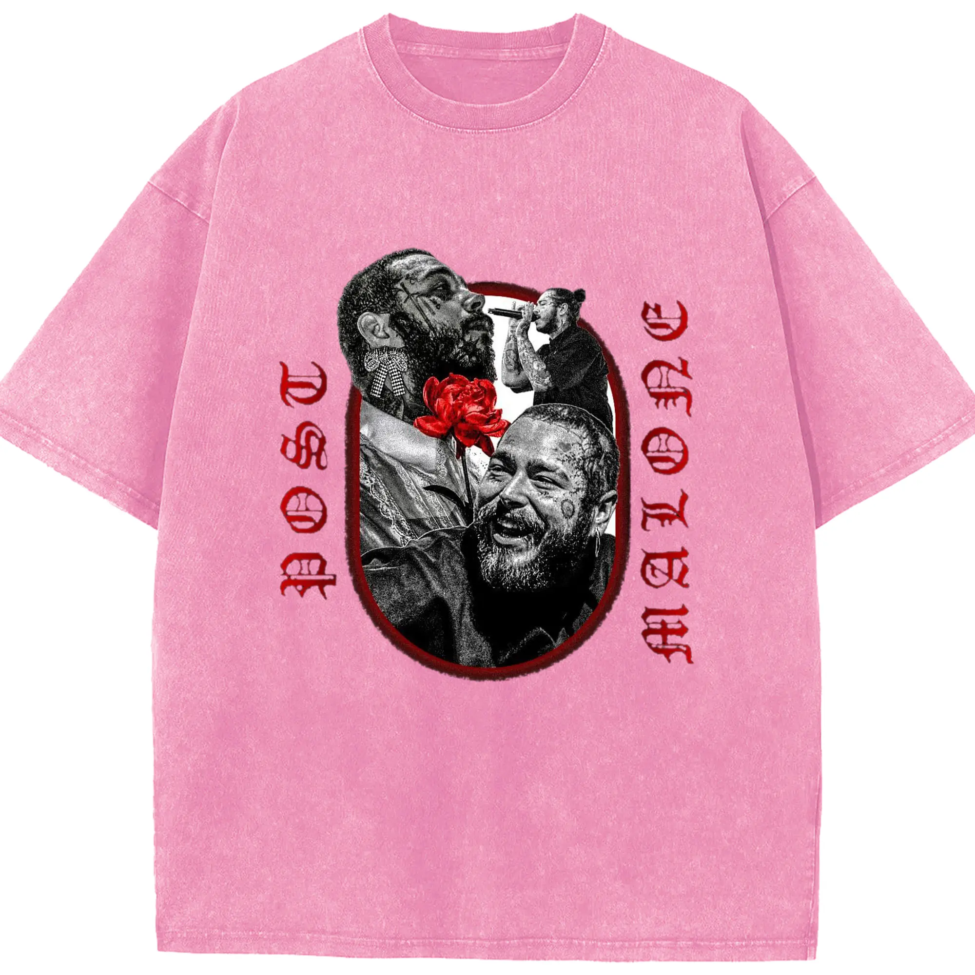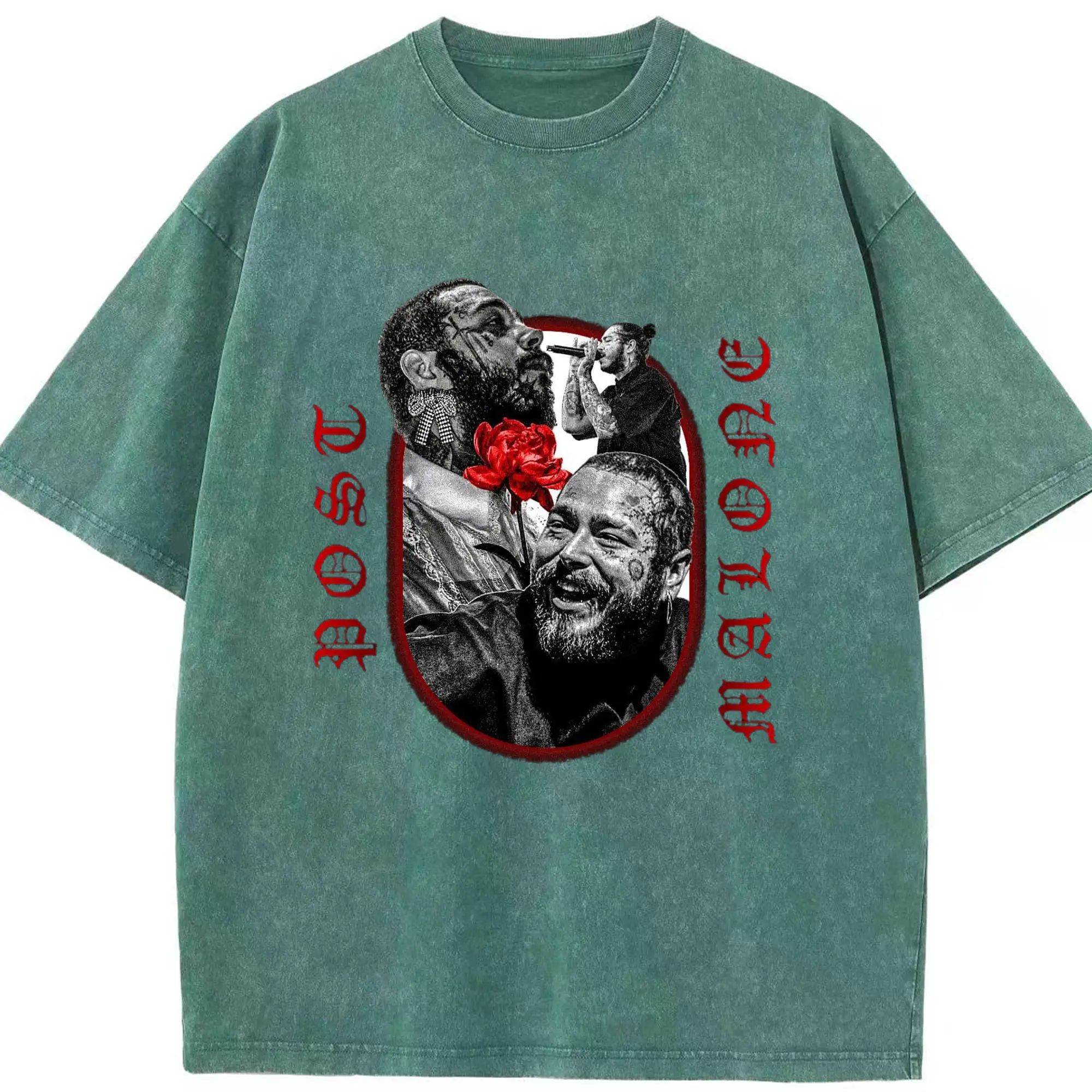 Post Malone Dark Art DIY - Washed Vintage Look 230g Cotton Oversized T-Shirt With Front Heat Transfer Print – Soft, Lightweight, Stylish Fit – Comfortable Casual Wear For Sports & Everyday Use