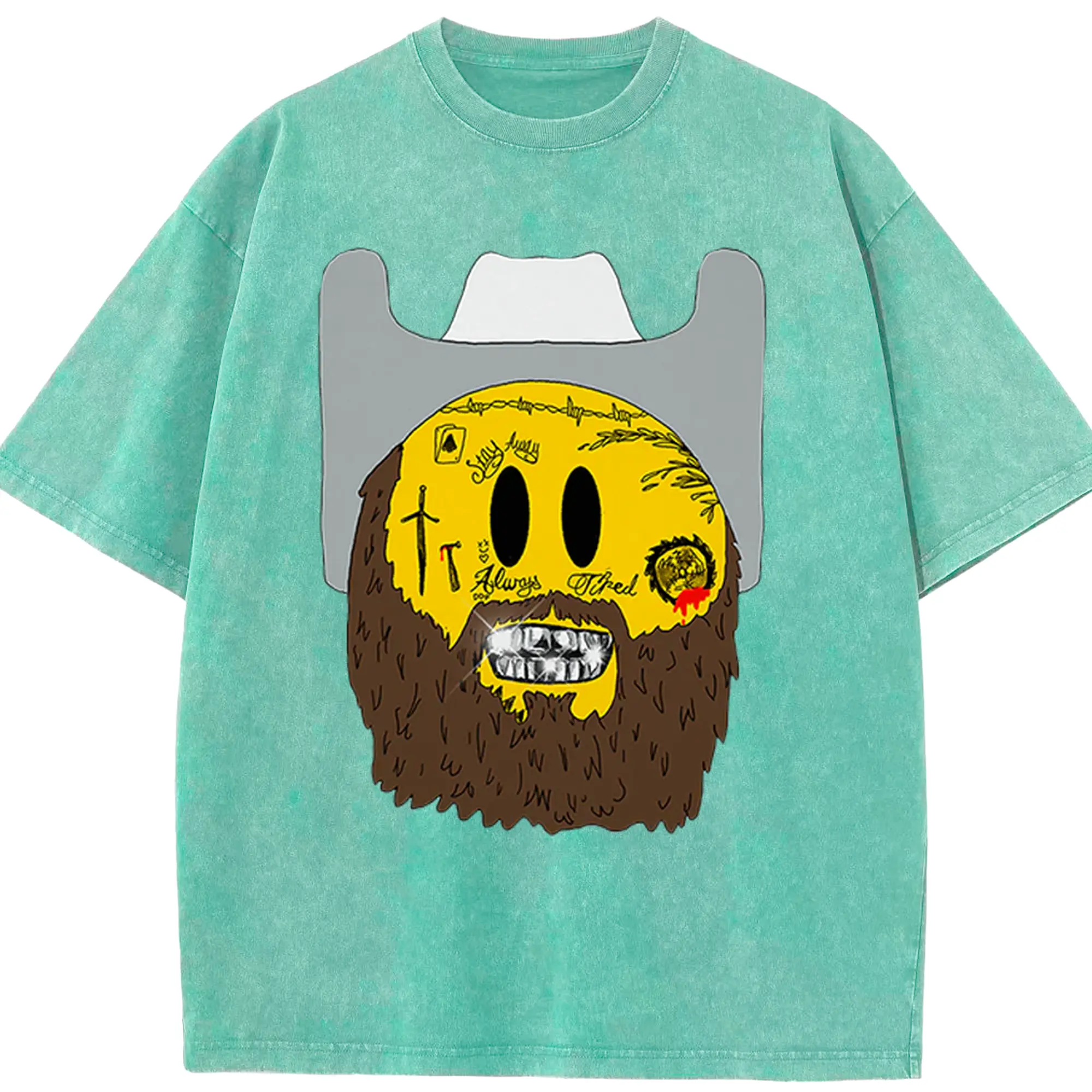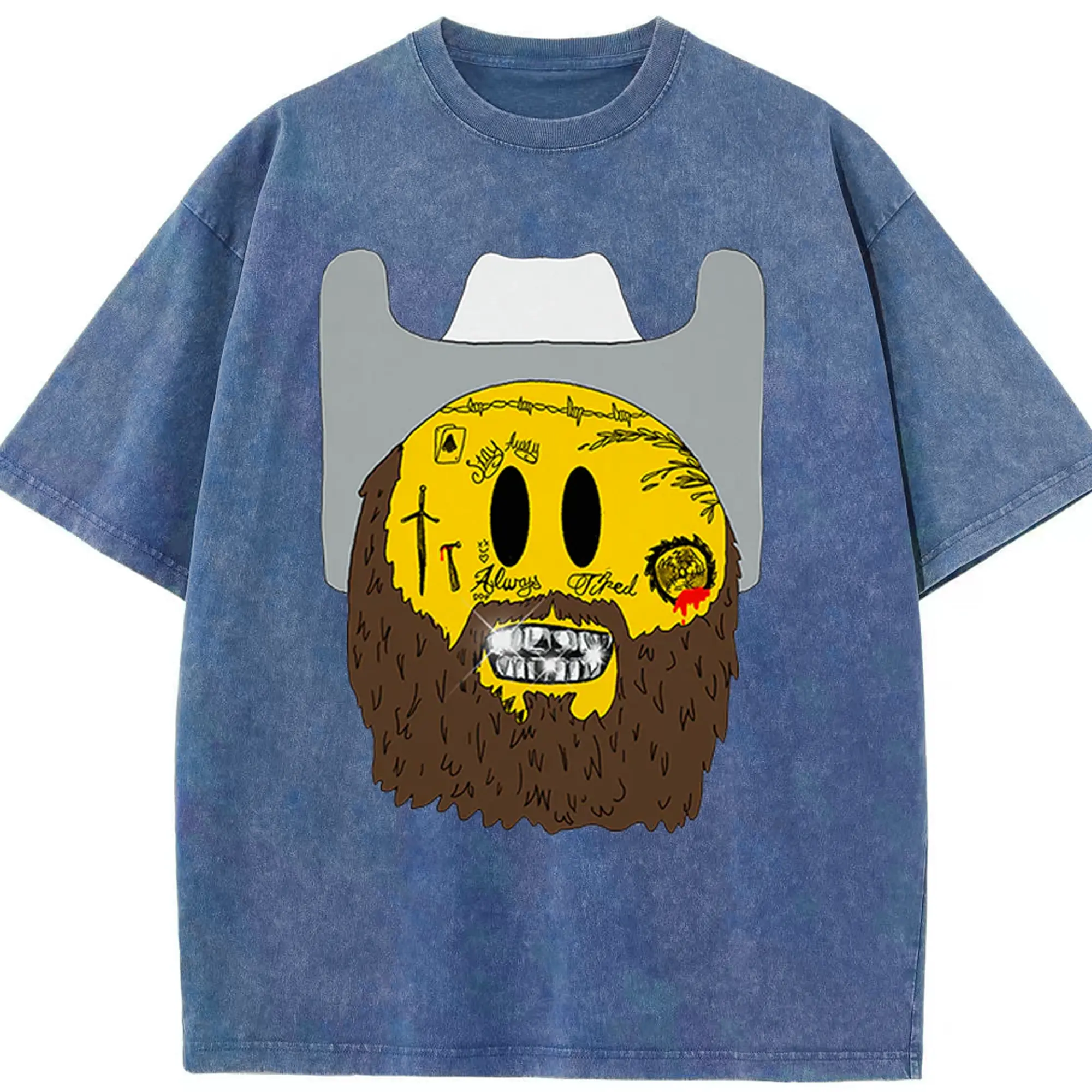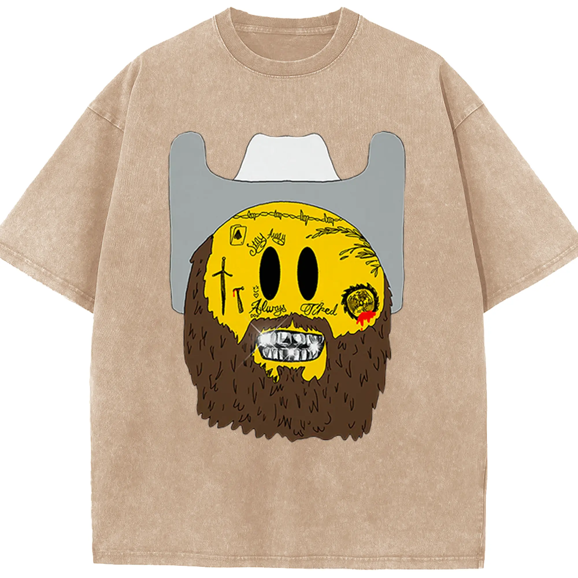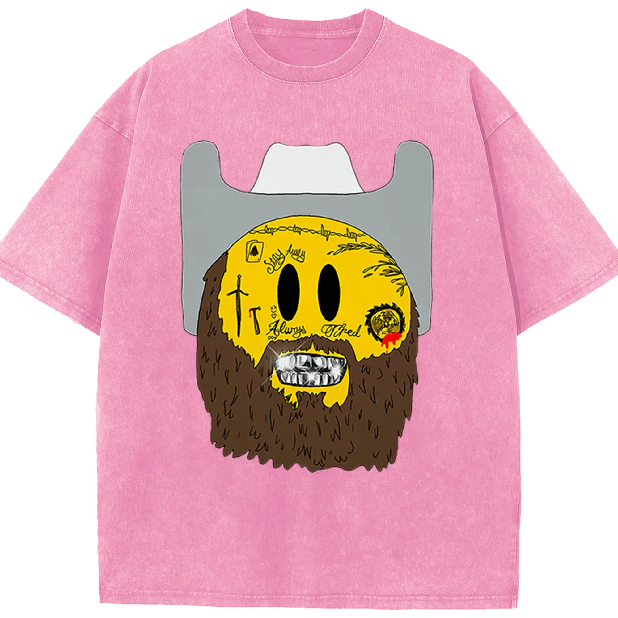 Post Malone Emoji Tour DIY Shirt - Washed Vintage Look 230g Cotton Oversized T-Shirt With Front Heat Transfer Print – Soft, Lightweight, Stylish Fit – Comfortable Casual Wear For Sports & Everyday Use