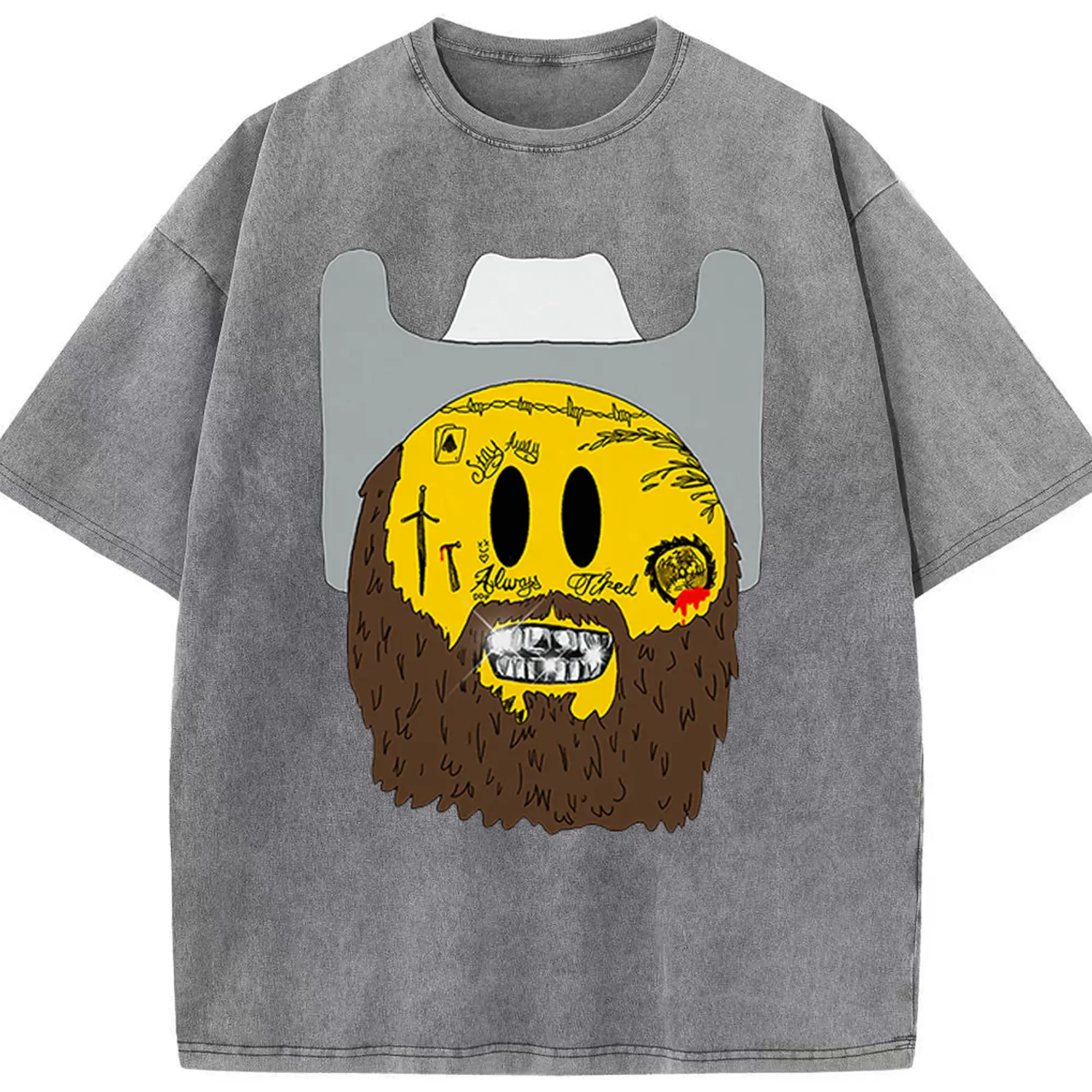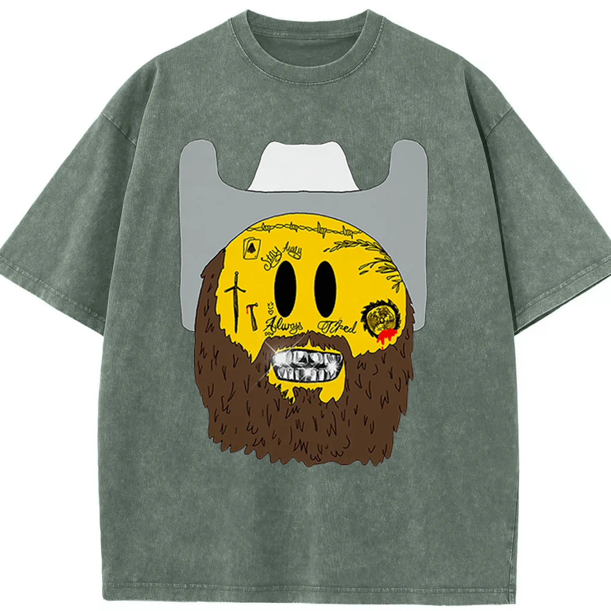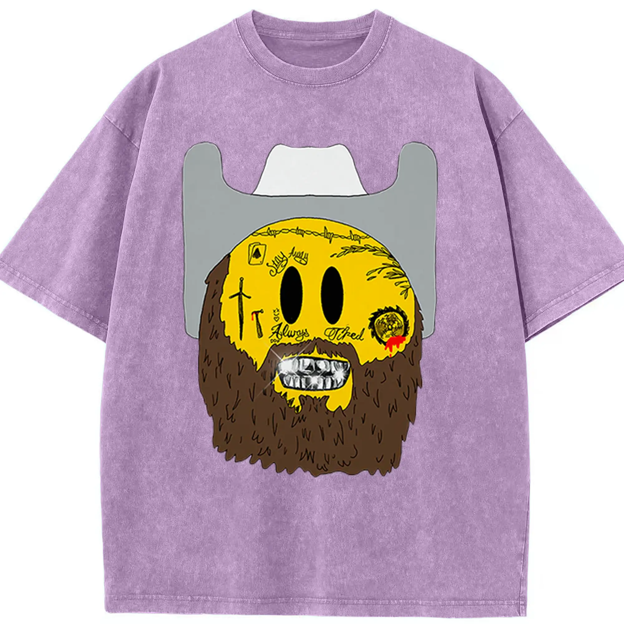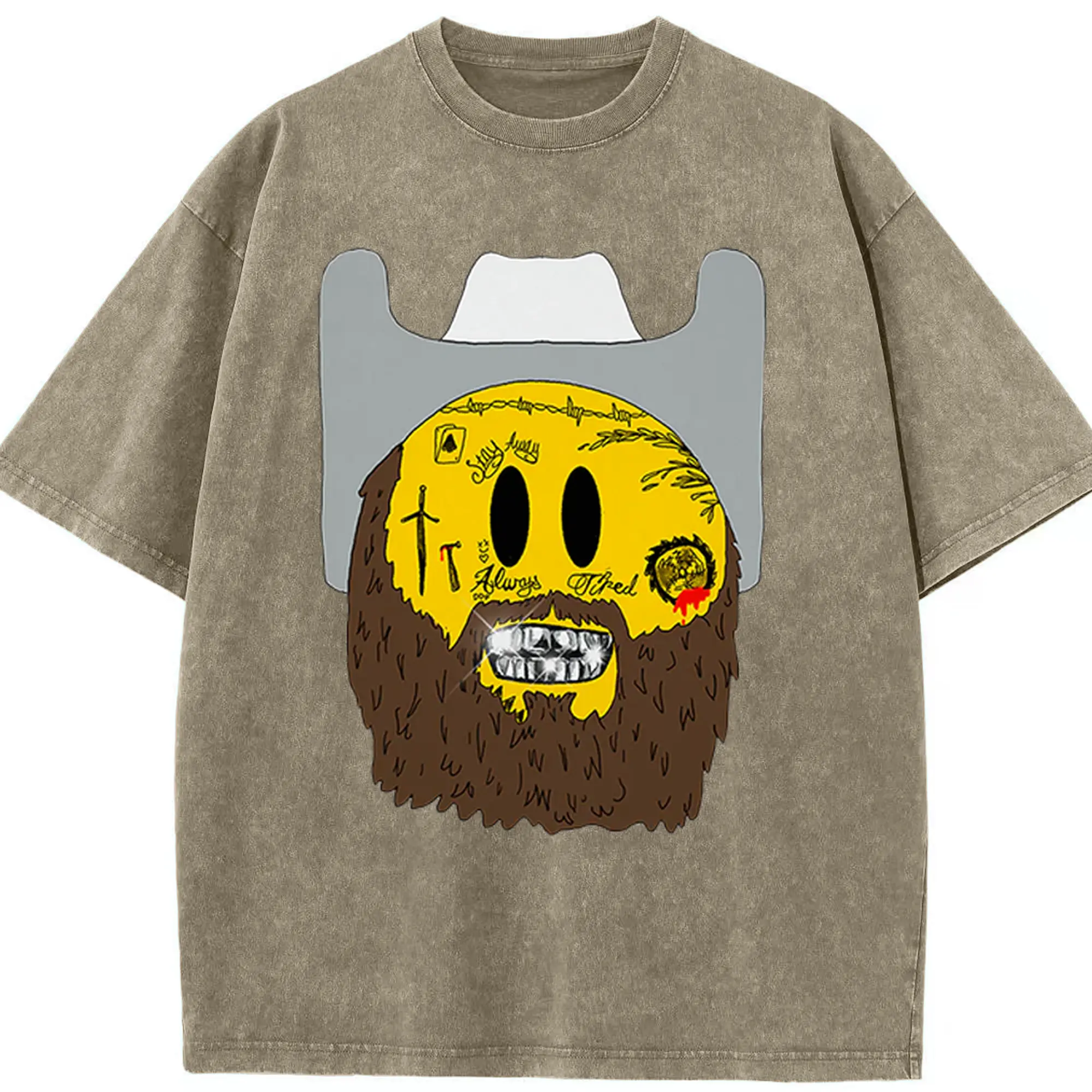 Post Malone Emoji Tour DIY Shirt - Washed Vintage Look 230g Cotton Oversized T-Shirt With Front Heat Transfer Print – Soft, Lightweight, Stylish Fit – Comfortable Casual Wear For Sports & Everyday Use
