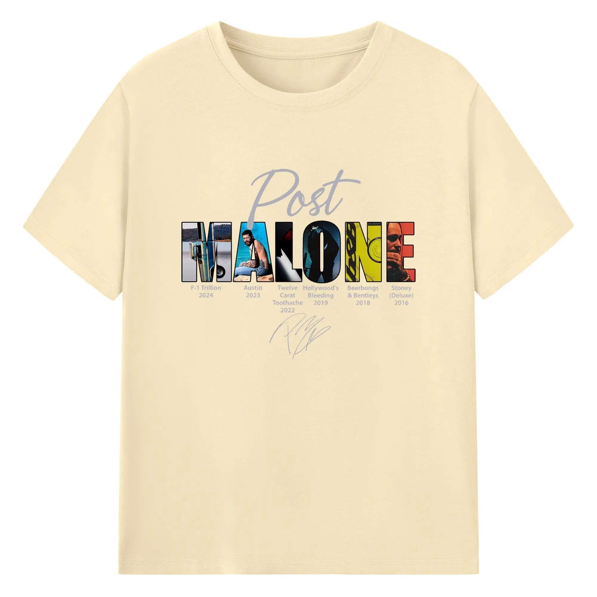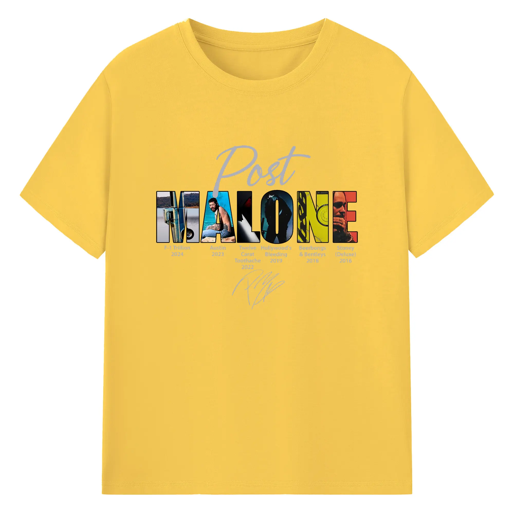 Post Malone Music Career Collage DIY - 180g Cotton T-Shirt With Front Heat Transfer Print – Soft, Lightweight, Fitted Design – Comfortable Casual Wear For Sports & Everyday Use