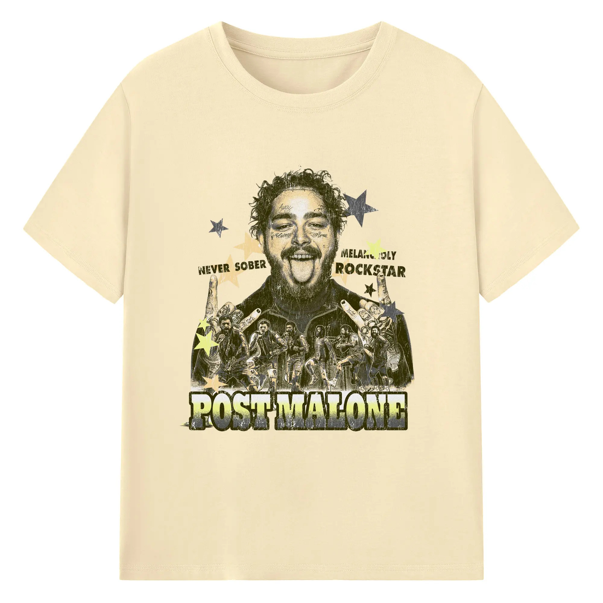 Post Malone Retro Rockstar DIY - 180g Cotton T-Shirt With Front Heat Transfer Print – Soft, Lightweight, Fitted Design – Comfortable Casual Wear For Sports & Everyday Use