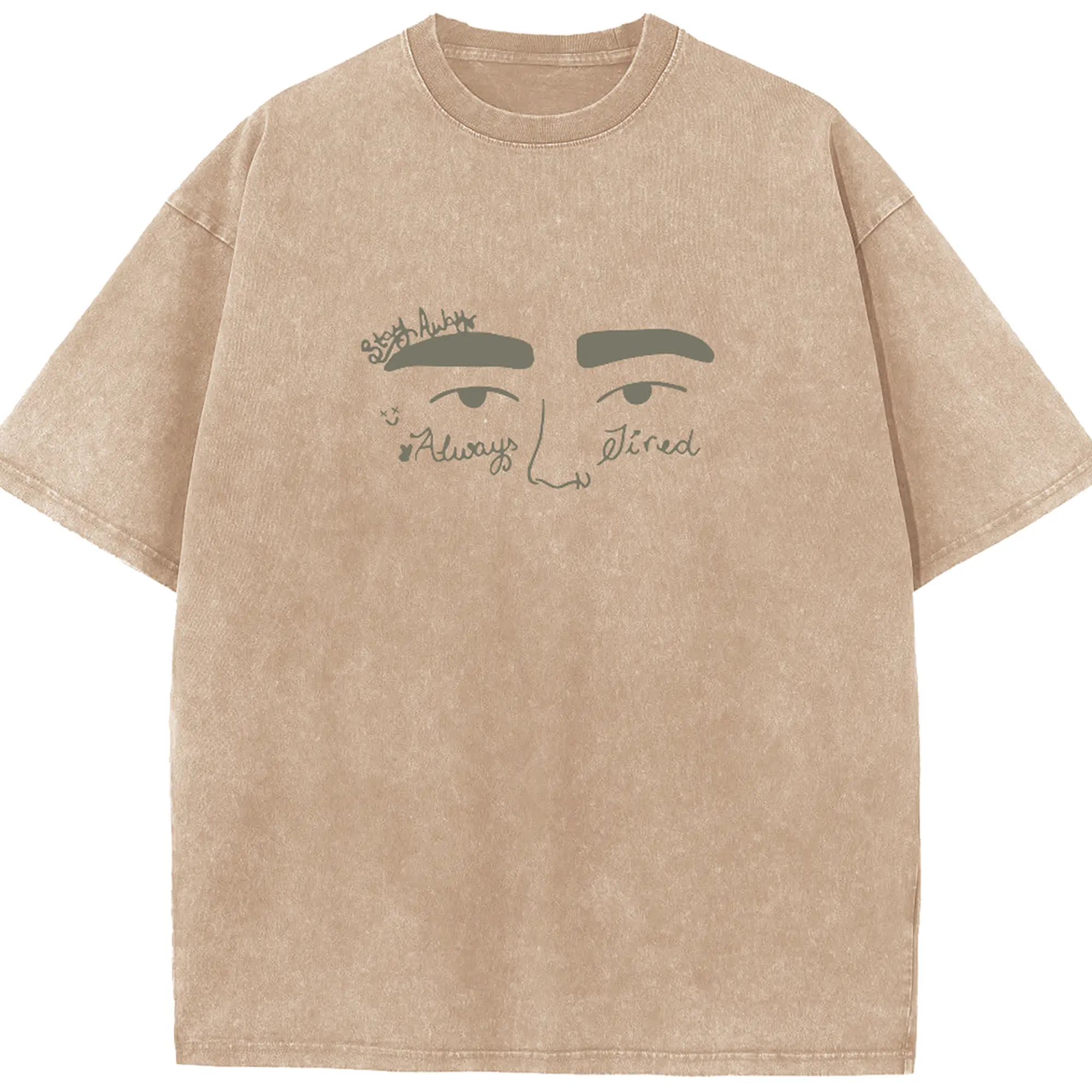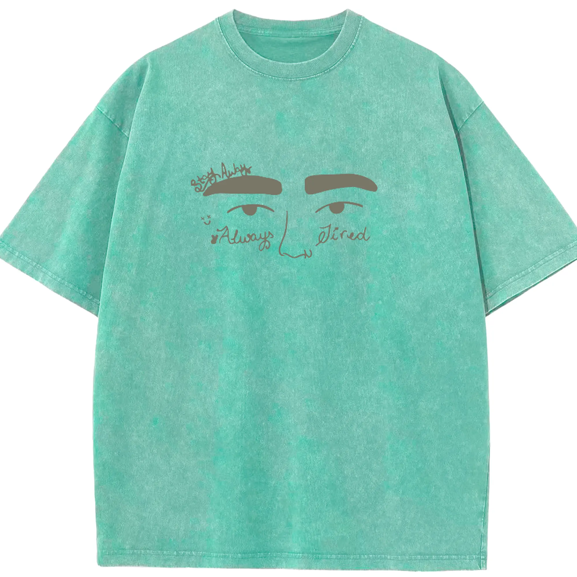 Post Malone “Stay Away & Always Tired” Minimalist DIY Shirt - Washed Vintage Look 230g Cotton Oversized T-Shirt With Front Heat Transfer Print – Soft, Lightweight, Stylish Fit – Comfortable Casual Wear For Sports & Everyday Use