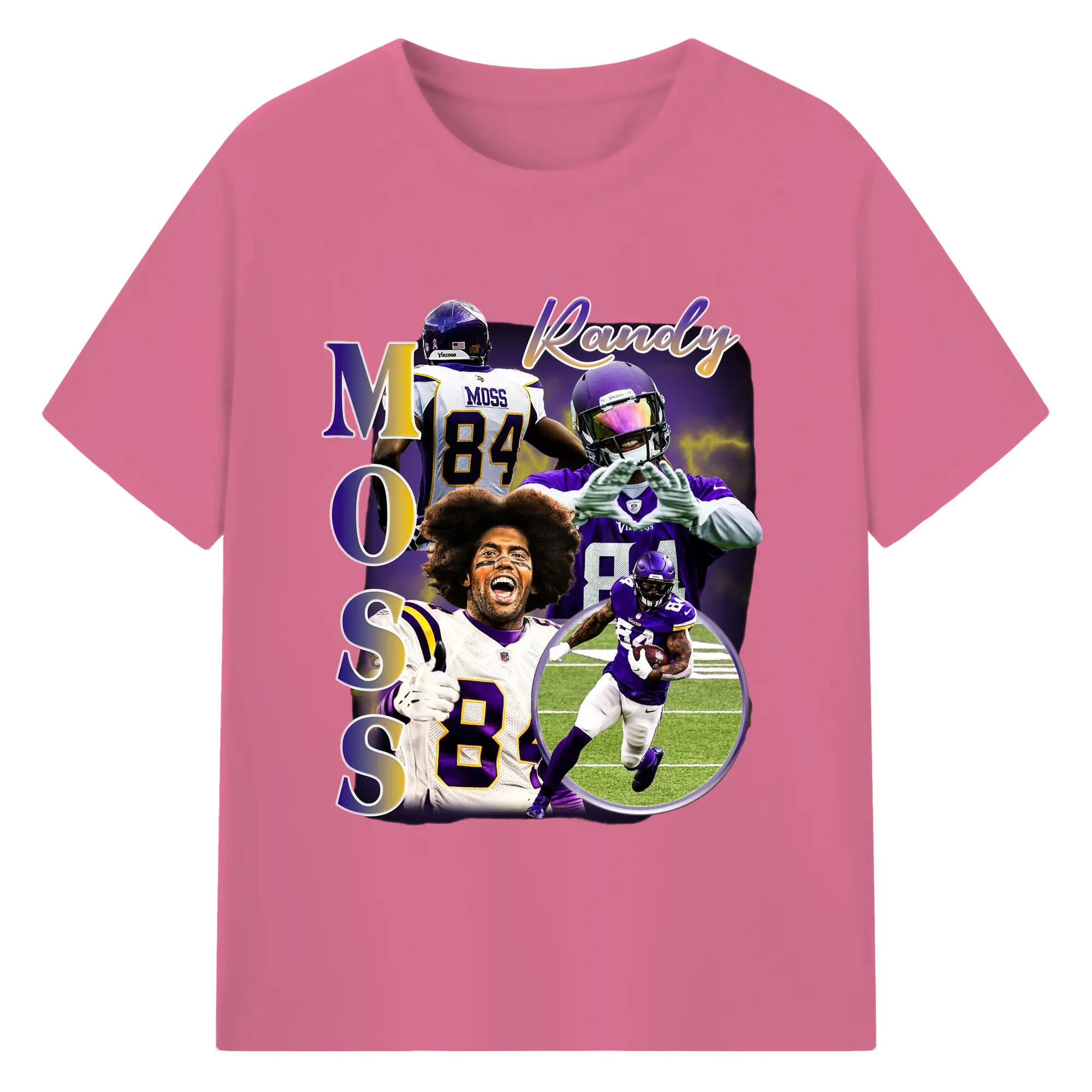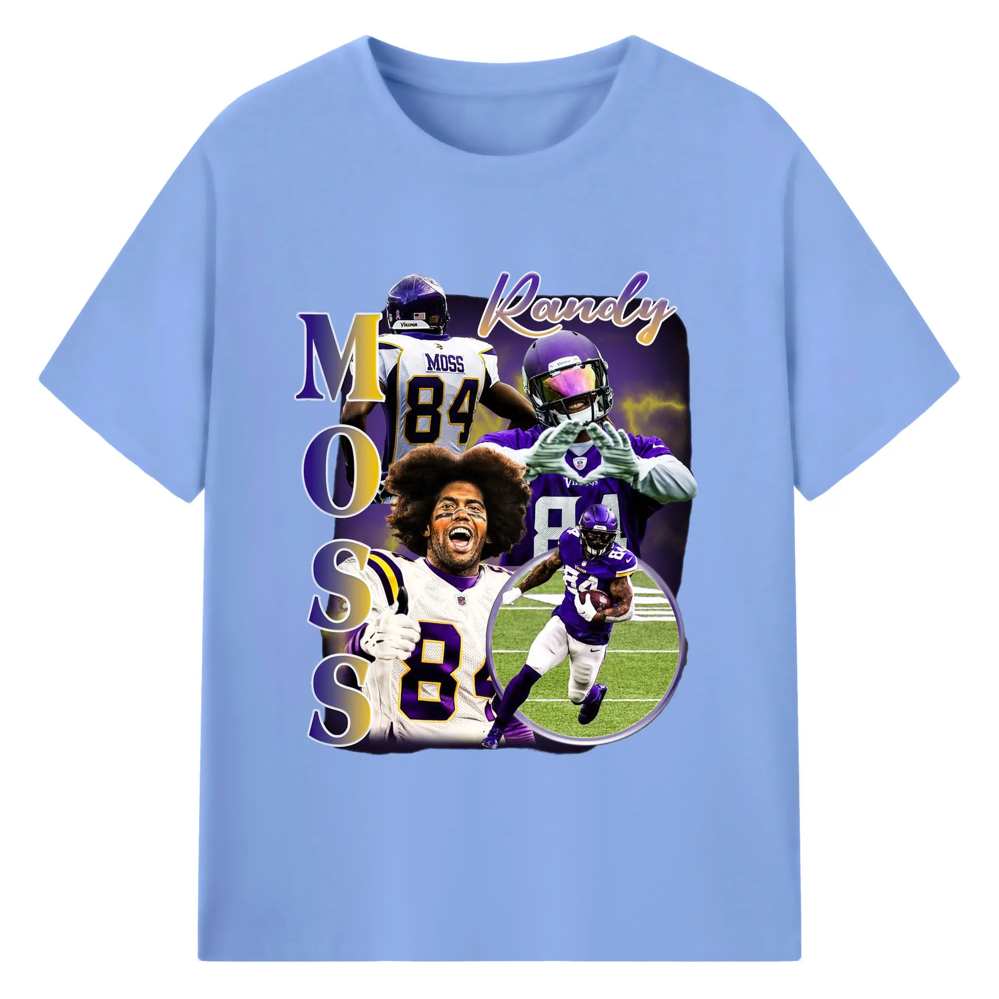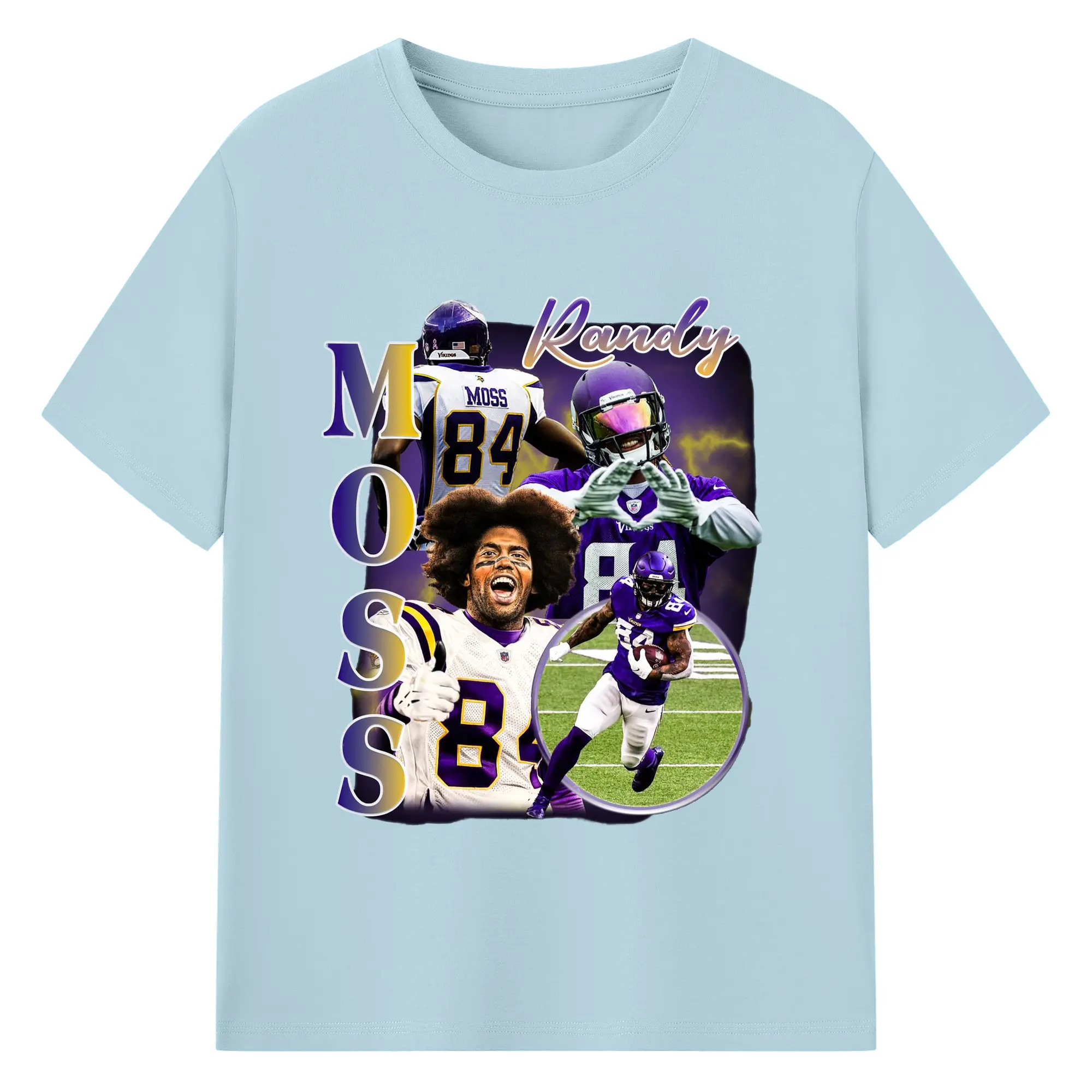 Randy Moss Minnesota Vikings #84 NFL Legend DIY Shirt - 180g Cotton T-Shirt With Front Heat Transfer Print – Soft, Lightweight, Fitted Design – Comfortable Casual Wear For Sports & Everyday Use