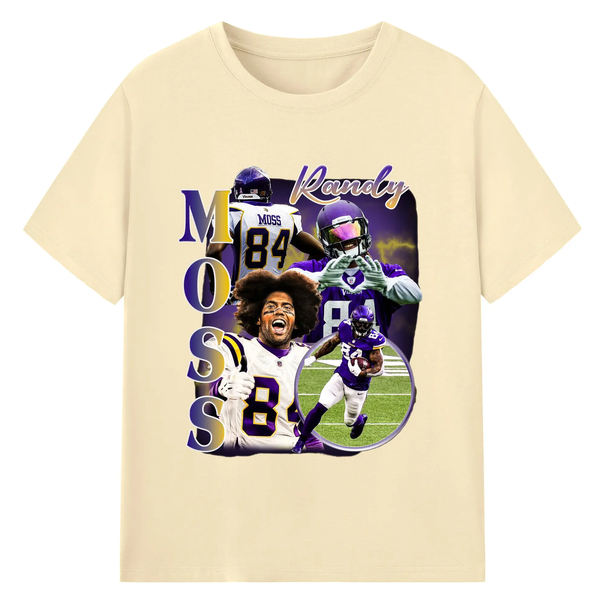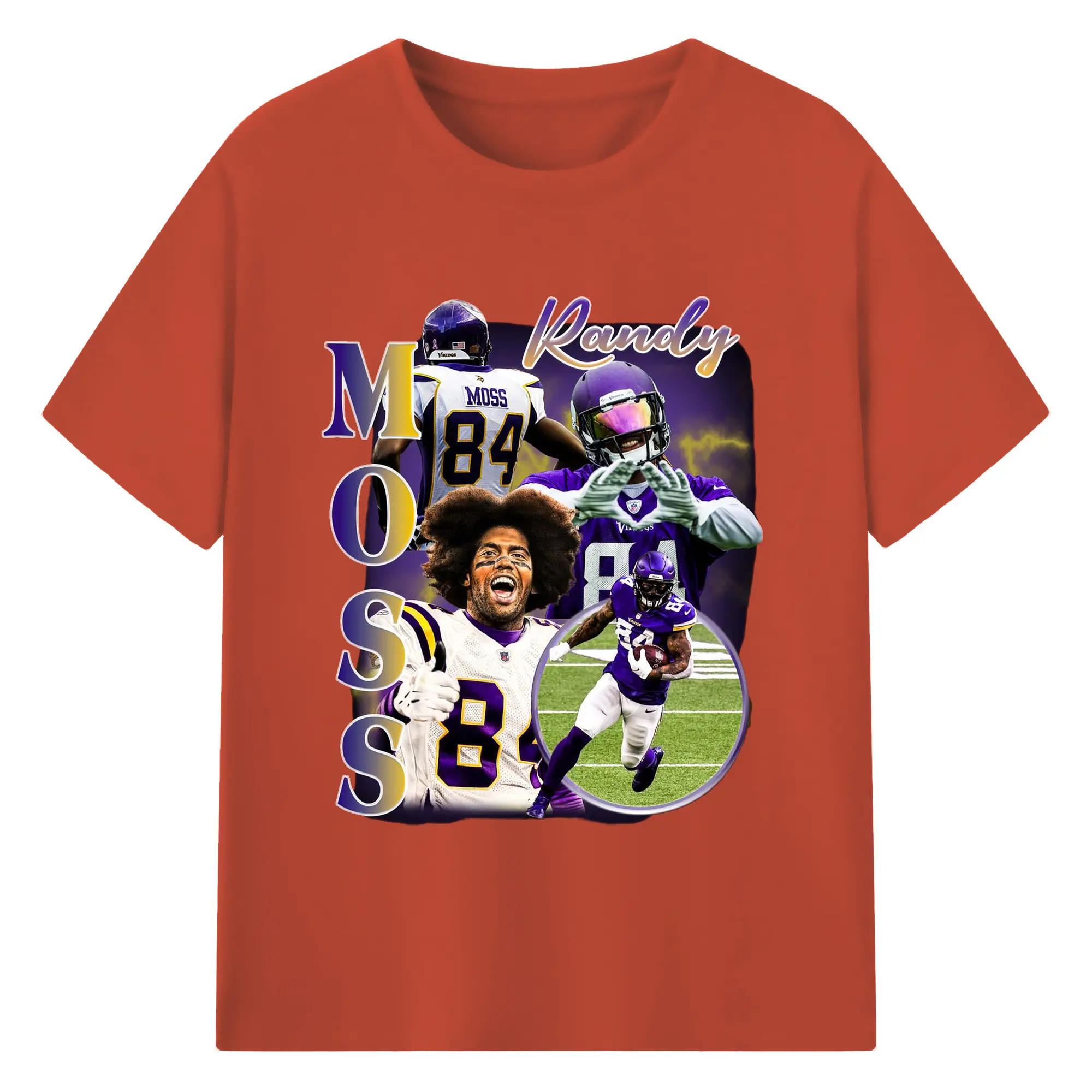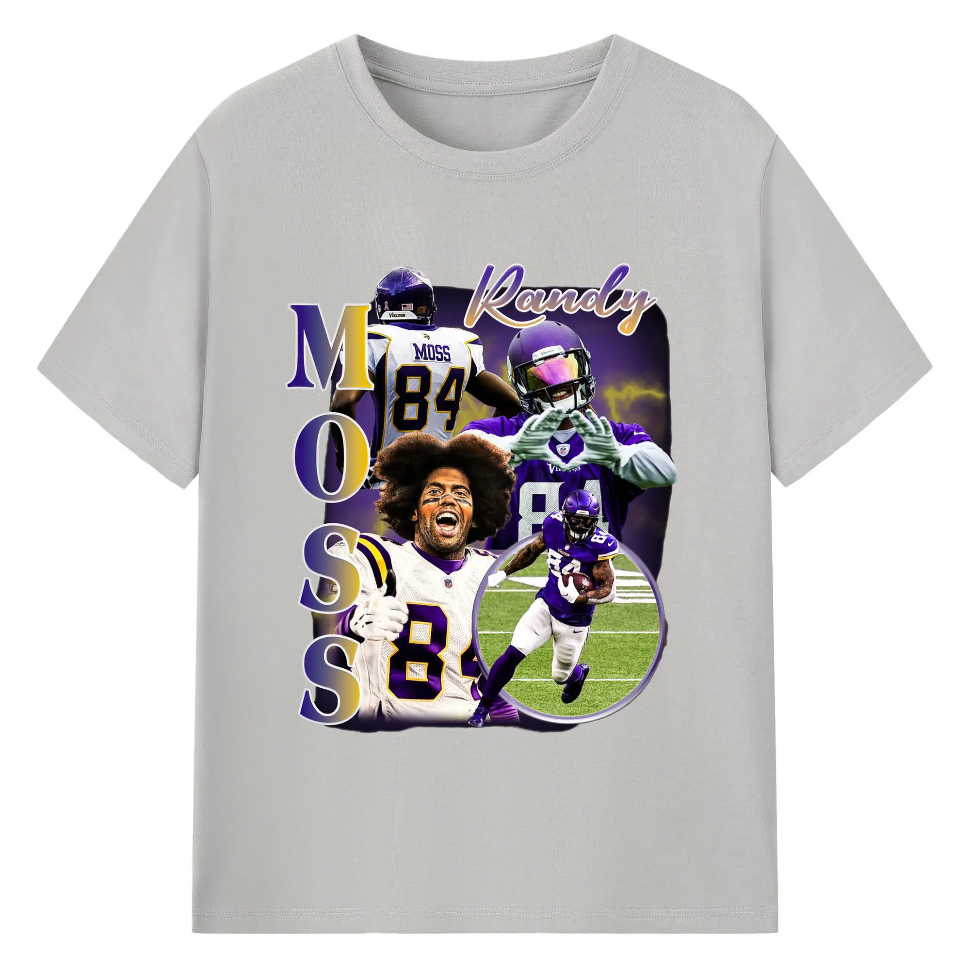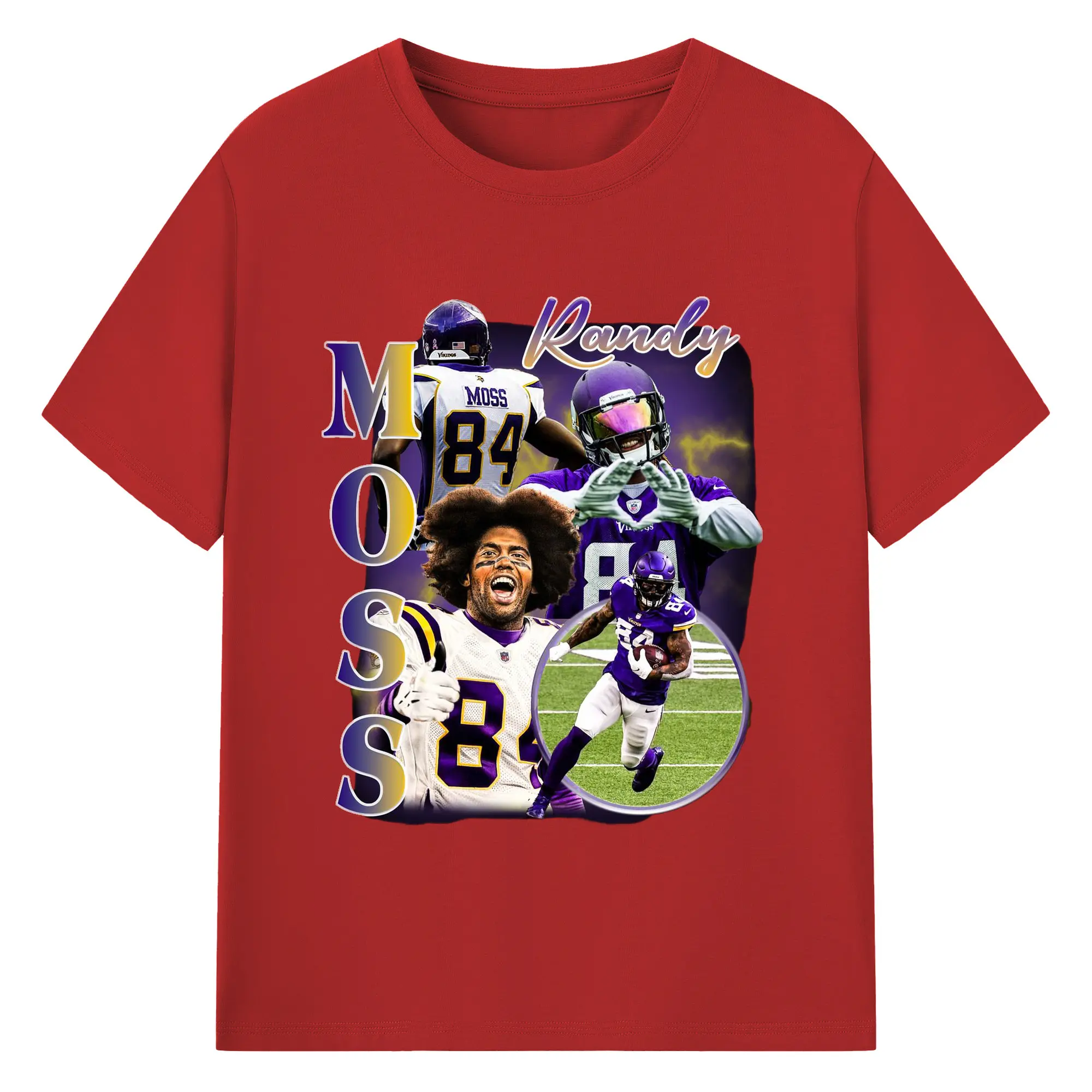 Randy Moss Minnesota Vikings #84 NFL Legend DIY Shirt - 180g Cotton T-Shirt With Front Heat Transfer Print – Soft, Lightweight, Fitted Design – Comfortable Casual Wear For Sports & Everyday Use