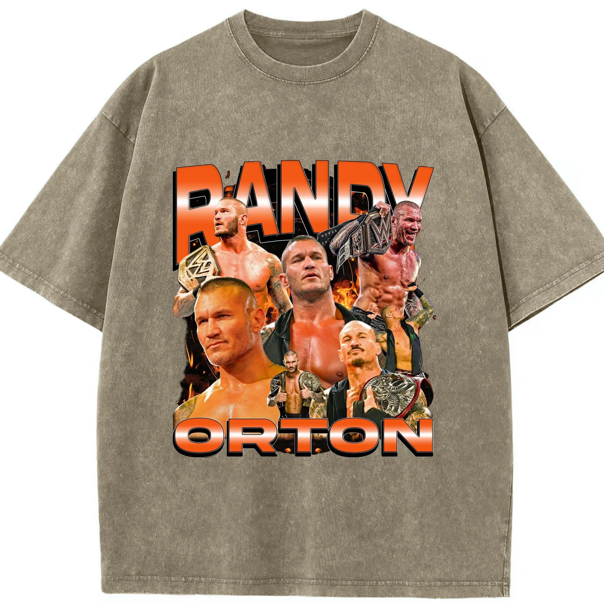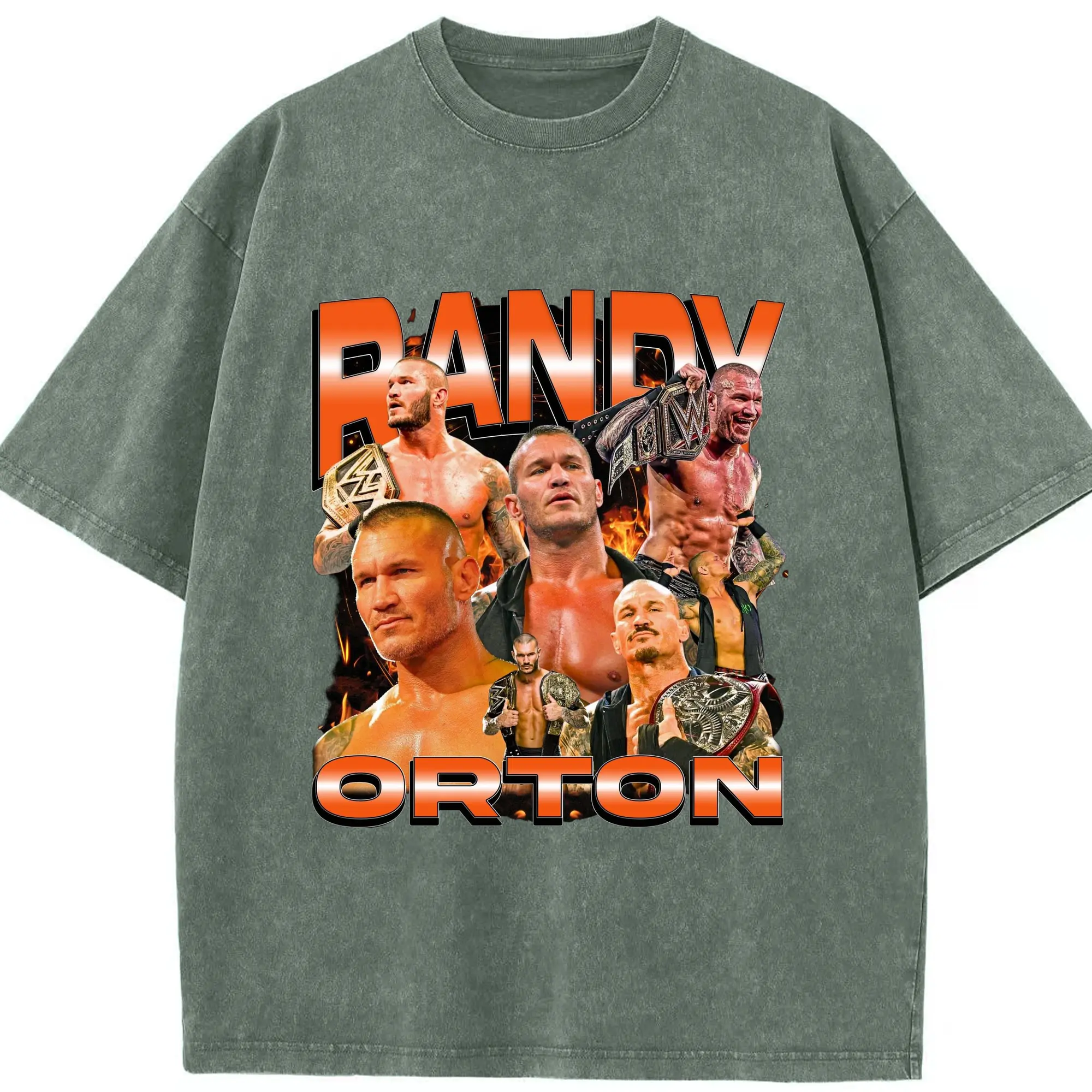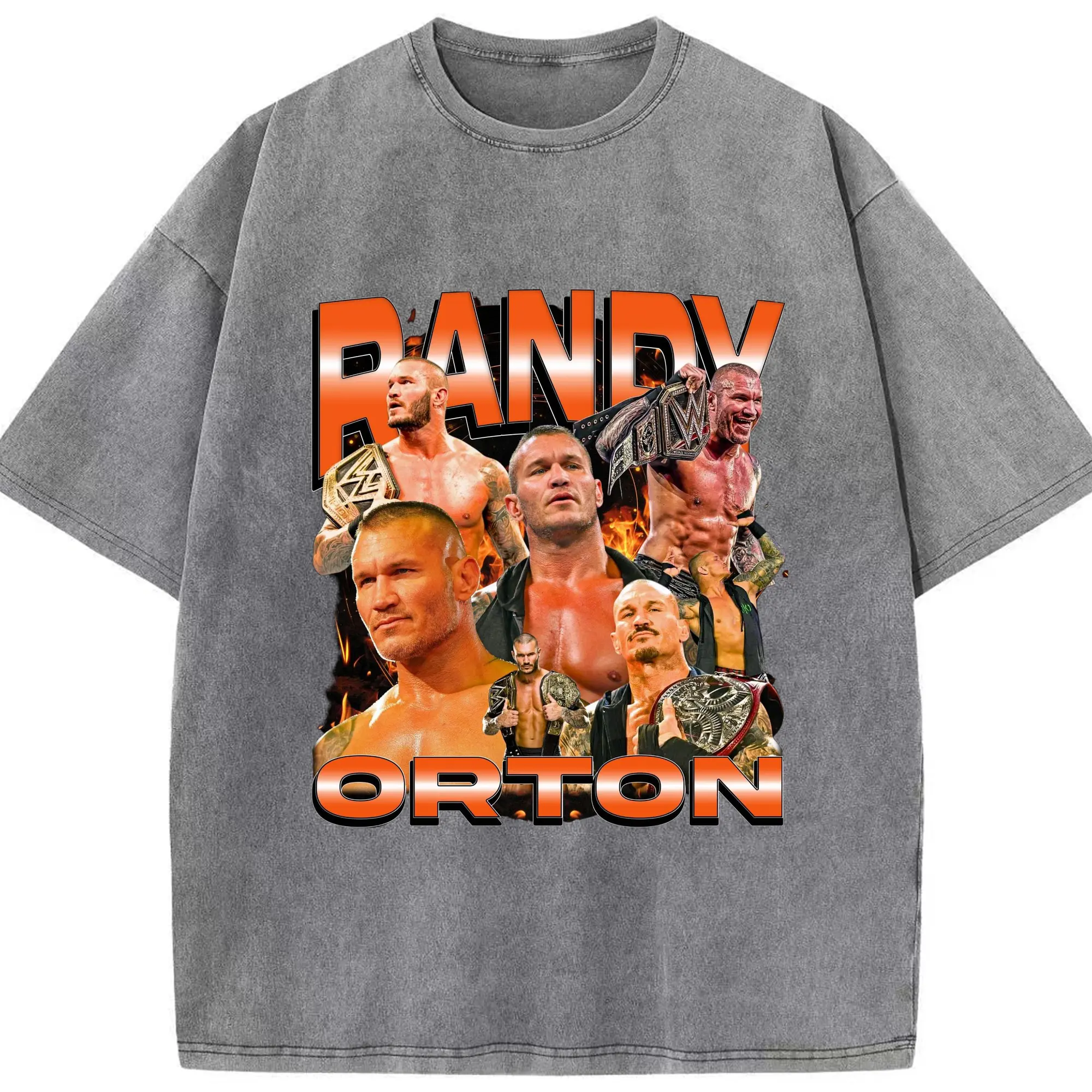 Randy Orton WWE Legend Collage DIY Shirt - Washed Vintage Look 230g Cotton Oversized T-Shirt With Front Heat Transfer Print – Soft, Lightweight, Stylish Fit – Comfortable Casual Wear For Sports & Everyday Use