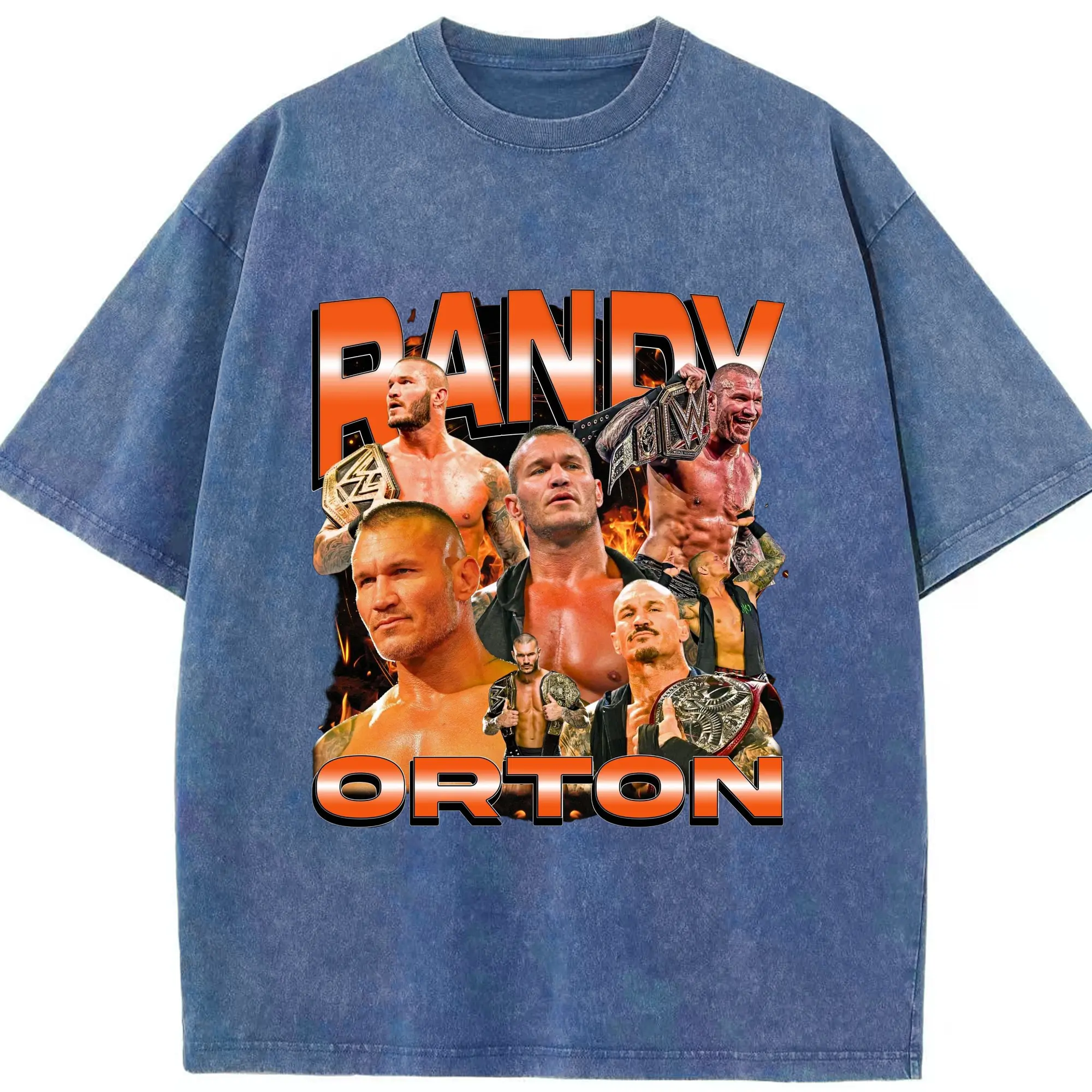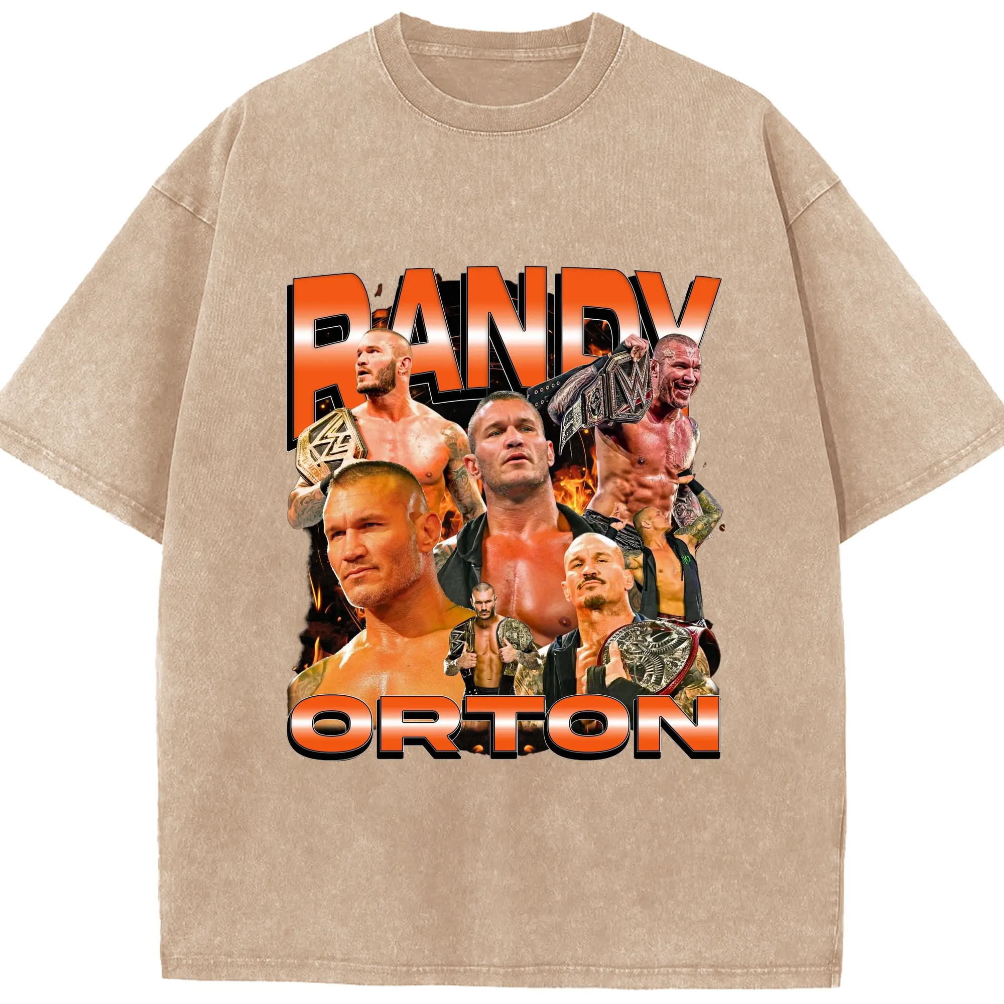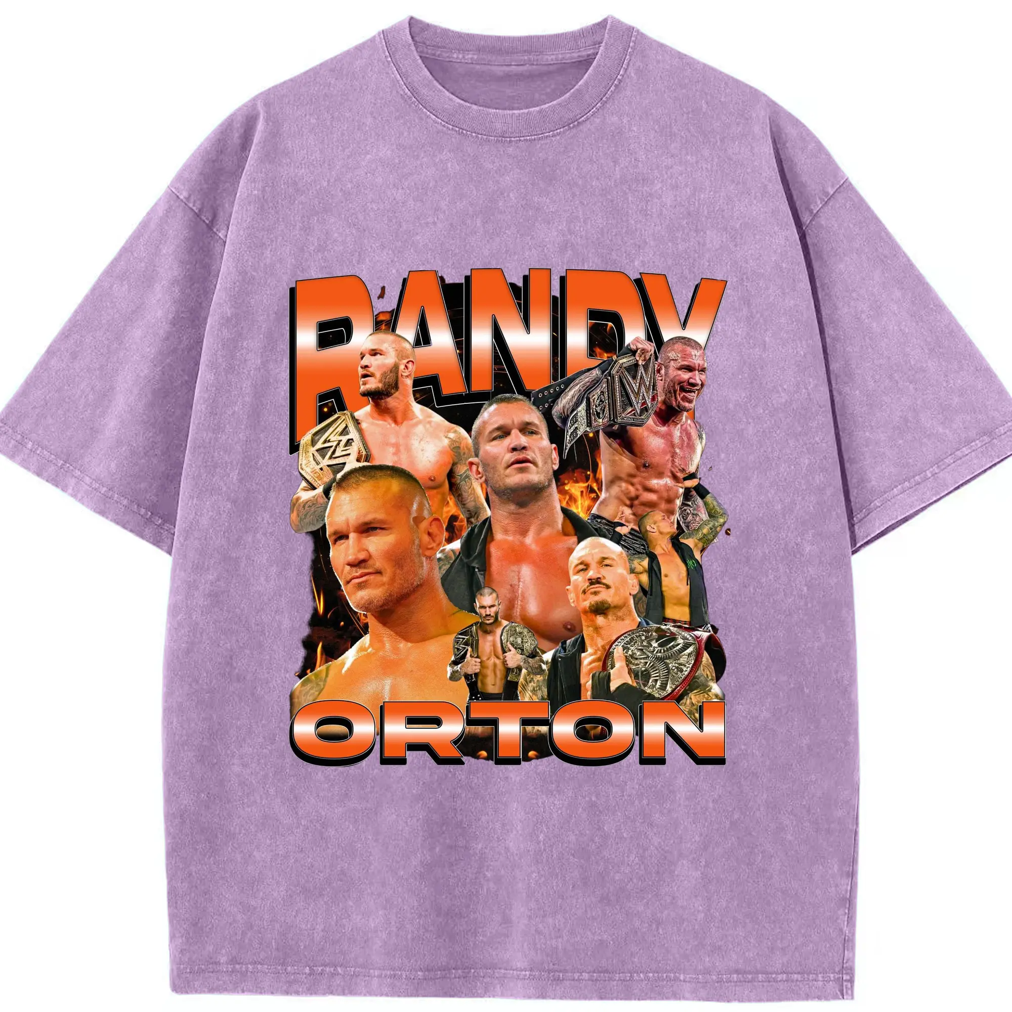 Randy Orton WWE Legend Collage DIY Shirt - Washed Vintage Look 230g Cotton Oversized T-Shirt With Front Heat Transfer Print – Soft, Lightweight, Stylish Fit – Comfortable Casual Wear For Sports & Everyday Use