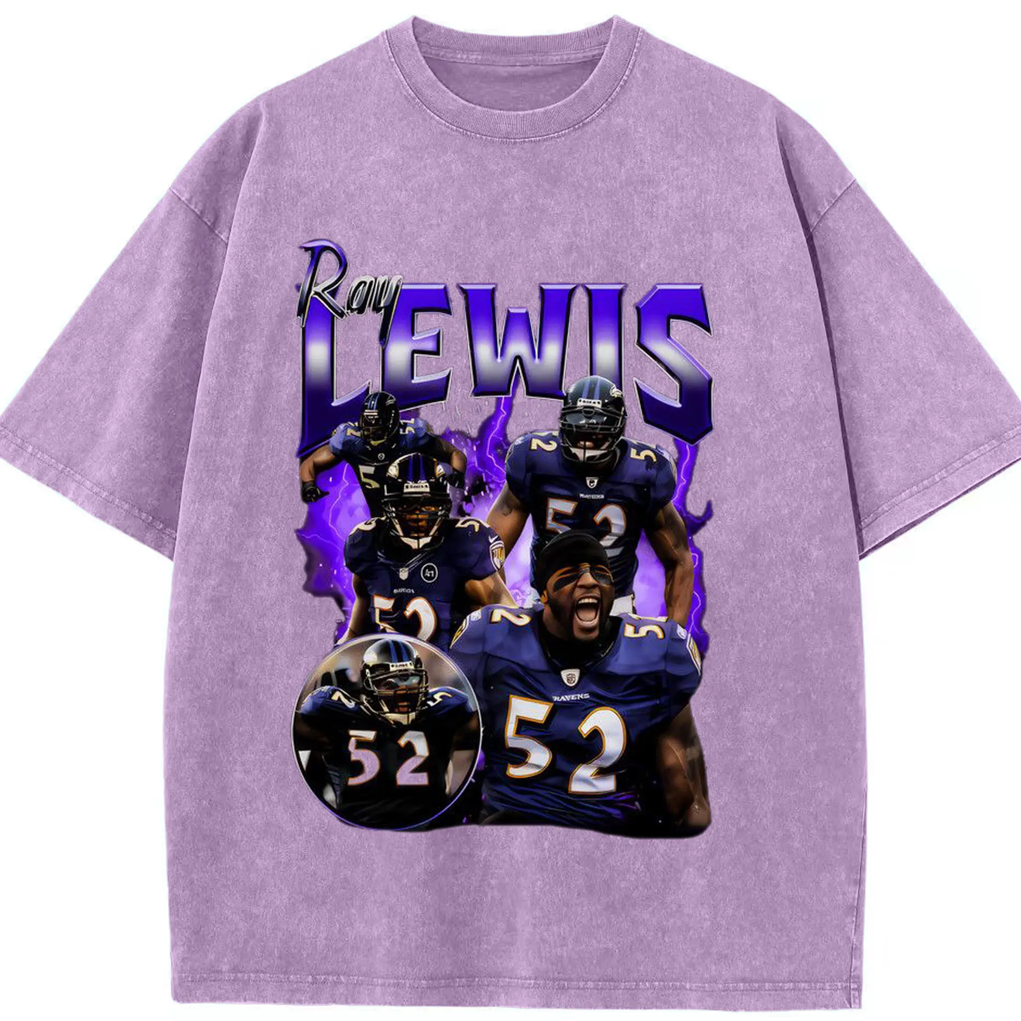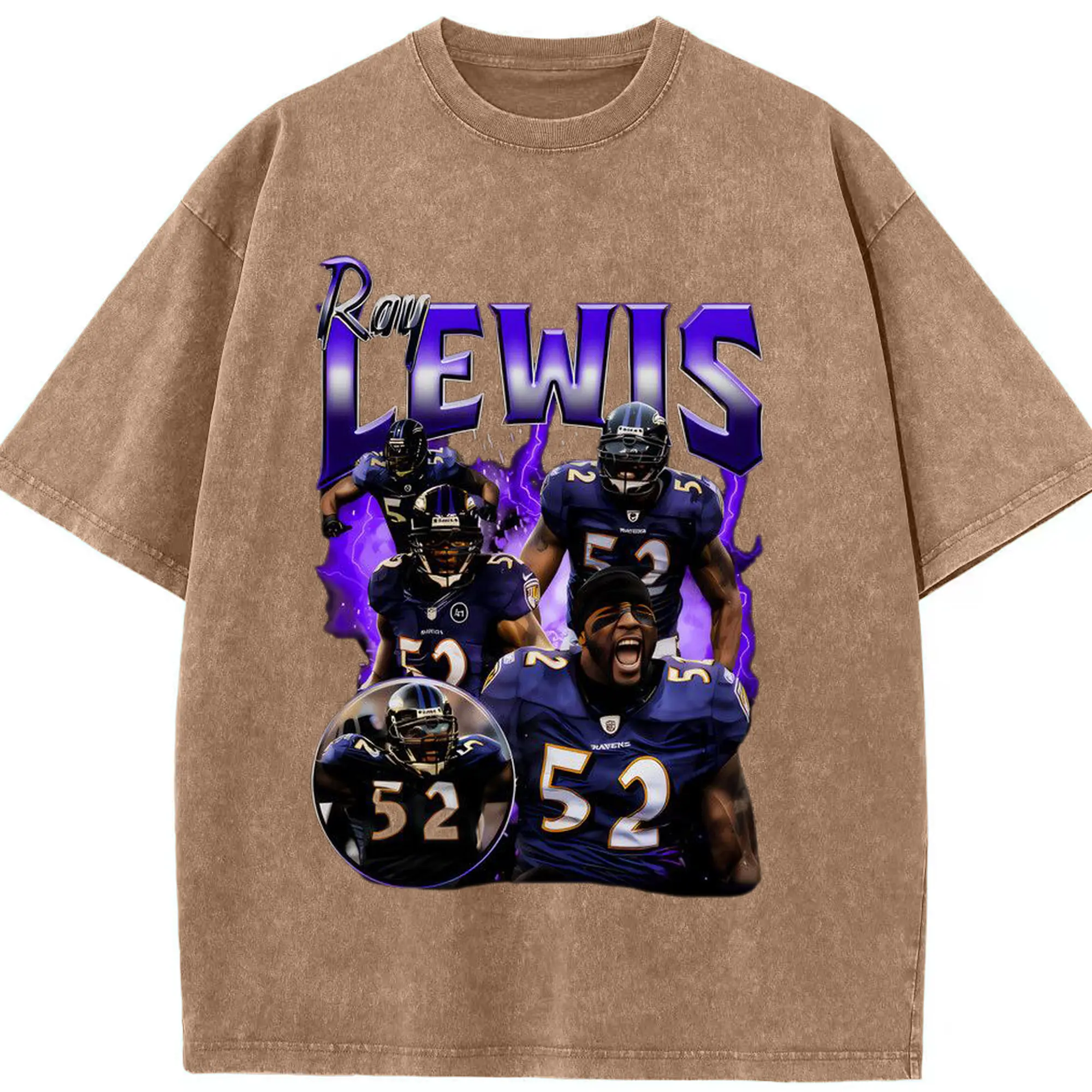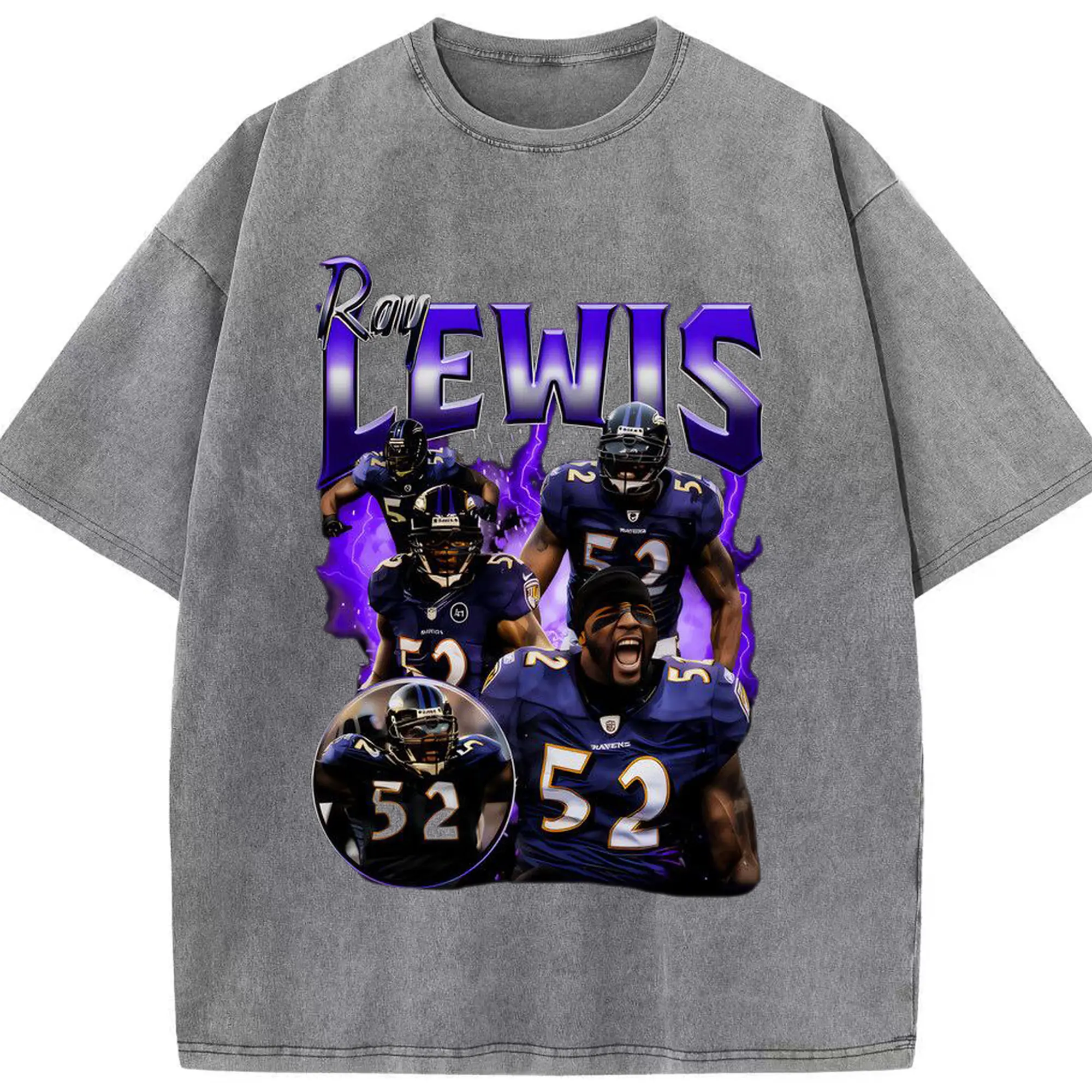 Ray Lewis #52 Baltimore Ravens NFL Great DIY Shirt - Washed Vintage Look 230g Cotton Oversized T-Shirt With Front Heat Transfer Print – Soft, Lightweight, Stylish Fit – Comfortable Casual Wear For Sports & Everyday Use