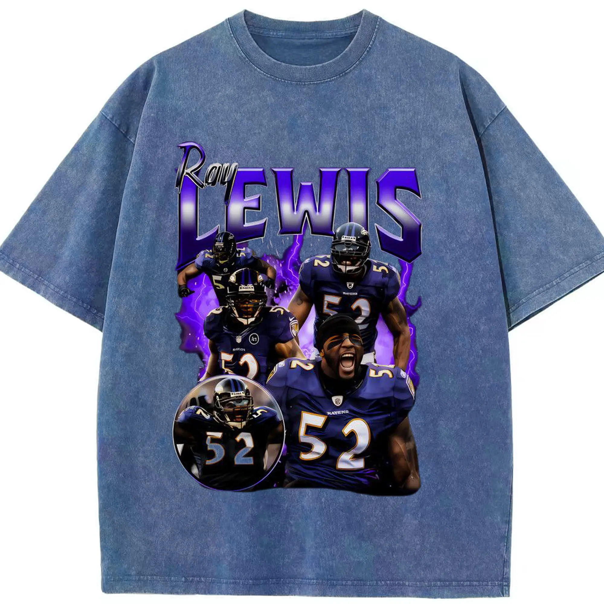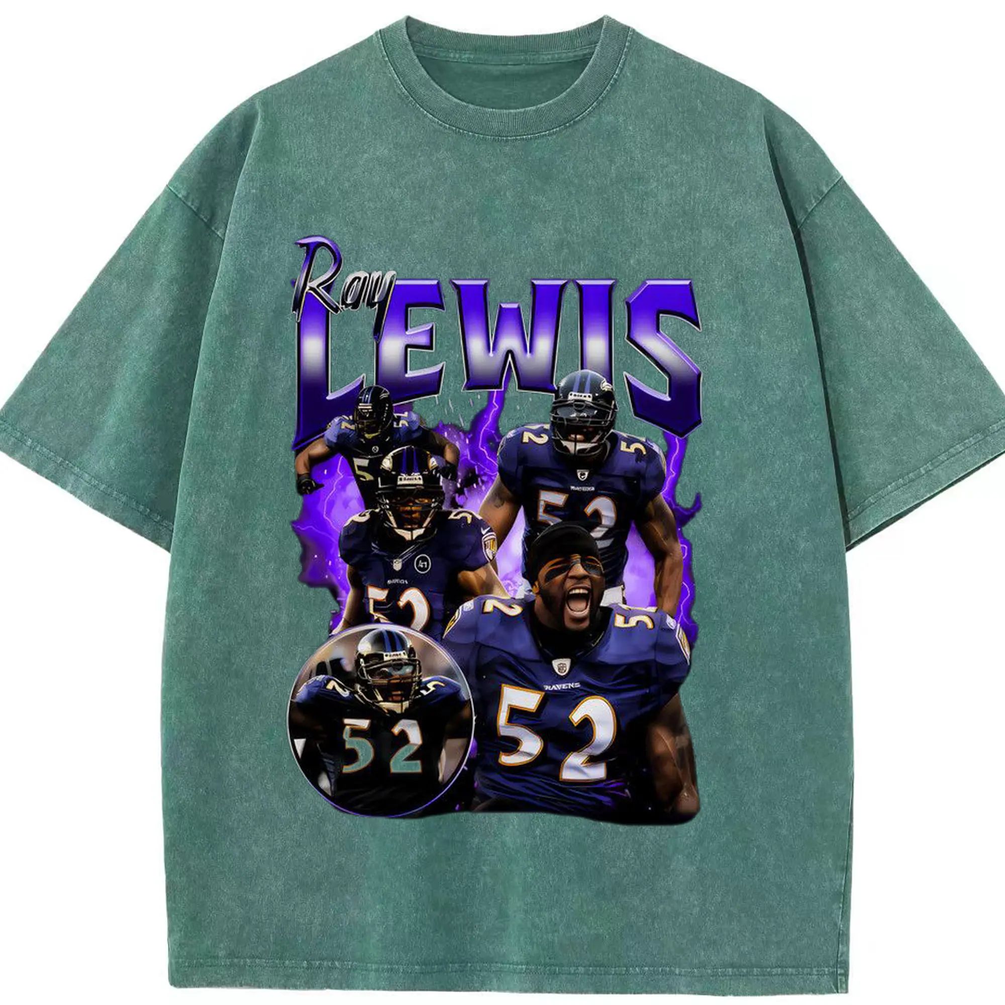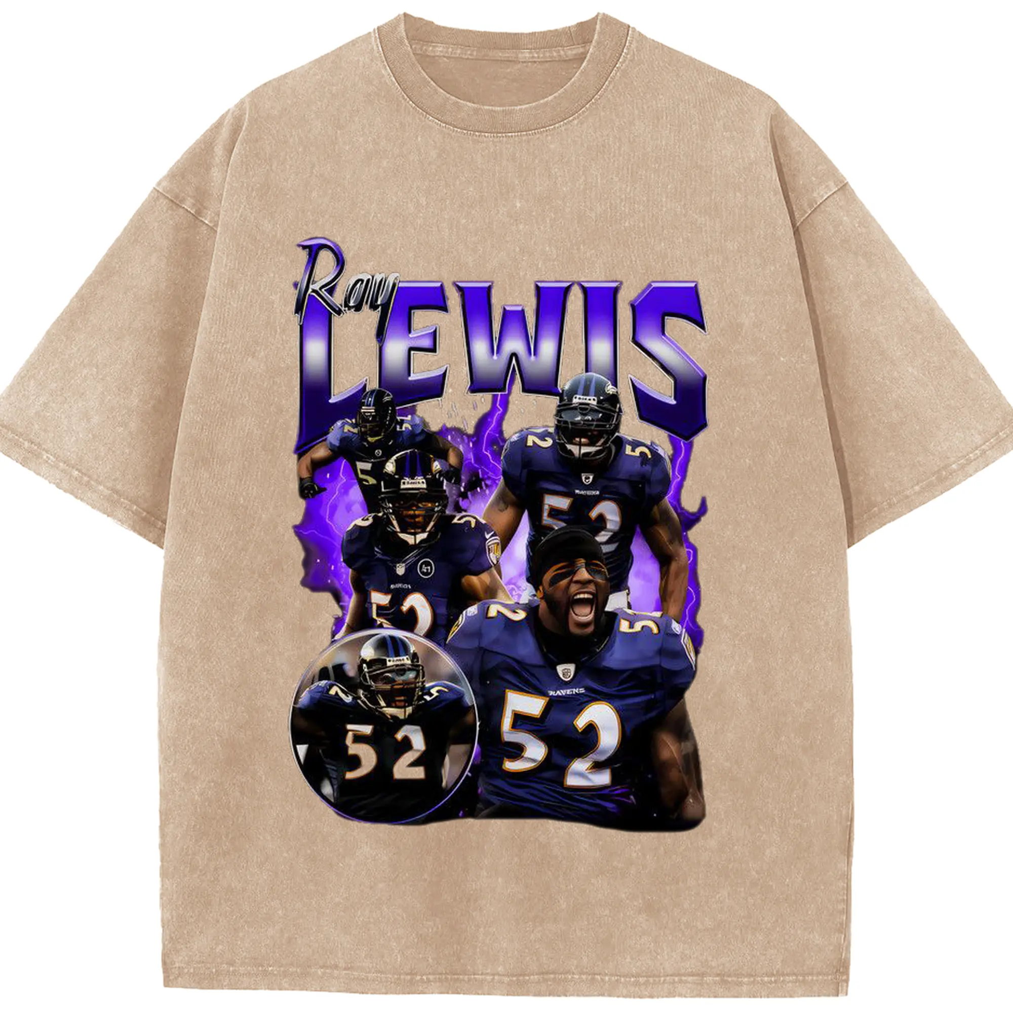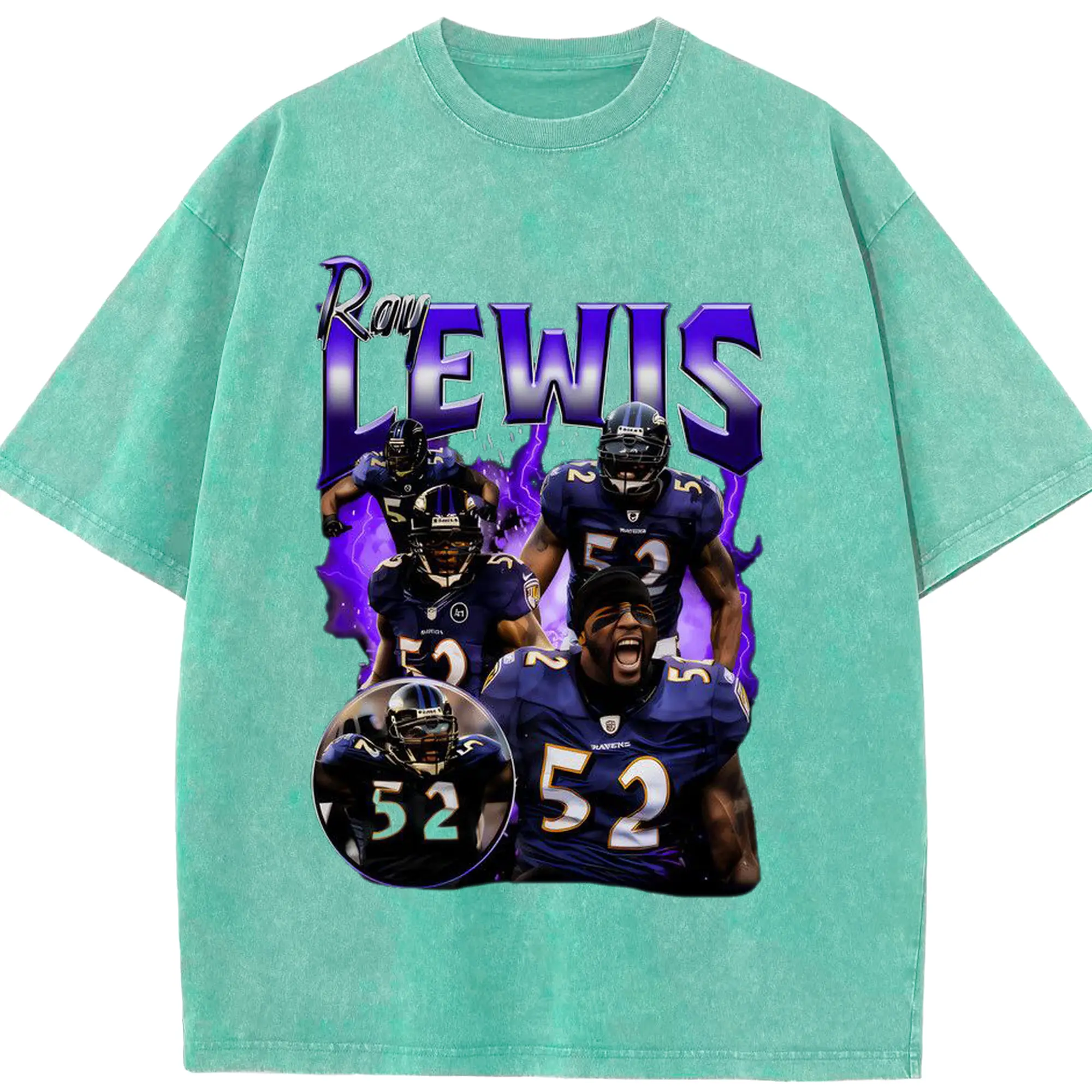 Ray Lewis #52 Baltimore Ravens NFL Great DIY Shirt - Washed Vintage Look 230g Cotton Oversized T-Shirt With Front Heat Transfer Print – Soft, Lightweight, Stylish Fit – Comfortable Casual Wear For Sports & Everyday Use