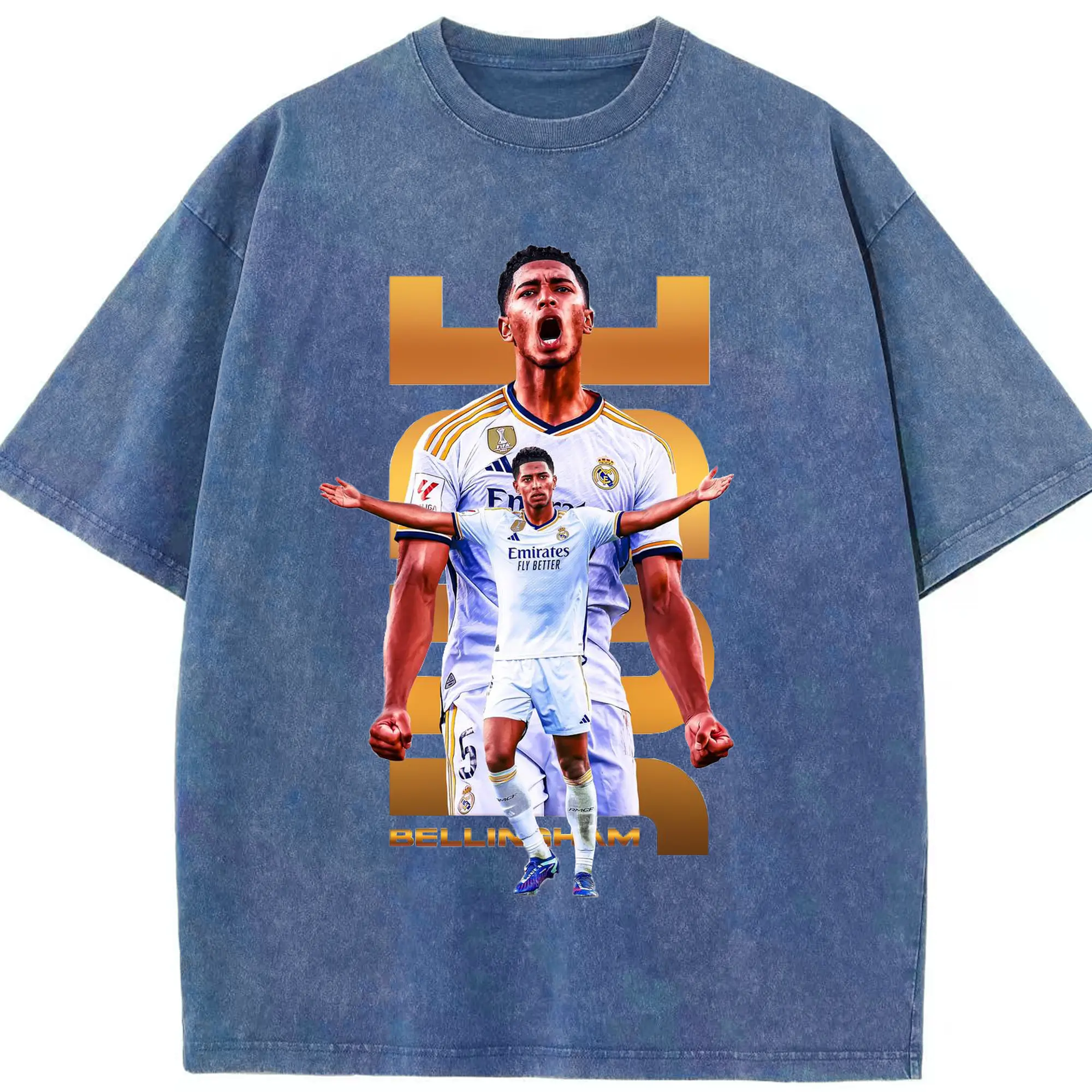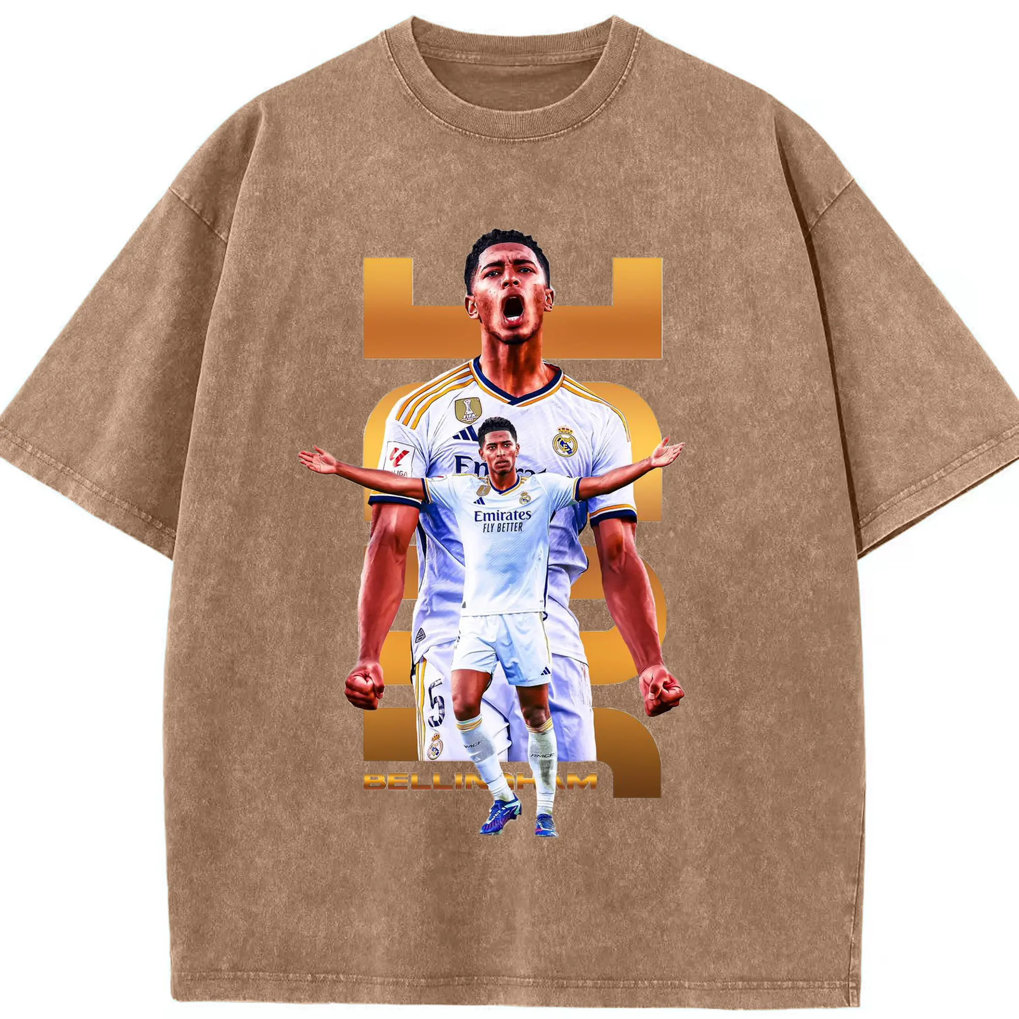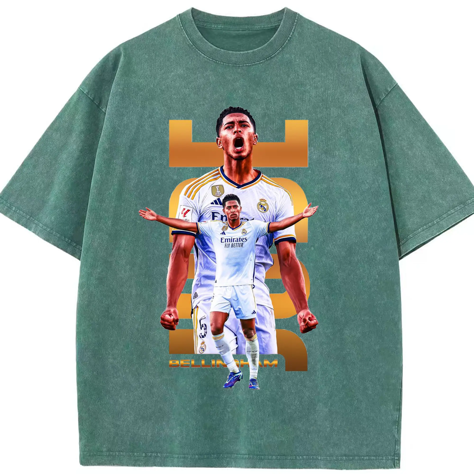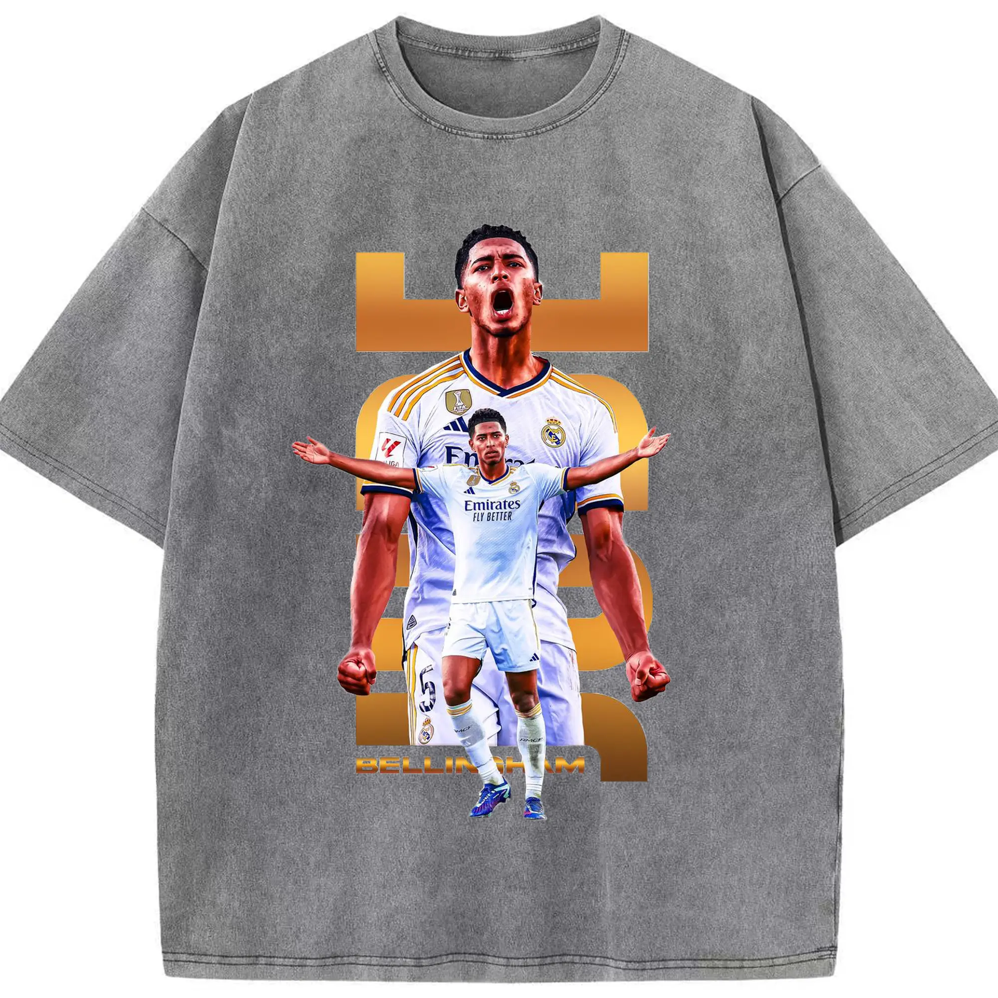 Real Madrid Jude Bellingham Star Style DIY Shirt - Washed Vintage Look 230g Cotton Oversized T-Shirt With Front Heat Transfer Print – Soft, Lightweight, Stylish Fit – Comfortable Casual Wear For Sports & Everyday Use