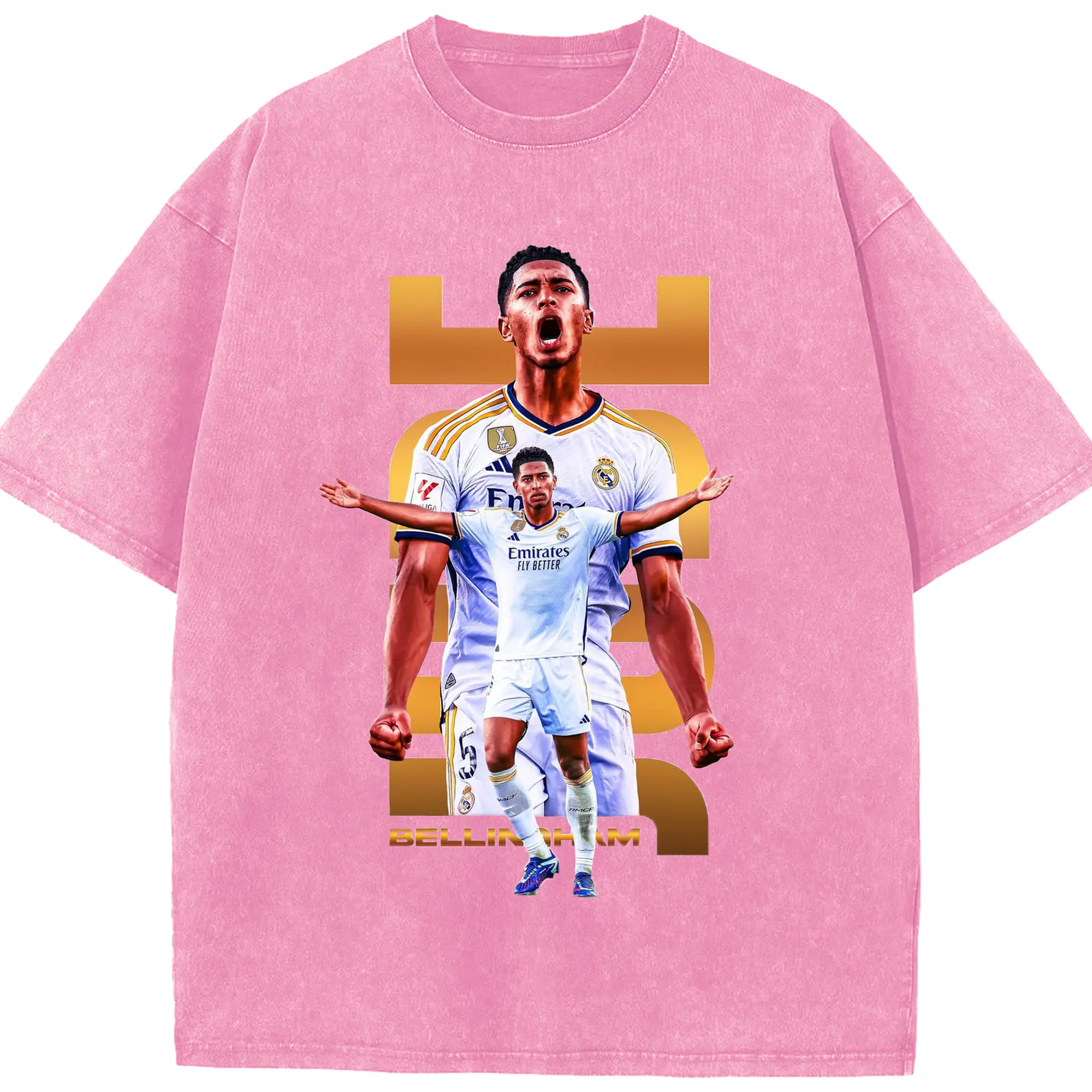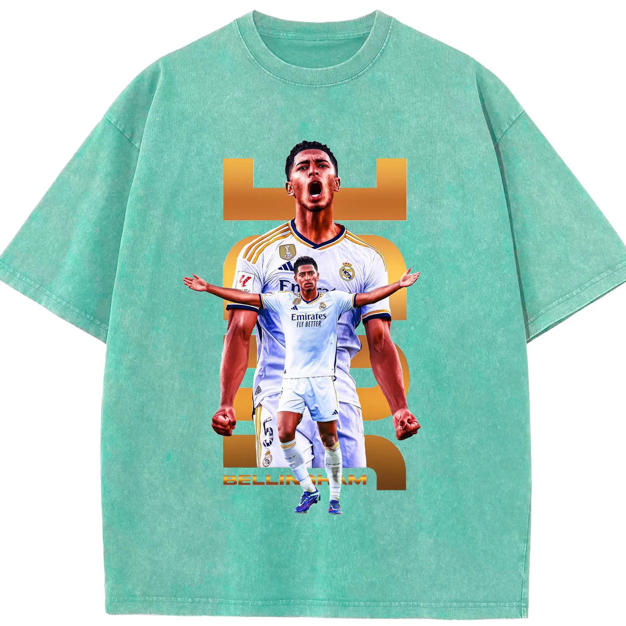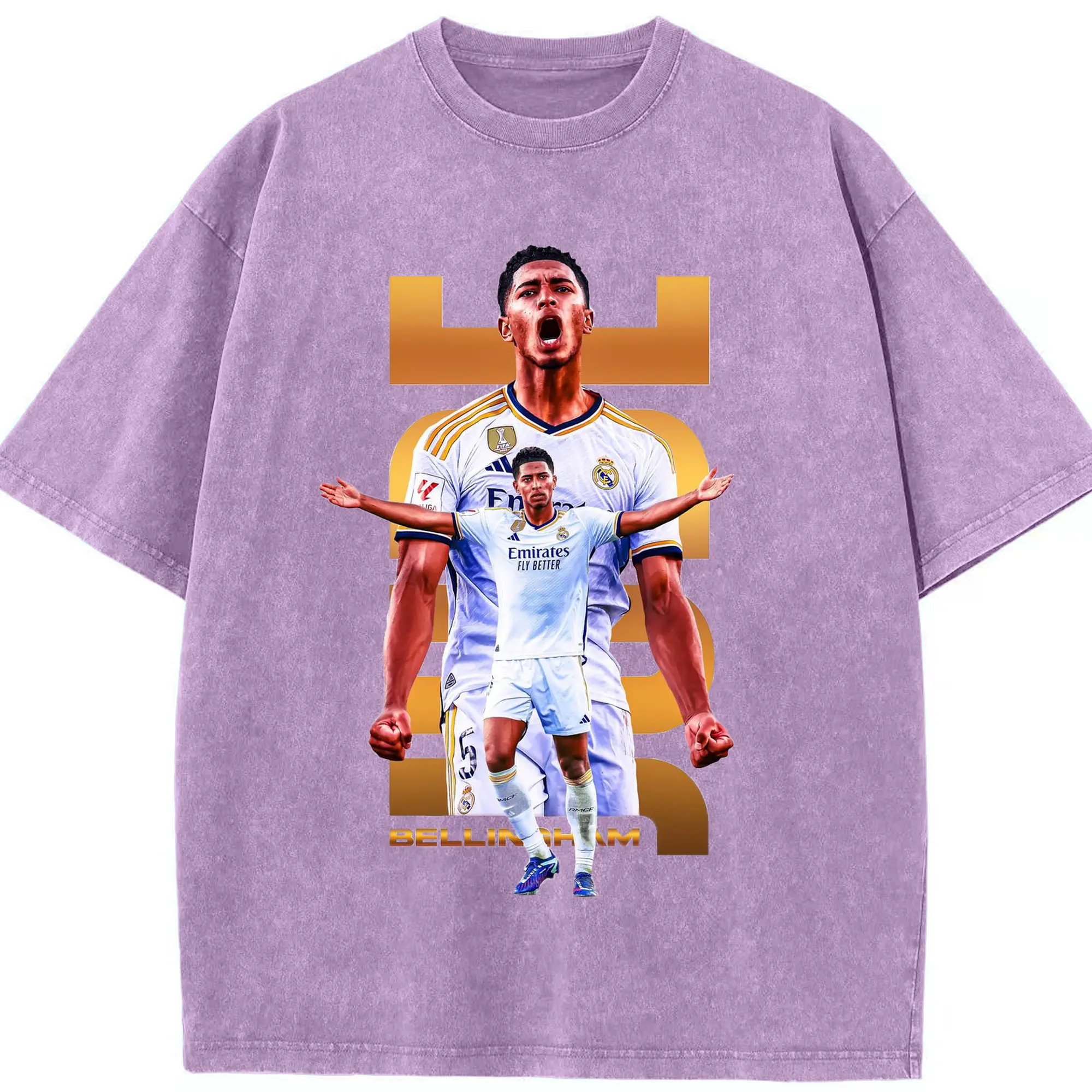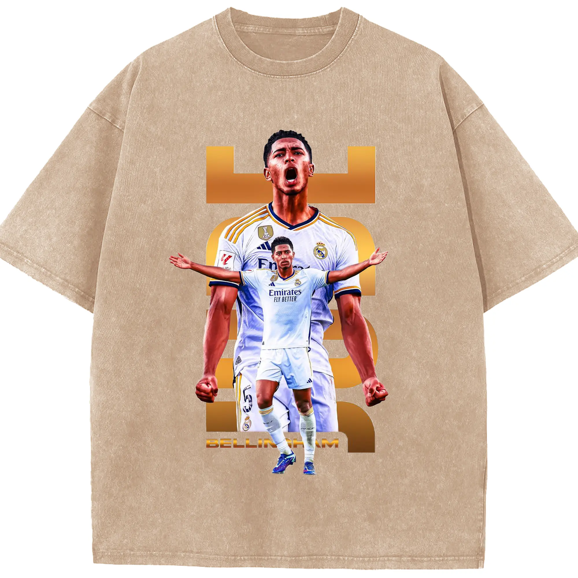 Real Madrid Jude Bellingham Star Style DIY Shirt - Washed Vintage Look 230g Cotton Oversized T-Shirt With Front Heat Transfer Print – Soft, Lightweight, Stylish Fit – Comfortable Casual Wear For Sports & Everyday Use