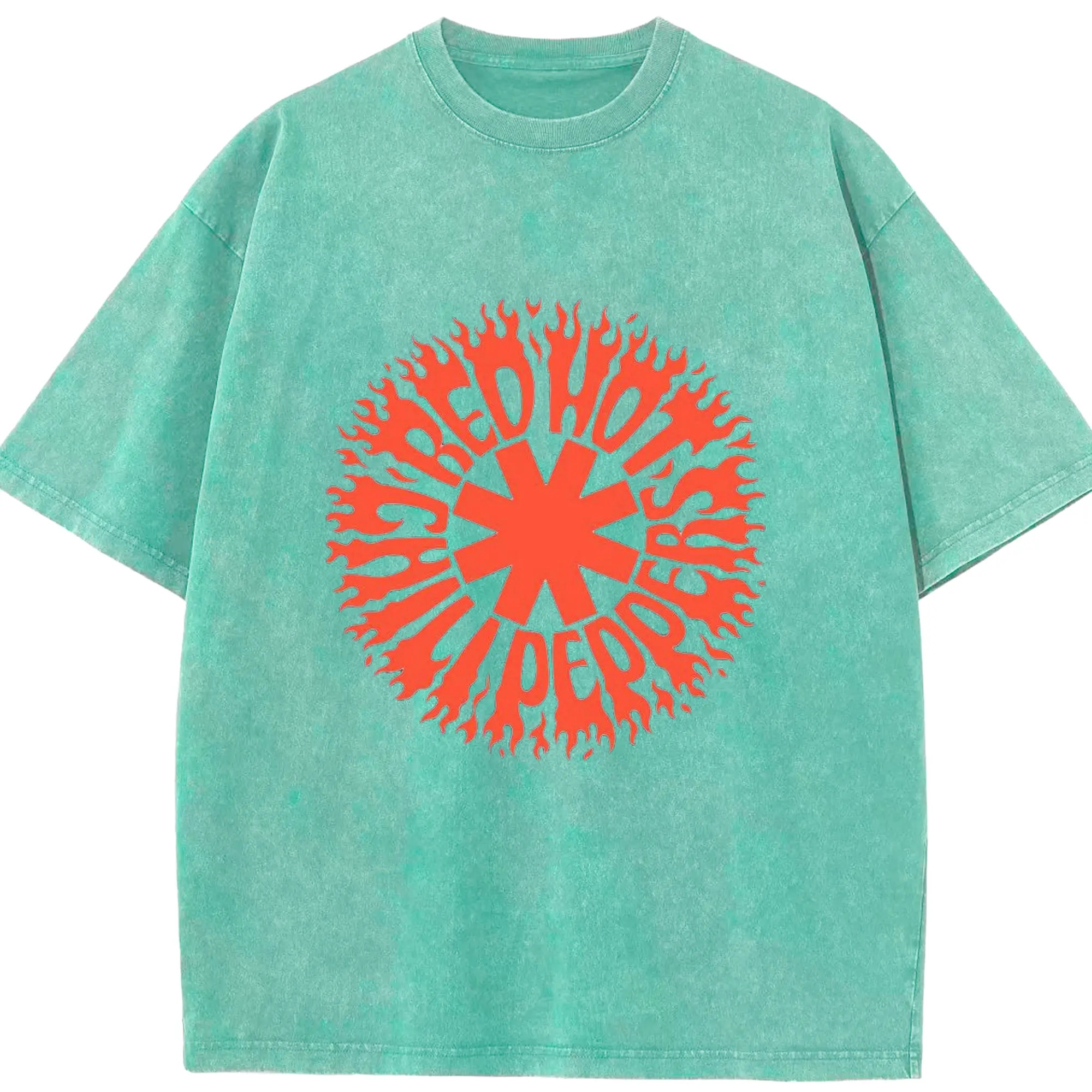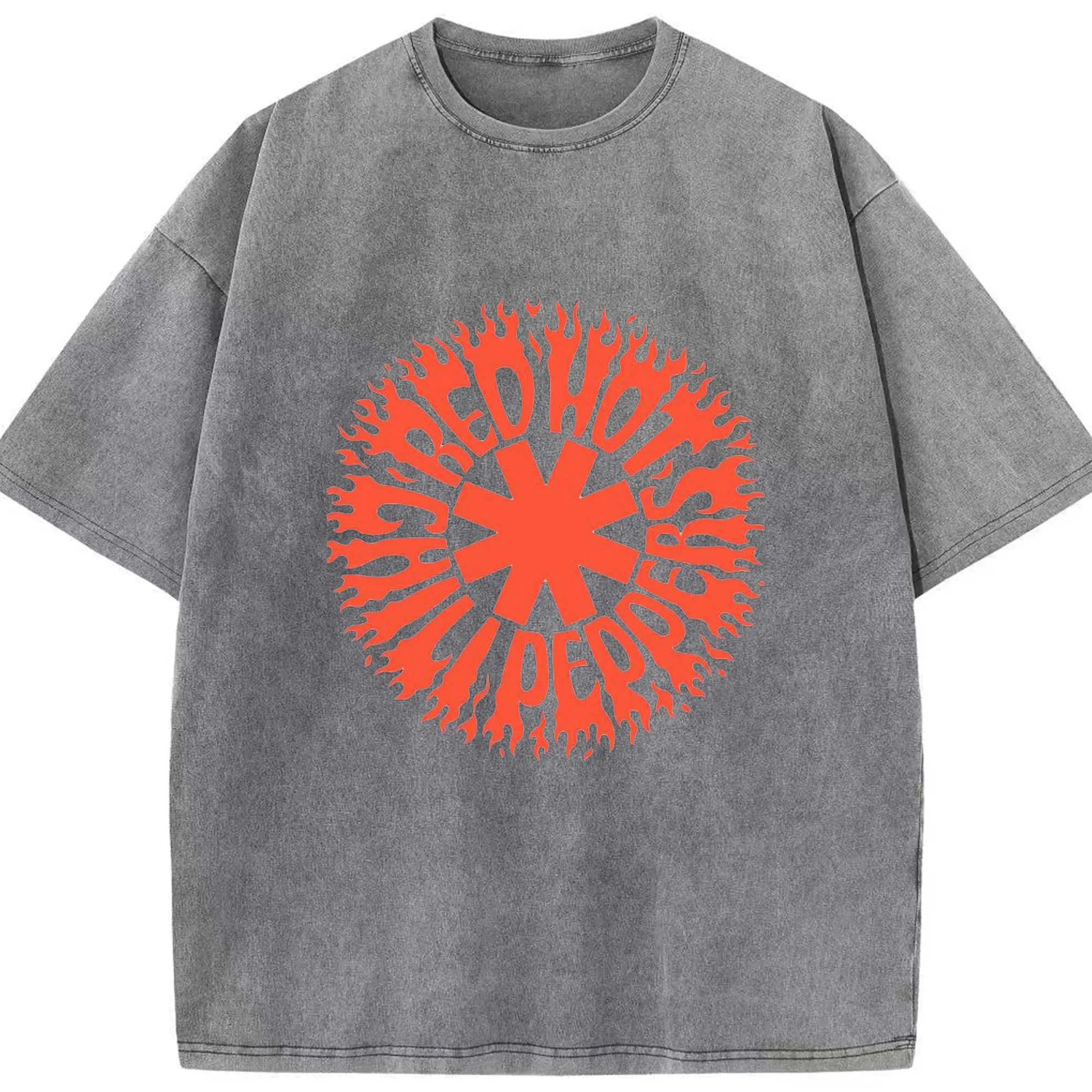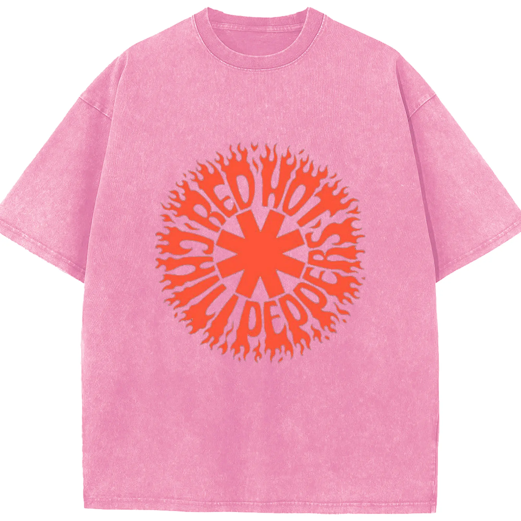 Red Hot Chili Peppers Flame Logo DIY - Washed Vintage Look 230g Cotton Oversized T-Shirt With Front Heat Transfer Print – Soft, Lightweight, Stylish Fit – Comfortable Casual Wear For Sports & Everyday Use